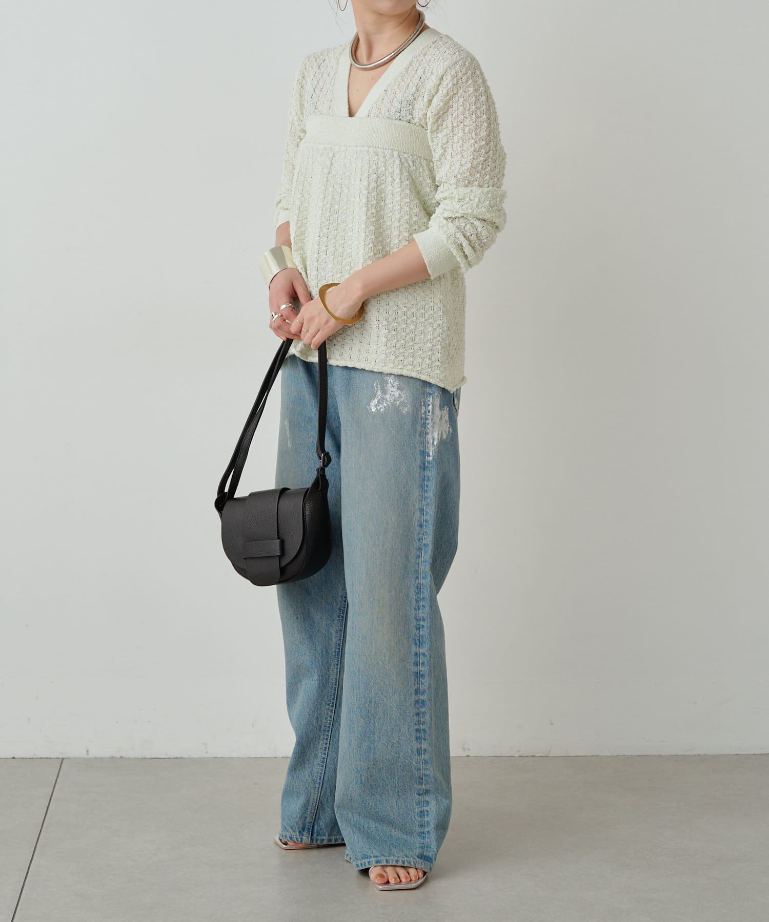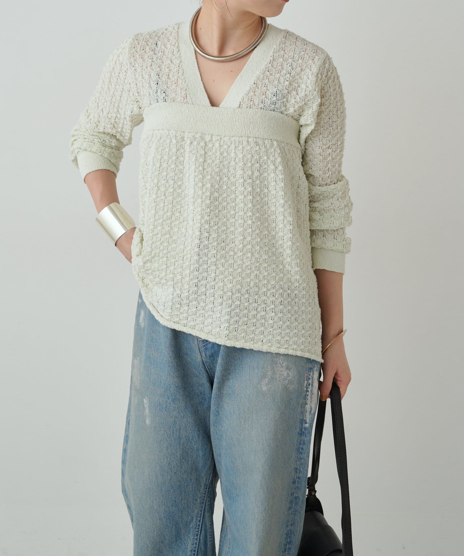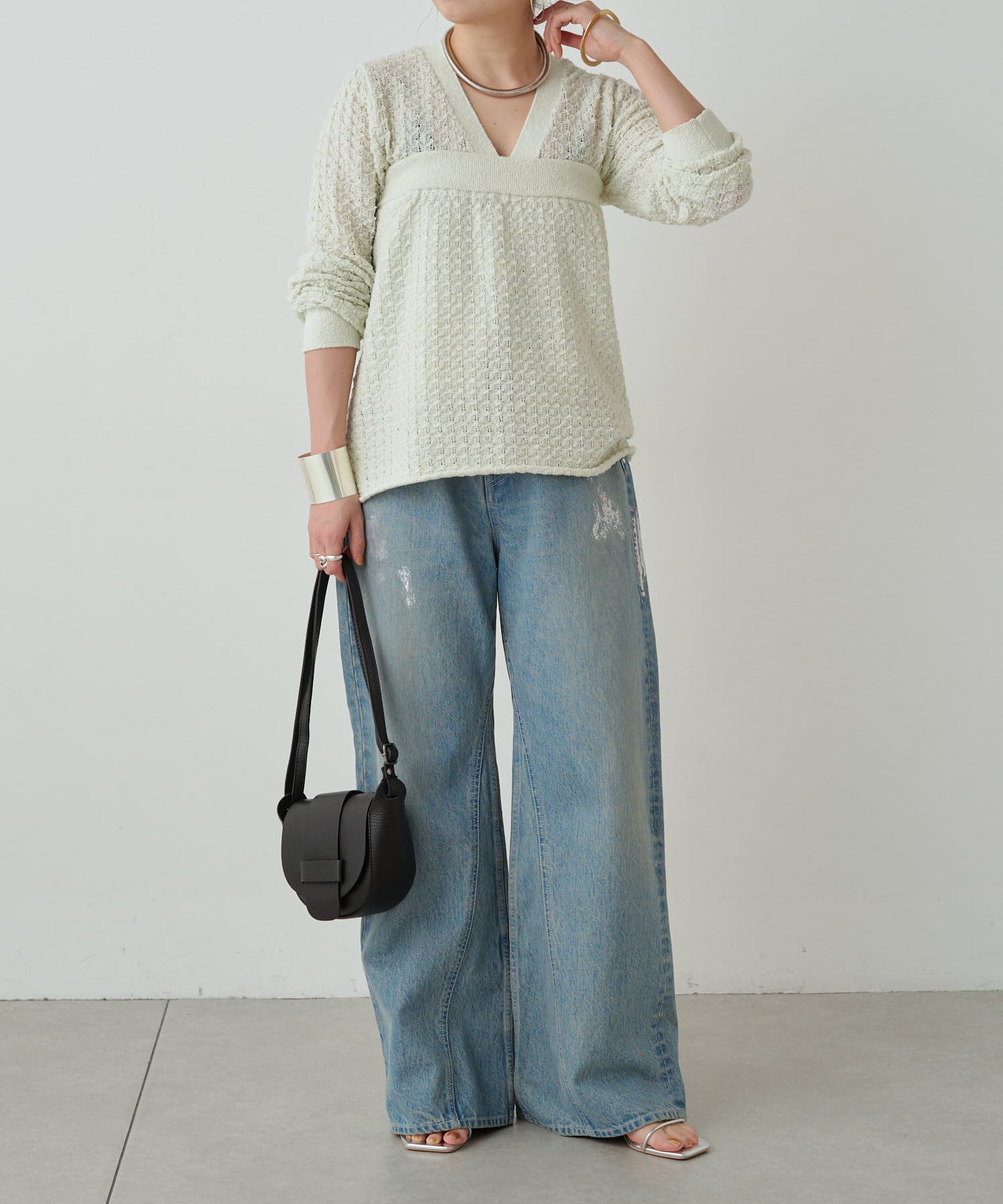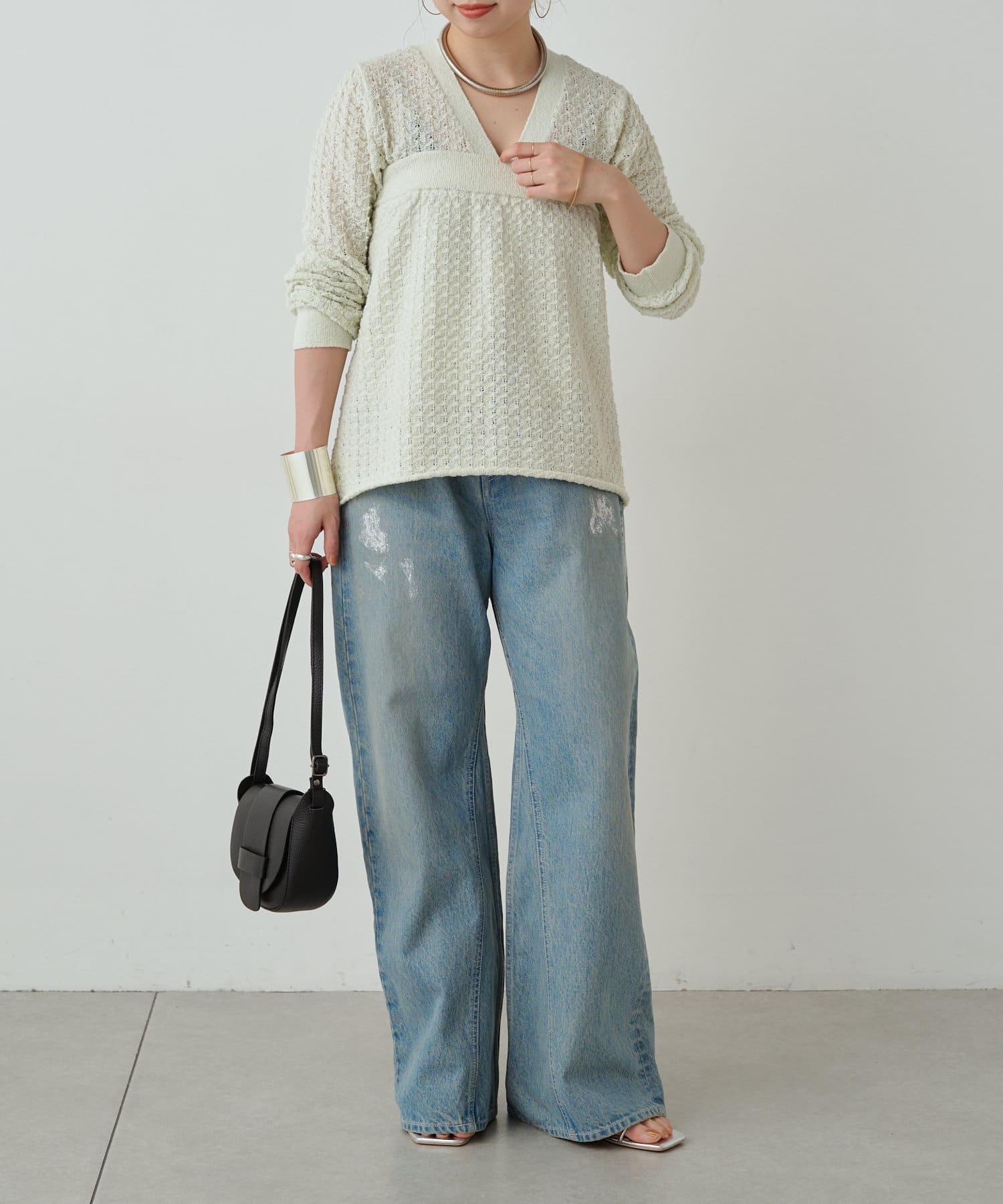 ・透かし編みニットカーデ【OMS1041405A0003】とセットで着用可能なので、お好みの着こなしで様々なアレンジを楽しめます。