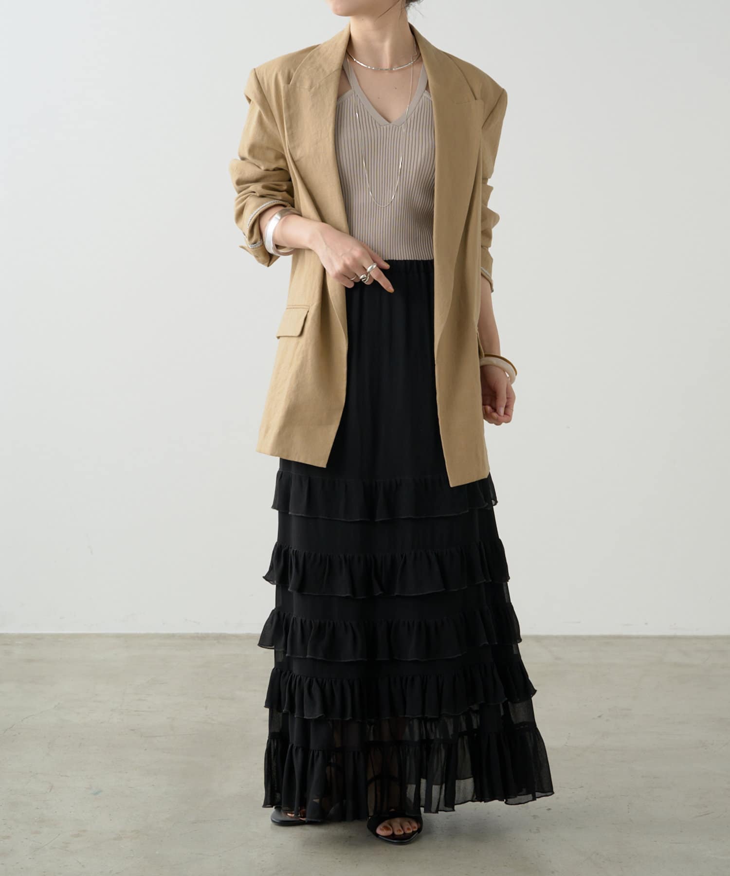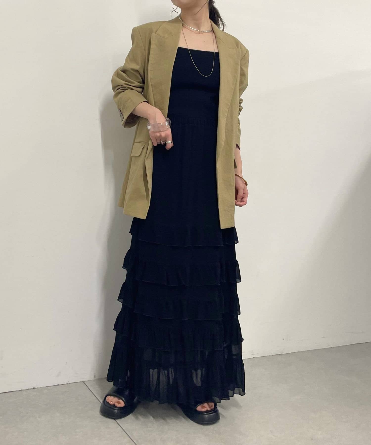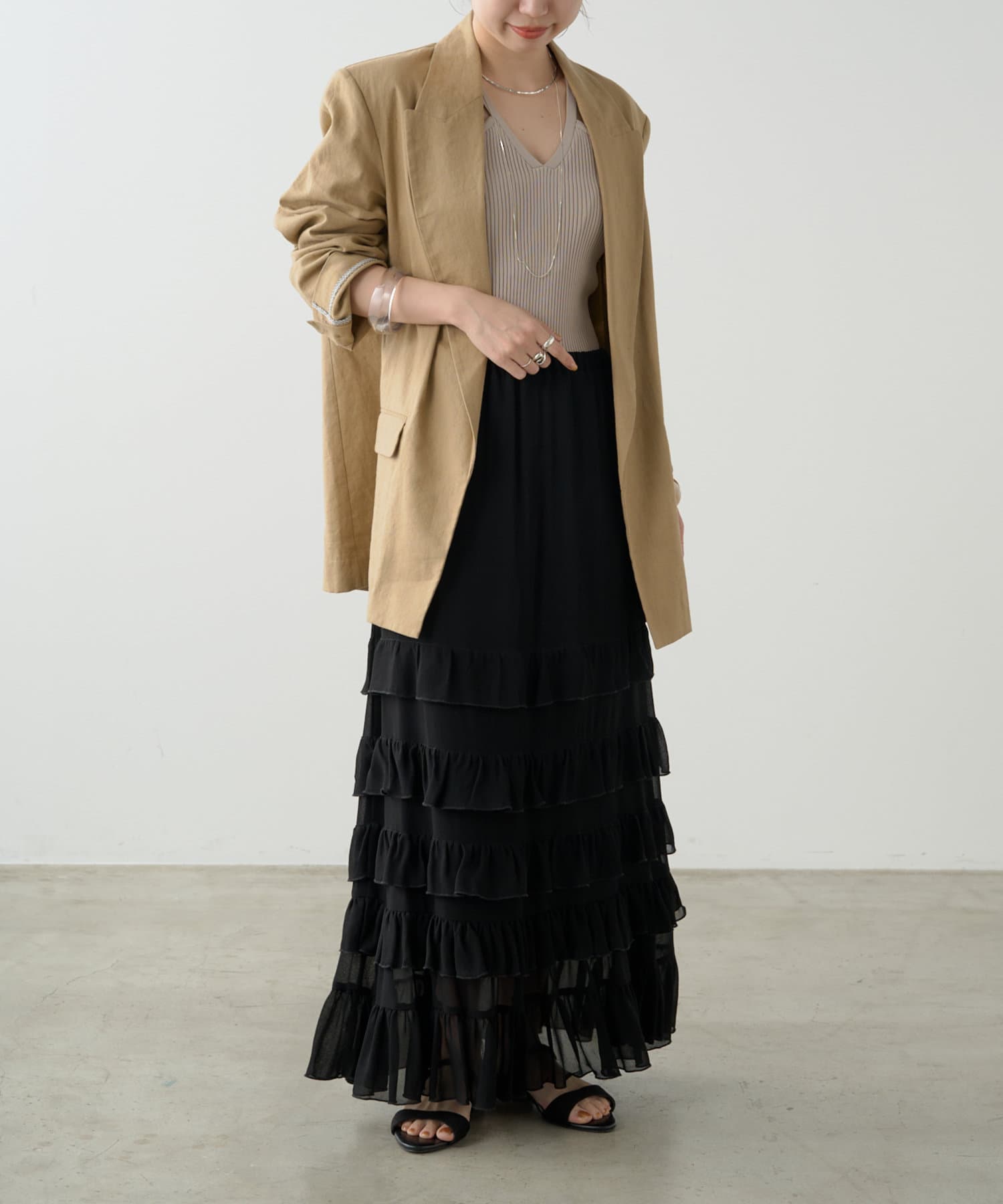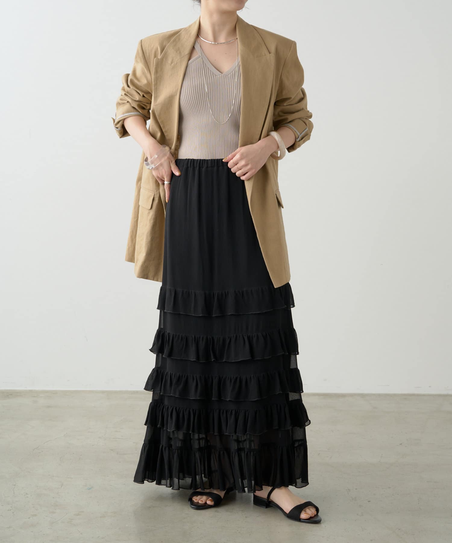 ・ふんわりと程よくボリューム感のあるティアードデザインがコーデに華やかさをもたらす一枚