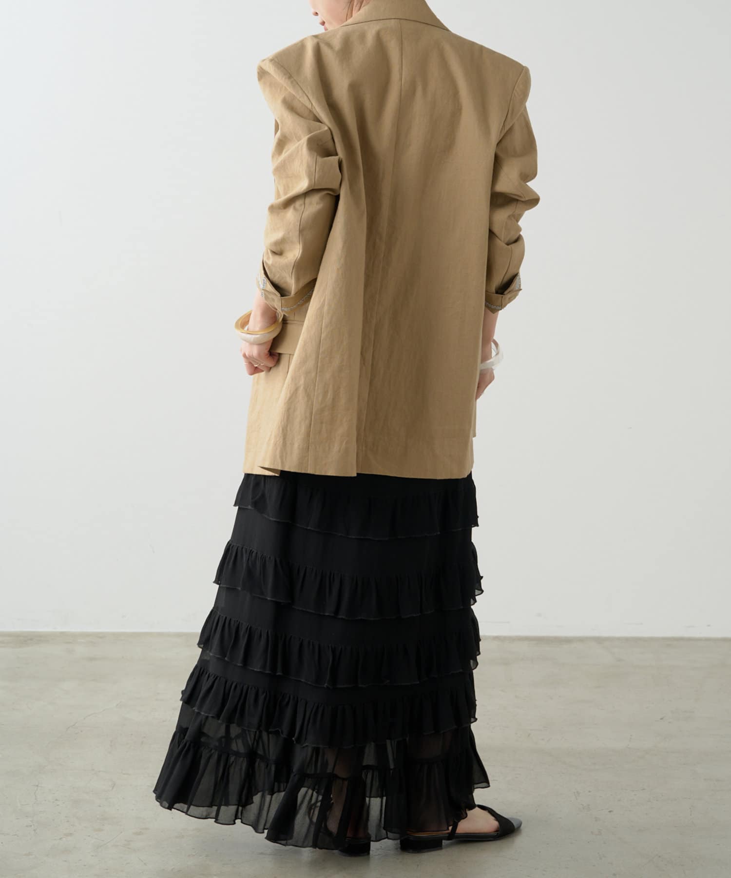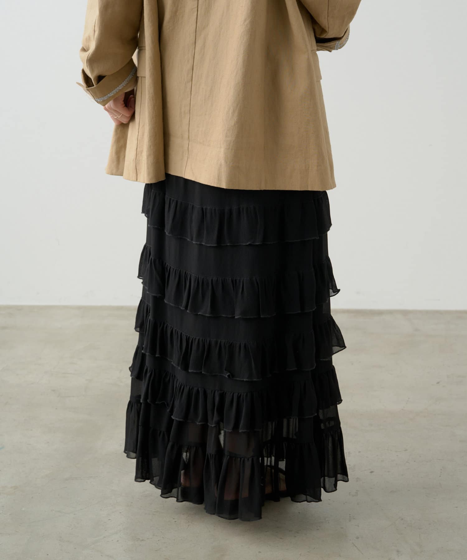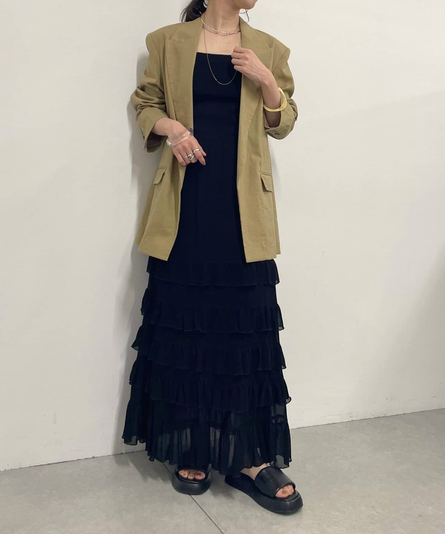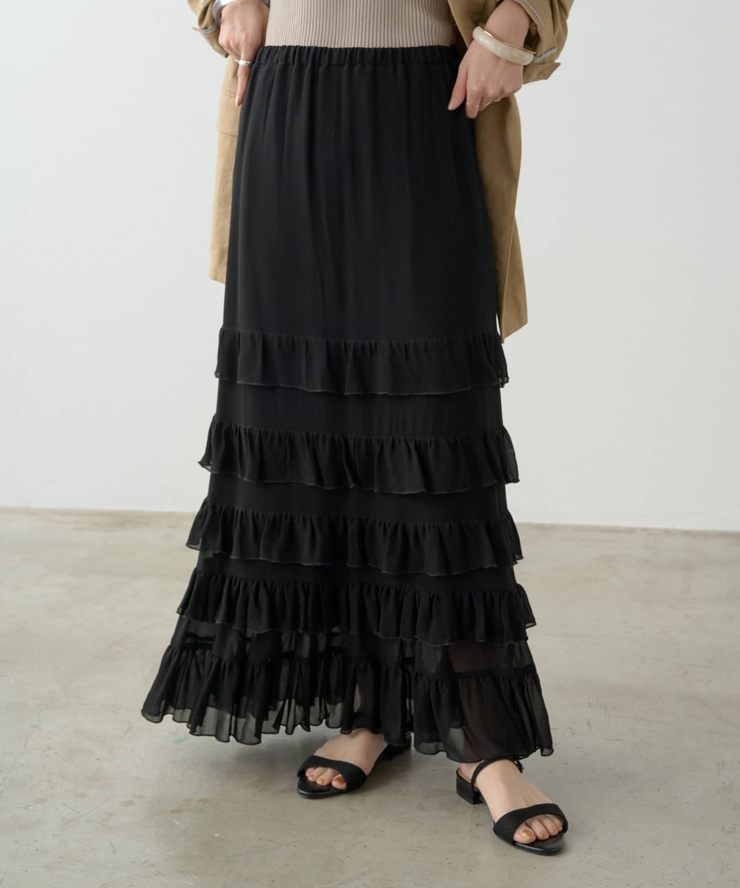 ・ふんわりと程よくボリューム感のあるティアードデザインがコーデに華やかさをもたらす一枚
