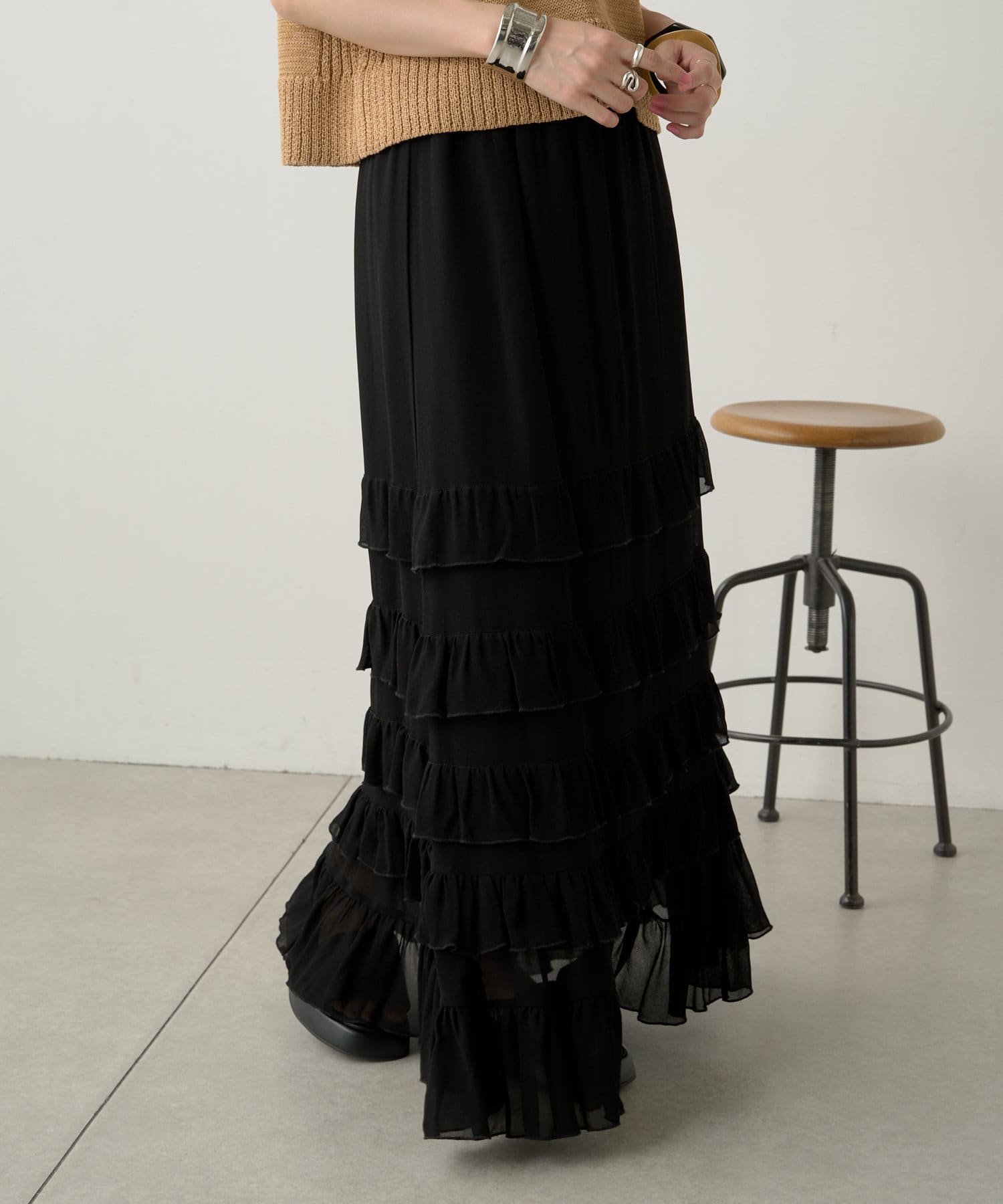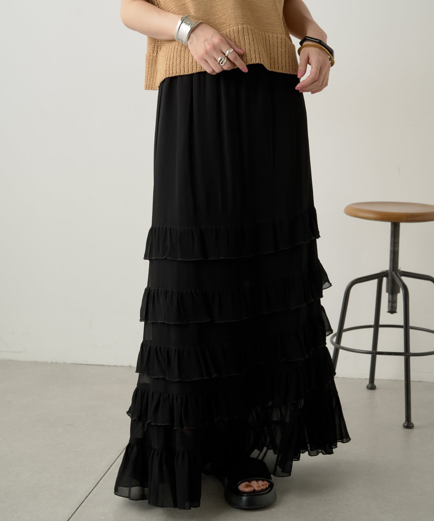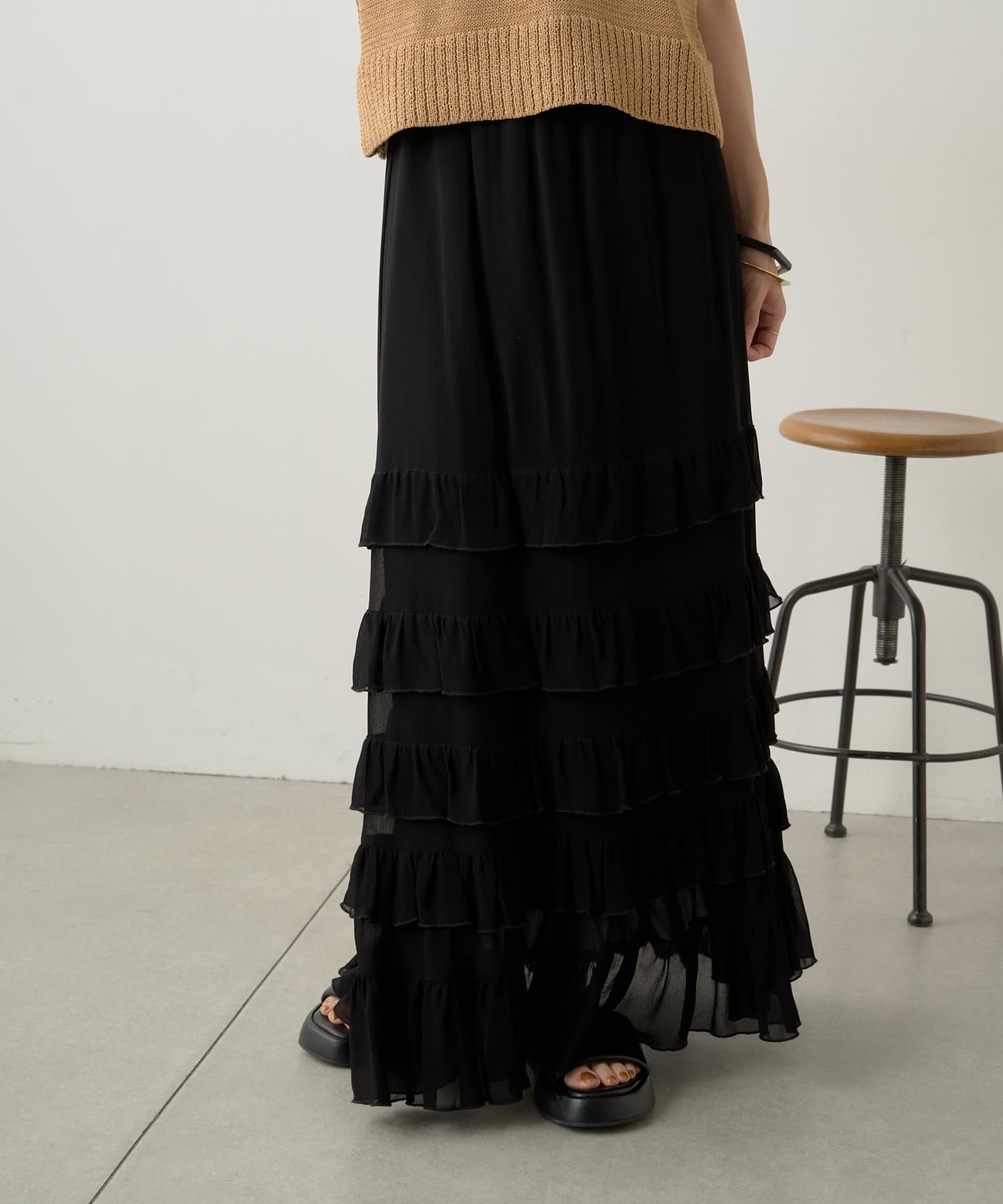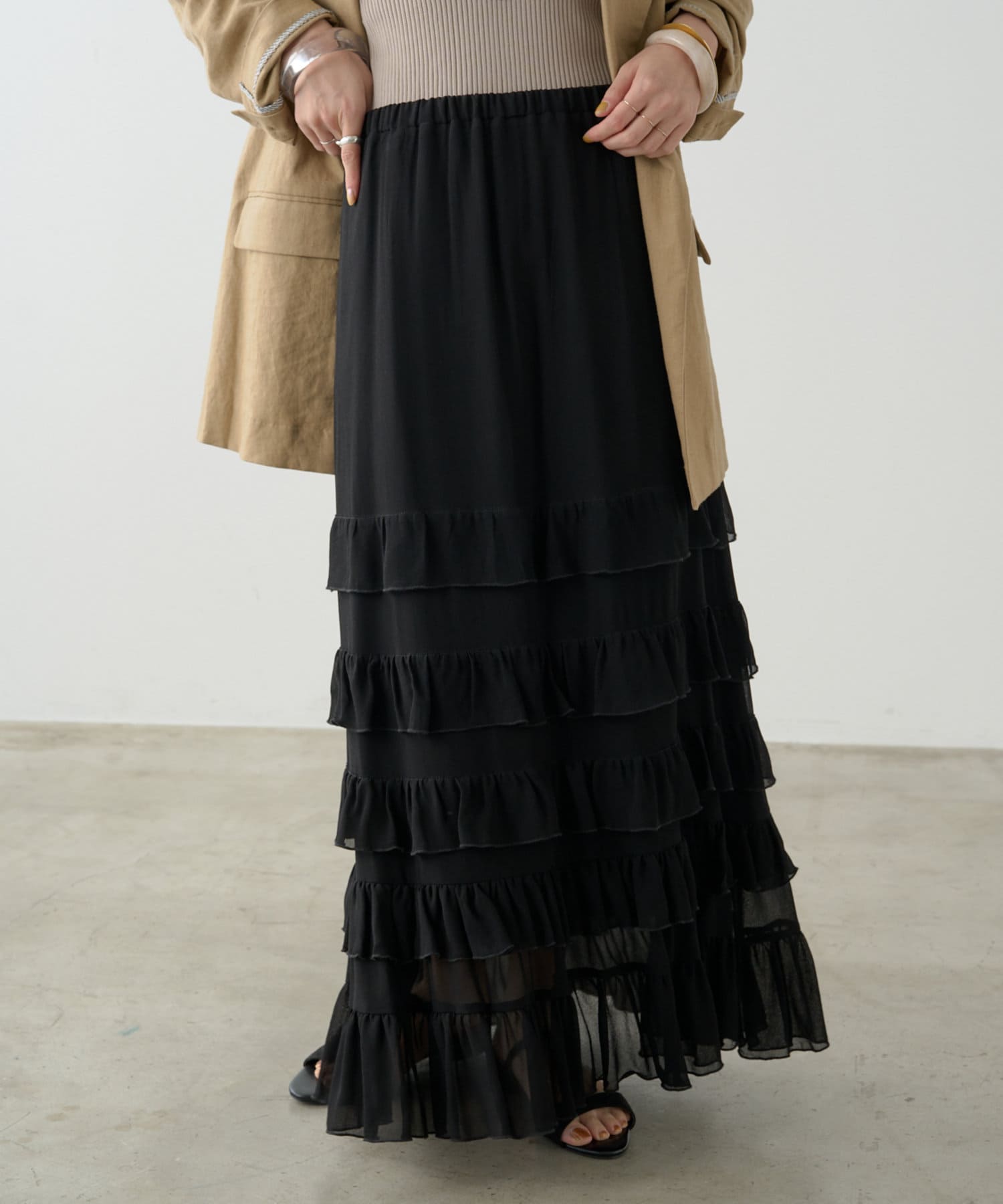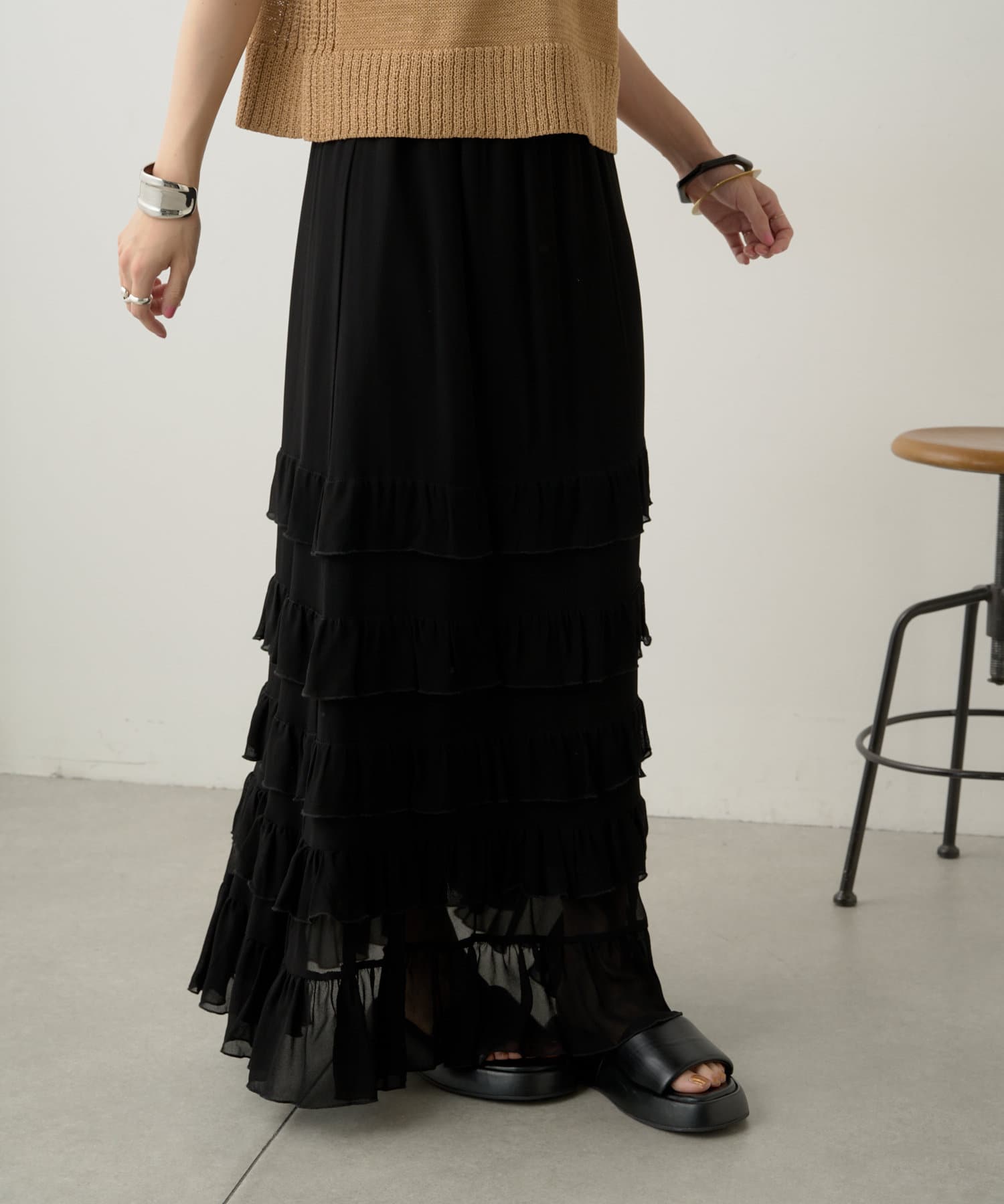 ・ふんわりと程よくボリューム感のあるティアードデザインがコーデに華やかさをもたらす一枚