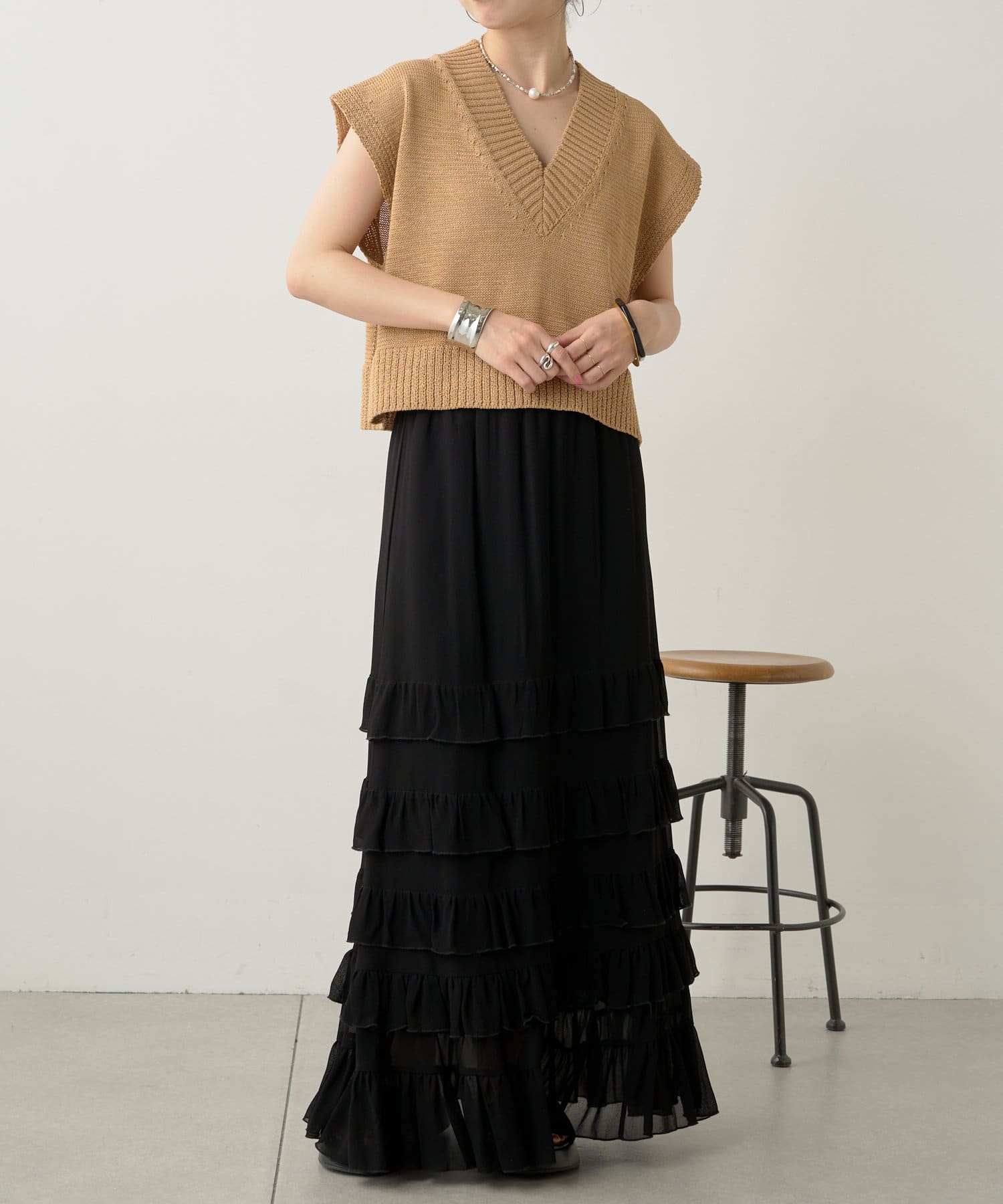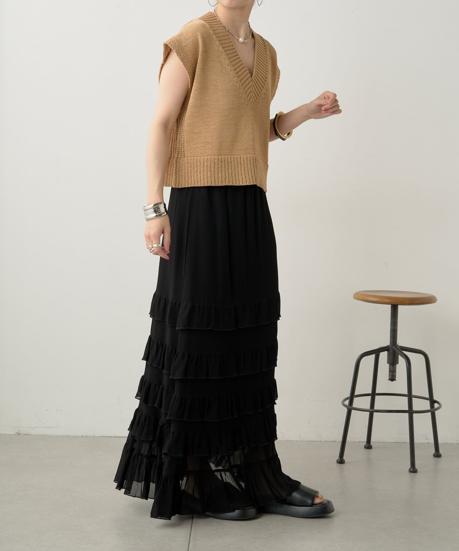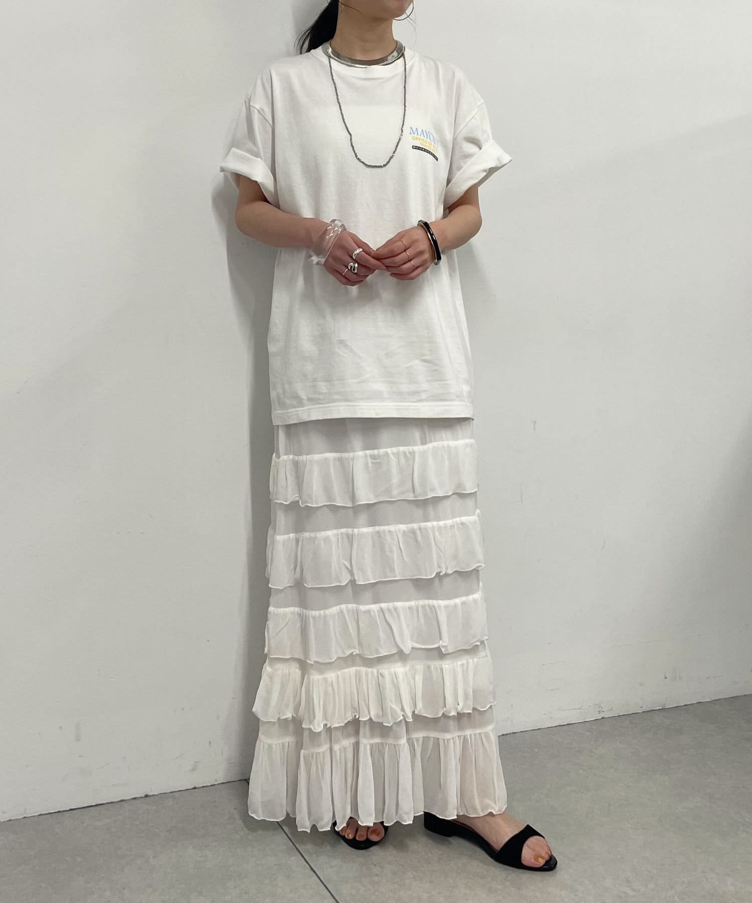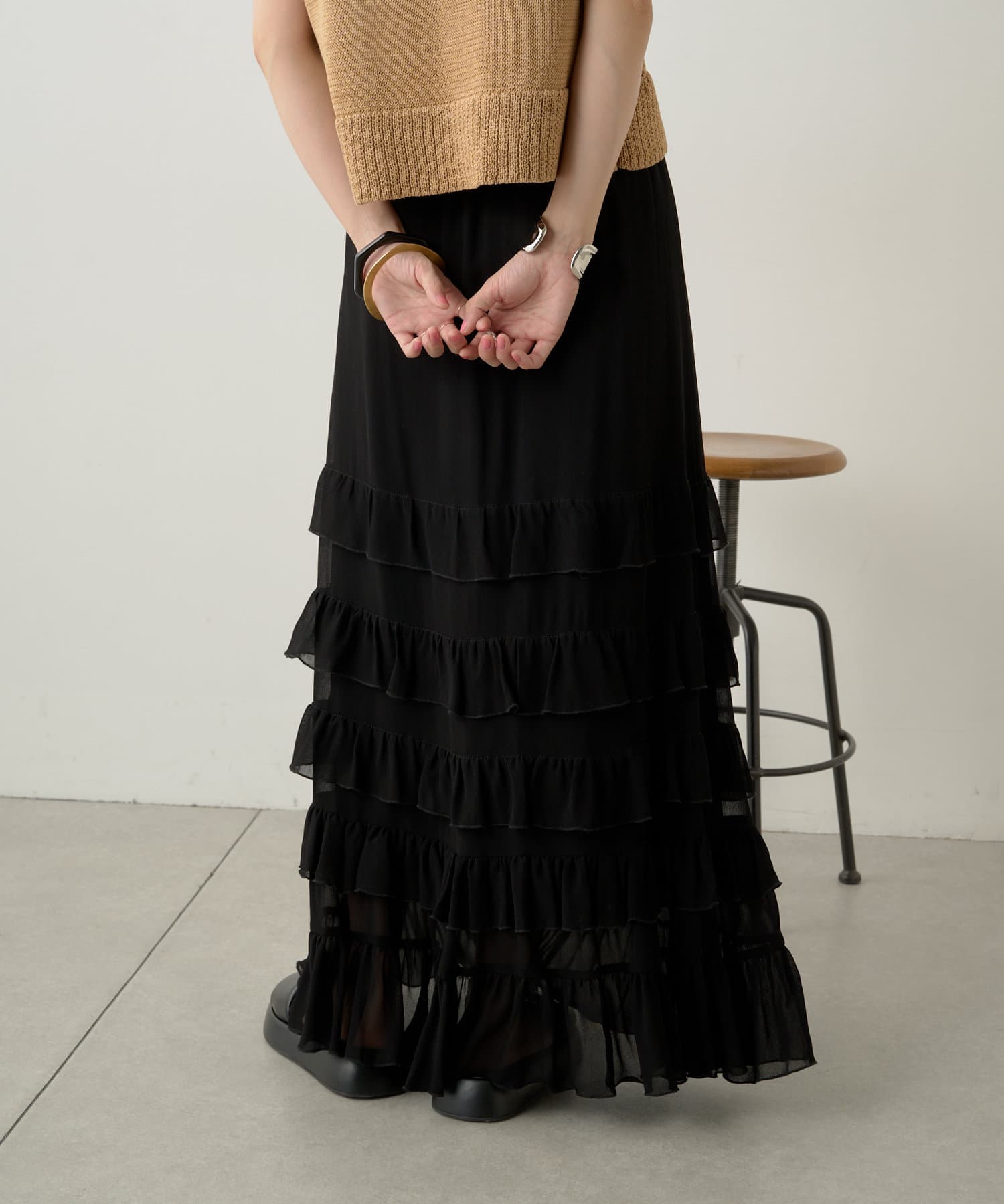 ・ふんわりと程よくボリューム感のあるティアードデザインがコーデに華やかさをもたらす一枚