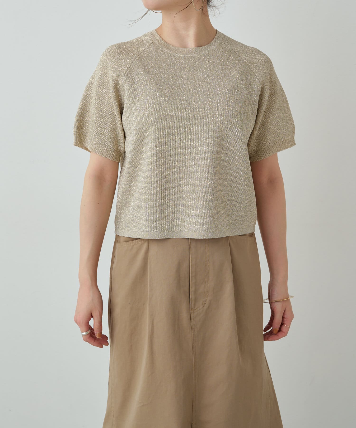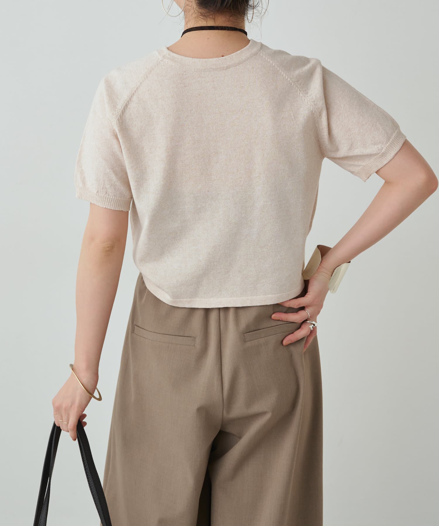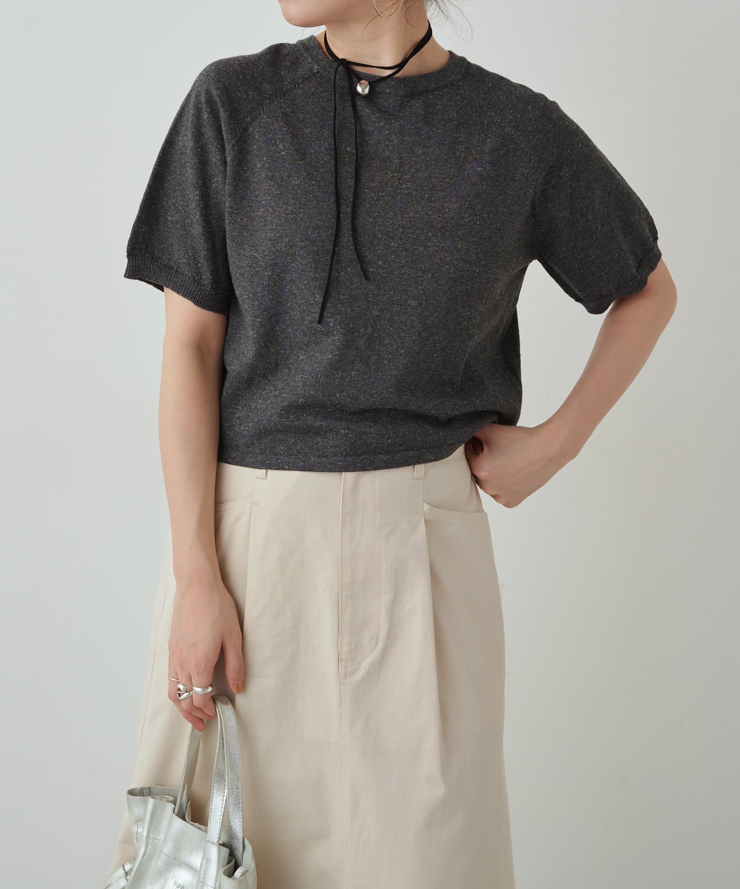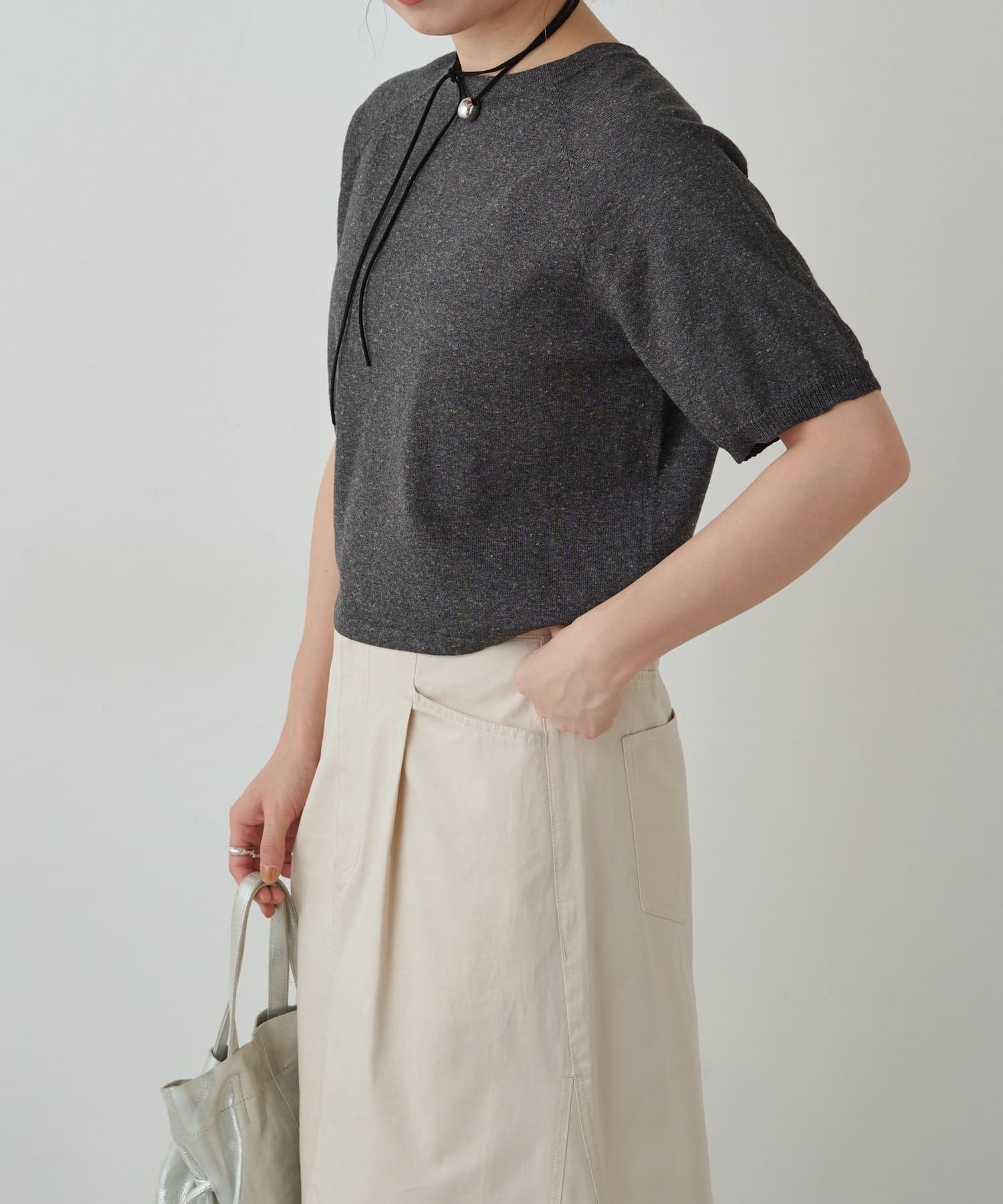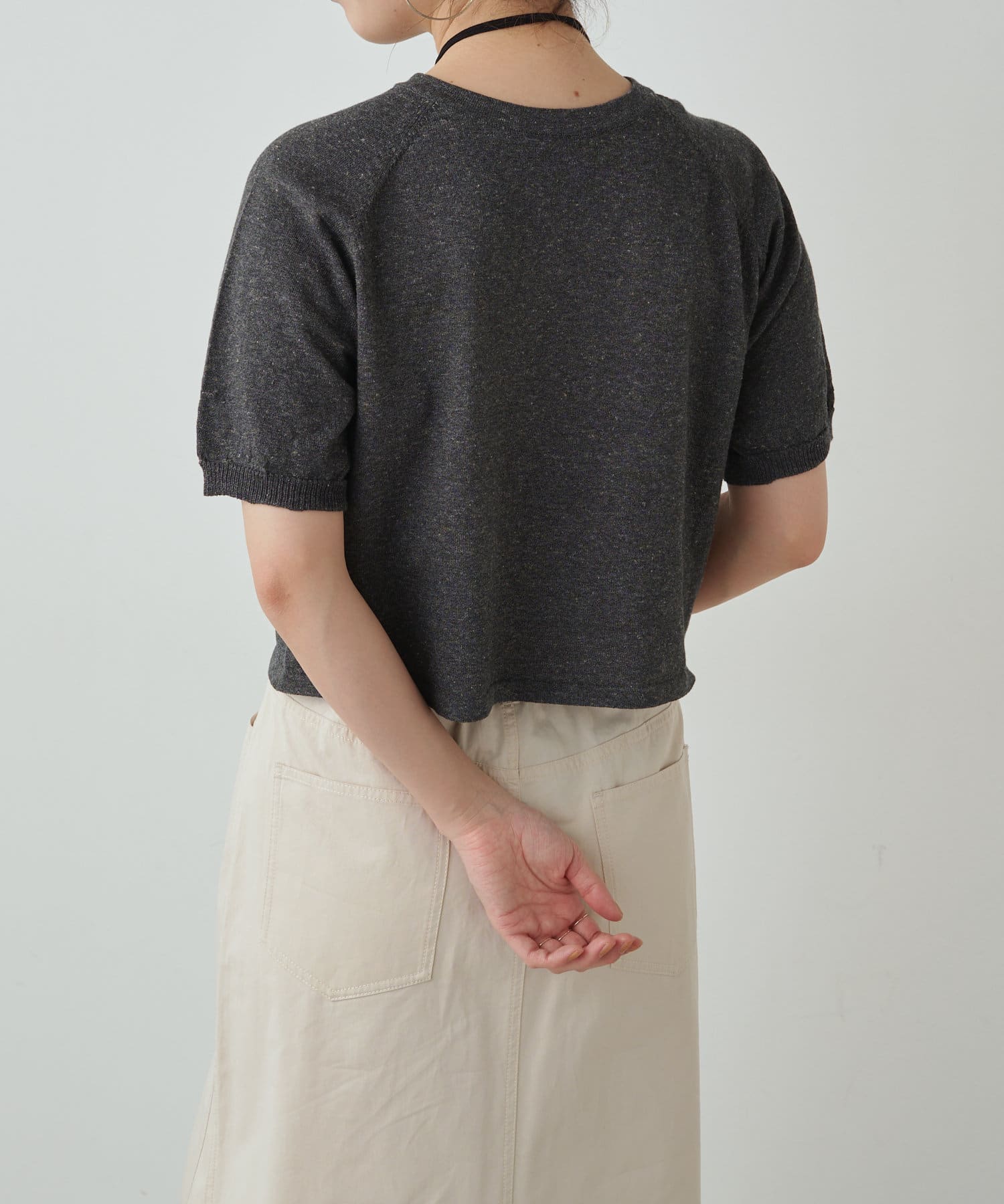 ・程よく身体に馴染むサイズ感とラグランスリーブで華奢見えも叶うサマーニットです。