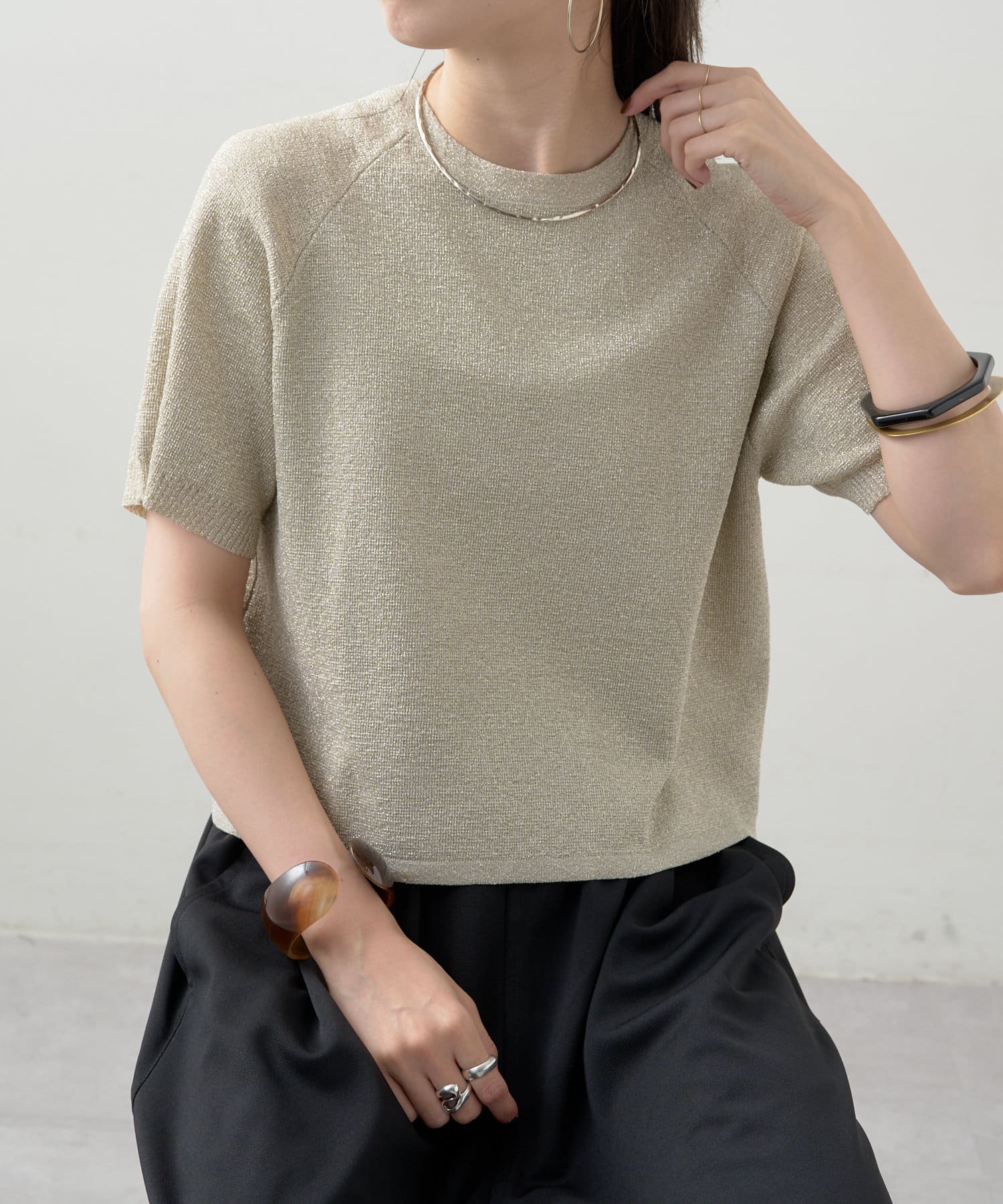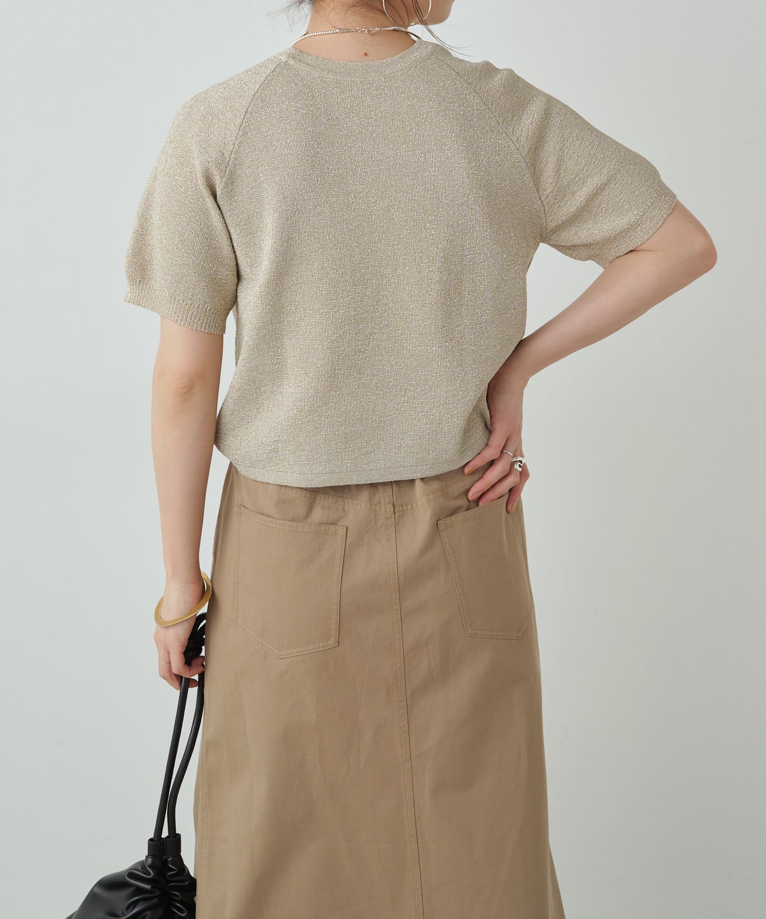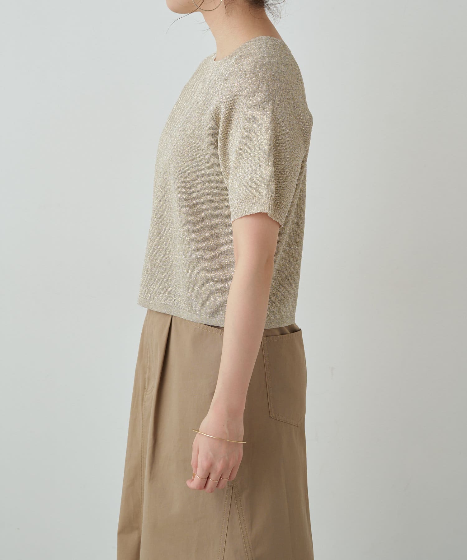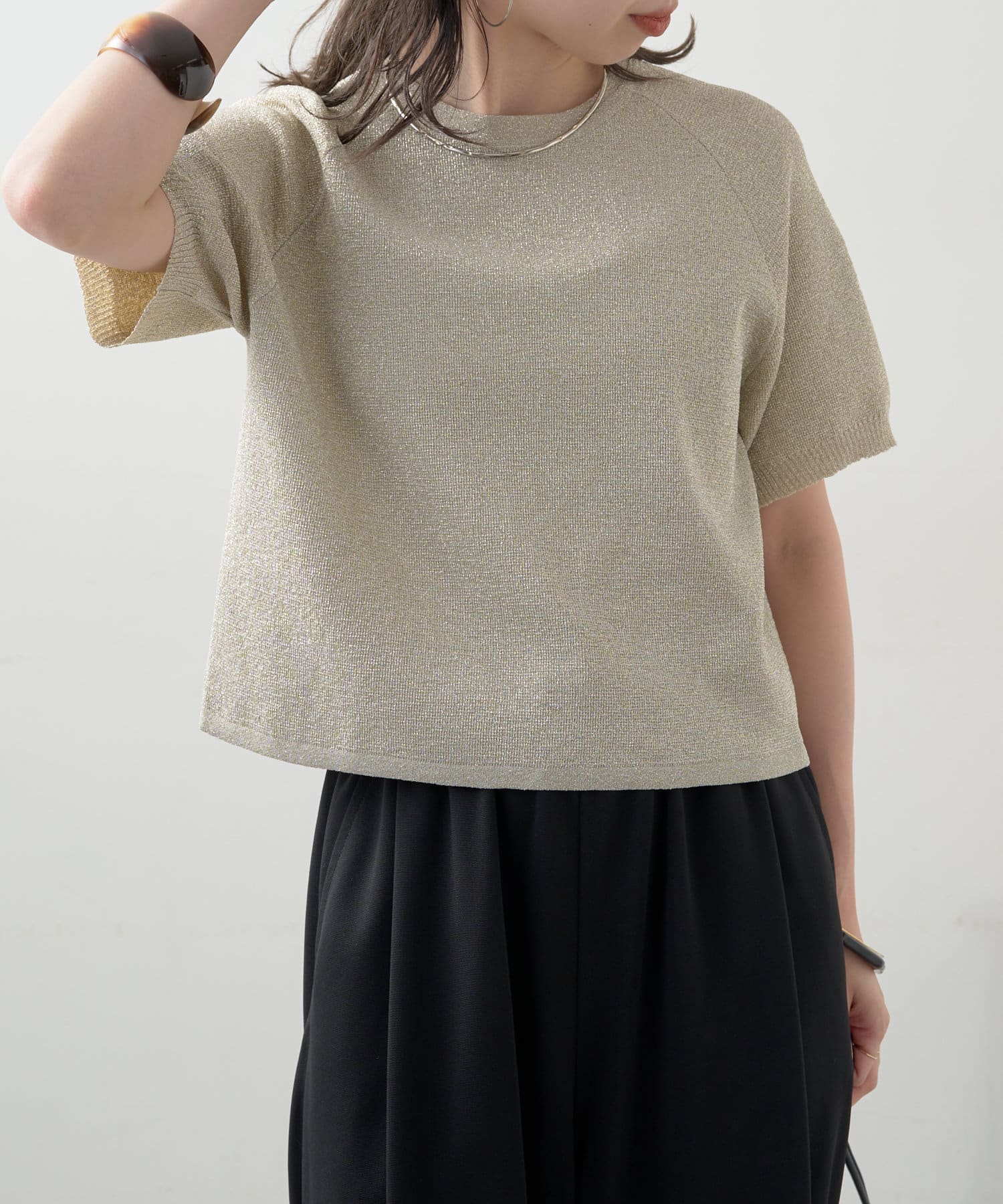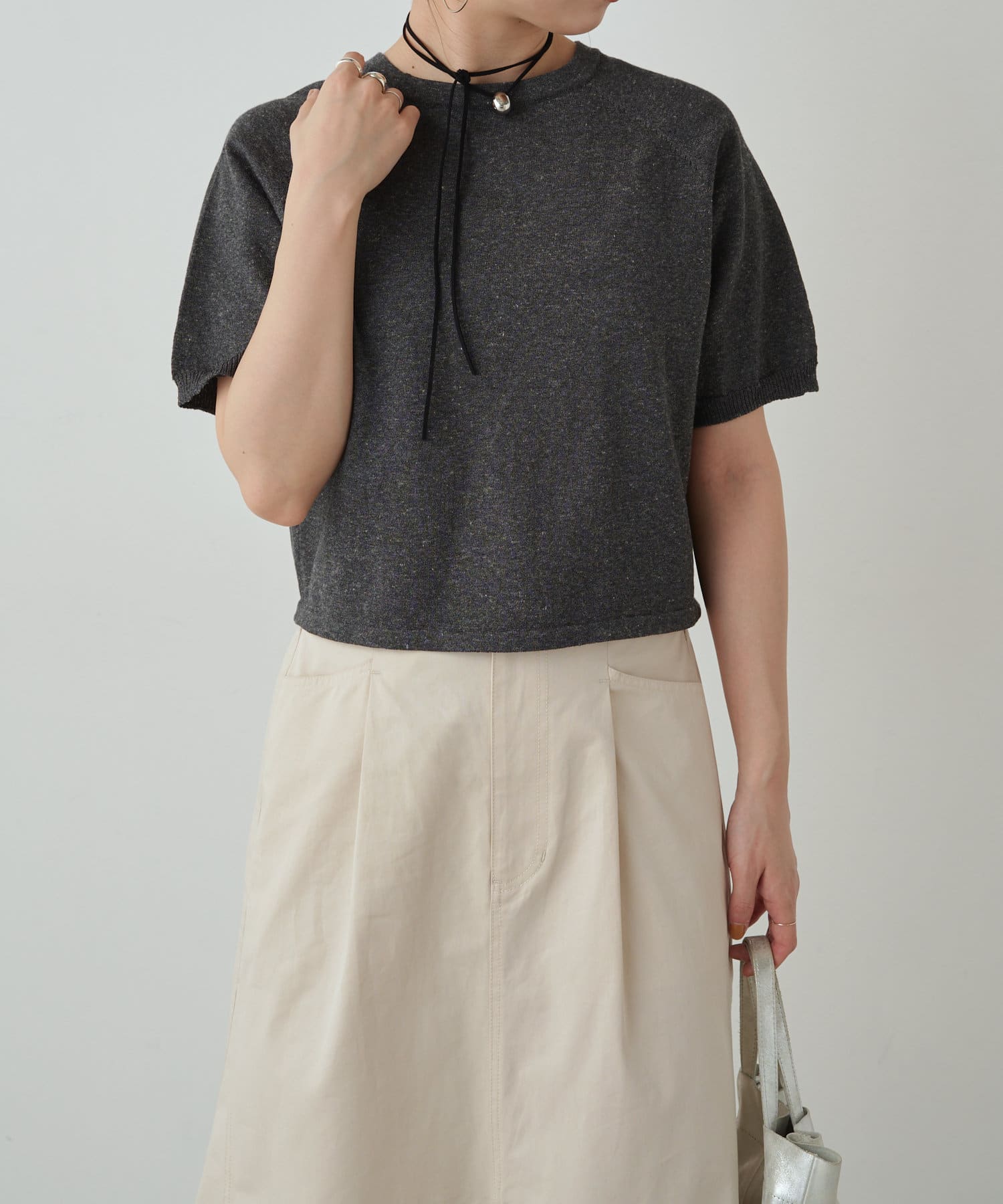・程よく身体に馴染むサイズ感とラグランスリーブで華奢見えも叶うサマーニットです。