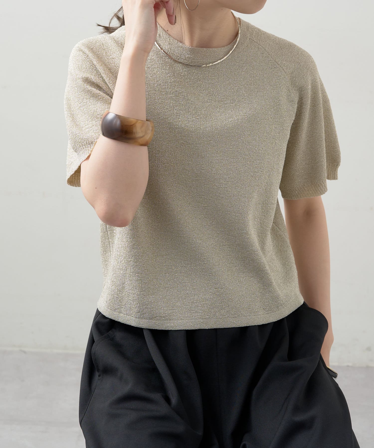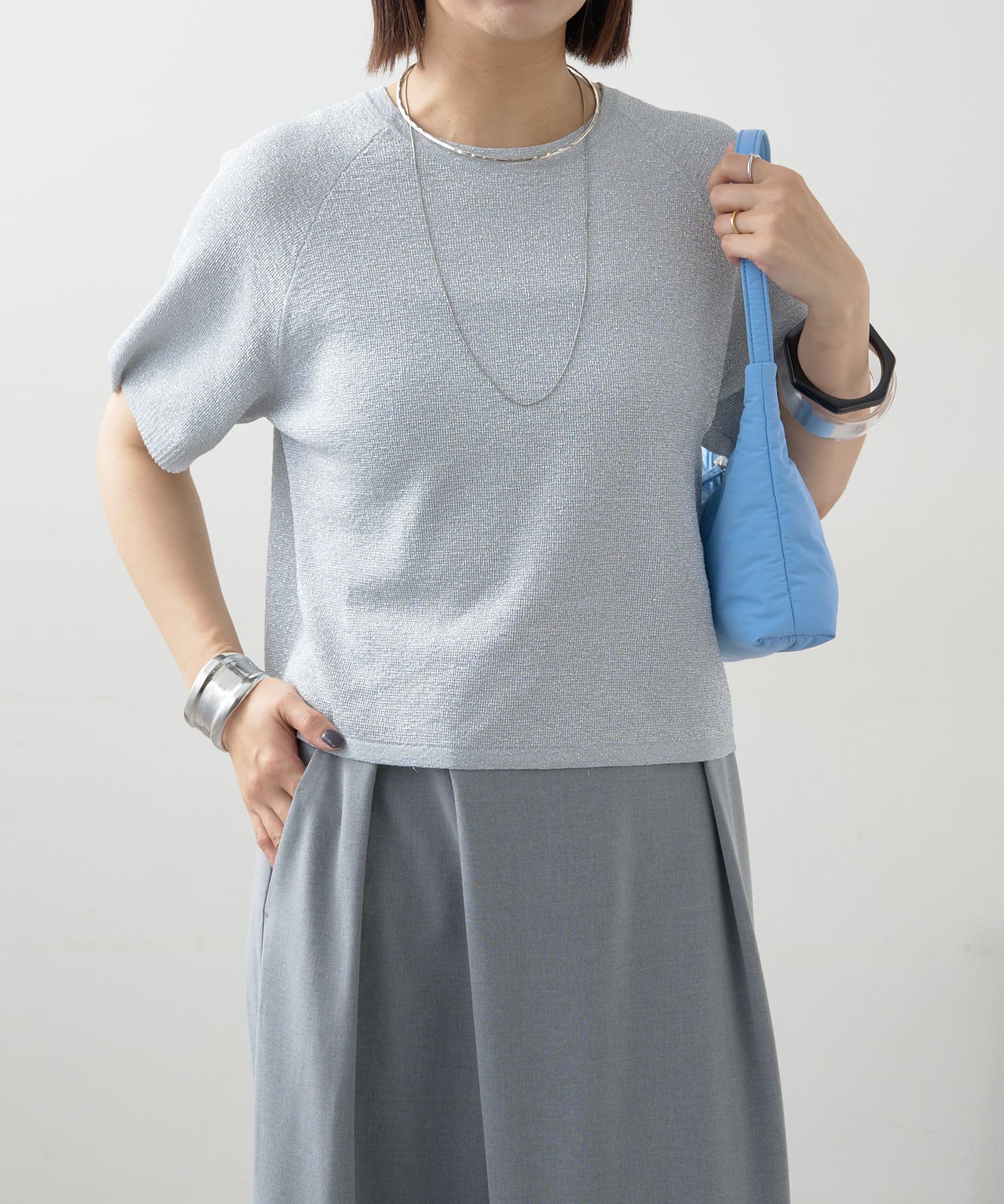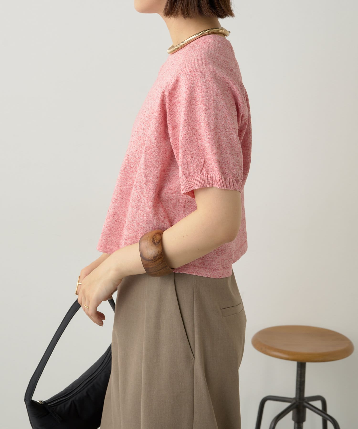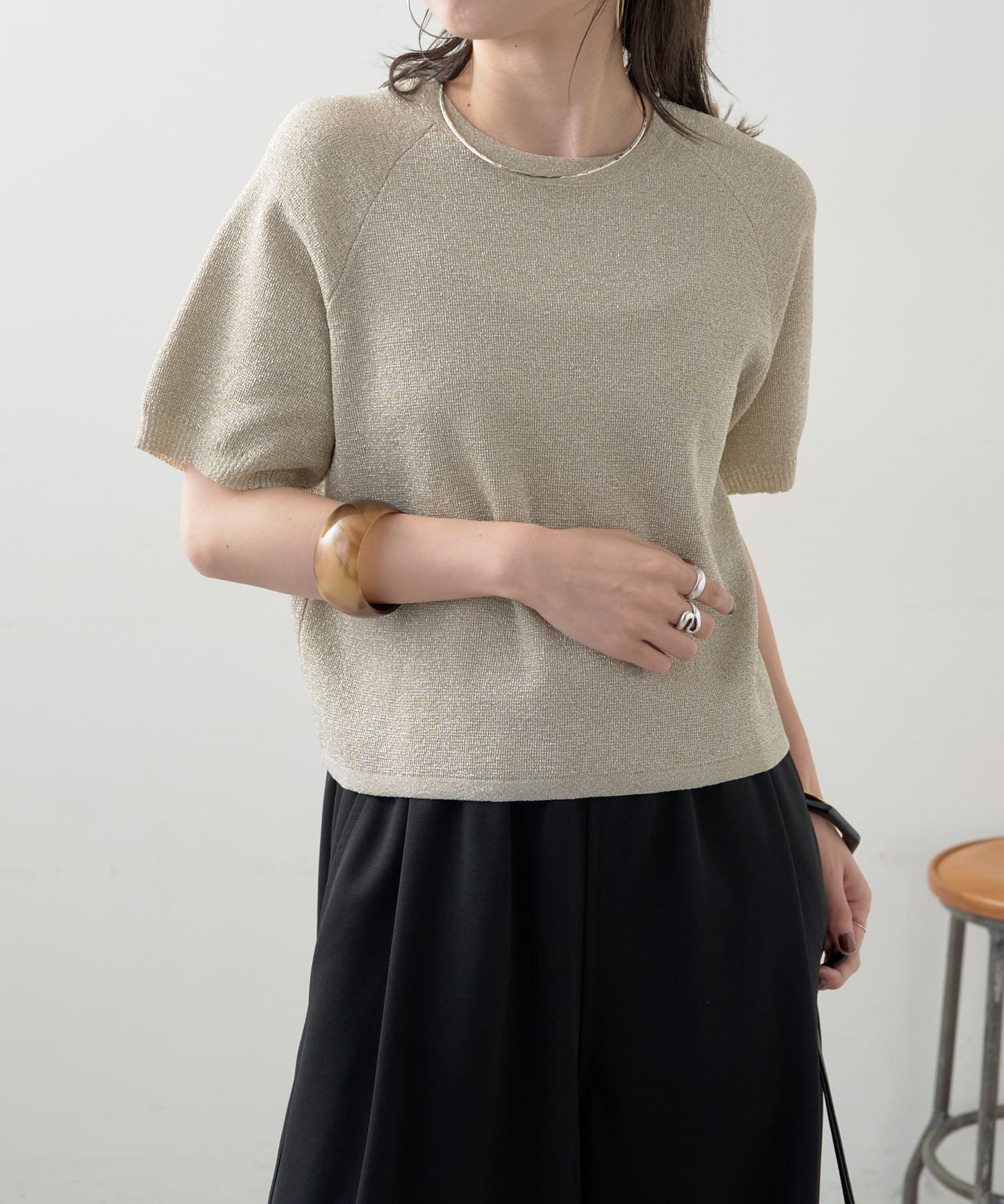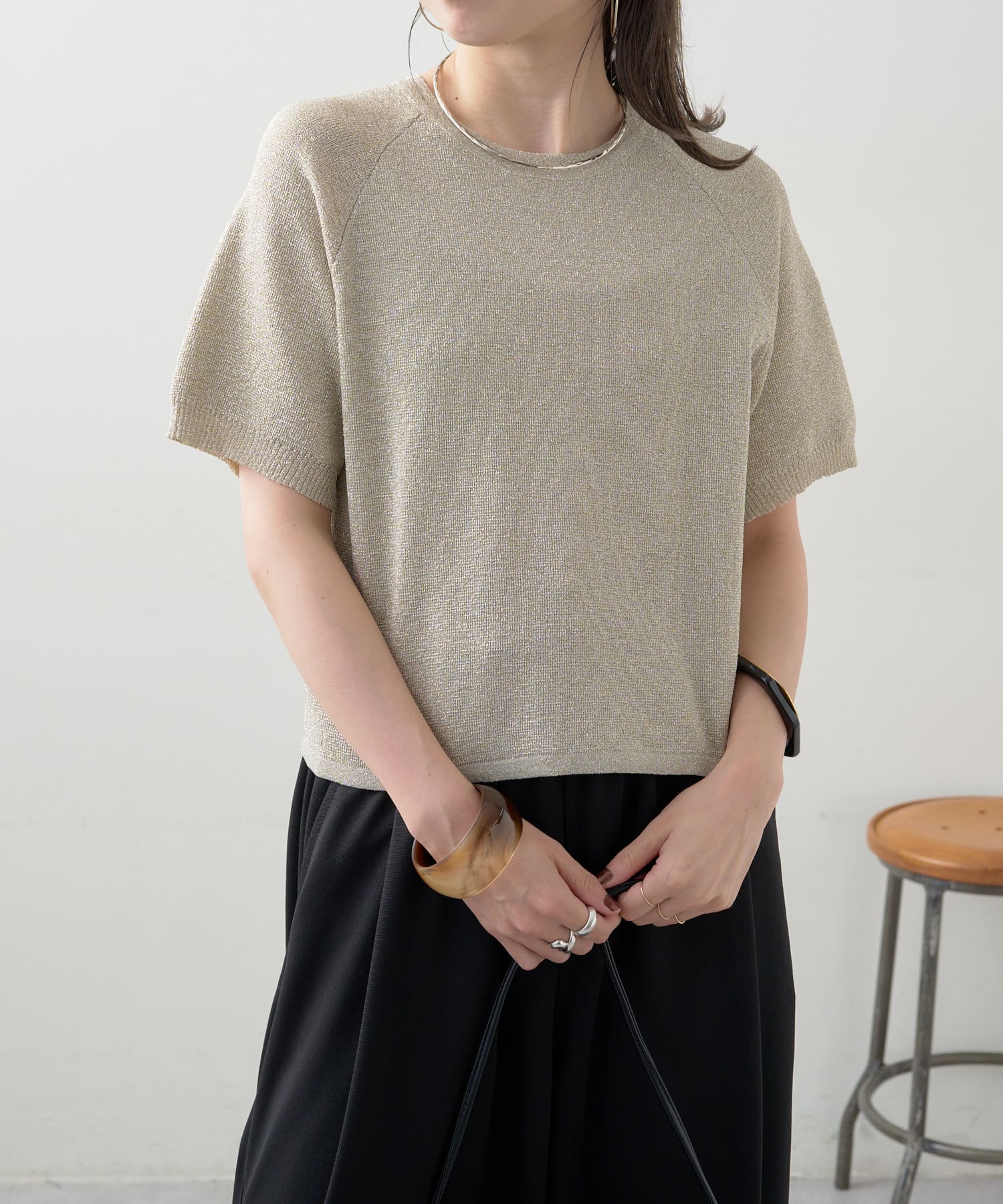 ・程よく身体に馴染むサイズ感とラグランスリーブで華奢見えも叶うサマーニットです。