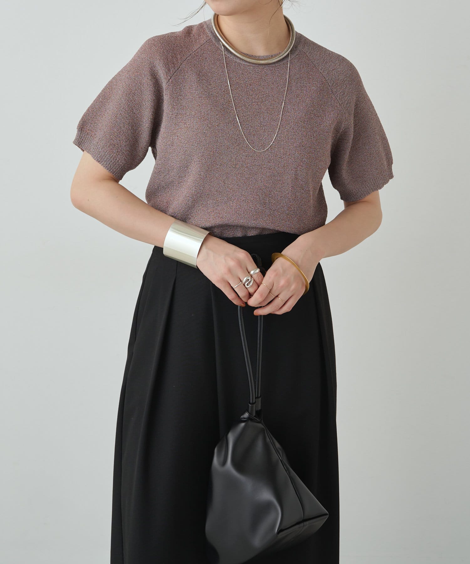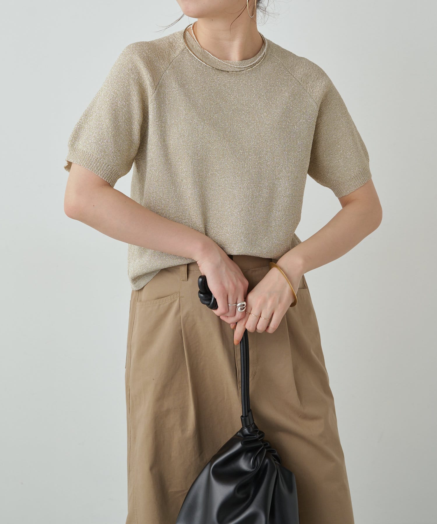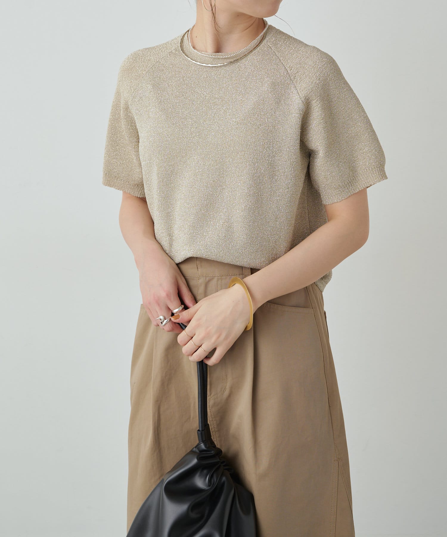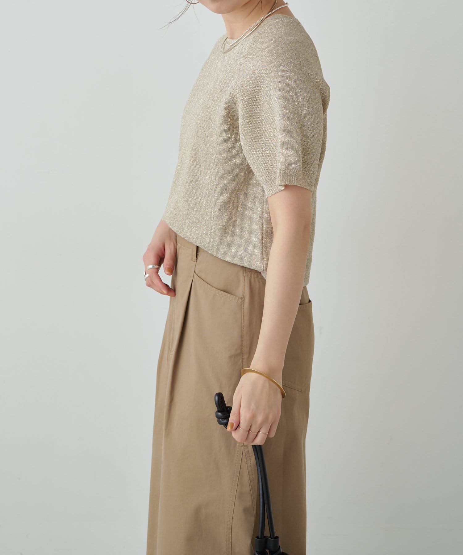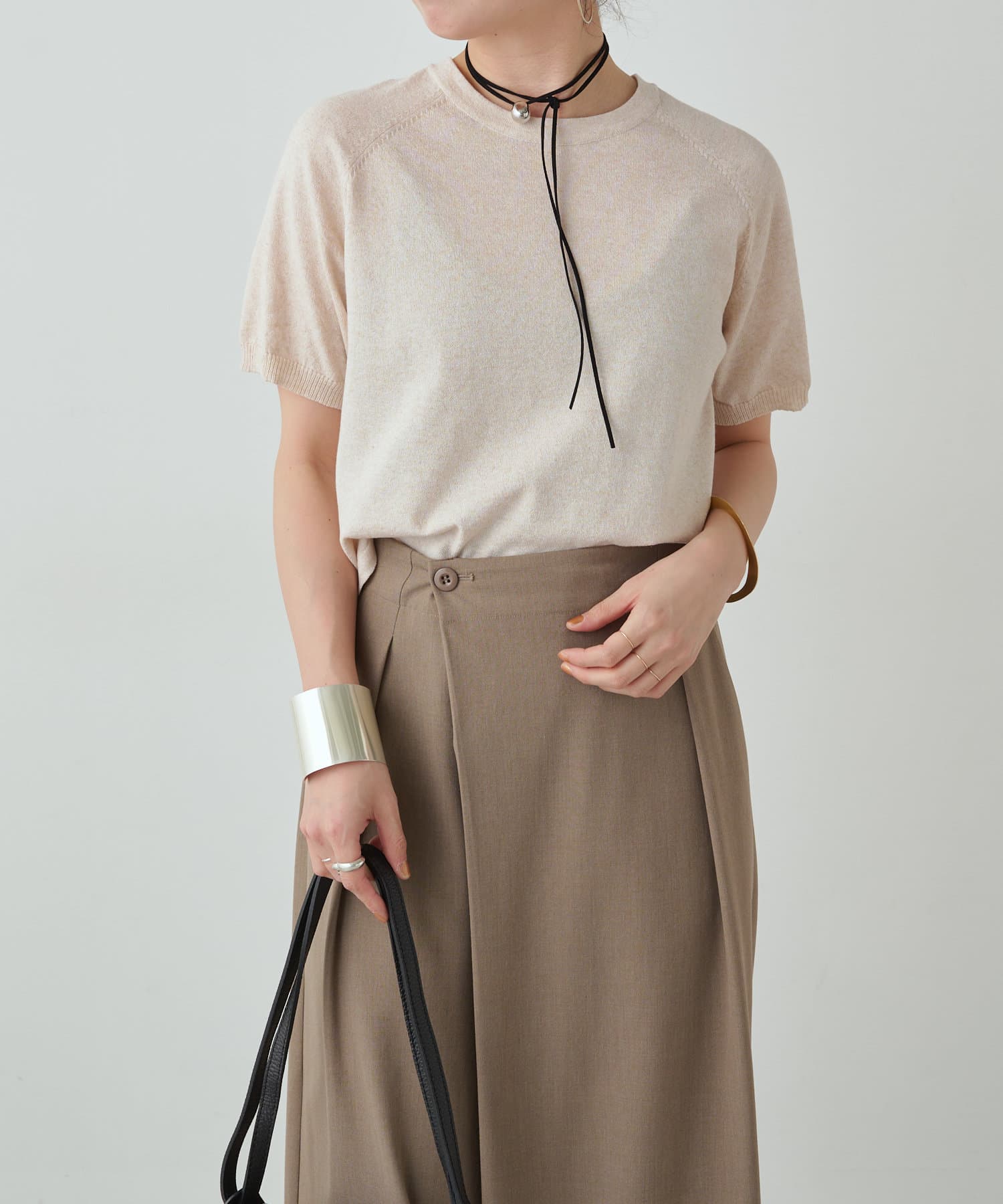 ・程よく身体に馴染むサイズ感とラグランスリーブで華奢見えも叶うサマーニットです。