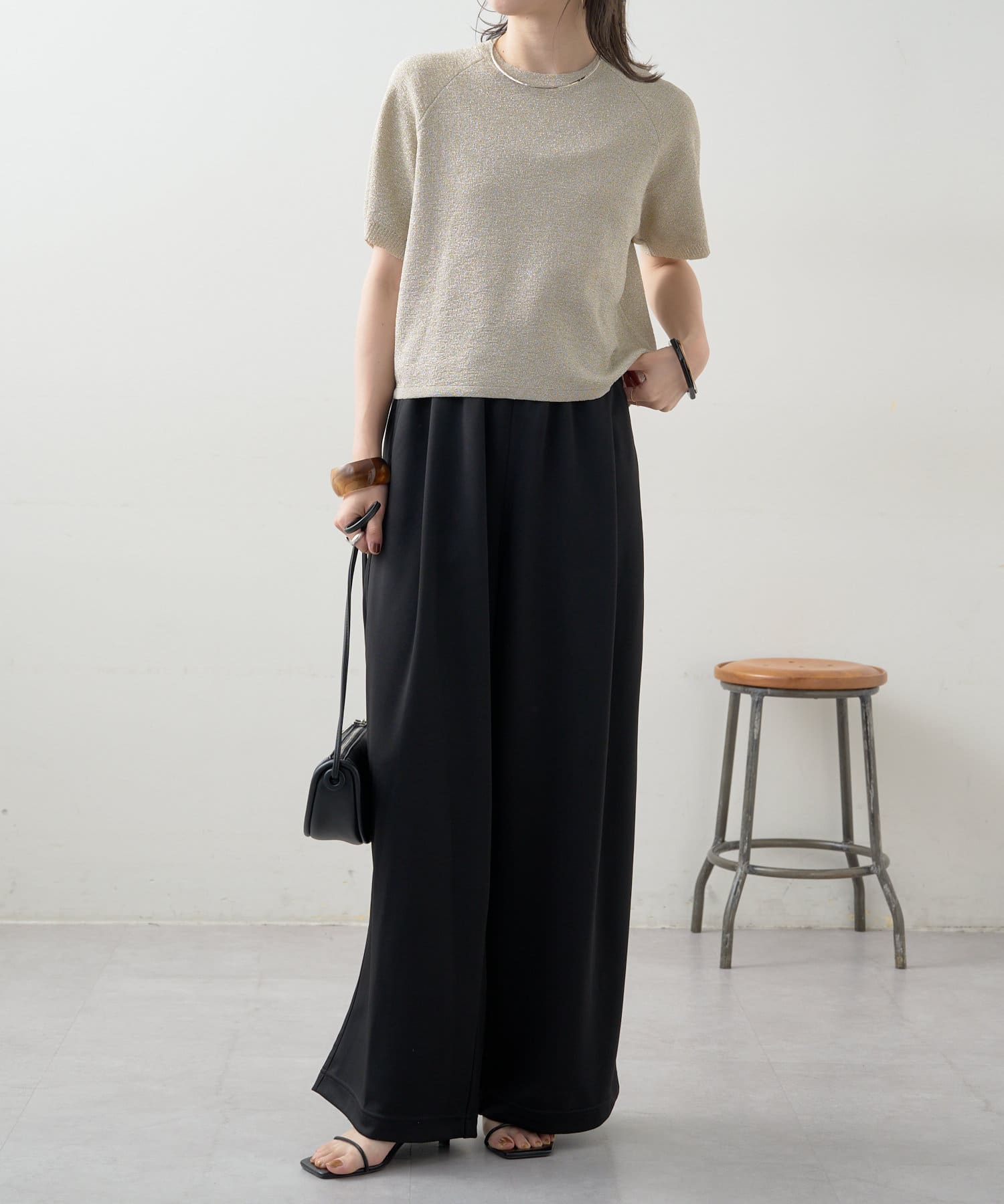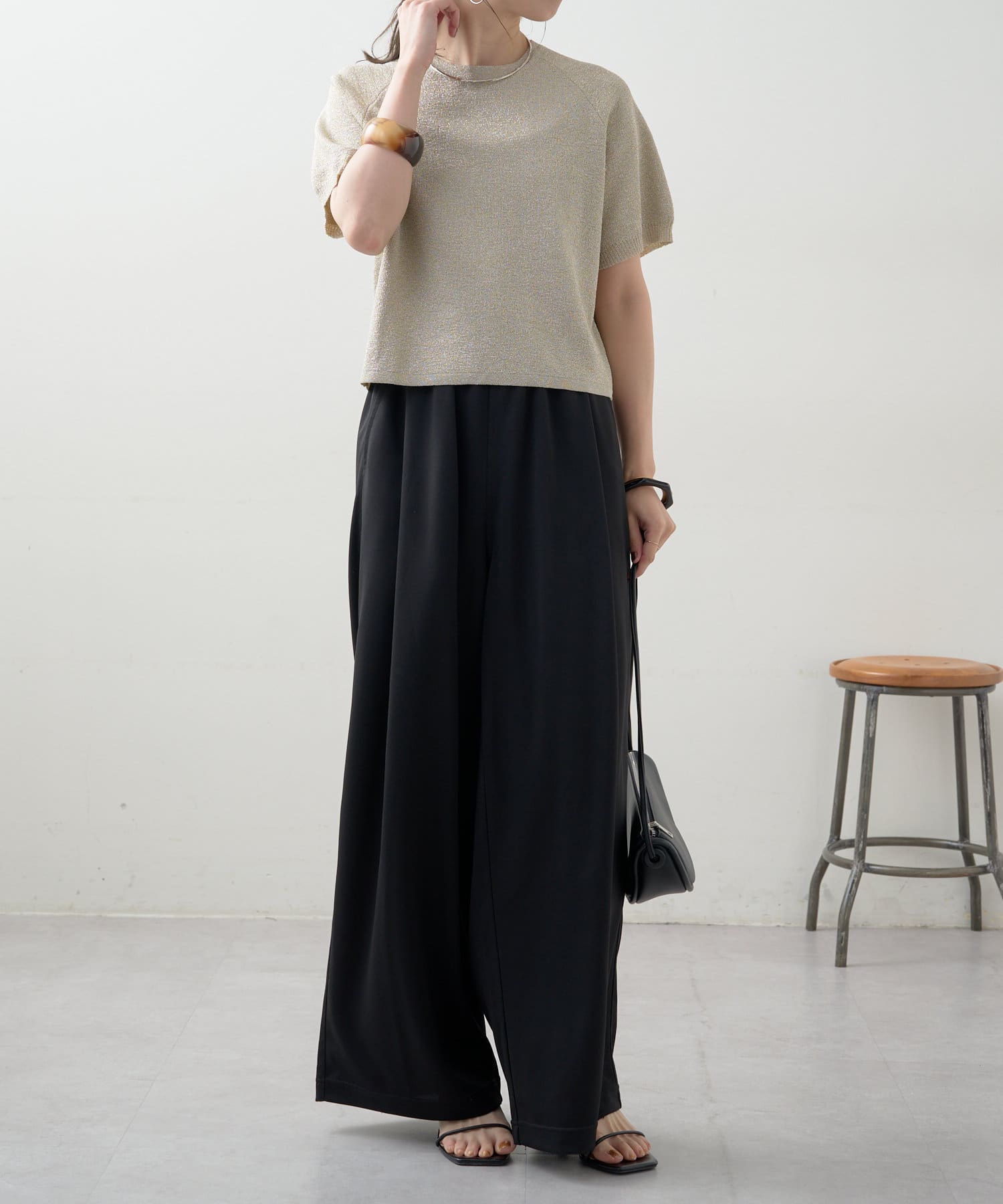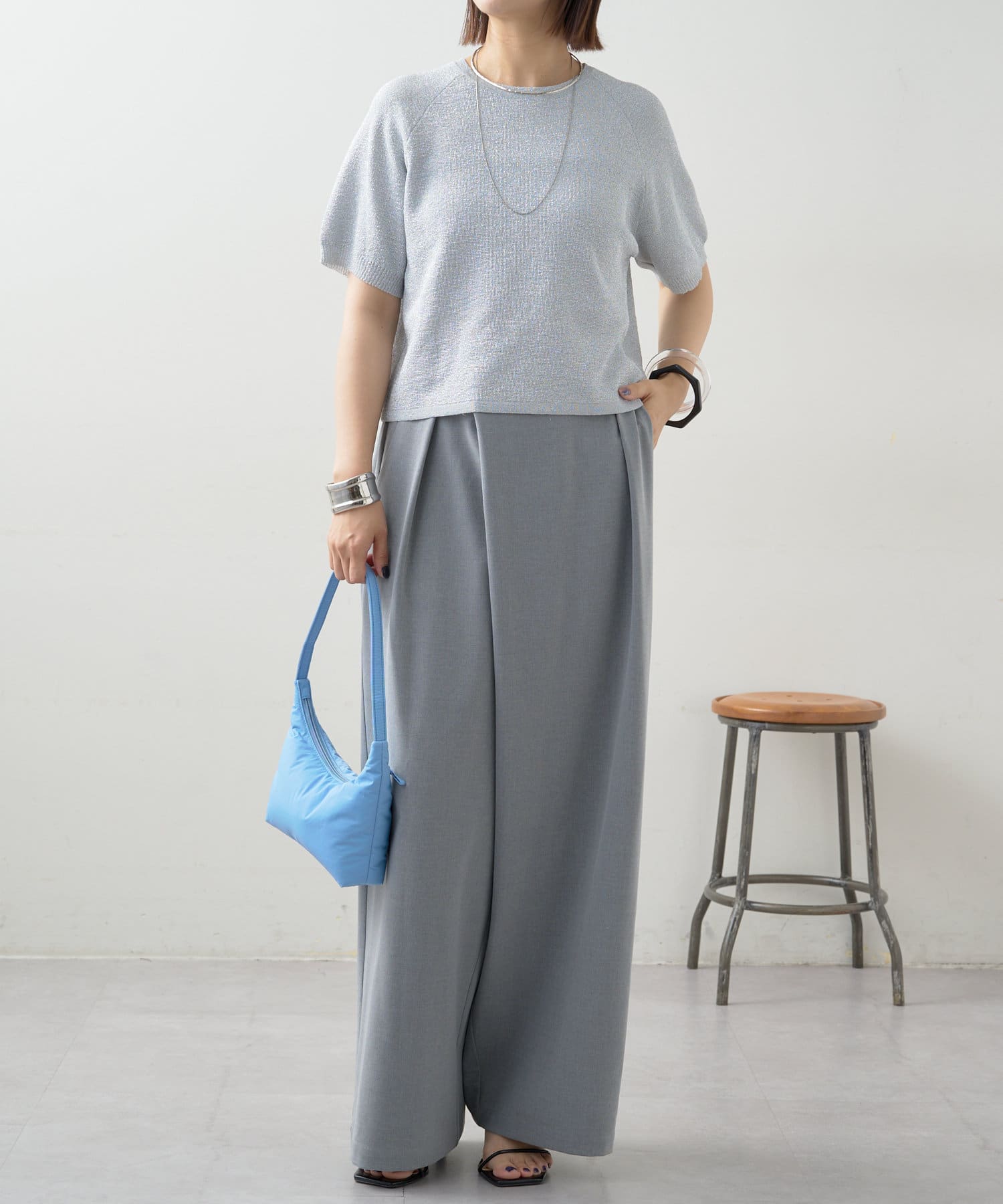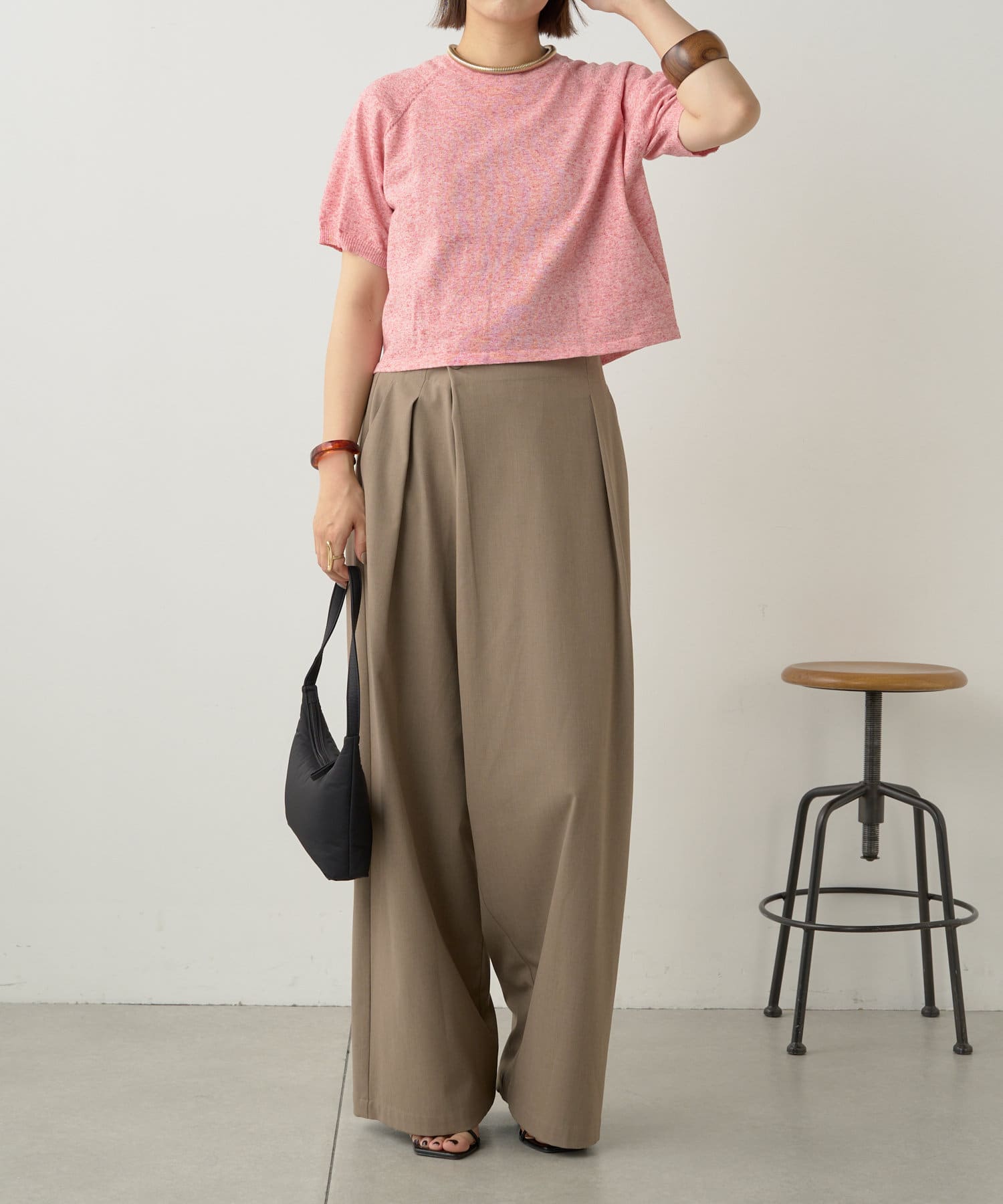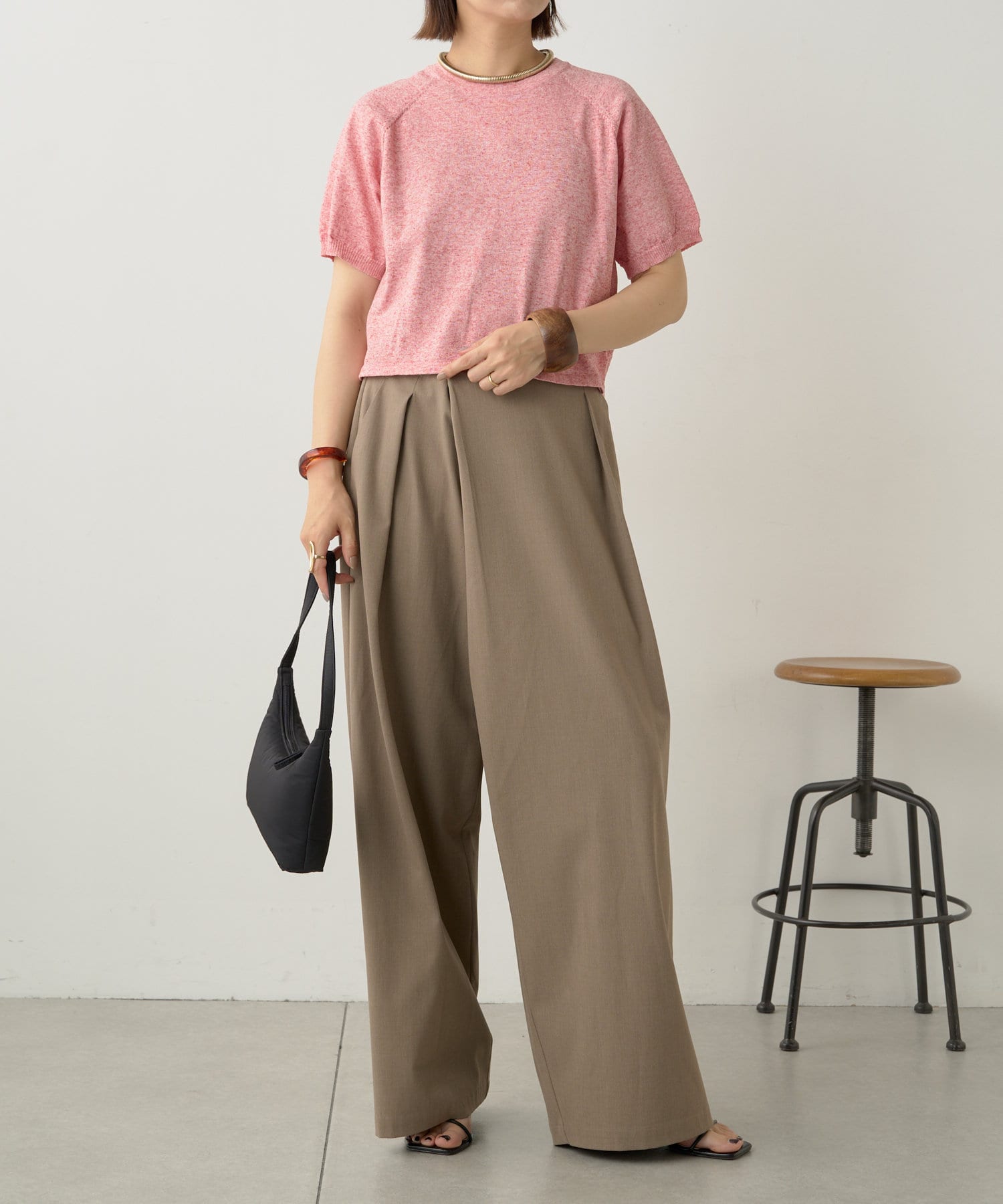 ・程よく身体に馴染むサイズ感とラグランスリーブで華奢見えも叶うサマーニットです。