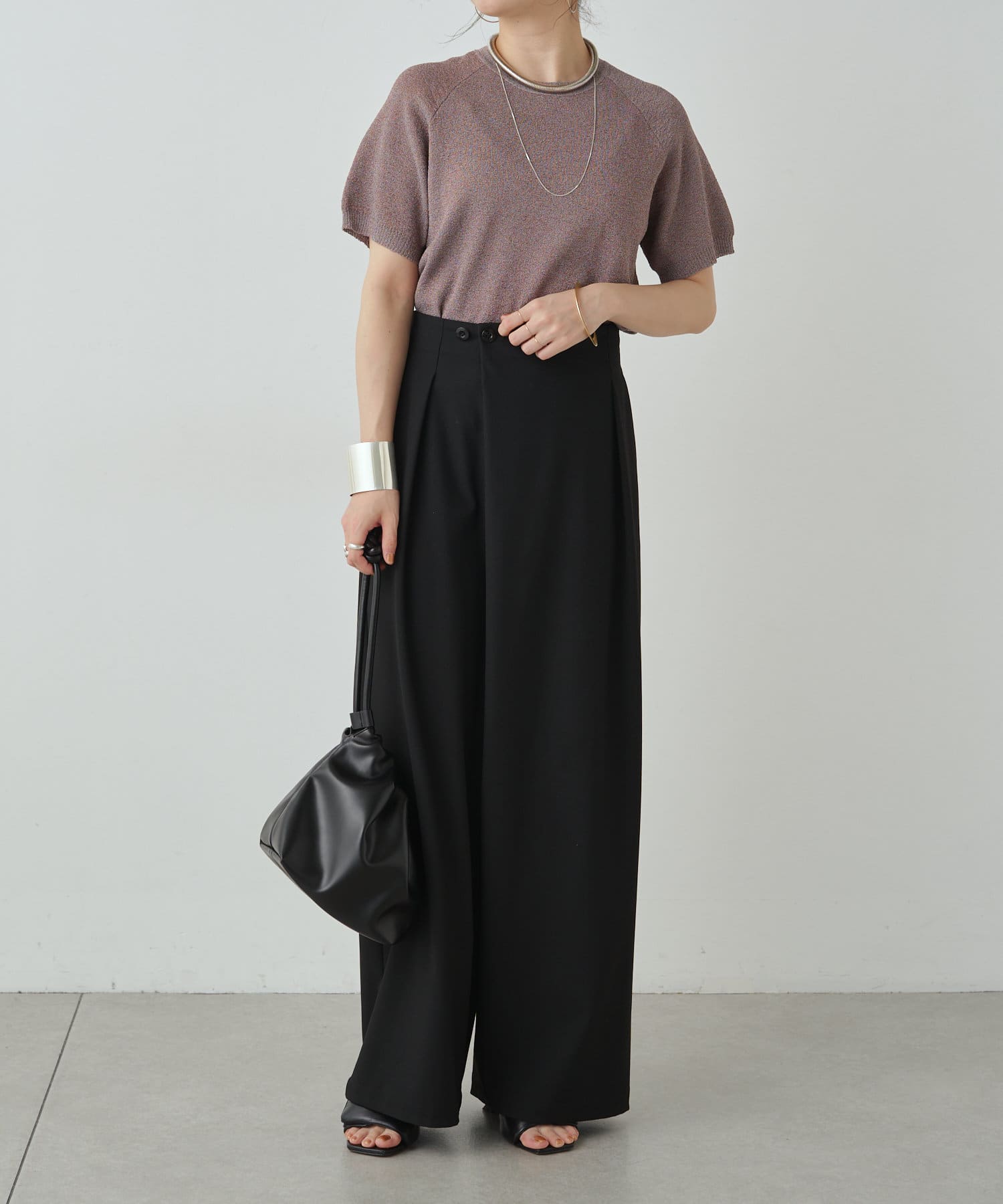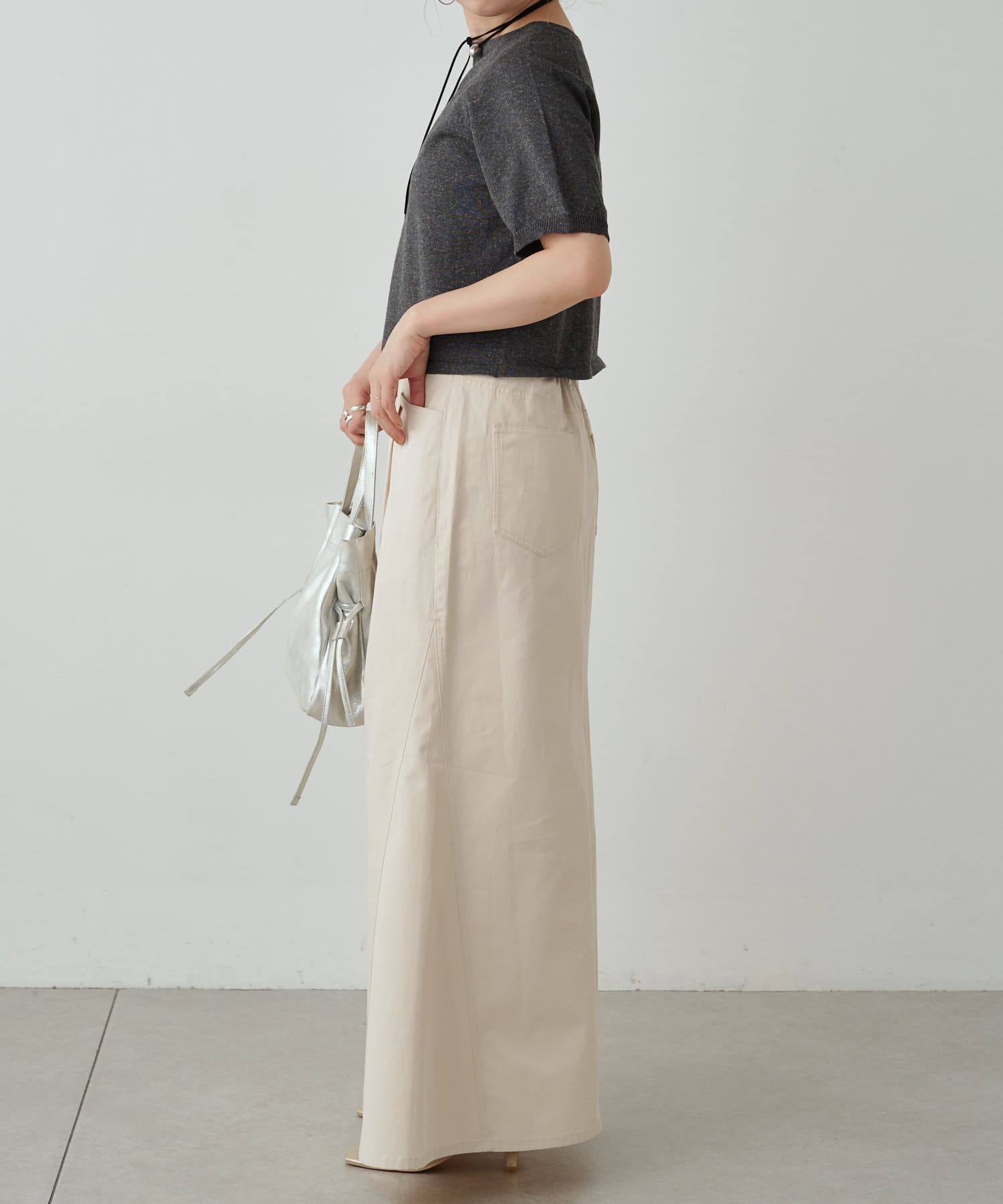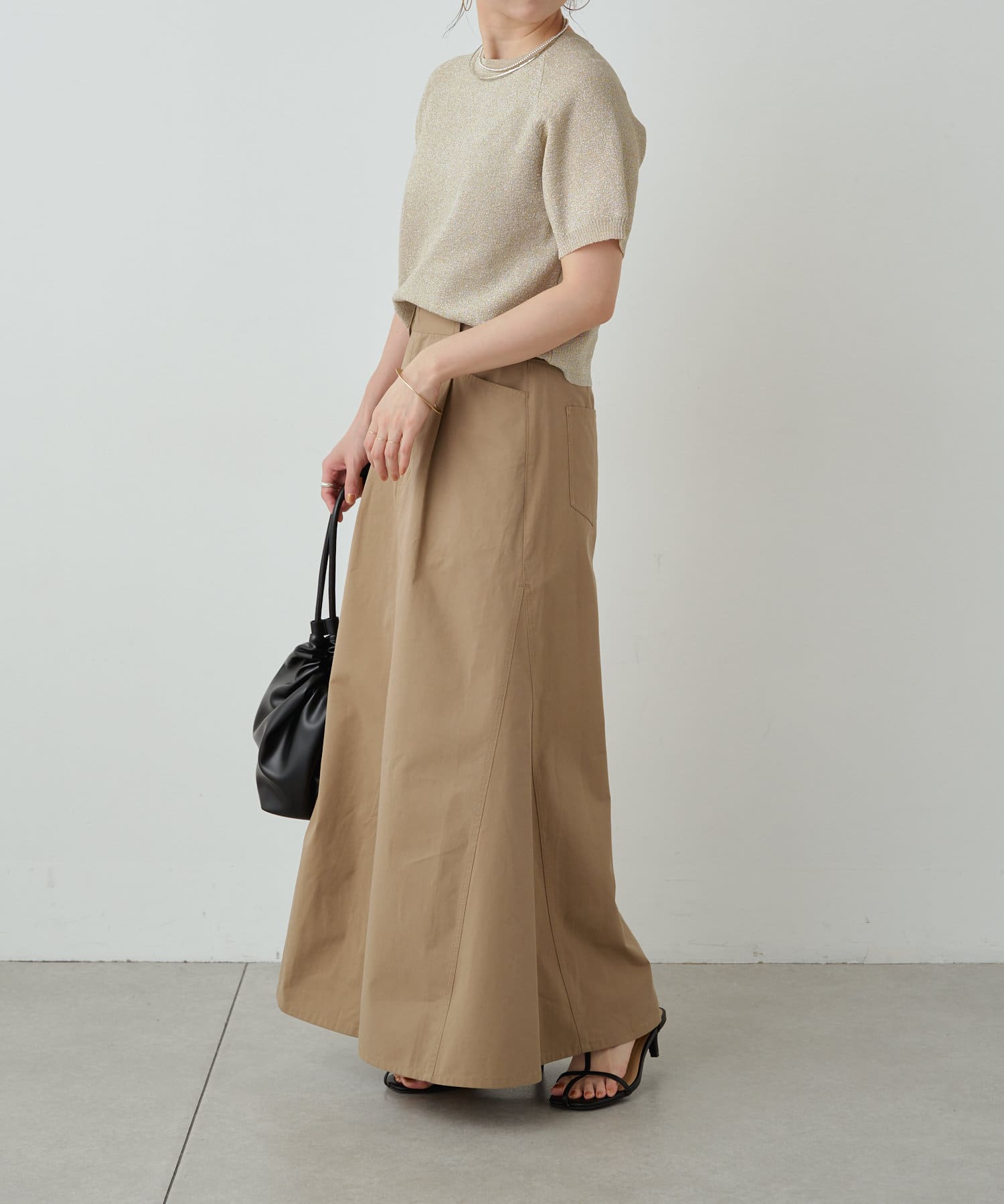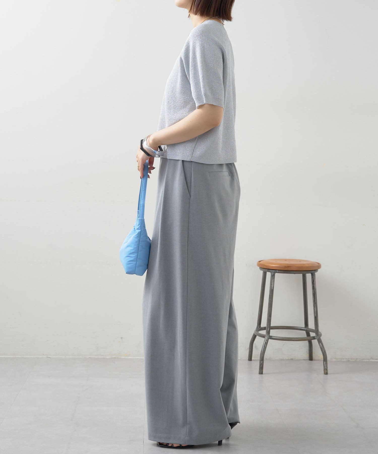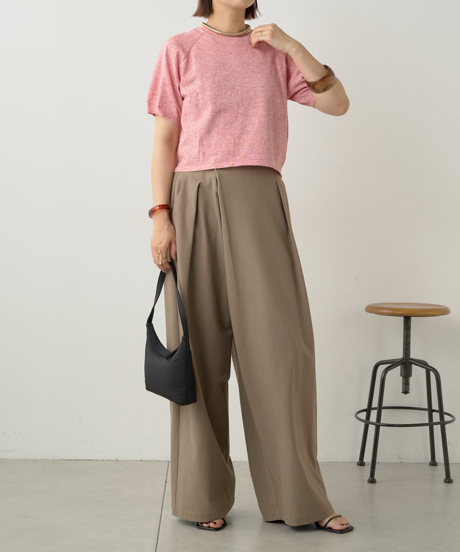 ・程よく身体に馴染むサイズ感とラグランスリーブで華奢見えも叶うサマーニットです。