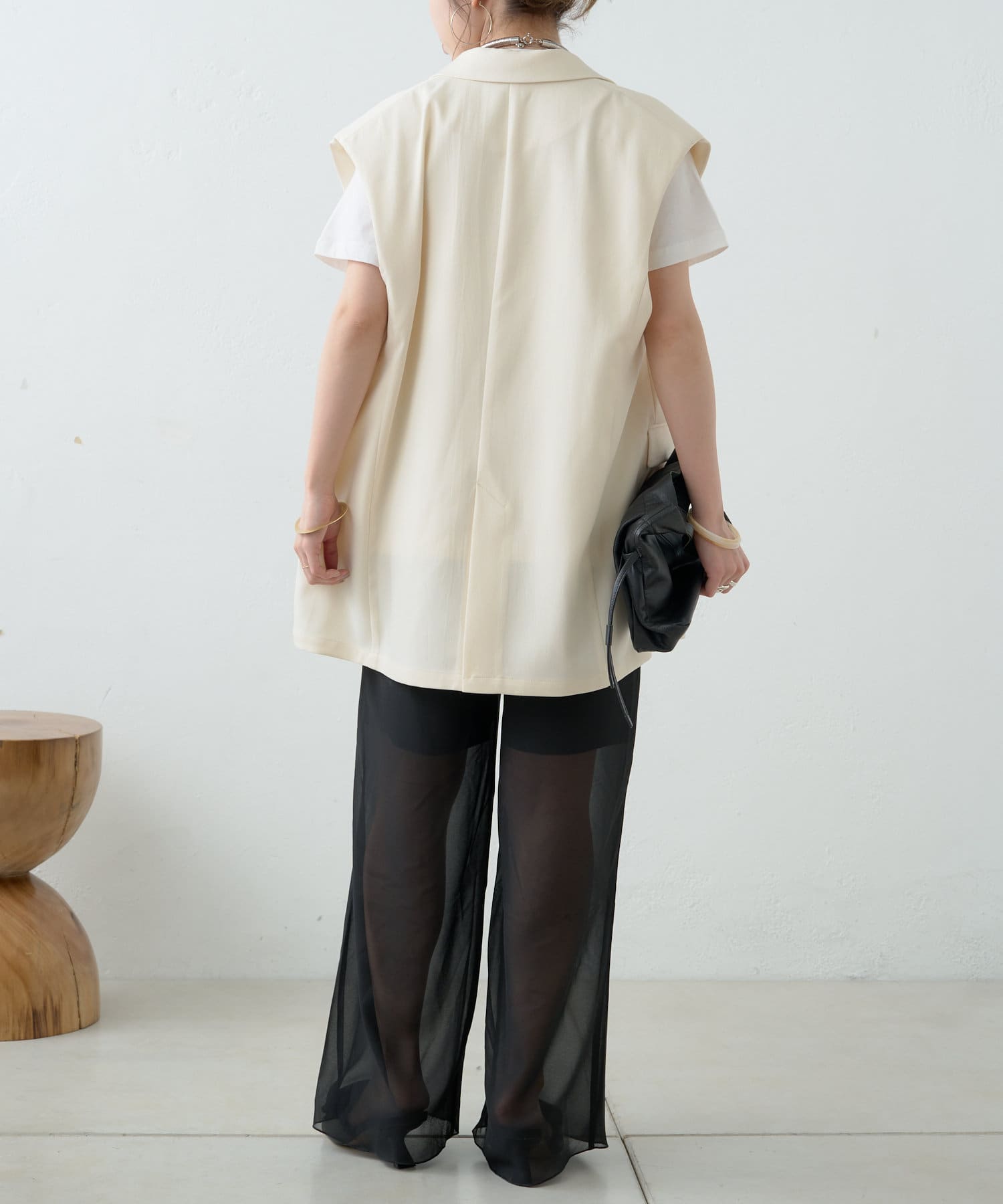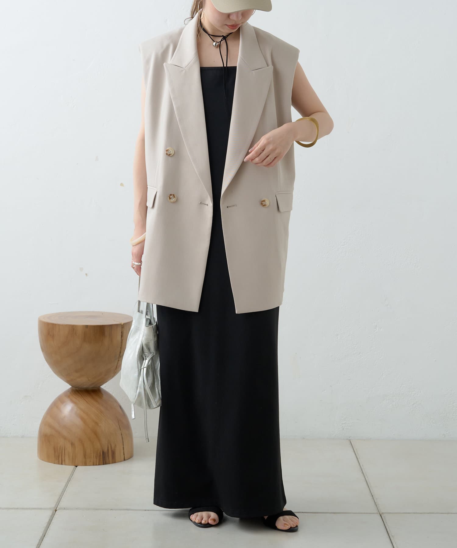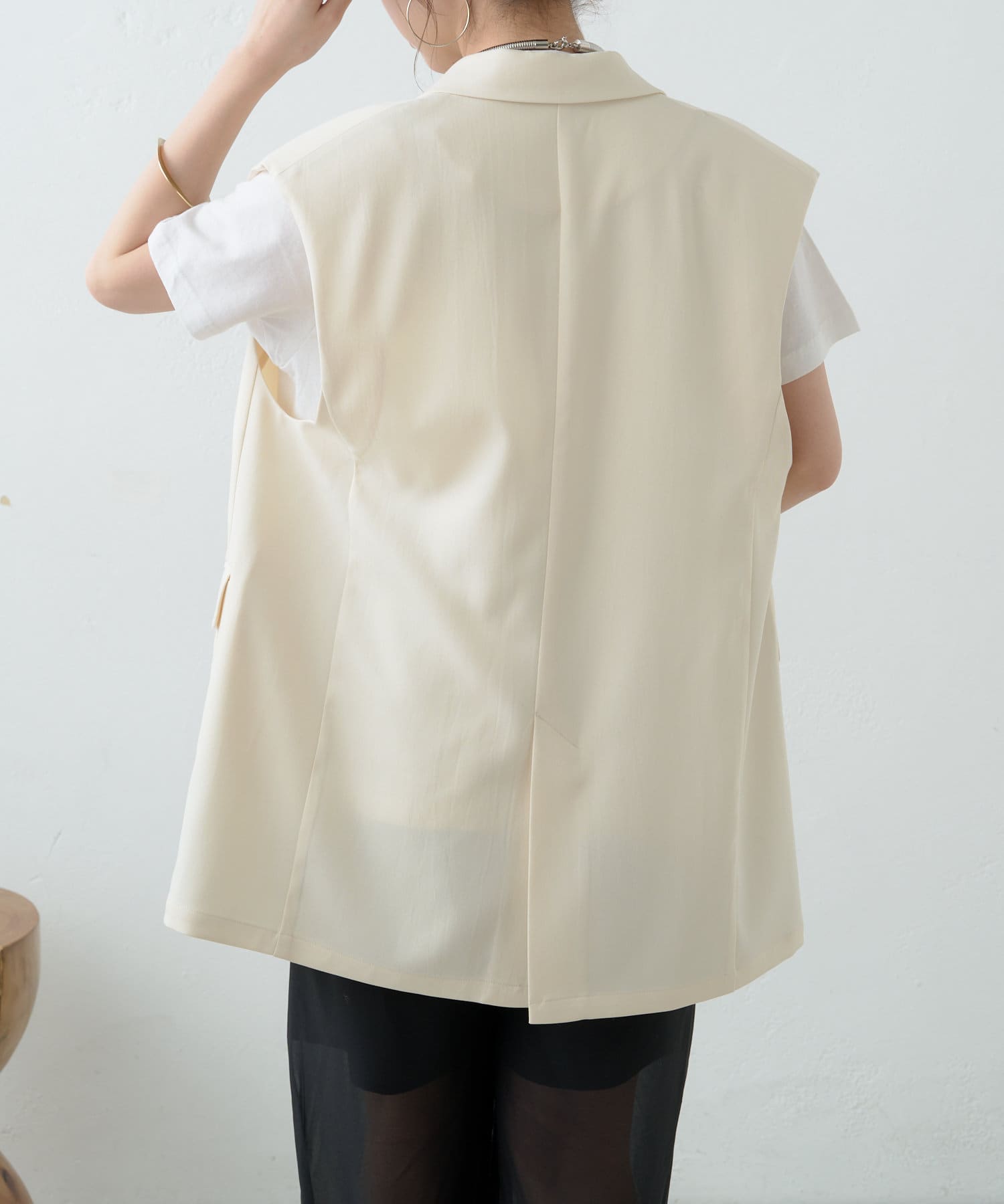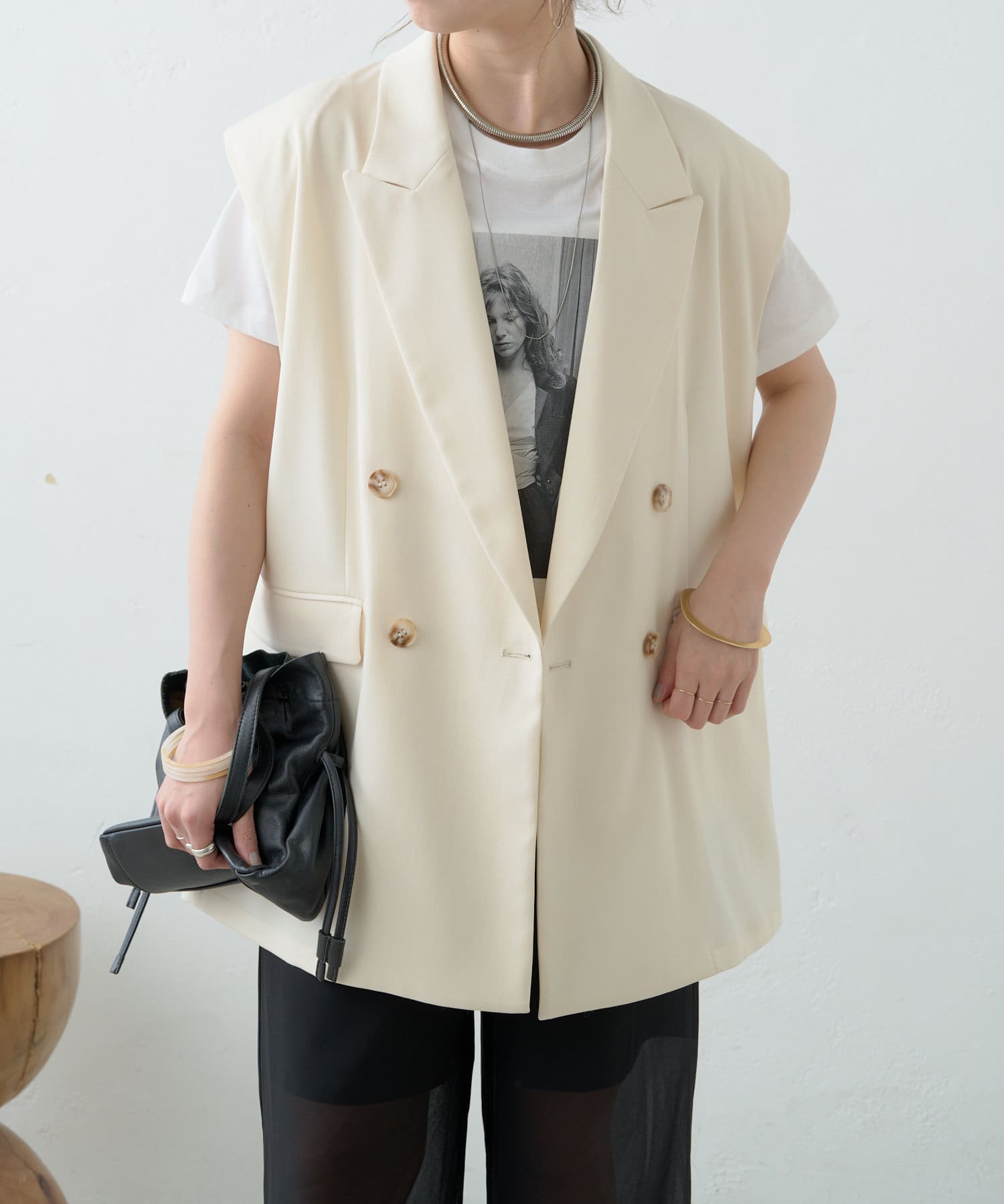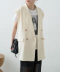 ・レイヤードアイテムとしてはもちろん、夏場はインナー合わせでフレンチスリーブのジレとして1枚でもお使いいただけます。