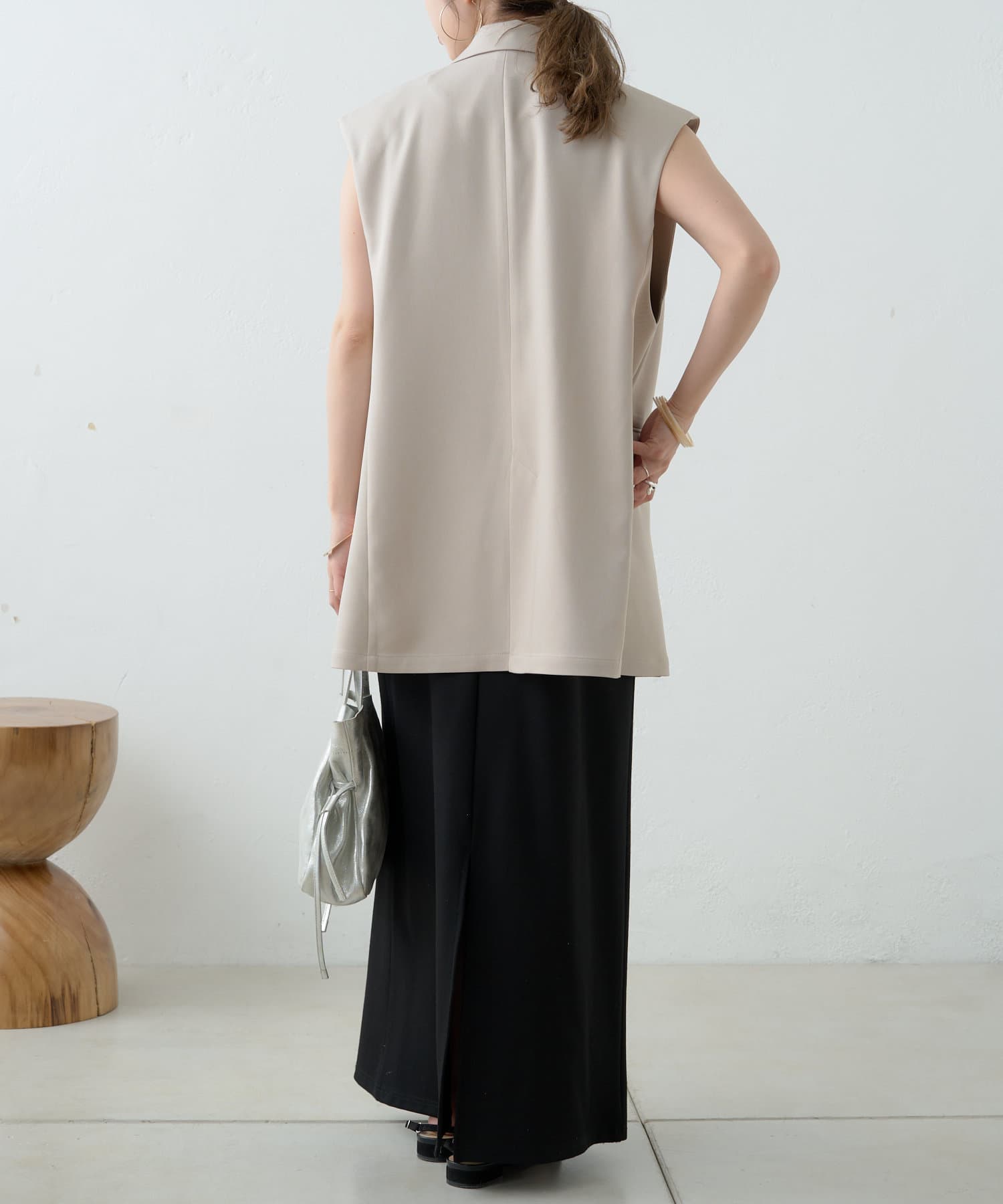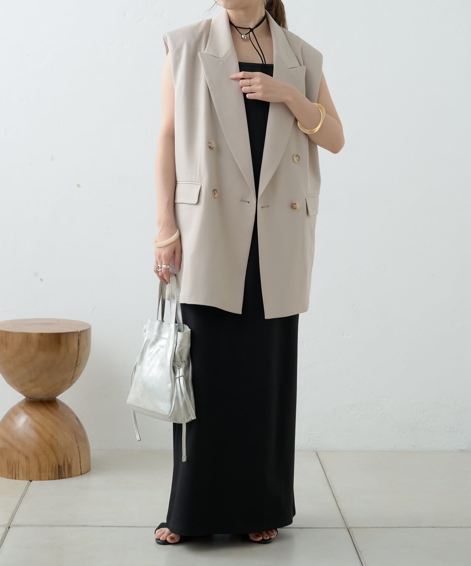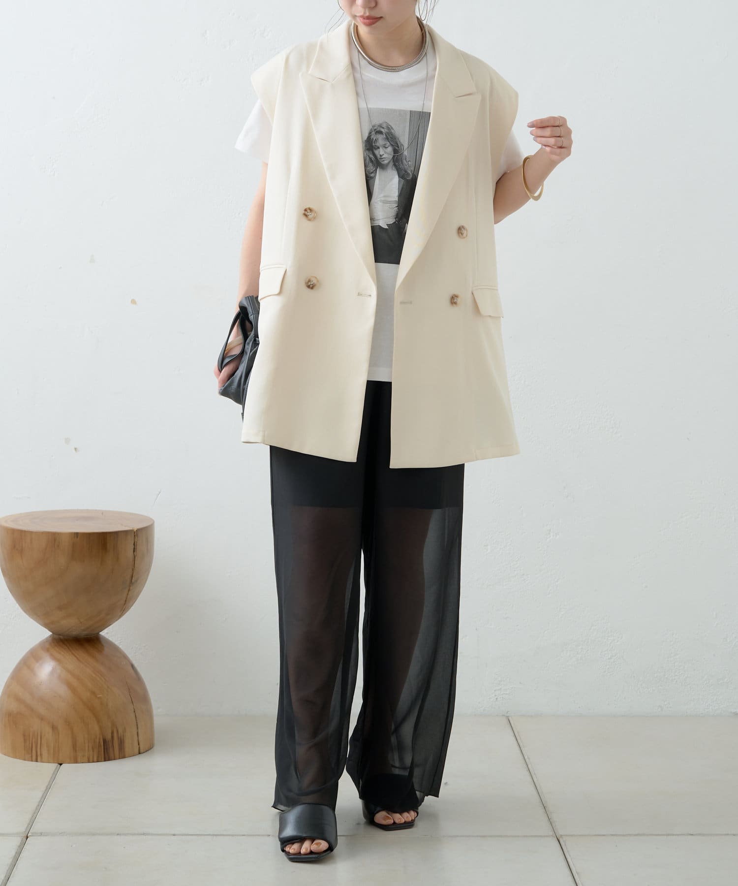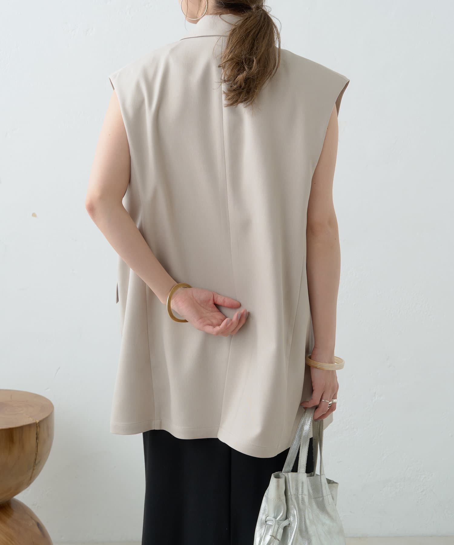 ・レイヤードアイテムとしてはもちろん、夏場はインナー合わせでフレンチスリーブのジレとして1枚でもお使いいただけます。