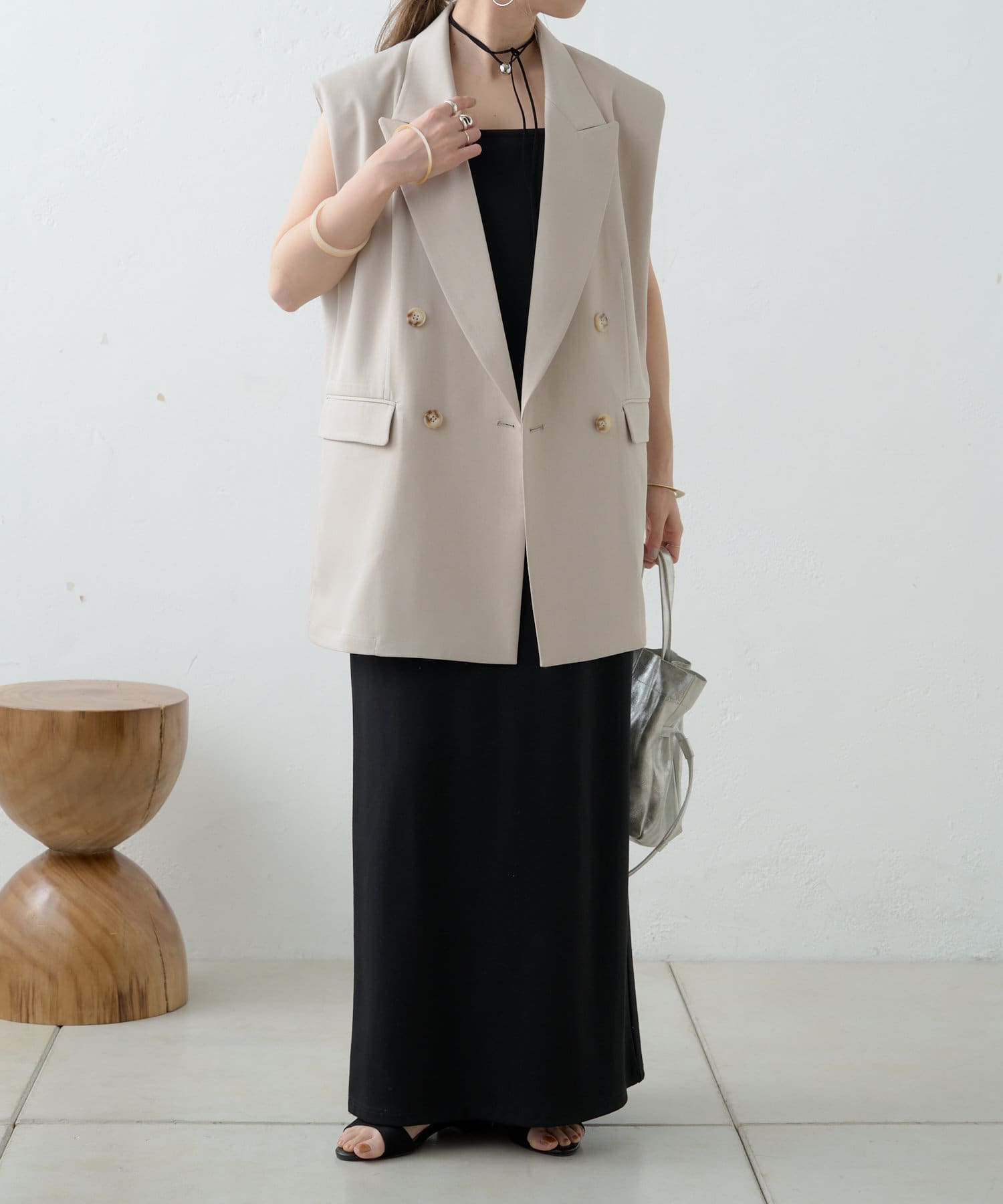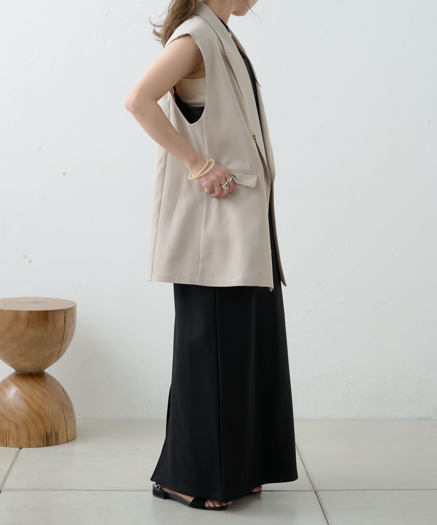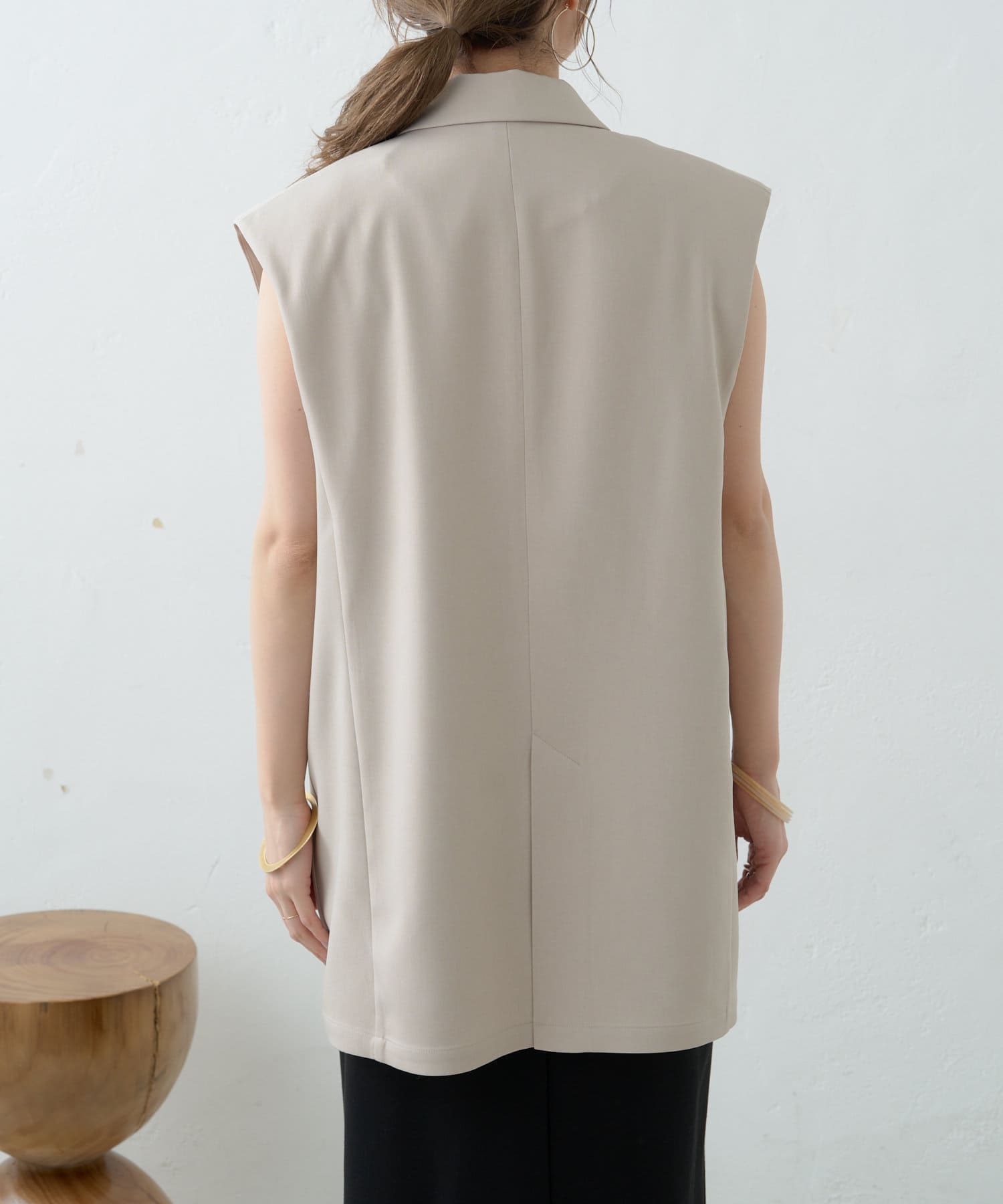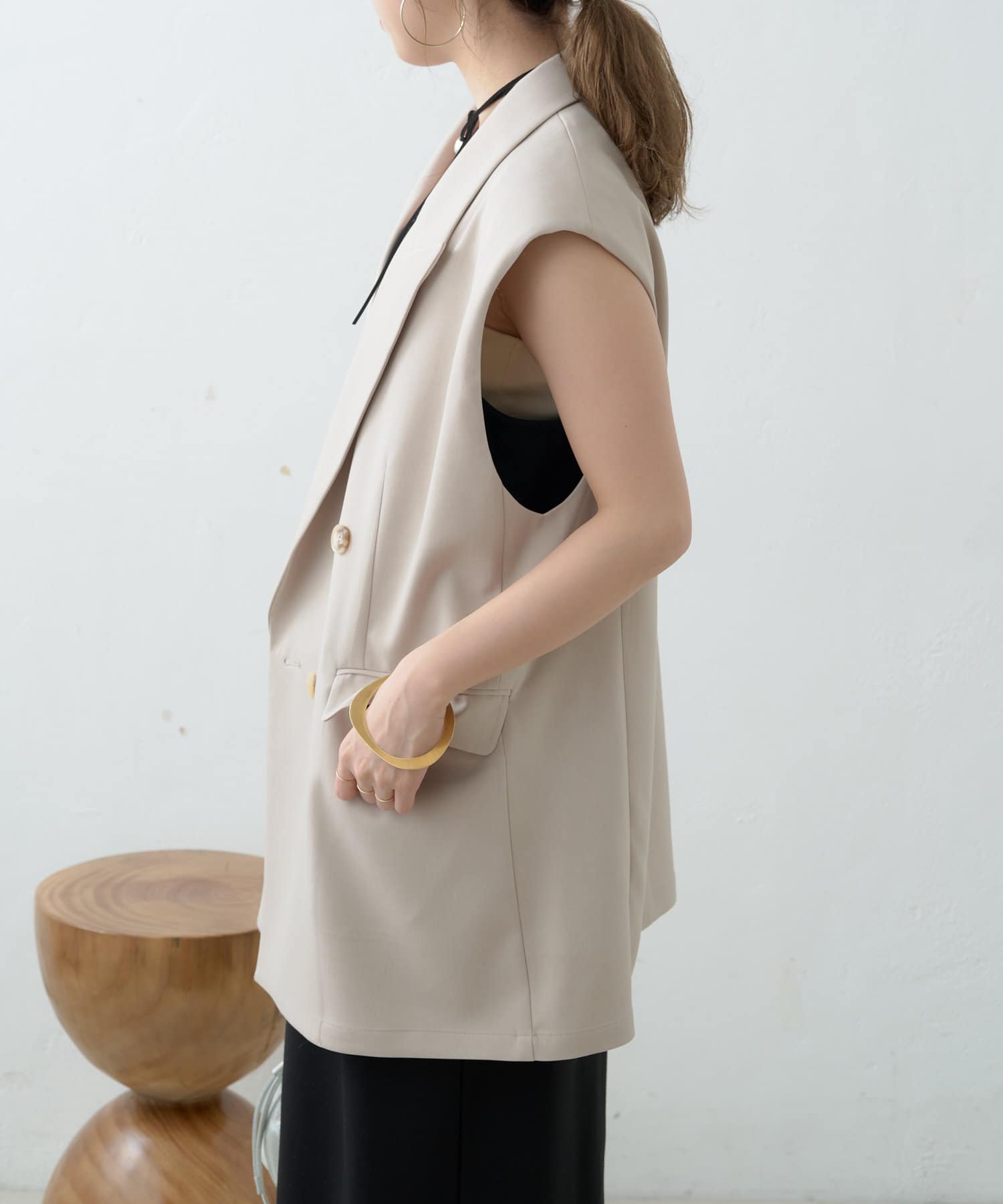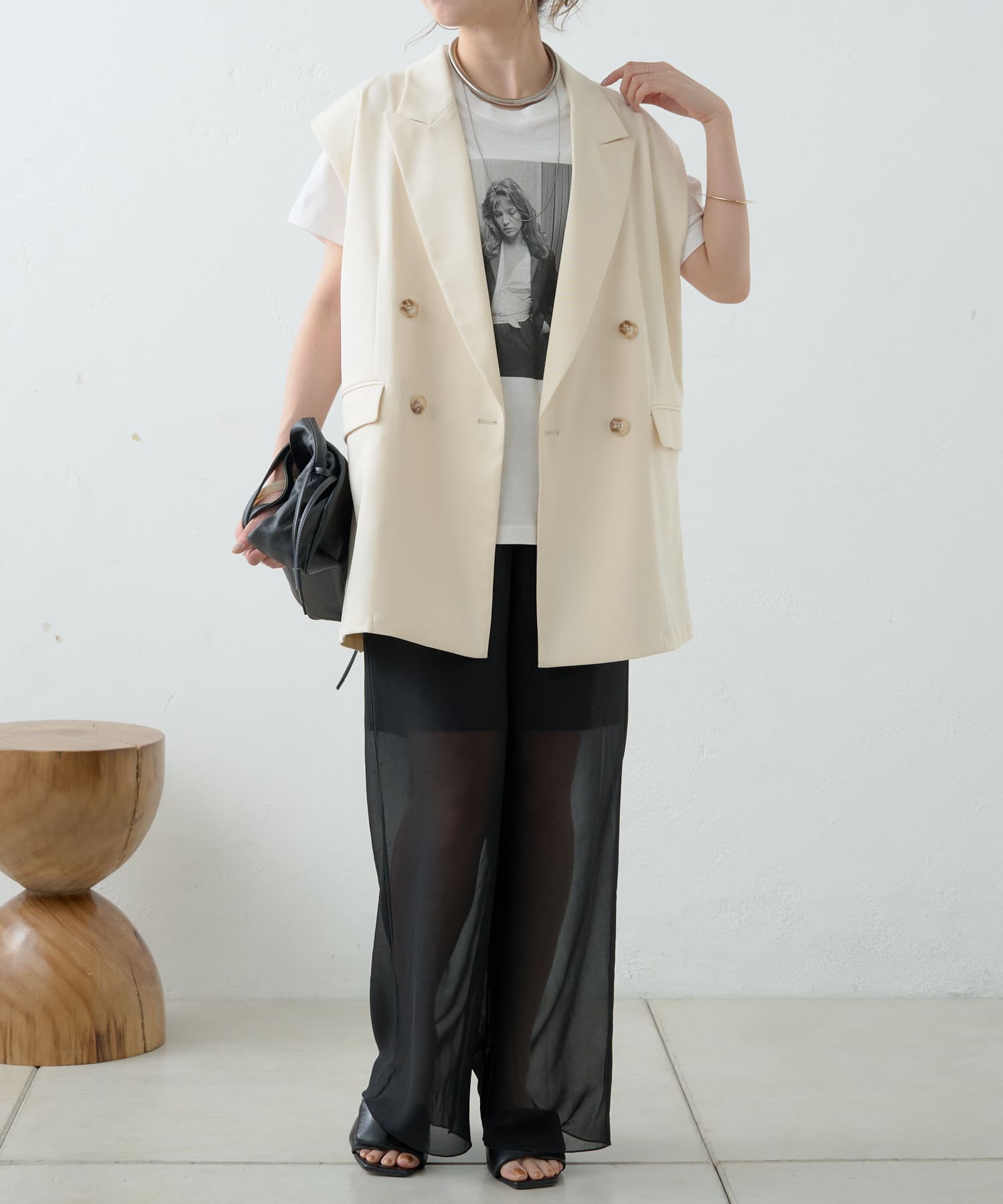 ・レイヤードアイテムとしてはもちろん、夏場はインナー合わせでフレンチスリーブのジレとして1枚でもお使いいただけます。