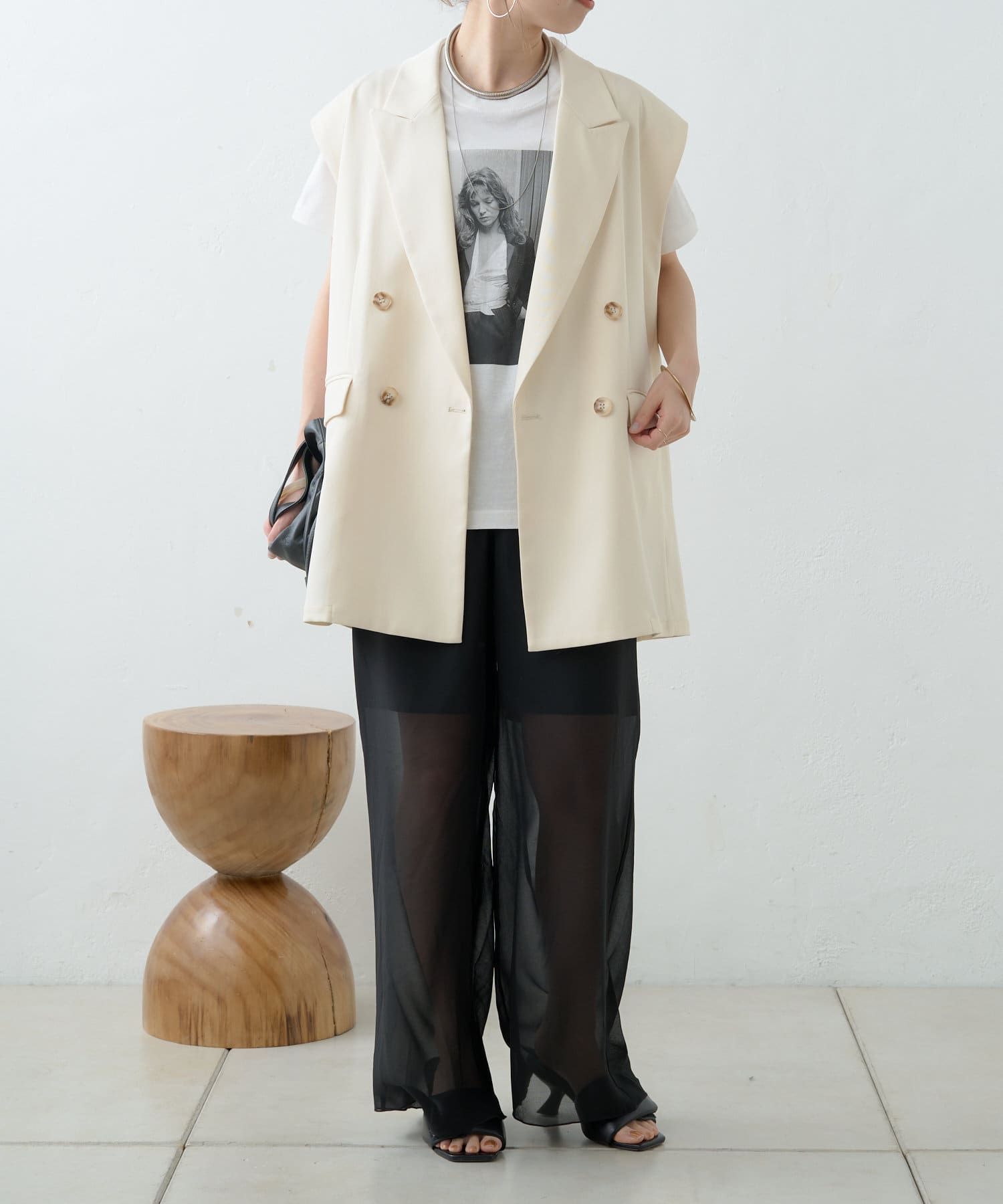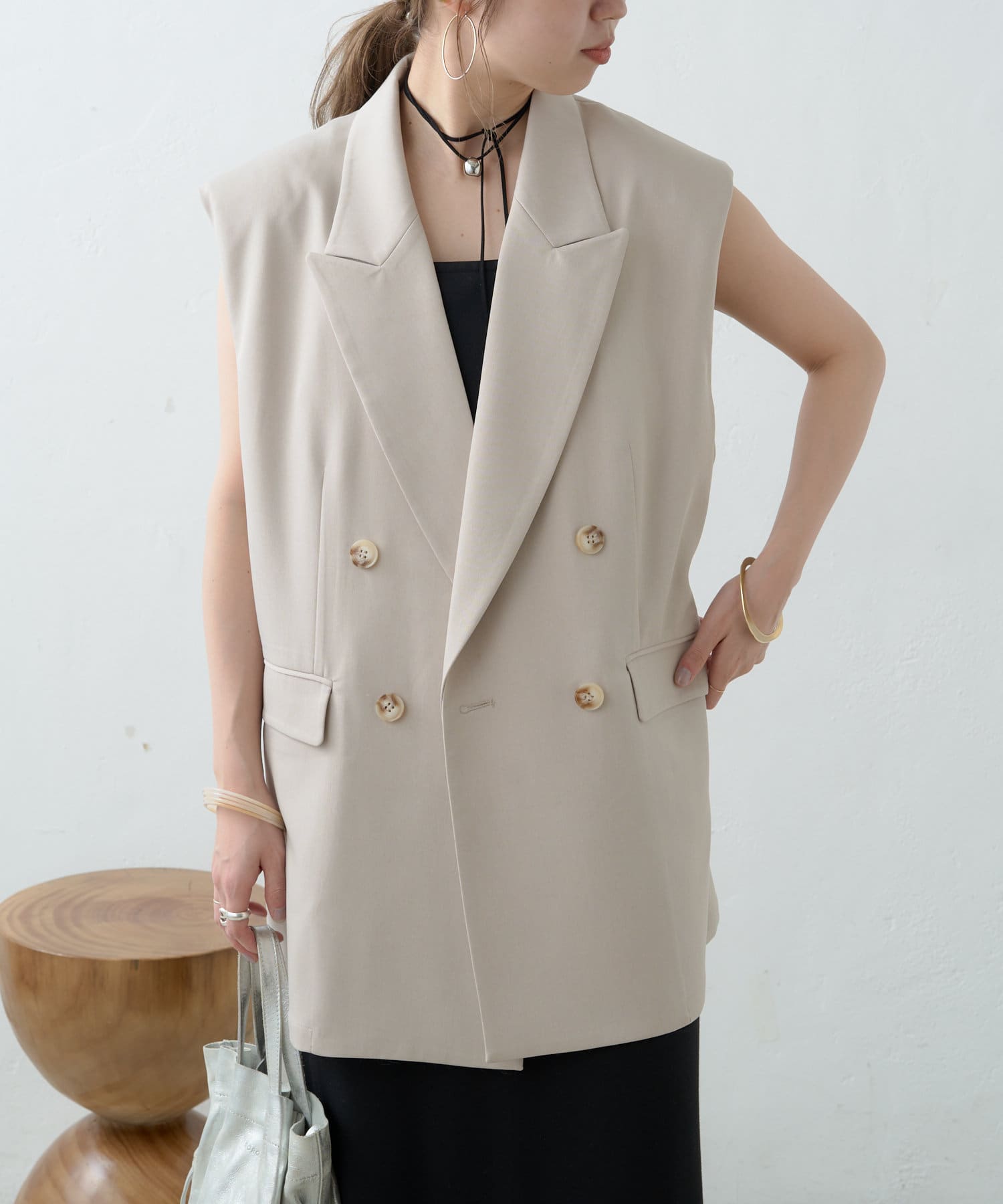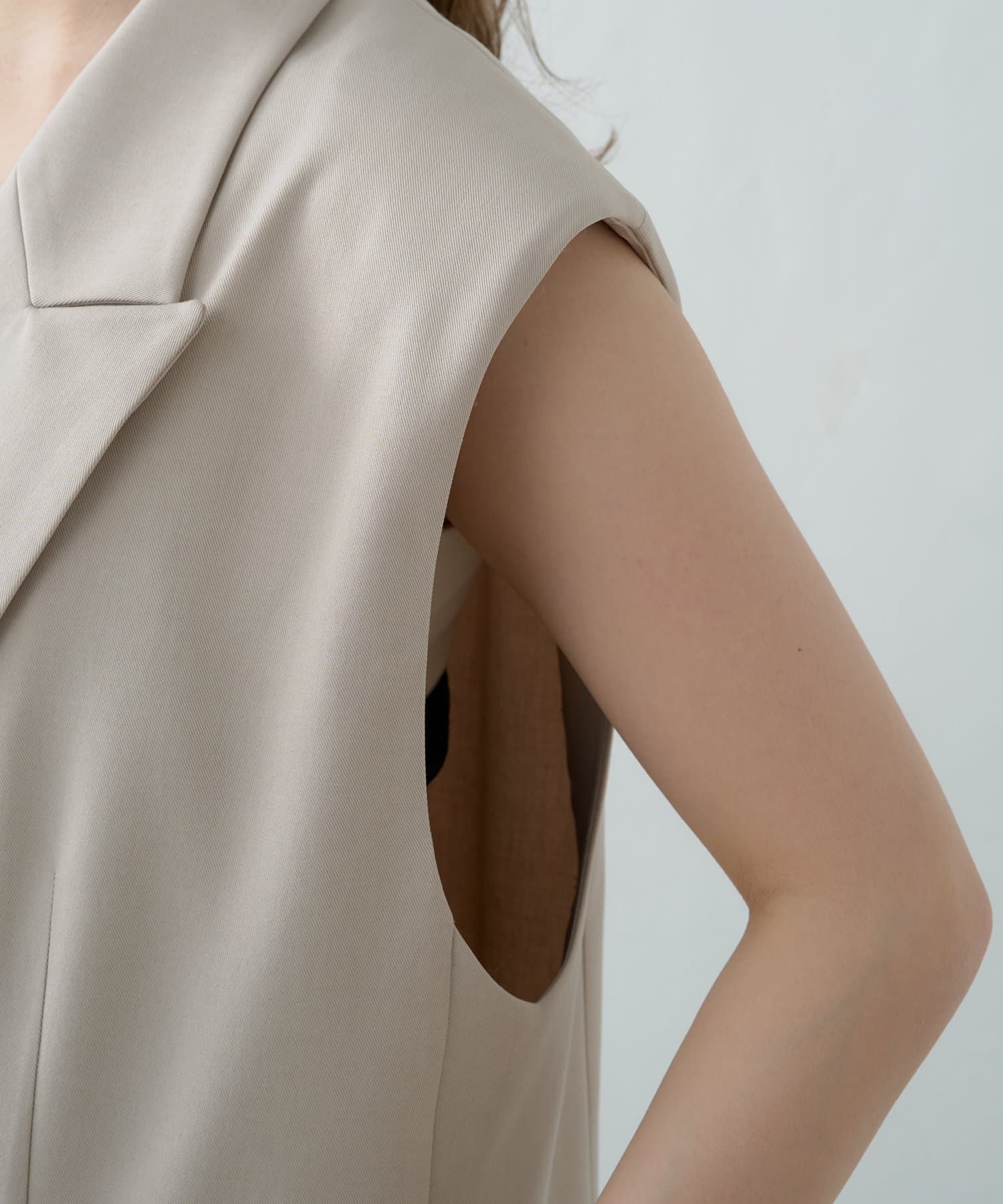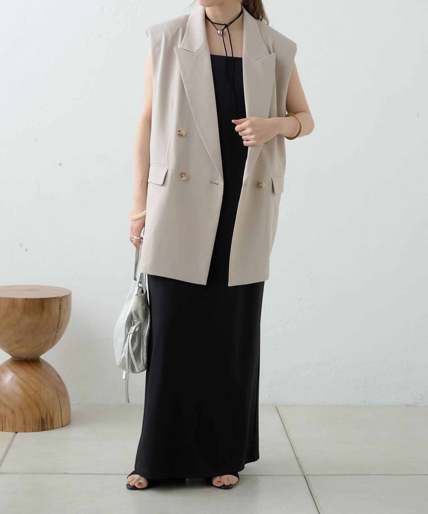 ・レイヤードアイテムとしてはもちろん、夏場はインナー合わせでフレンチスリーブのジレとして1枚でもお使いいただけます。