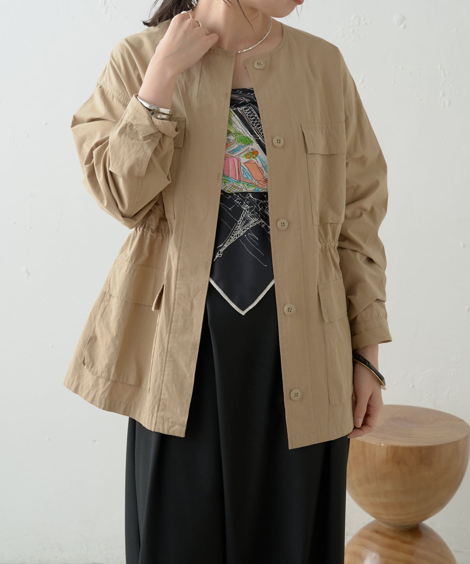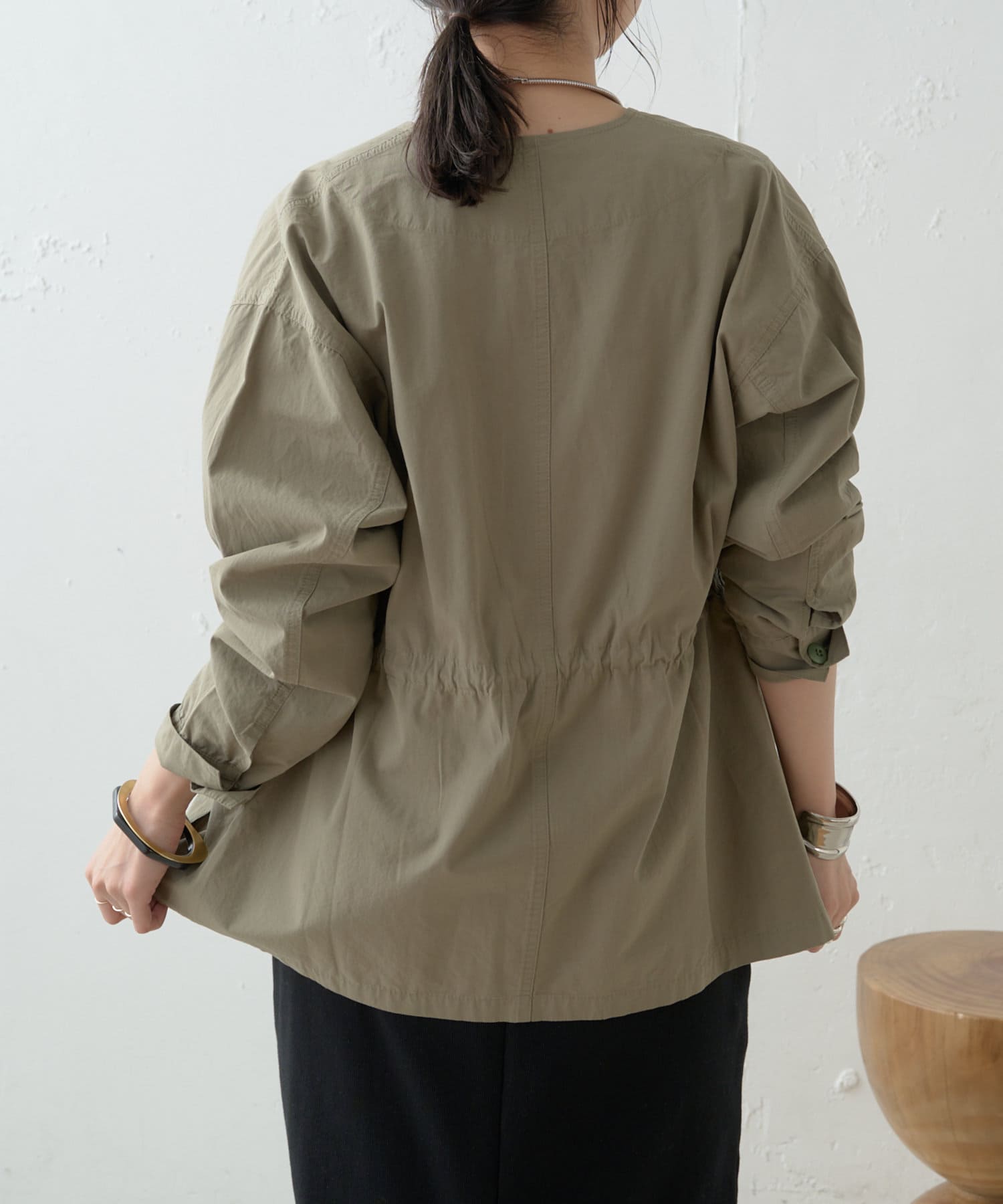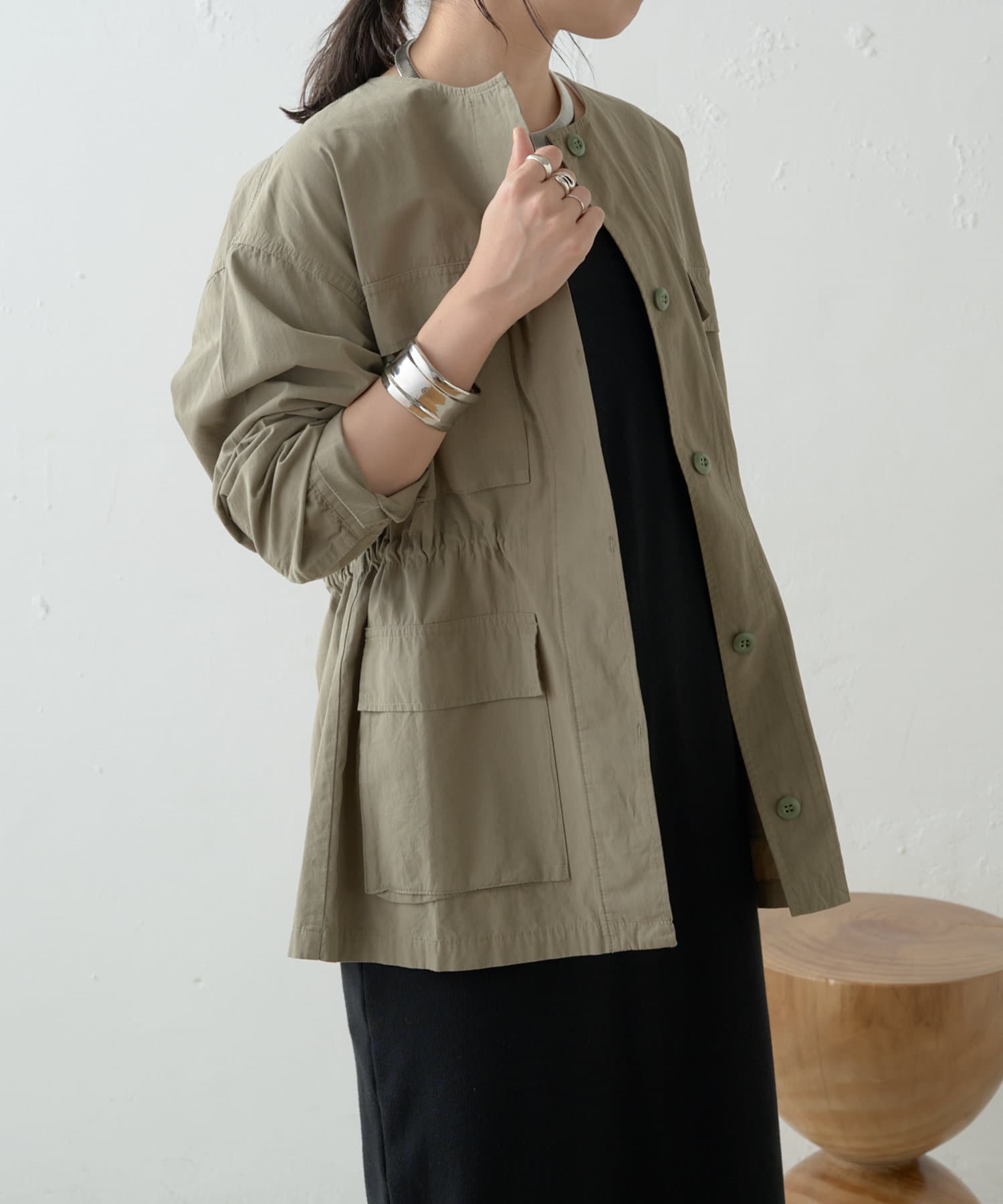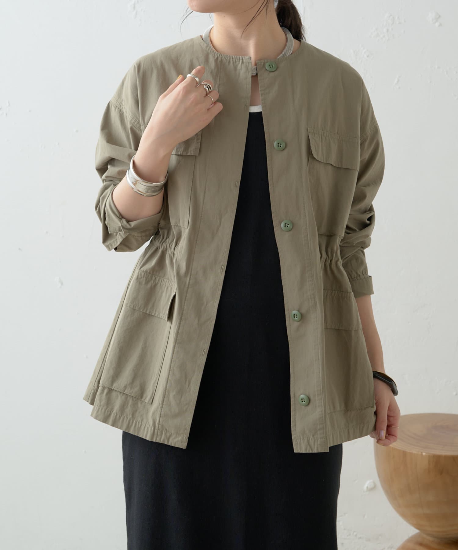 ・女性らしく着こなせてミリタリー感漂うノーカラージャケット