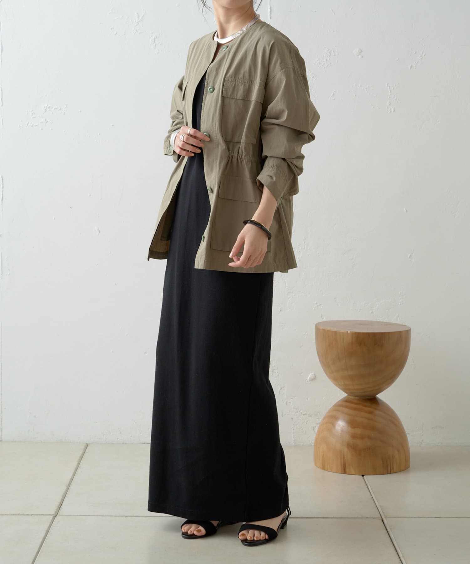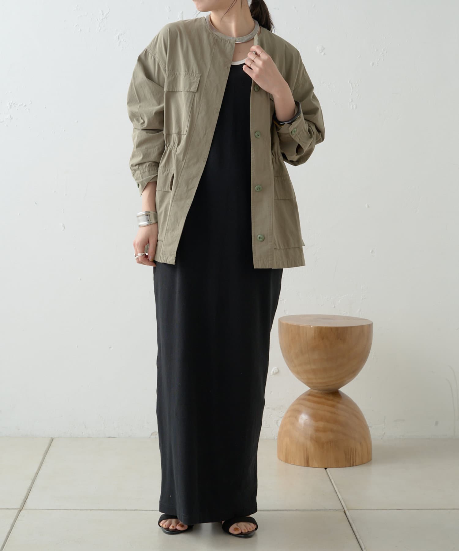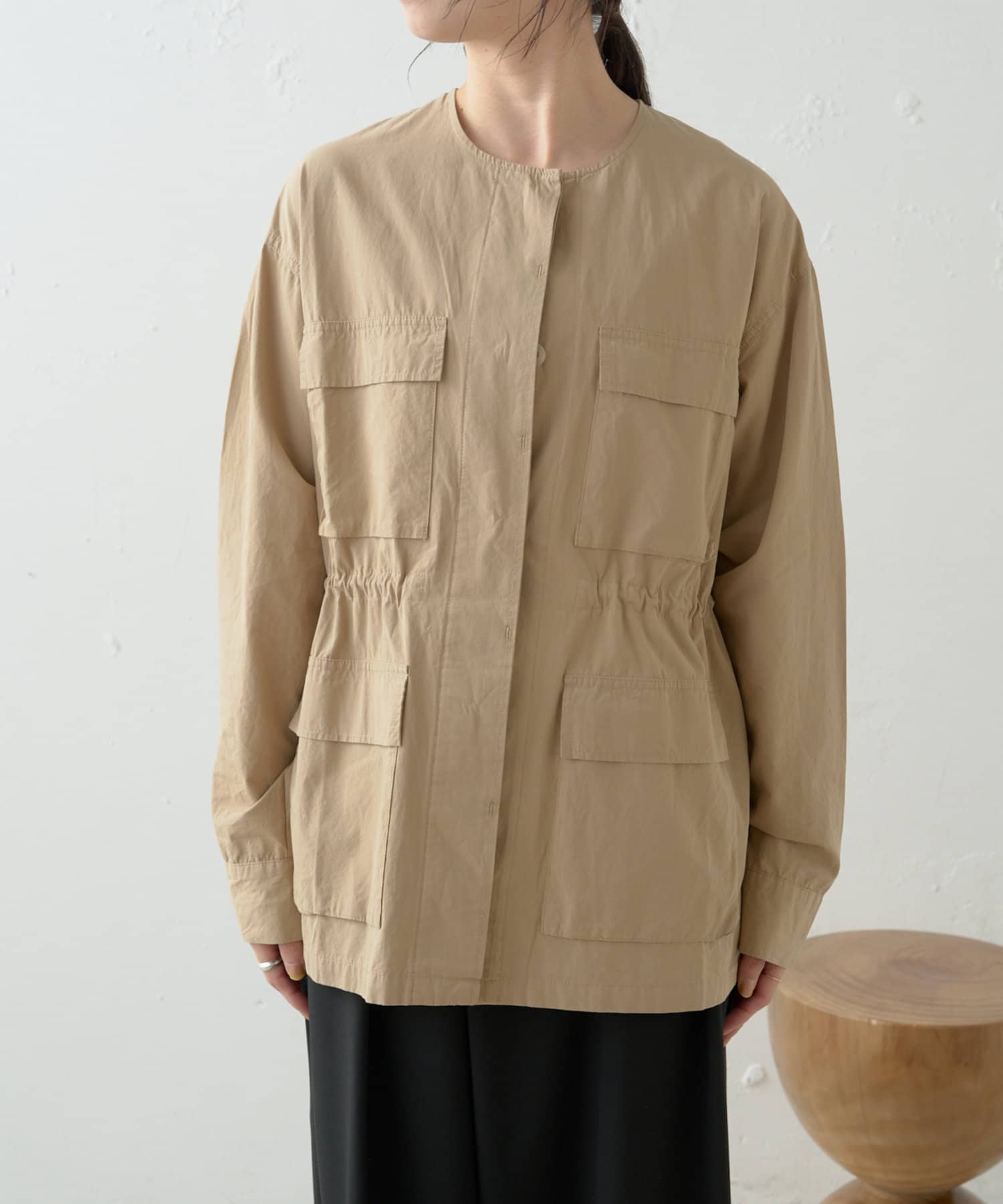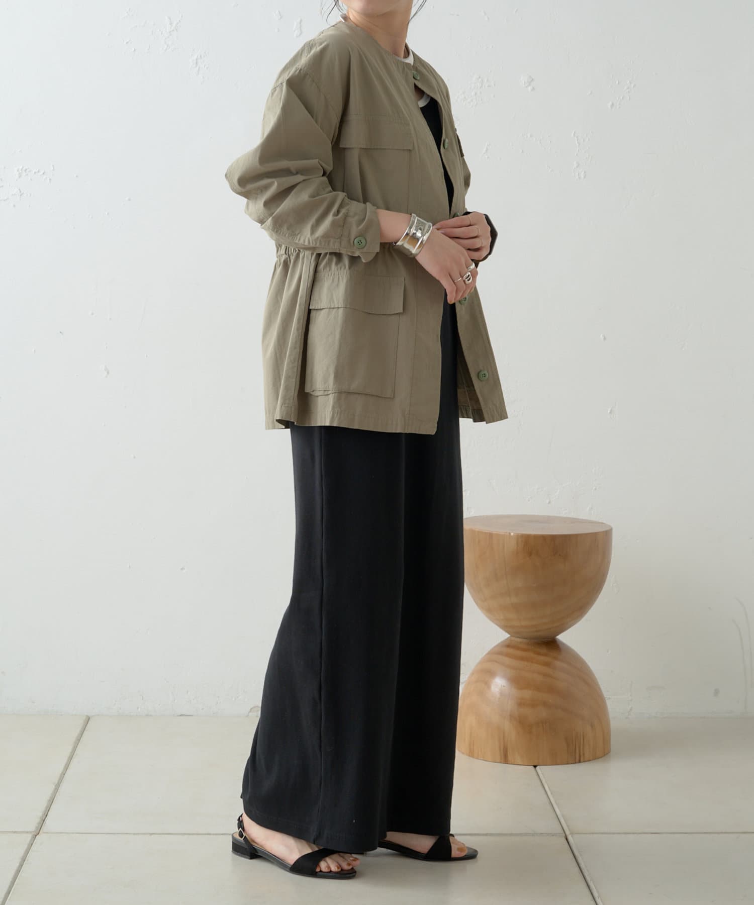 ・女性らしく着こなせてミリタリー感漂うノーカラージャケット