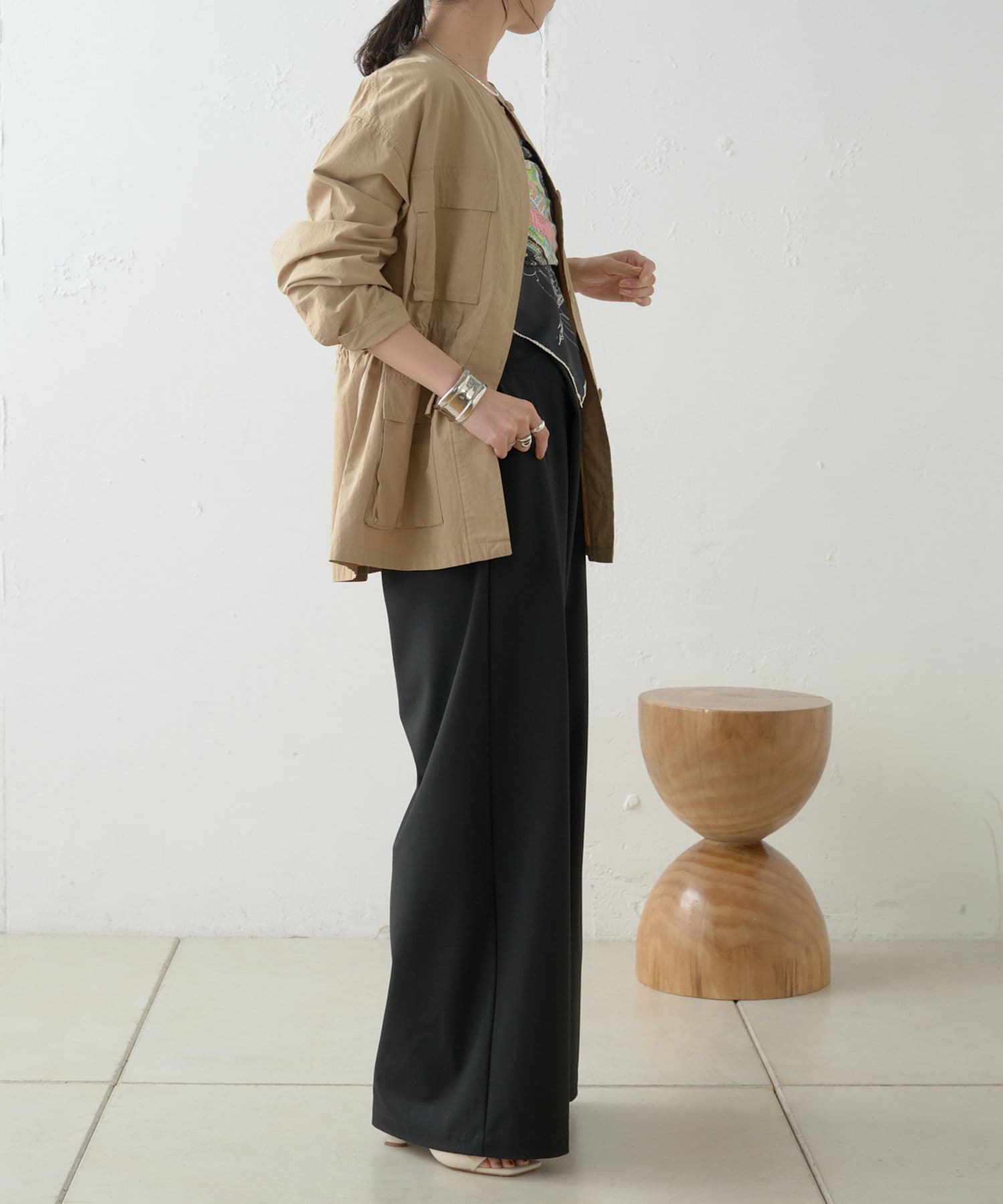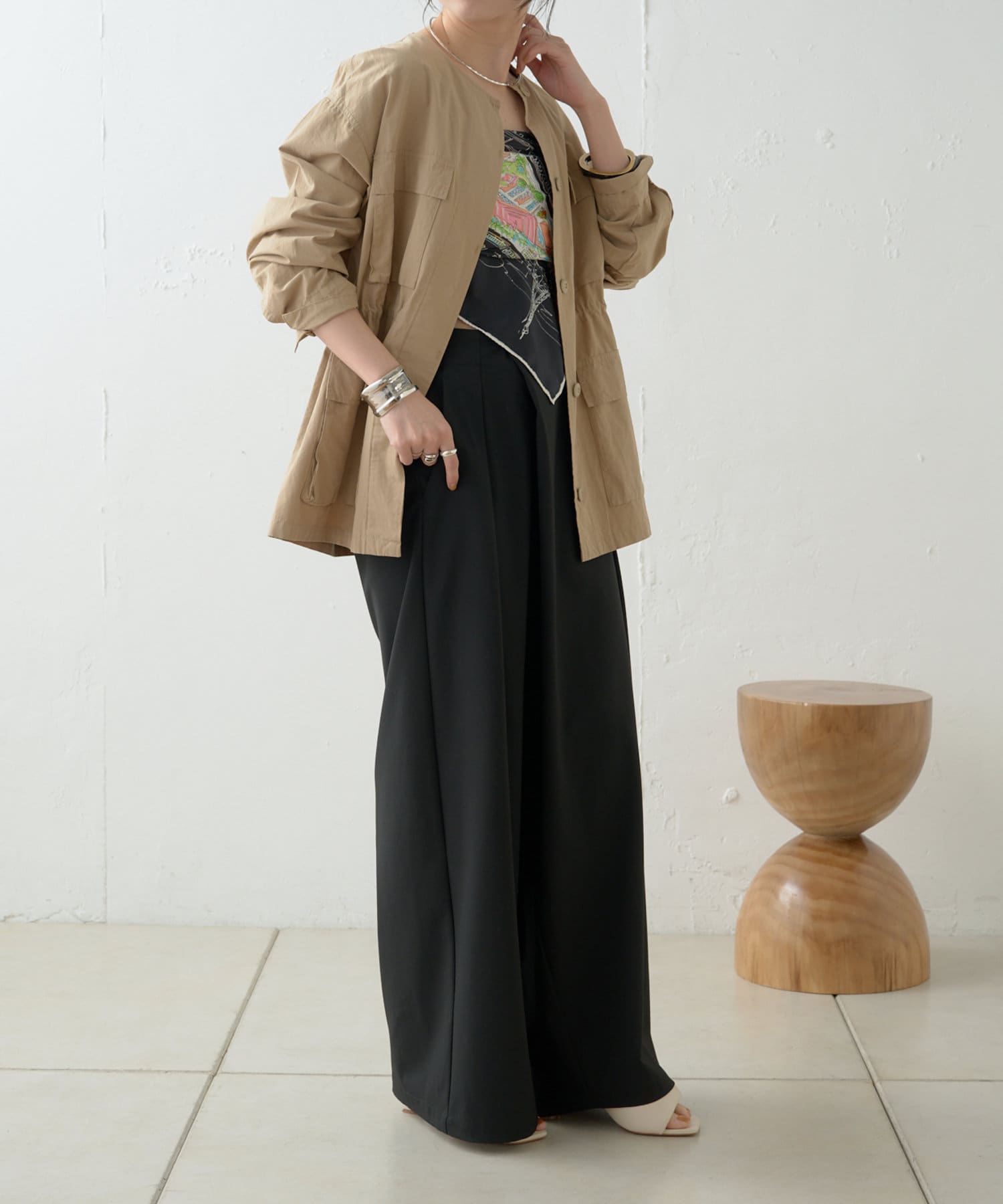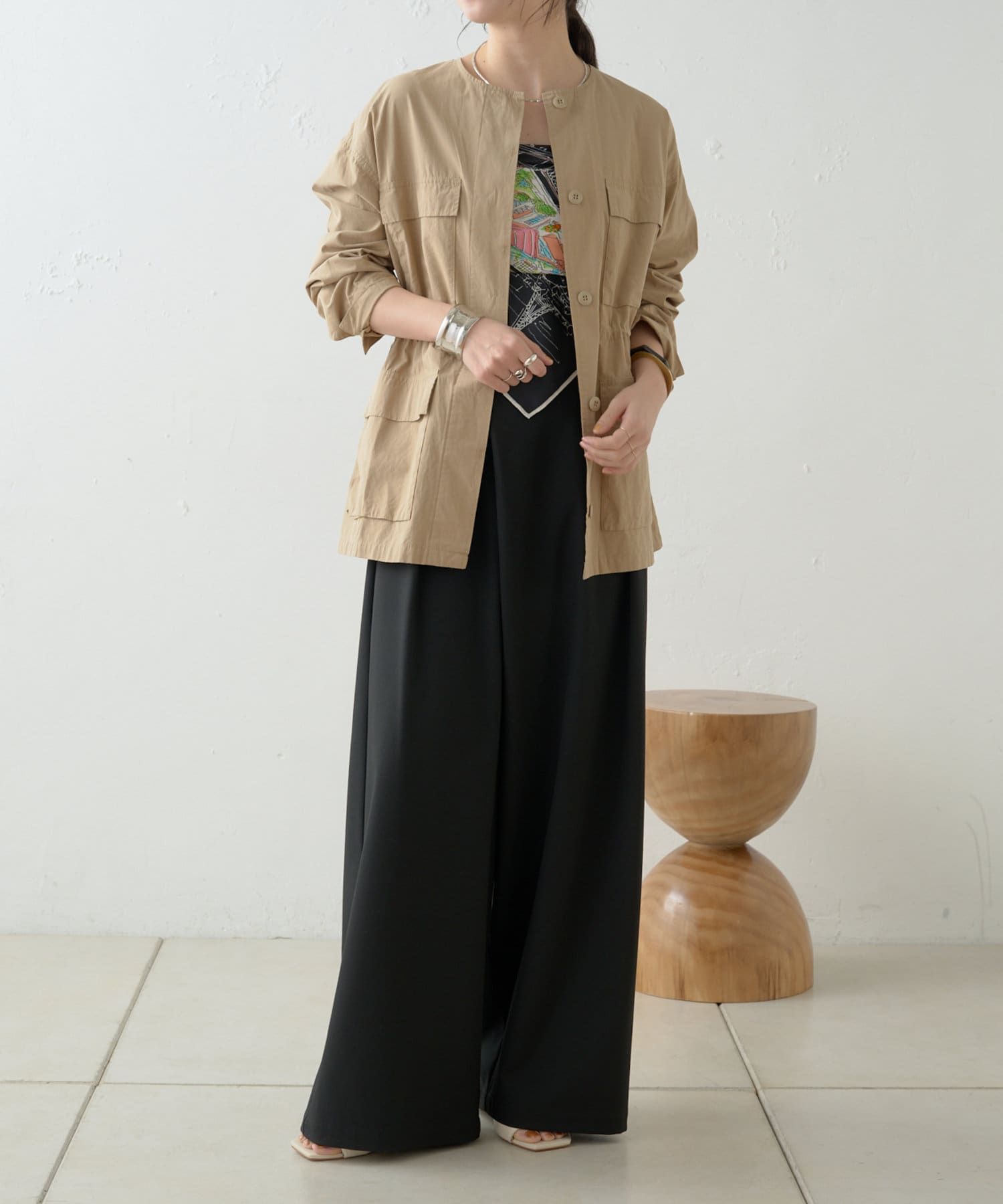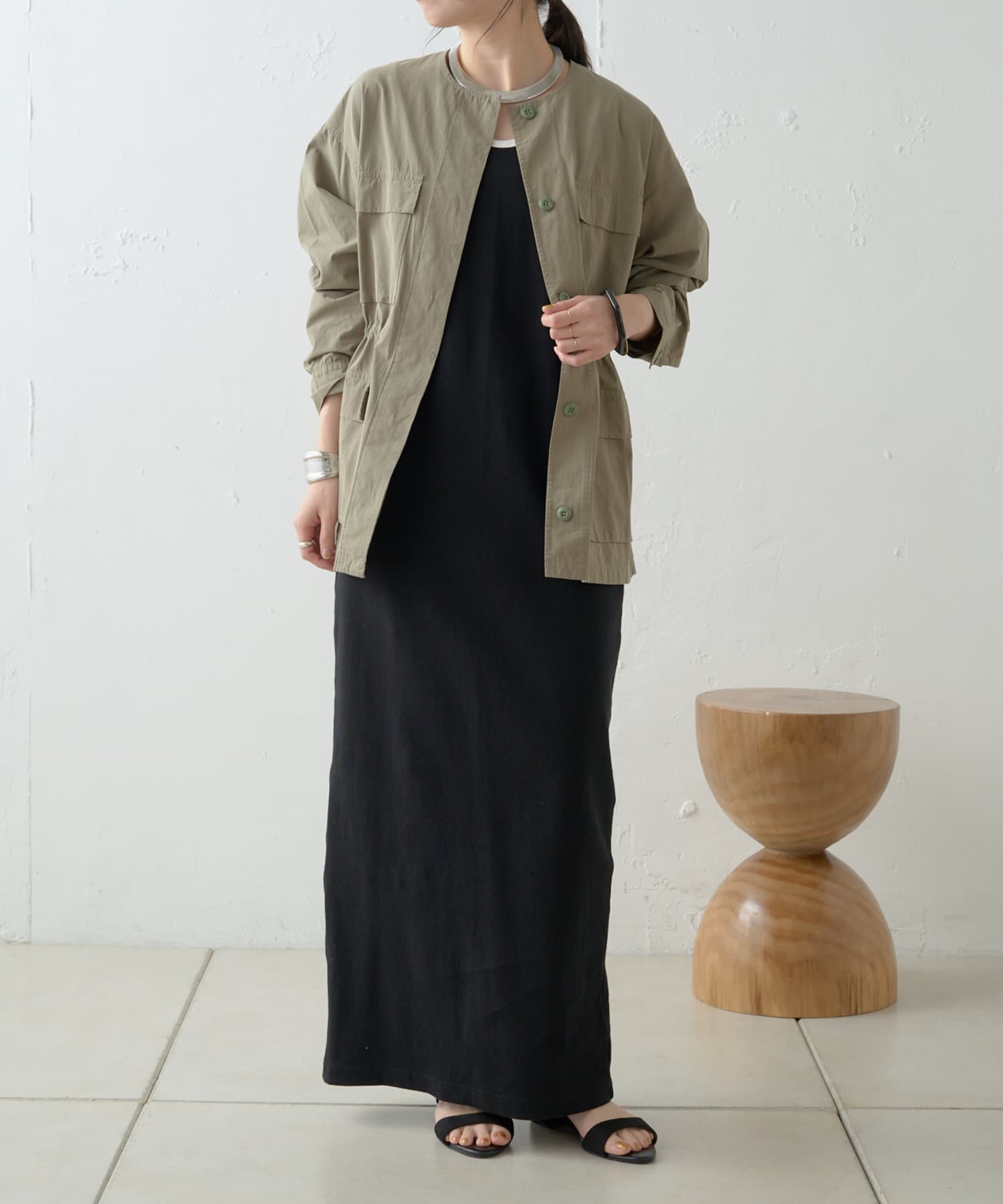 ・女性らしく着こなせてミリタリー感漂うノーカラージャケット