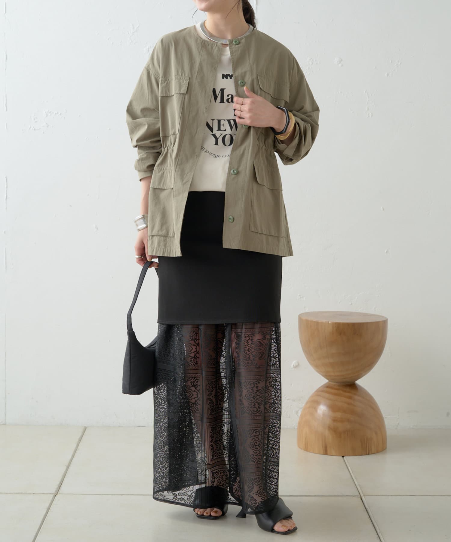 ・ヴィンテージ感のある色味でカジュアルになりすぎず、デニムはもちろん、スカートやワンピースにも合わせやすいのが魅力です。