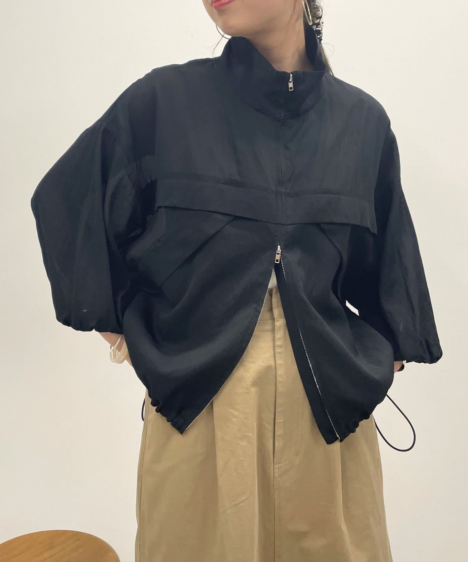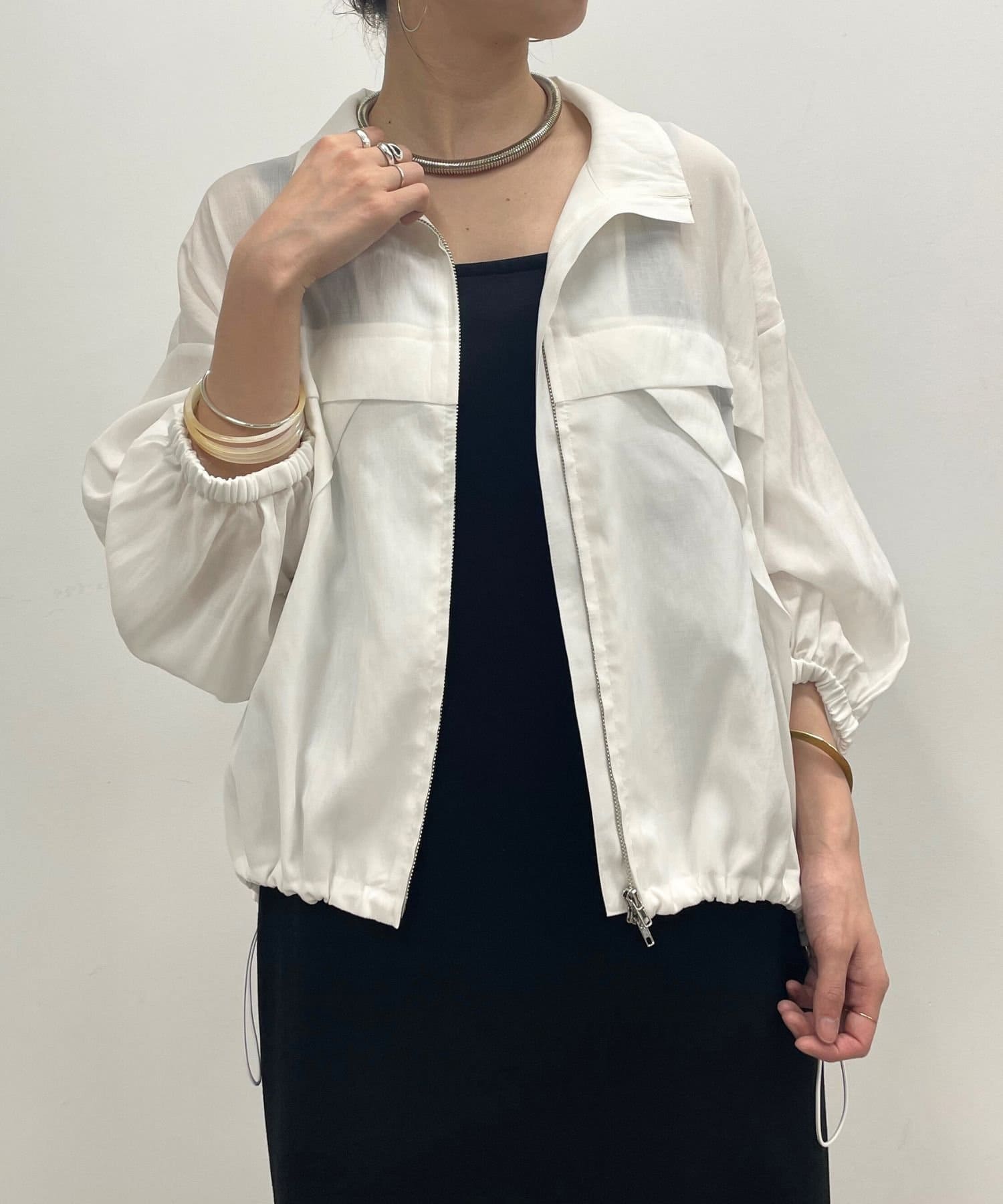 シアー素材と丸みのあるシルエットで女性らしく仕上げたブルゾン