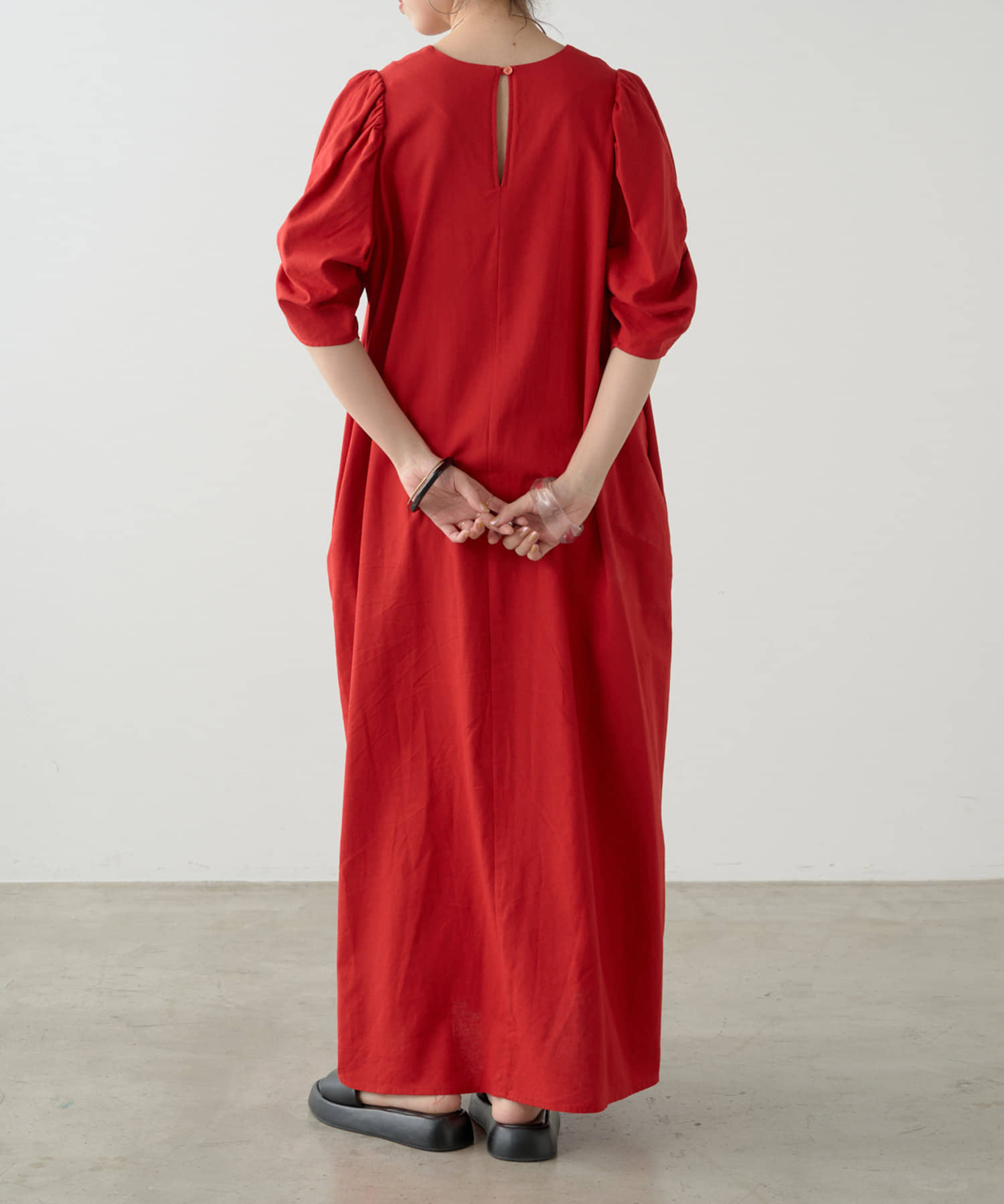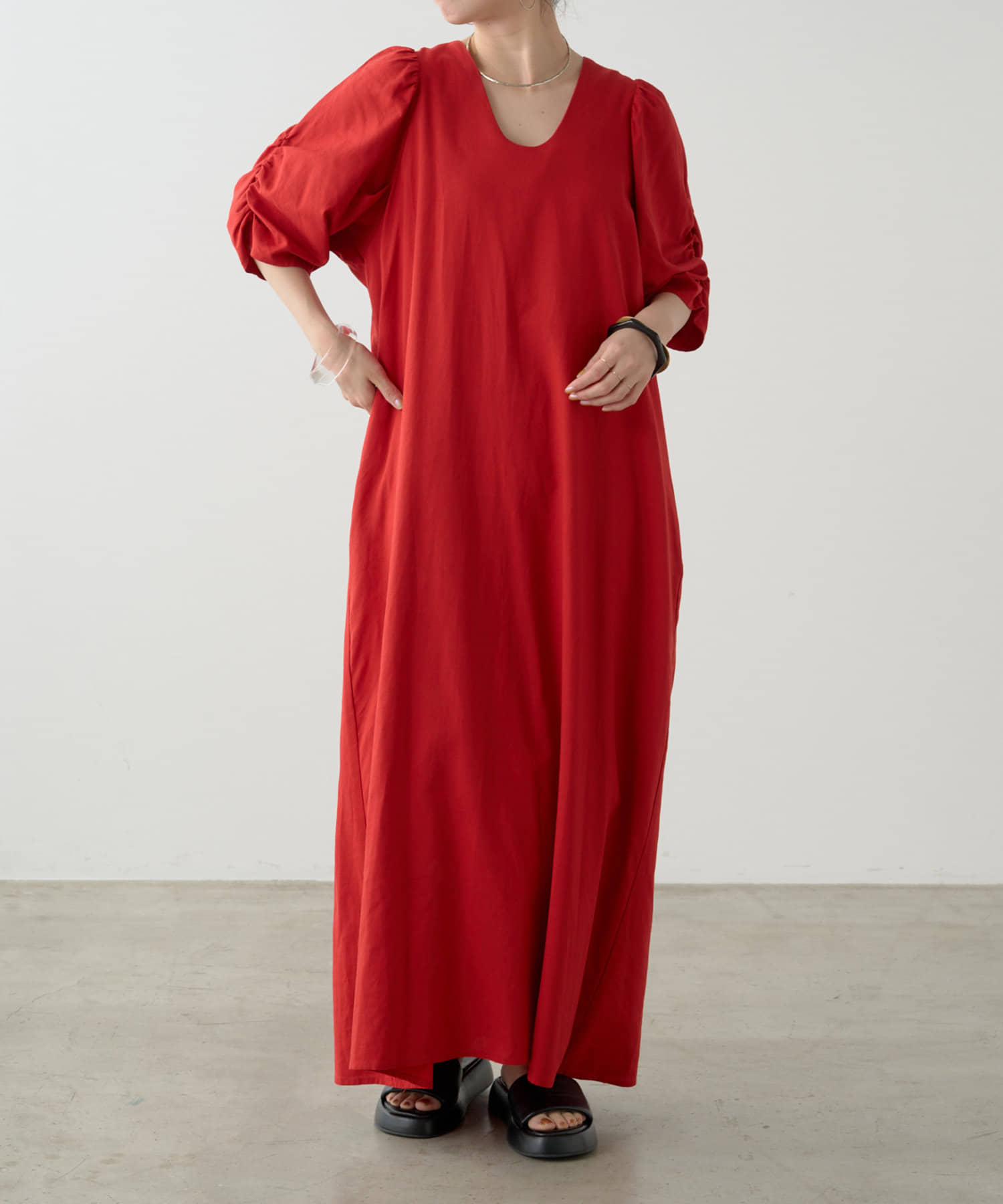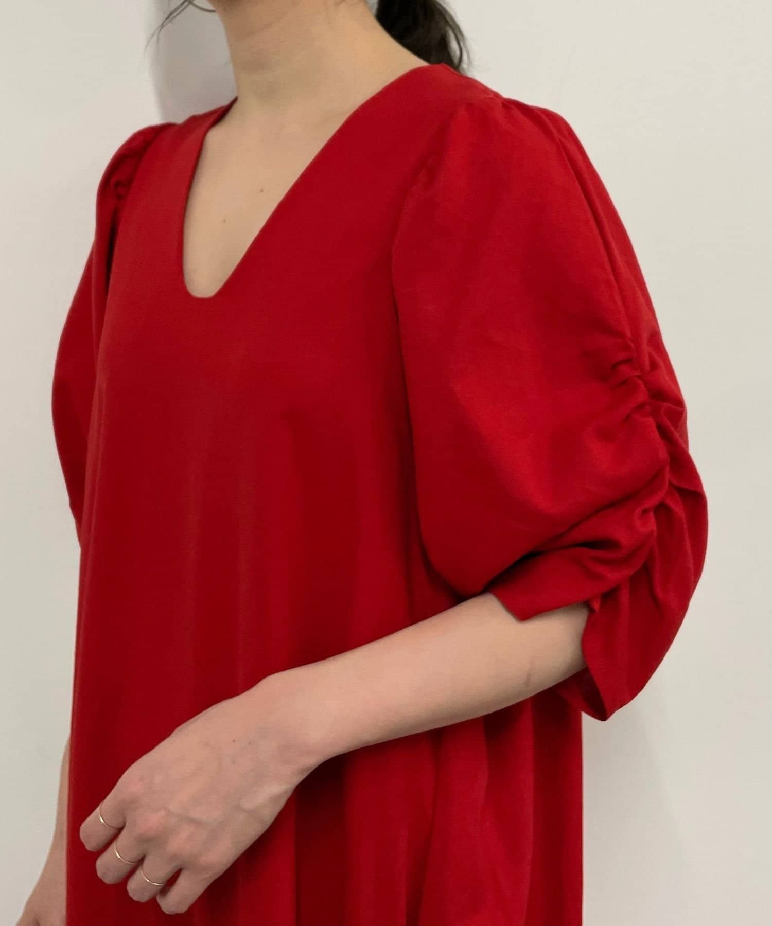 さらりと着こなせるOmekashiらしいギャザースリーブワンピース