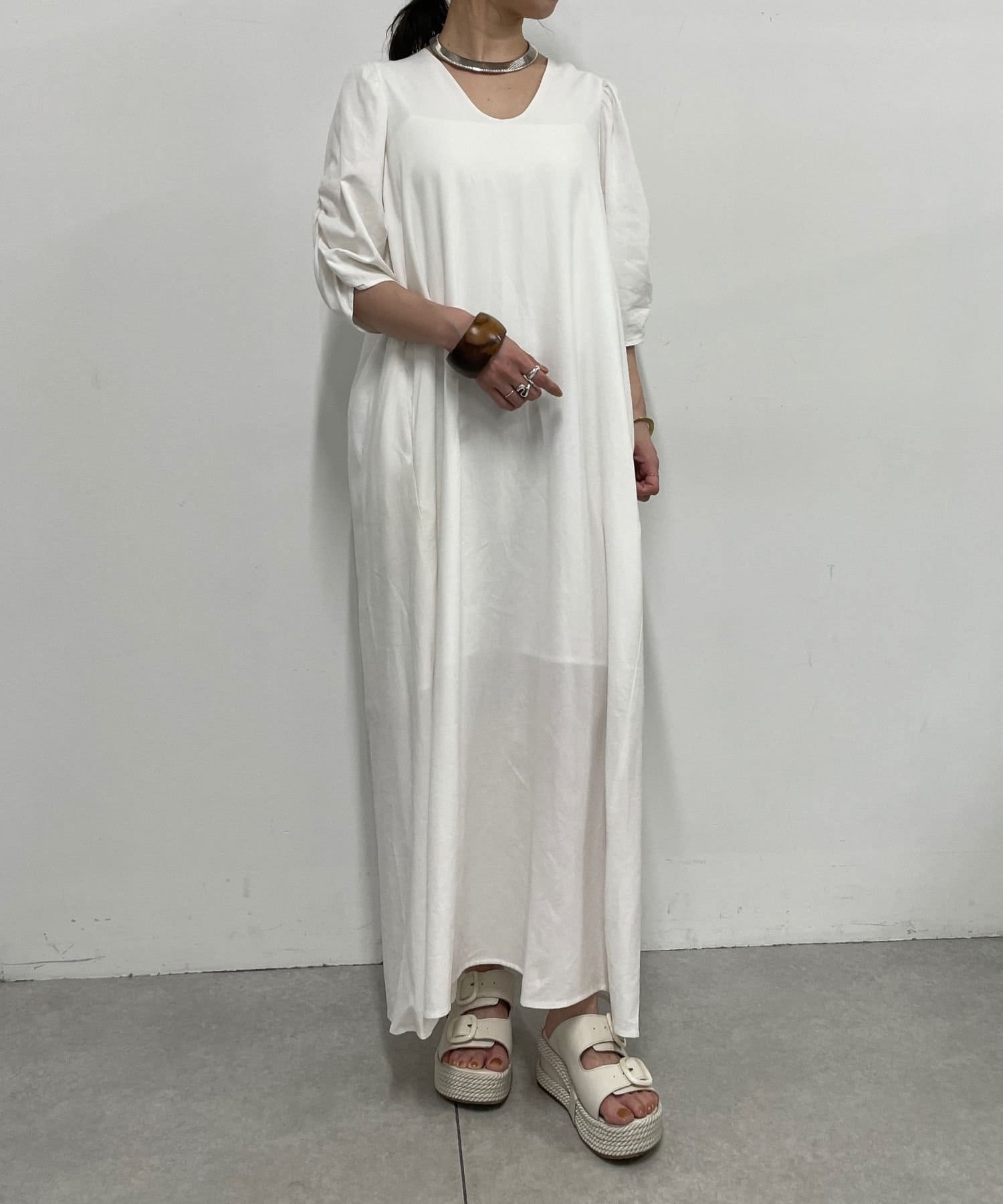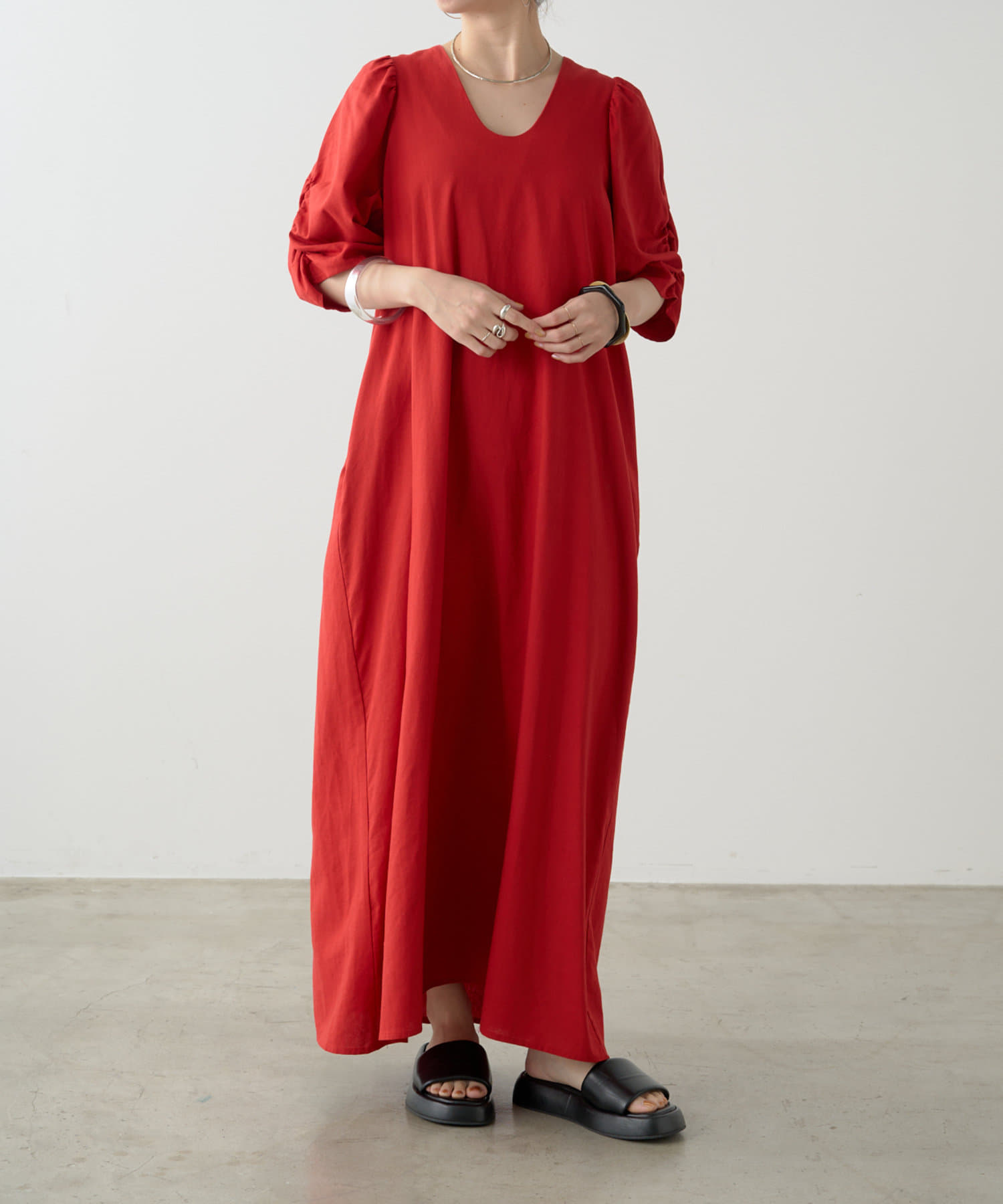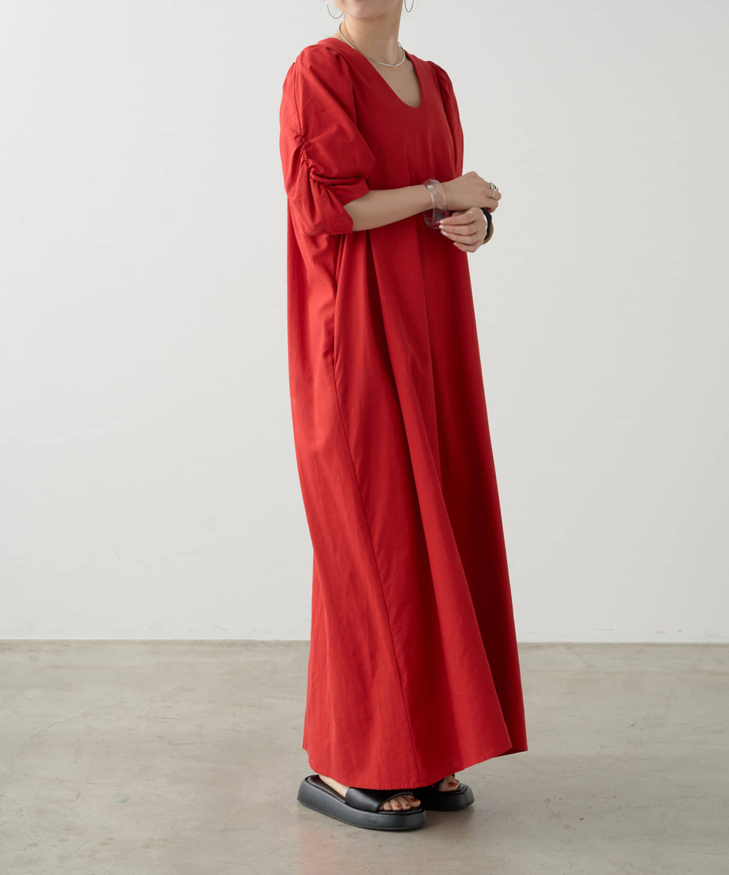 さらりと着こなせるOmekashiらしいギャザースリーブワンピース