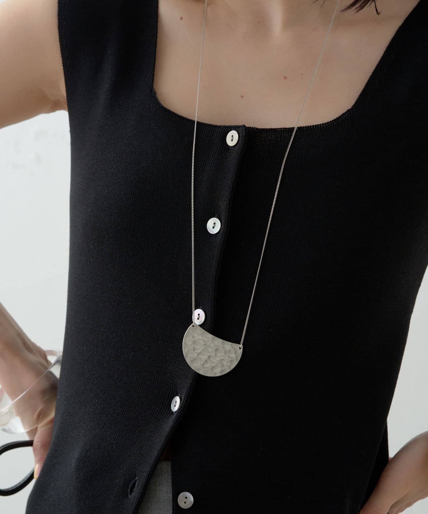・ハーフムーンをモチーフにしたメタル素材のプレートネックレス