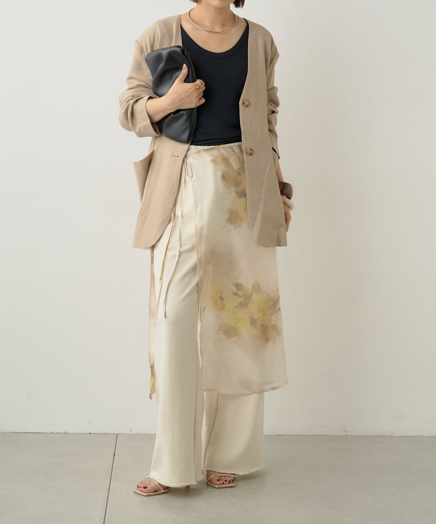 柄がかわいくて一目惚れでした。オフホワイトのワイドパンツに合わせて着て、一気に今年っぽくなります。