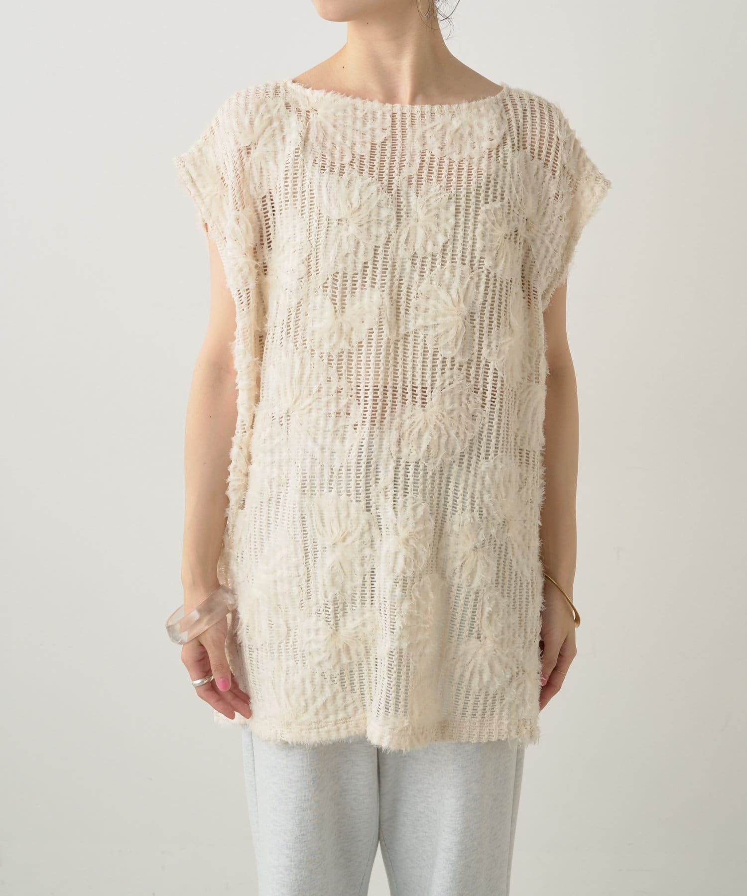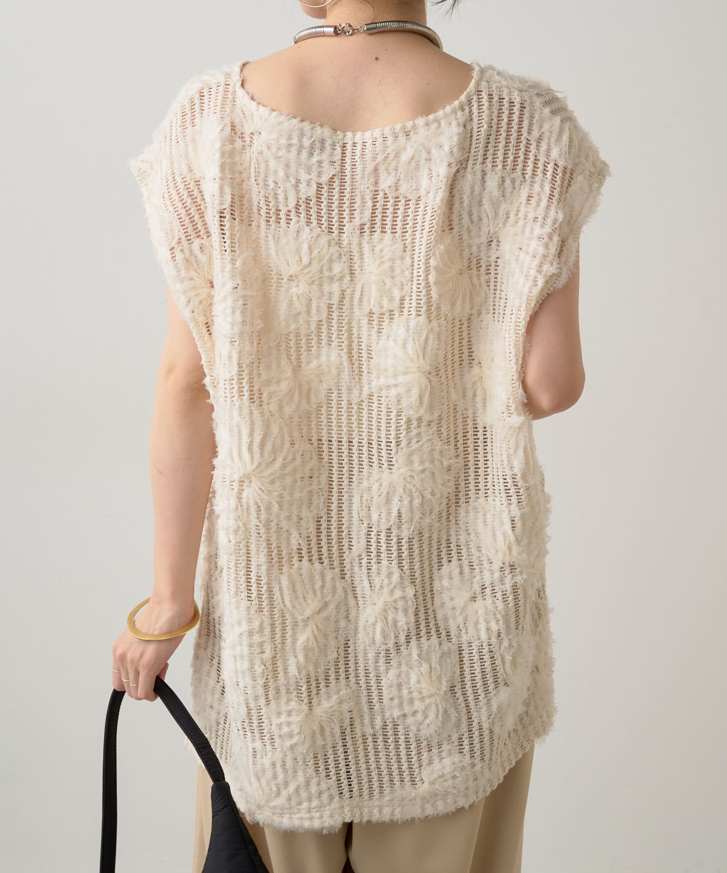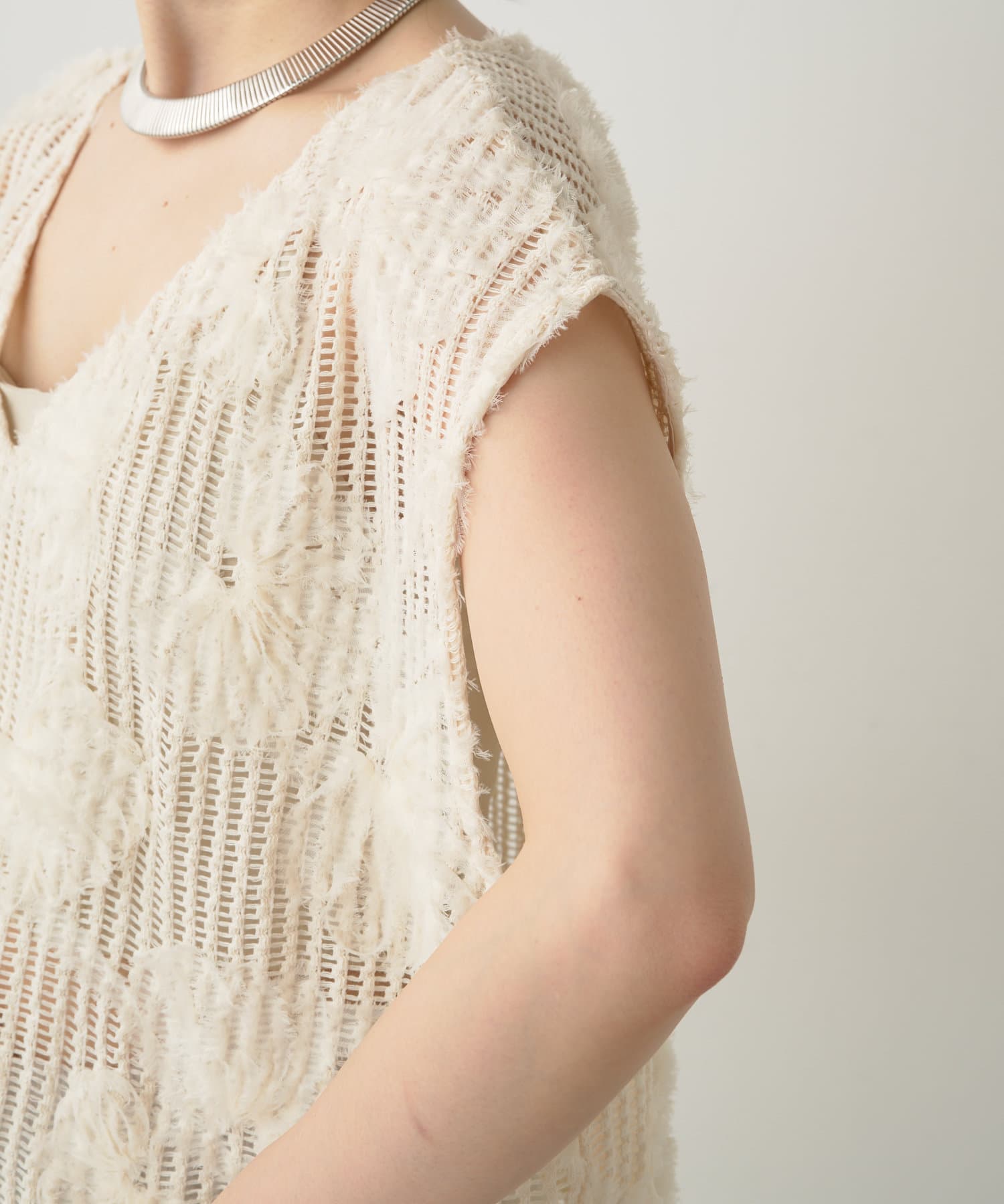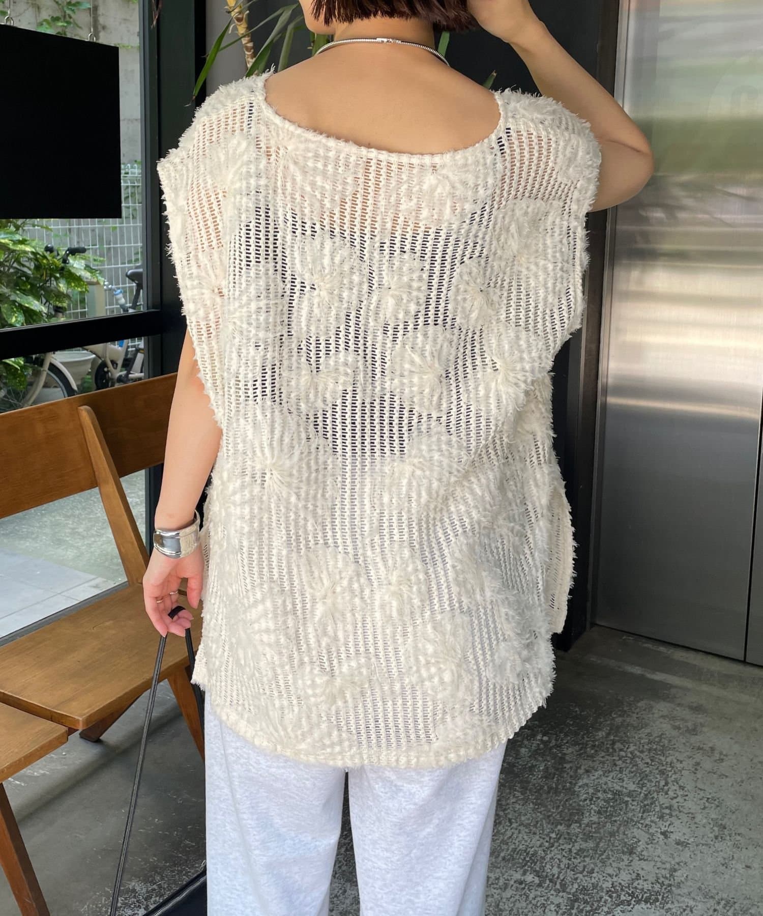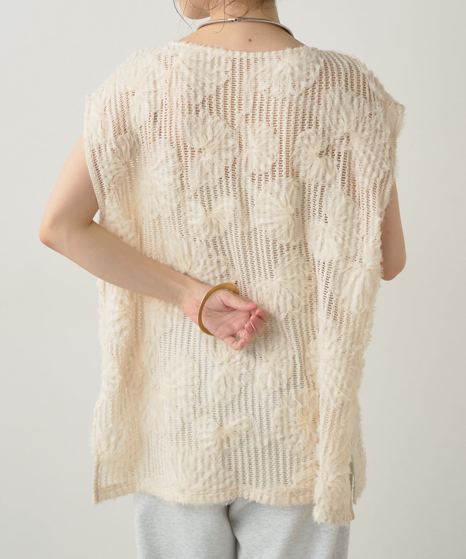 フラワーメッシュデザインが目を惹くニットタンクトップ