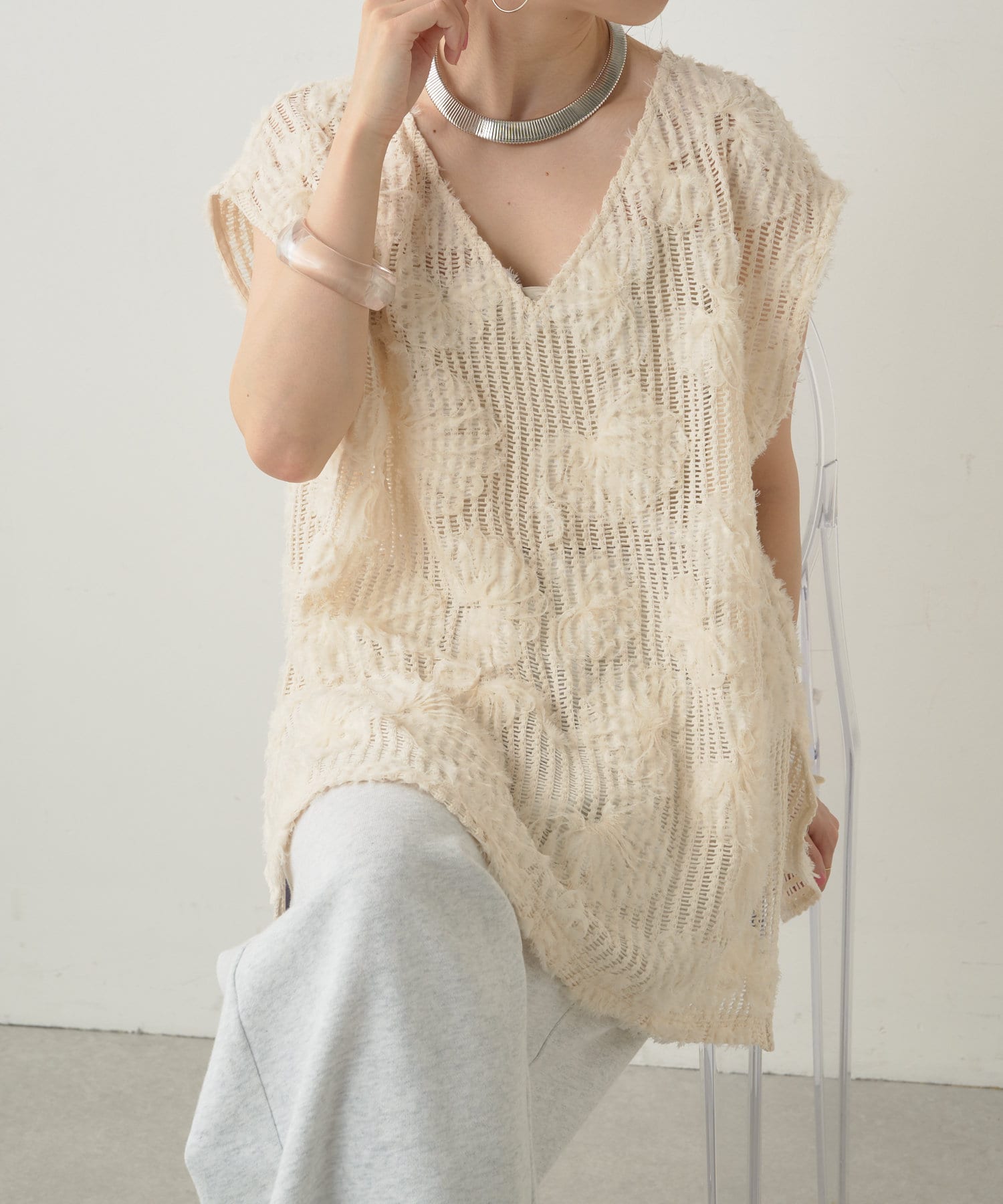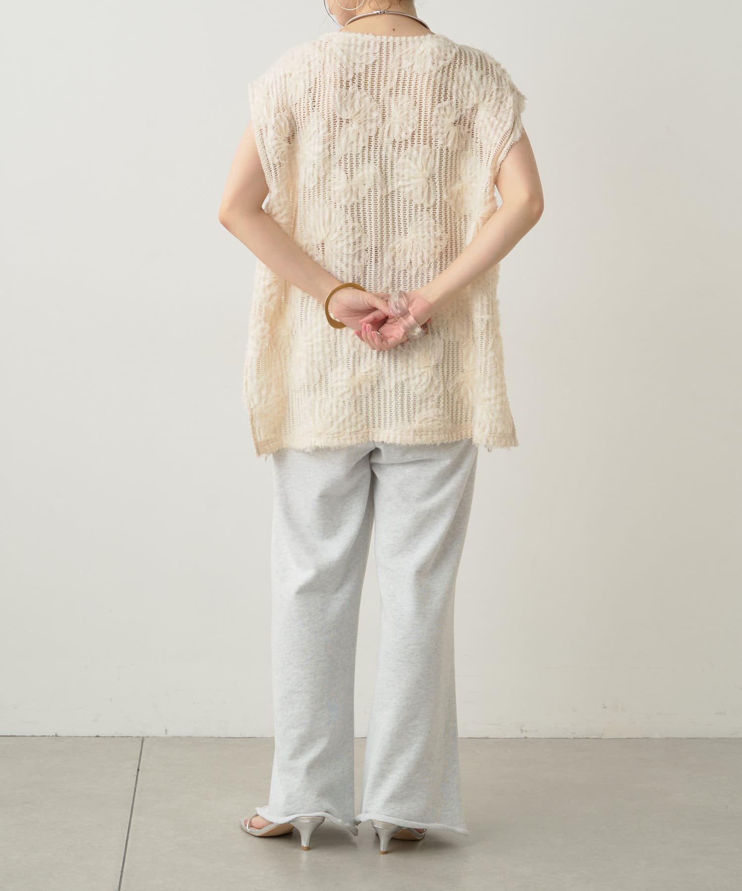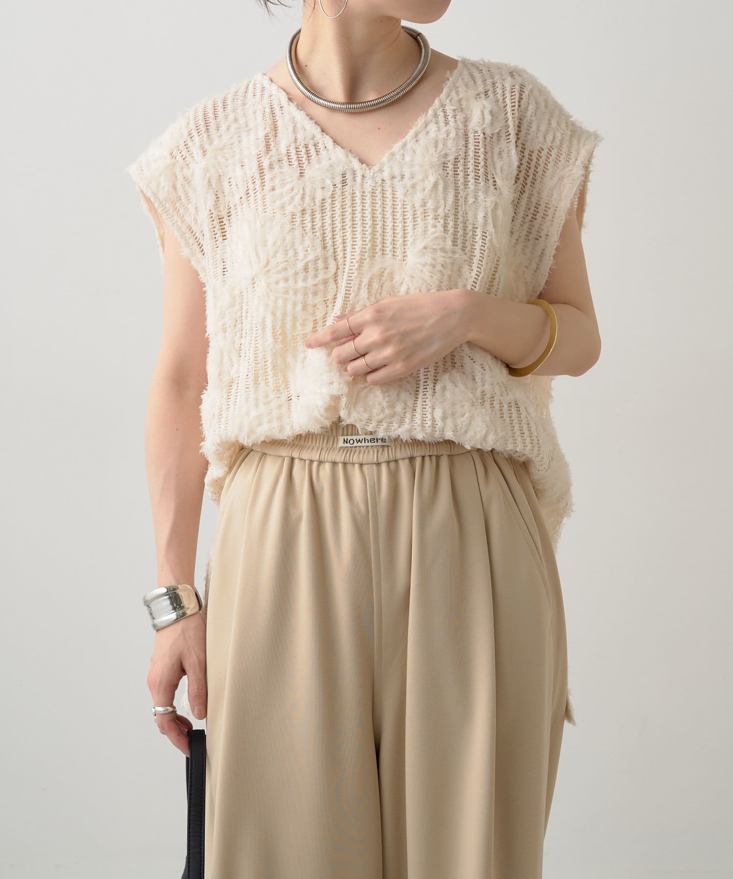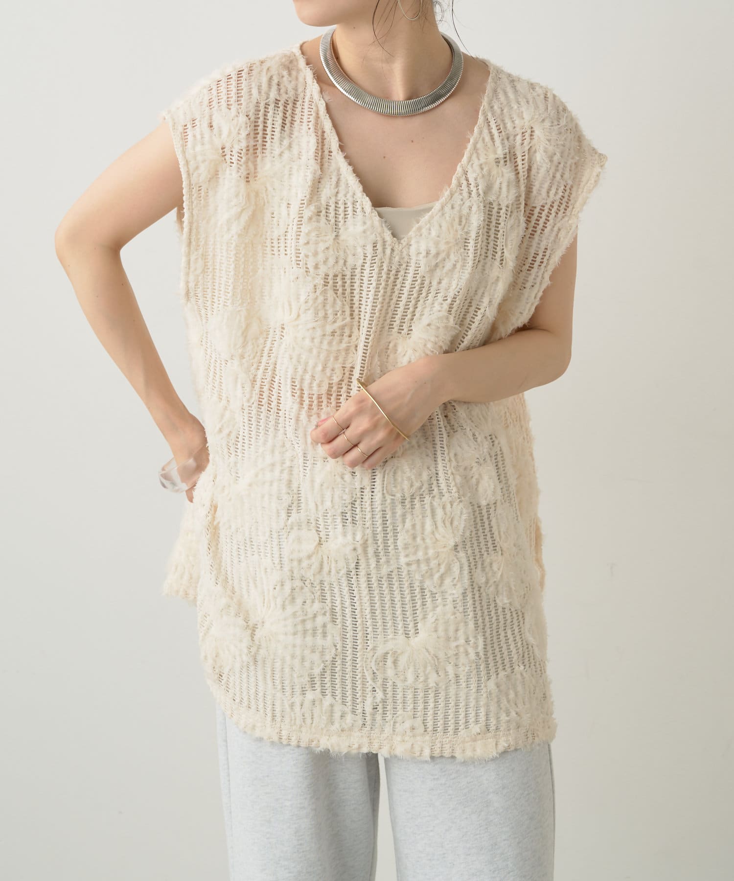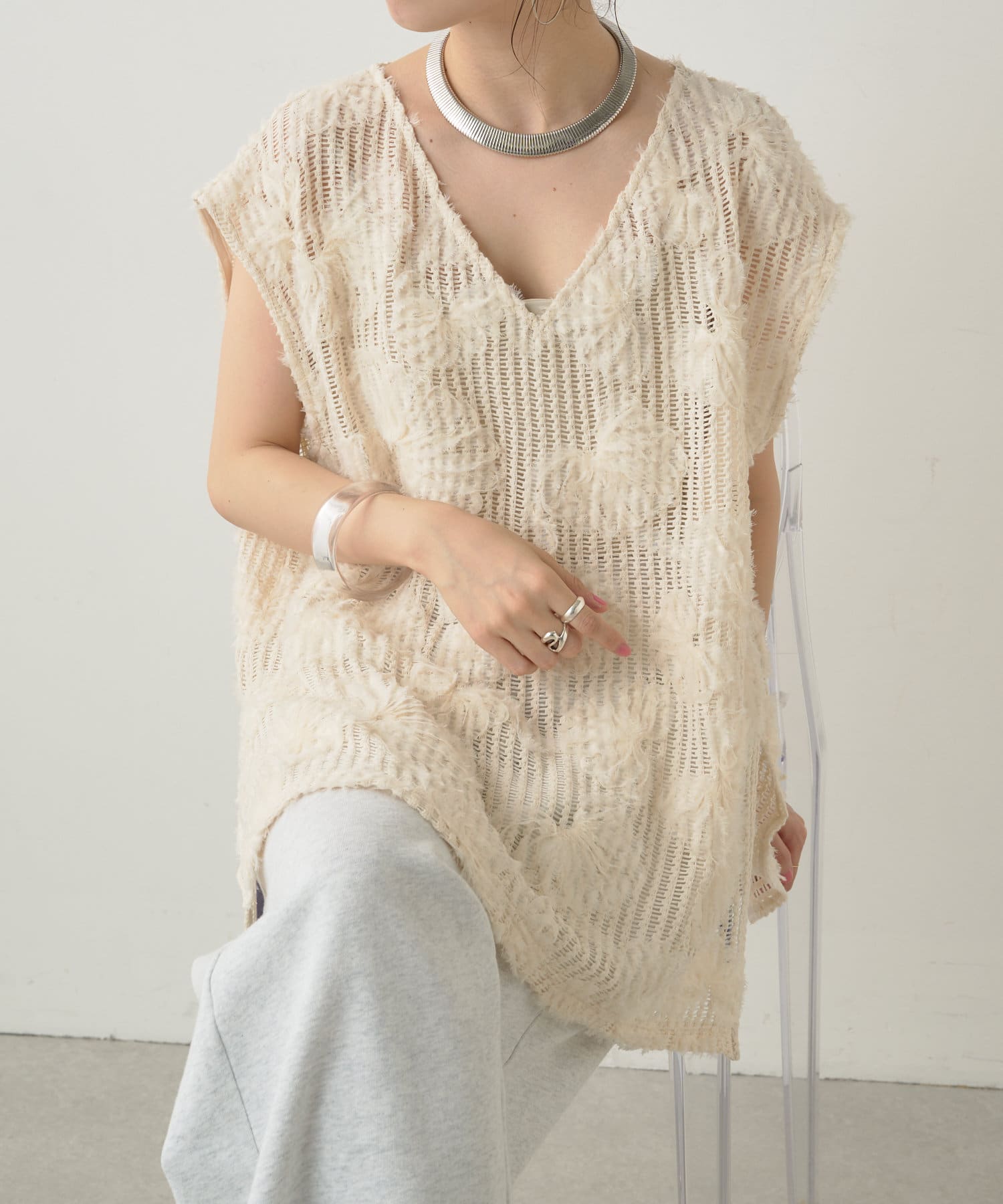 フラワーメッシュデザインが目を惹くニットタンクトップ