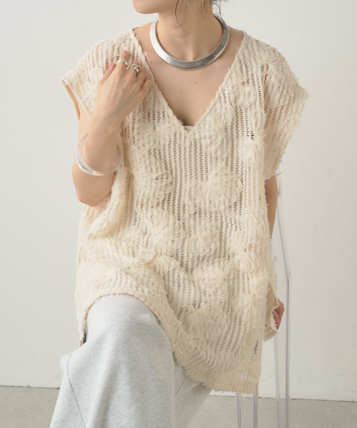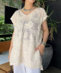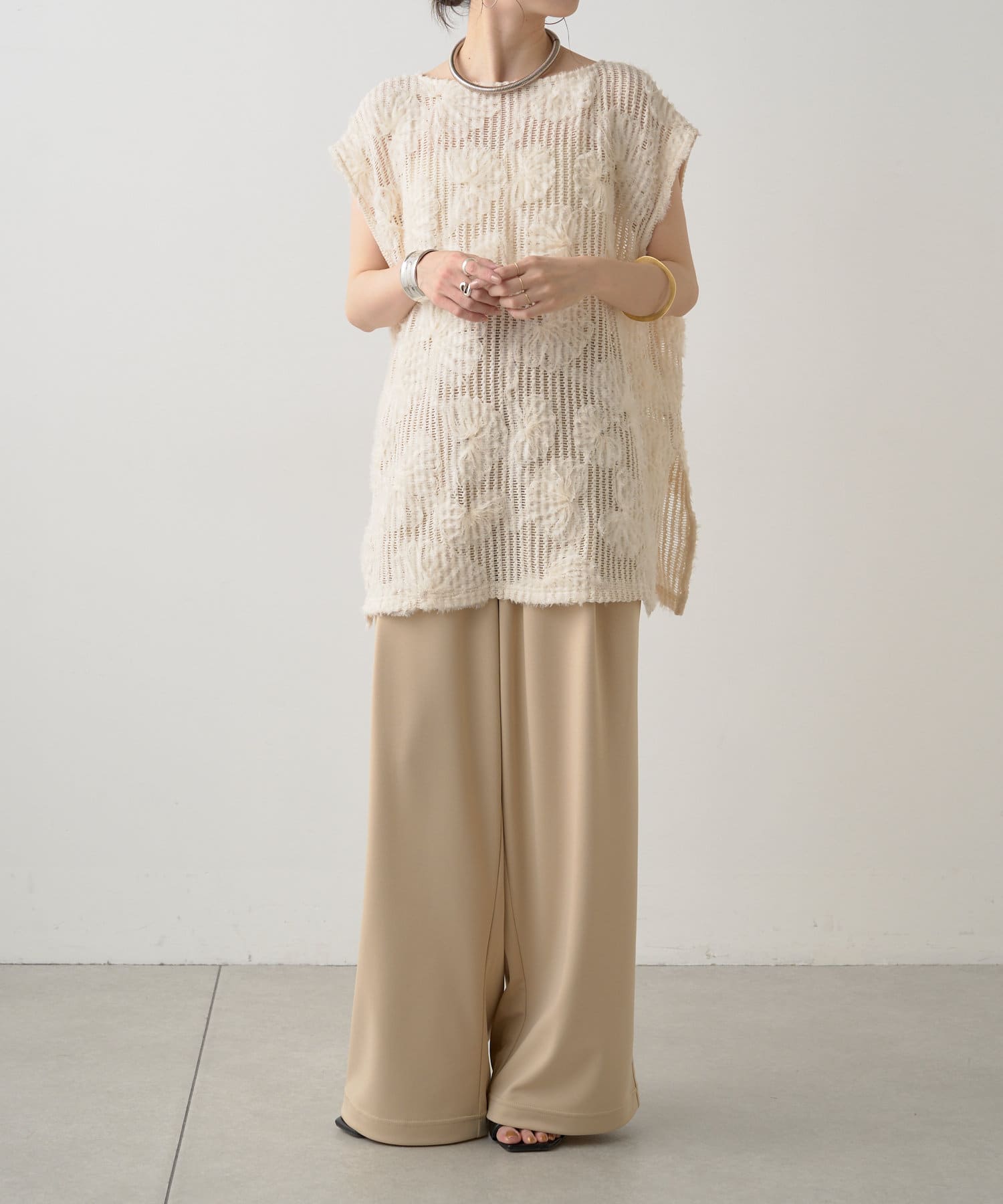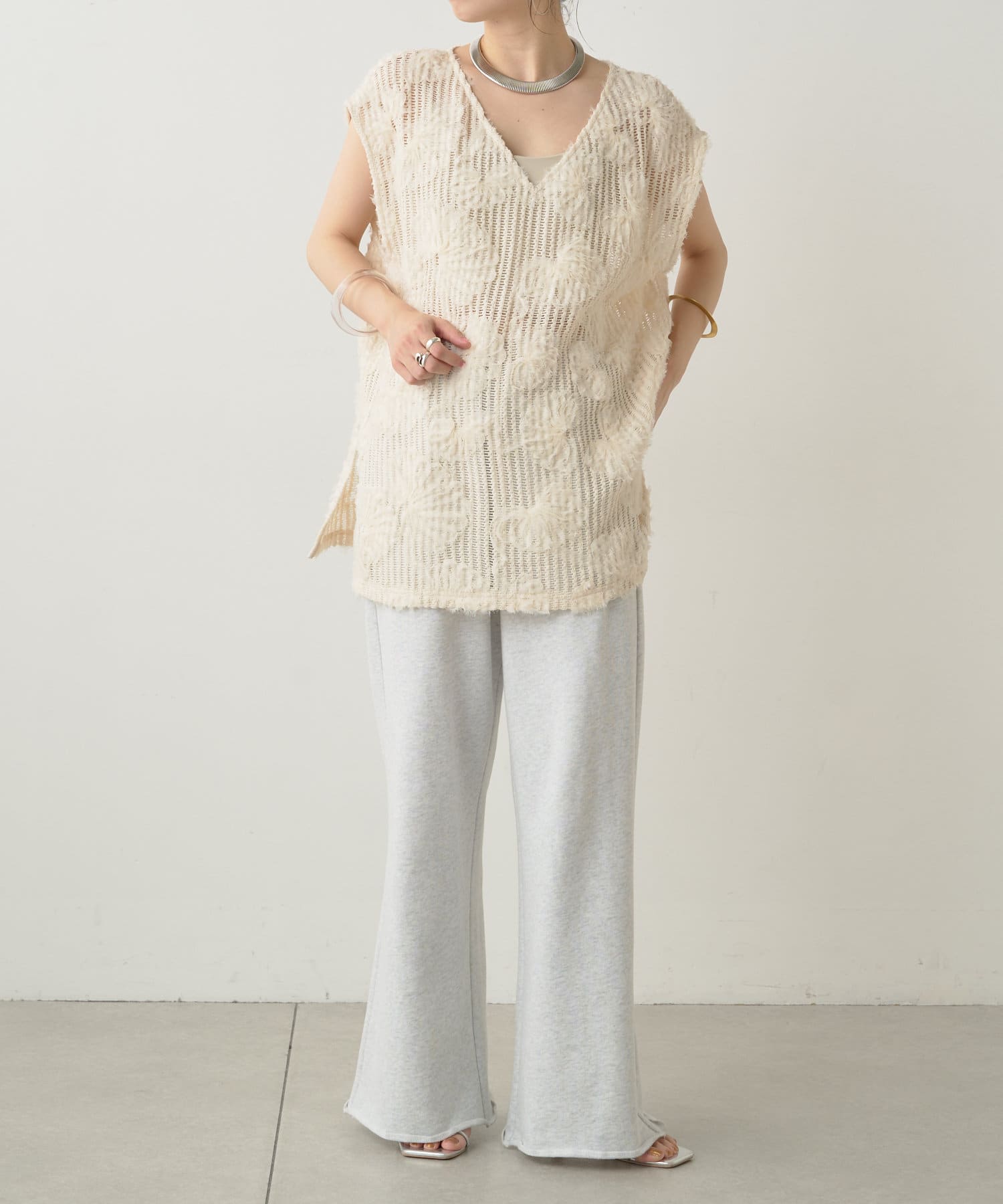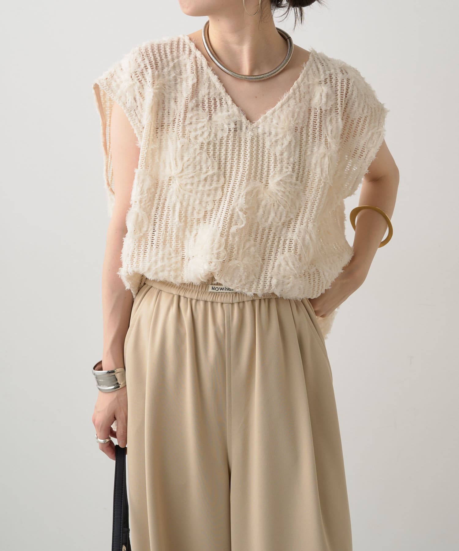 フラワーメッシュデザインが目を惹くニットタンクトップ