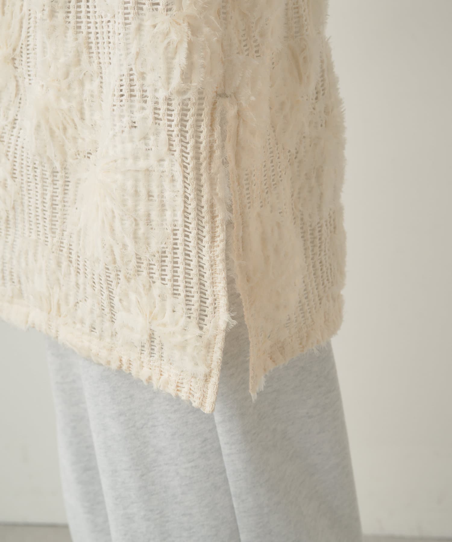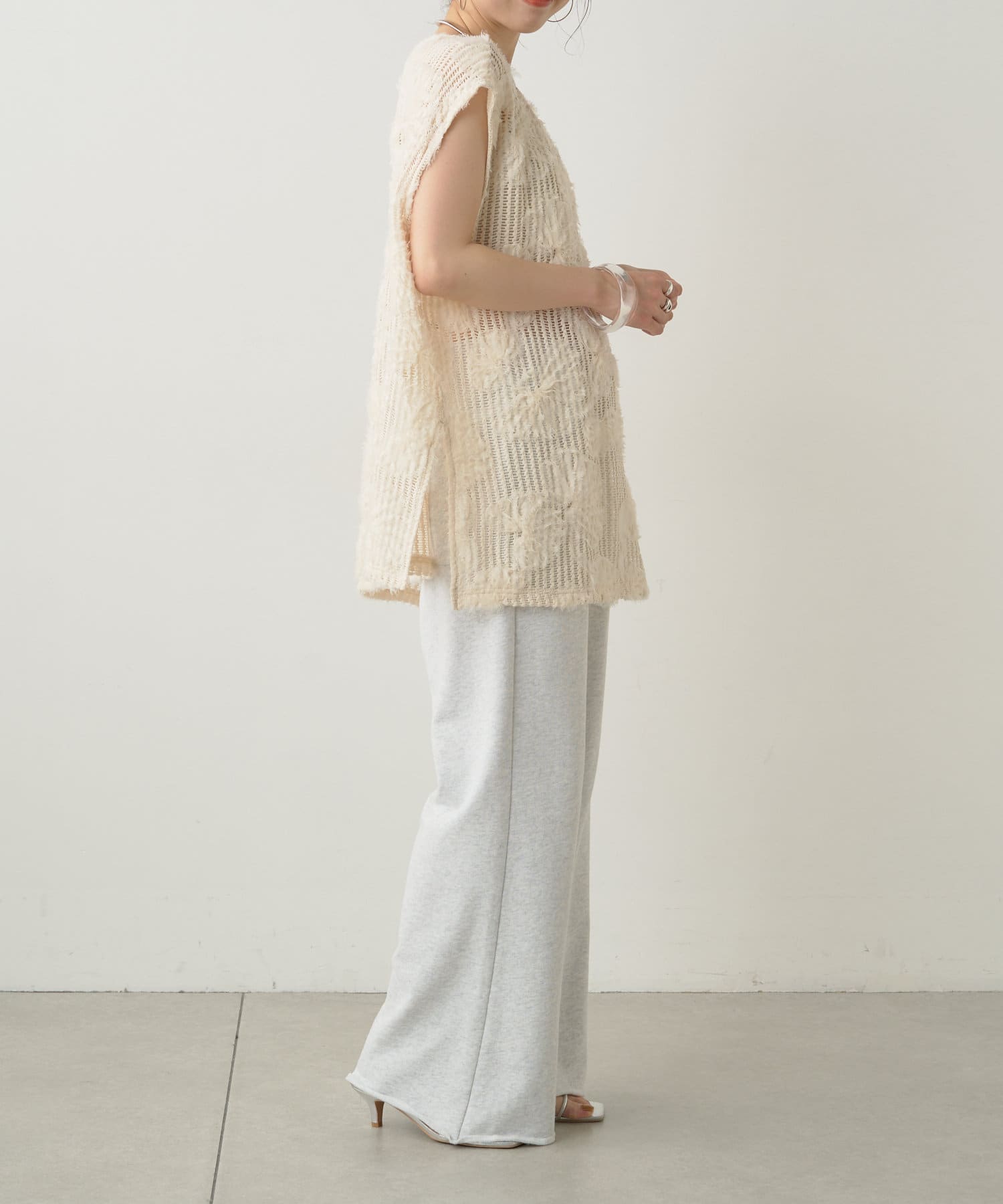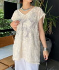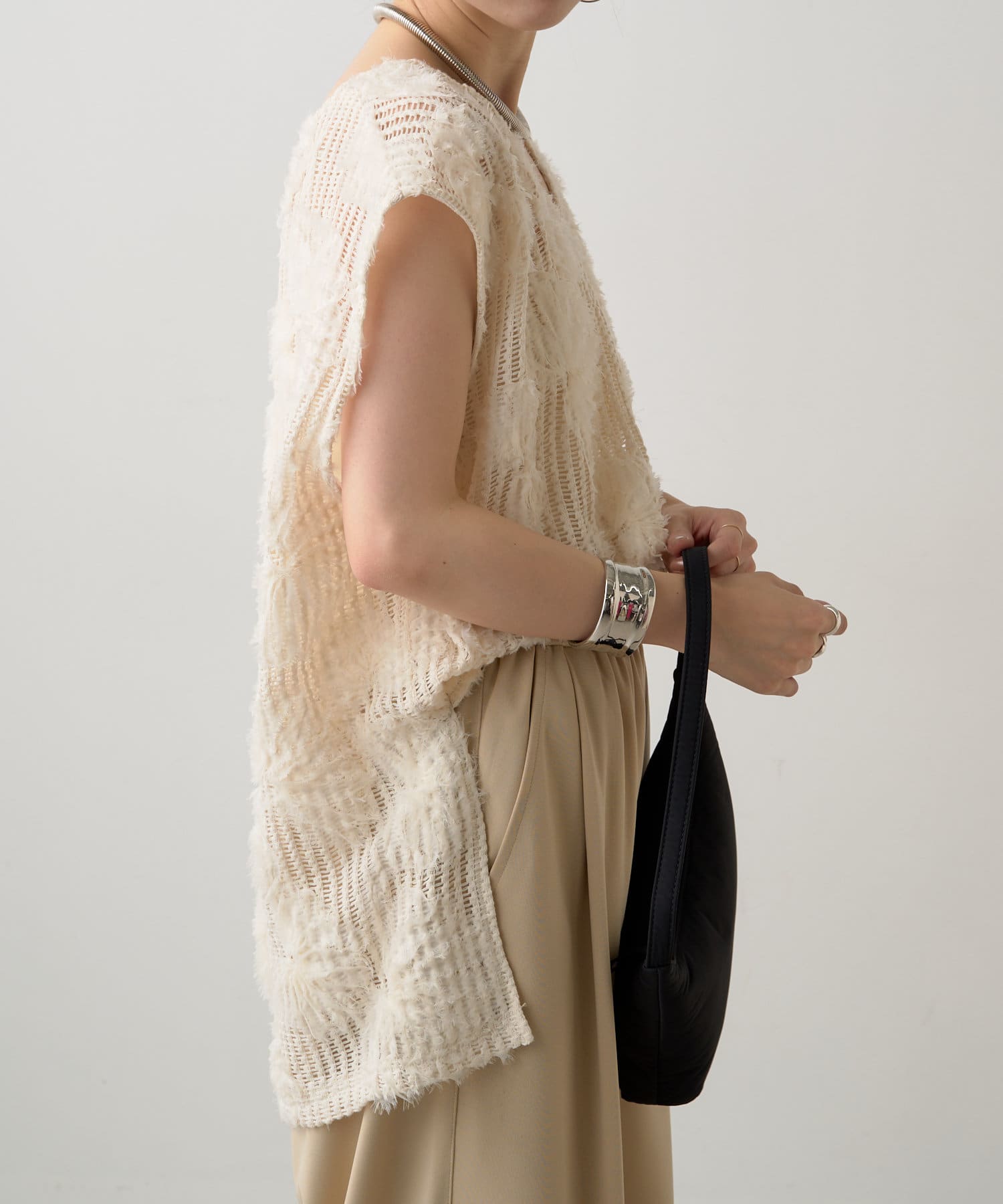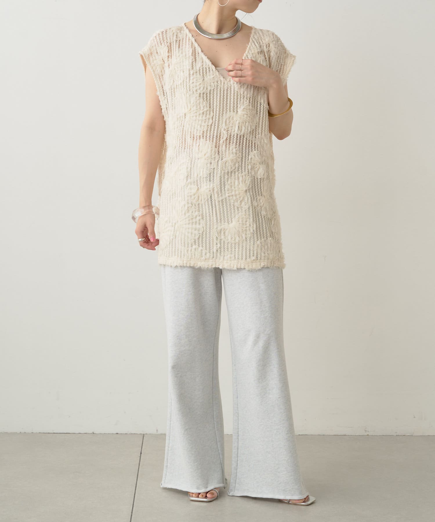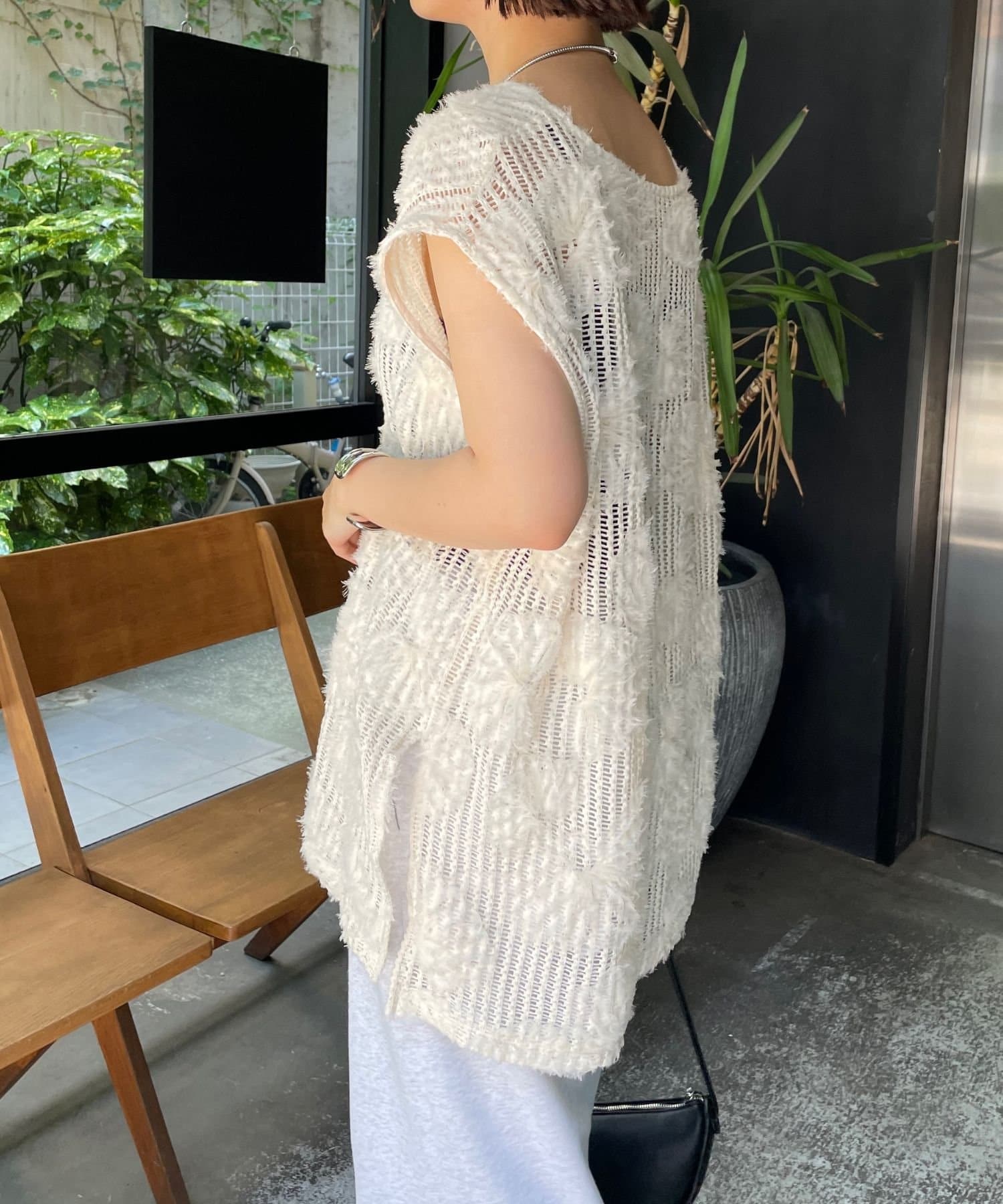フラワーメッシュデザインが目を惹くニットタンクトップ