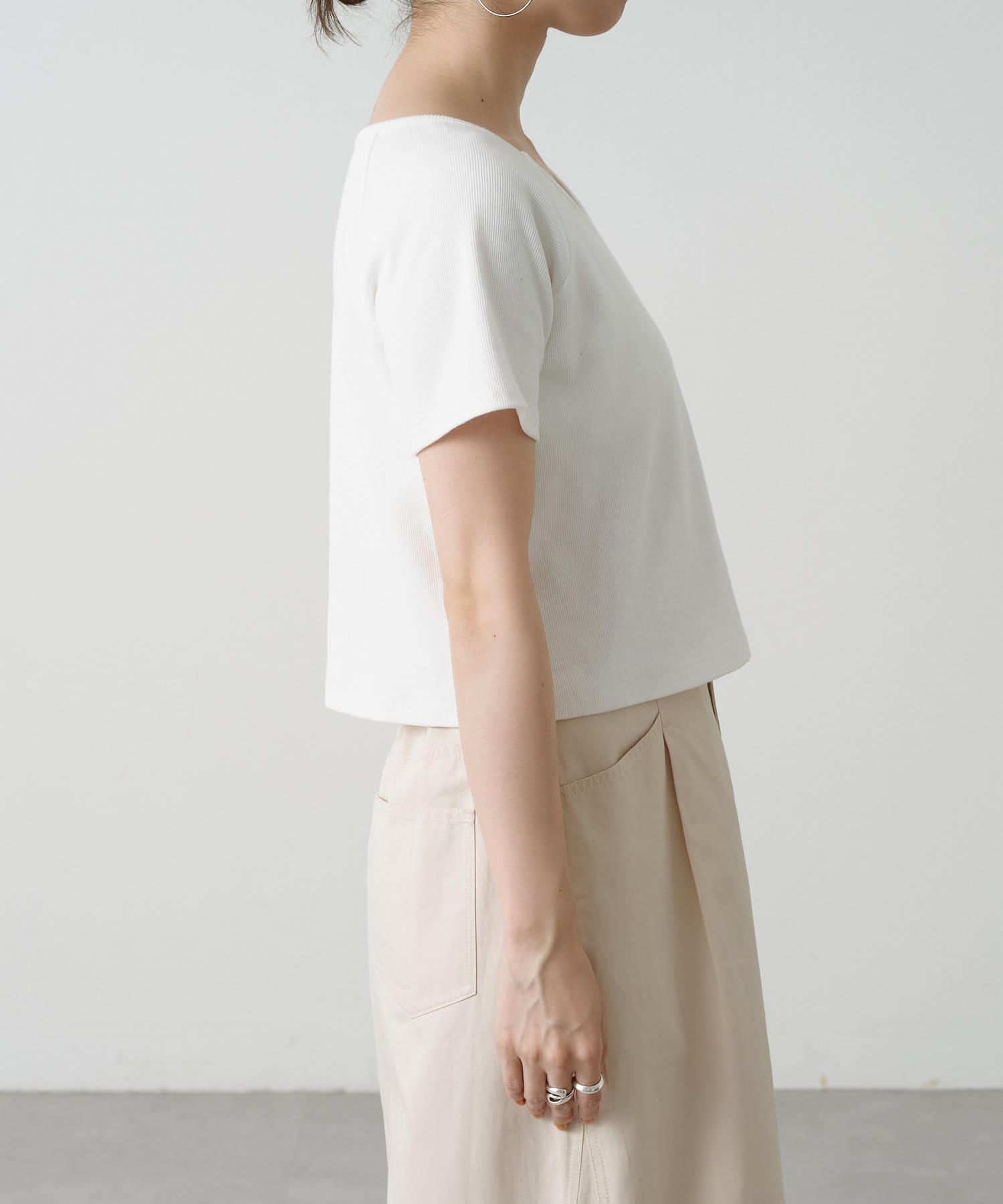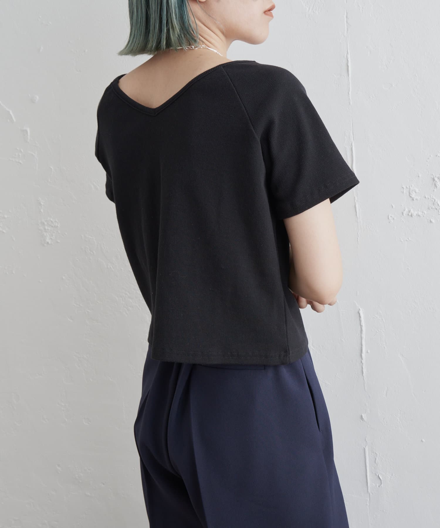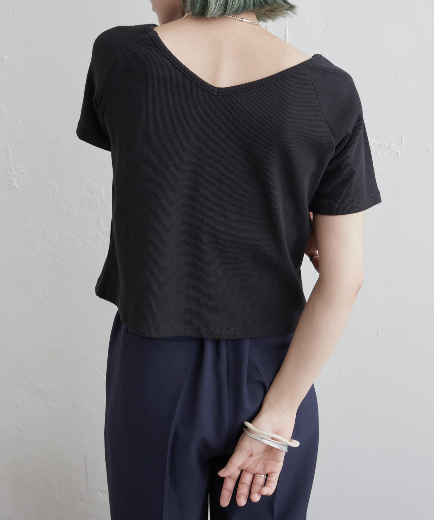 ・Vネックとクルーネックの2wayで着られるカットソー。