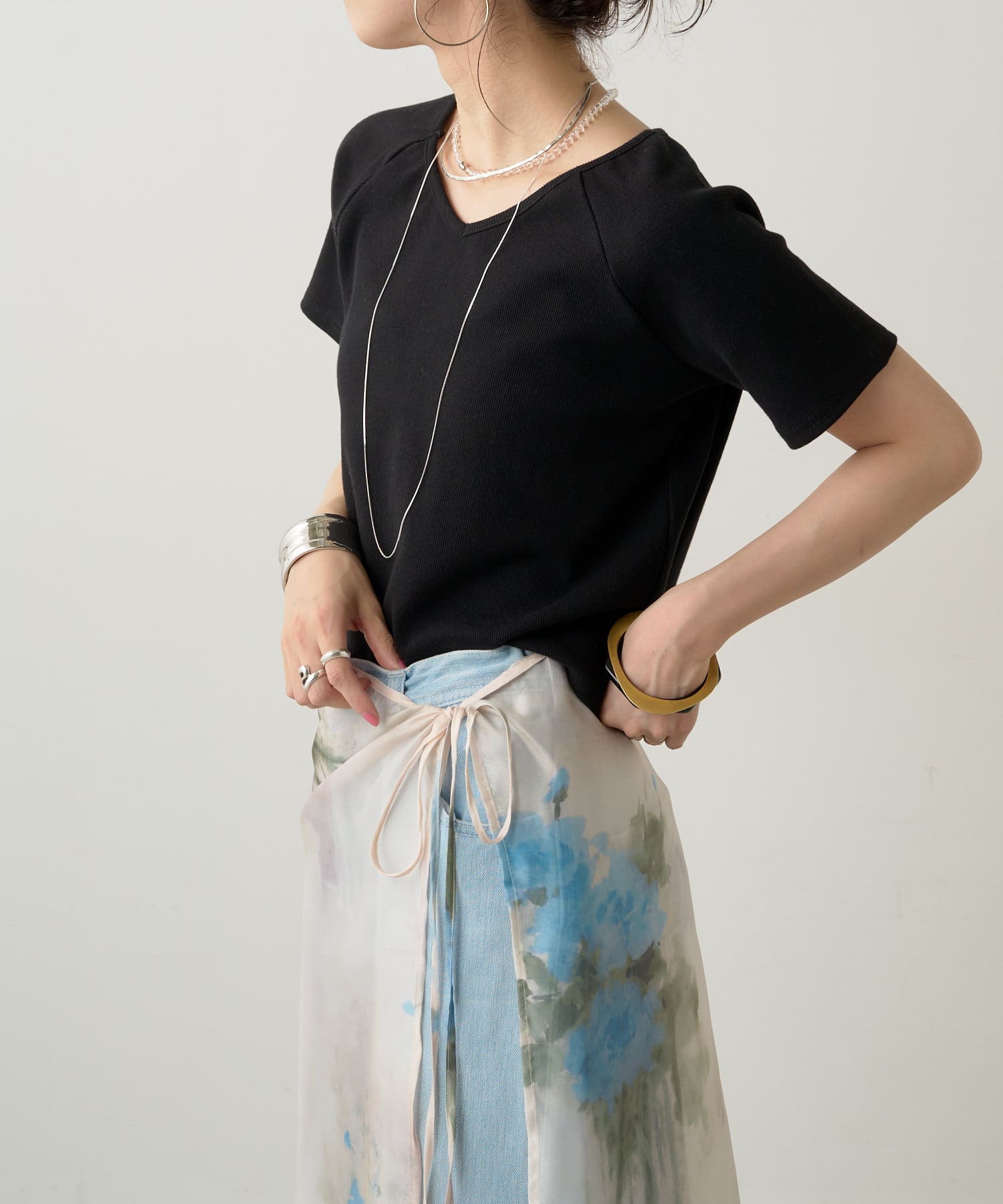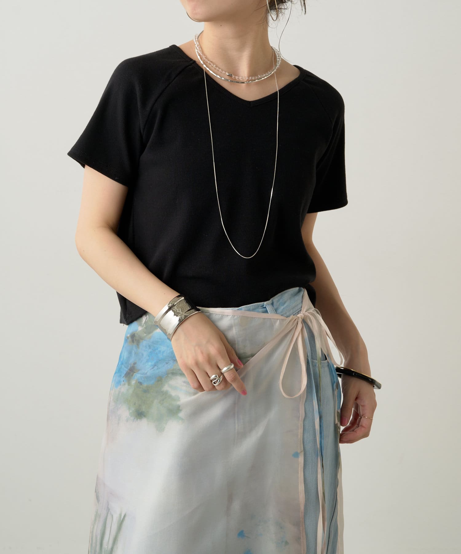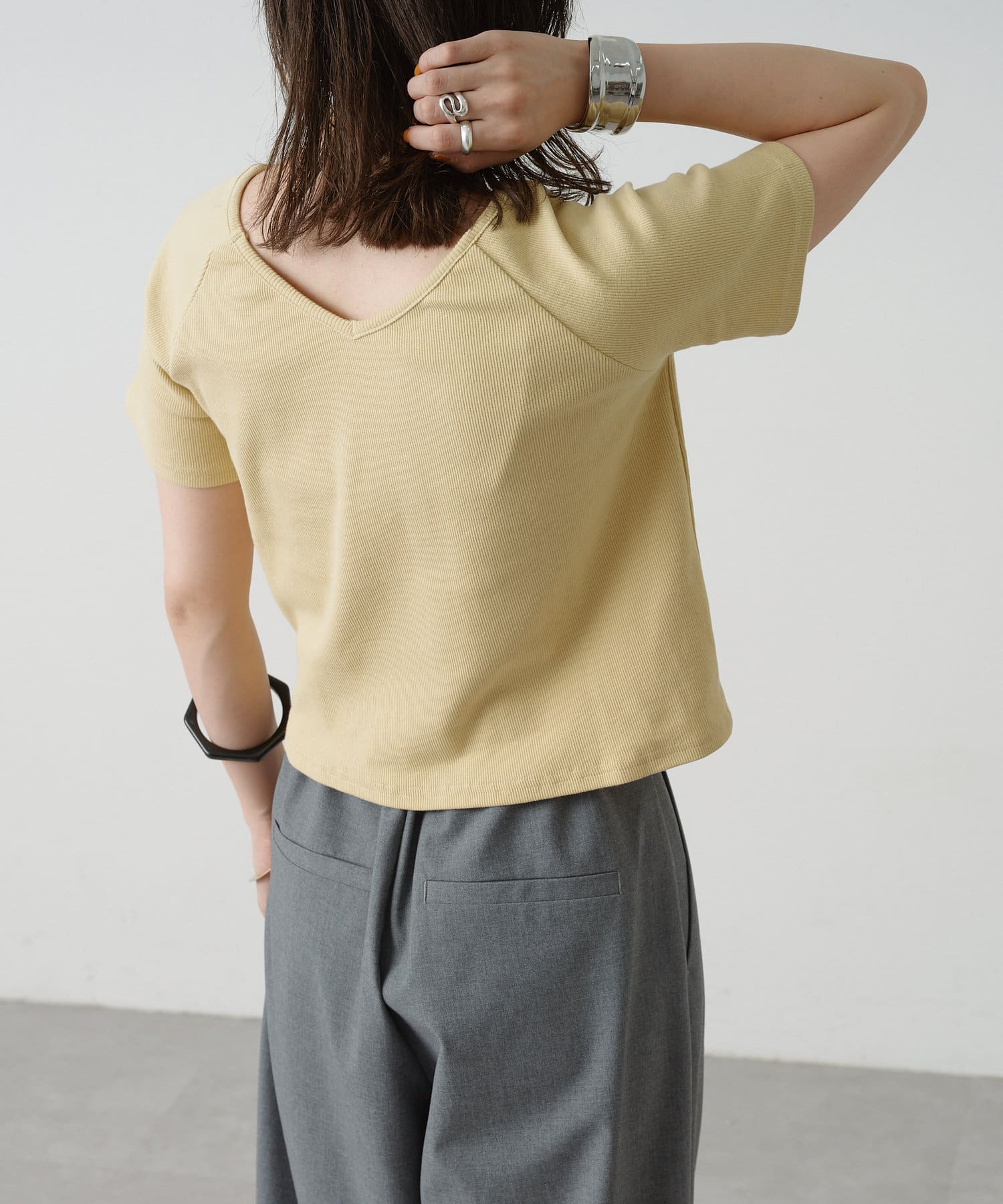 ・Vネックとクルーネックの2wayで着られるカットソー。