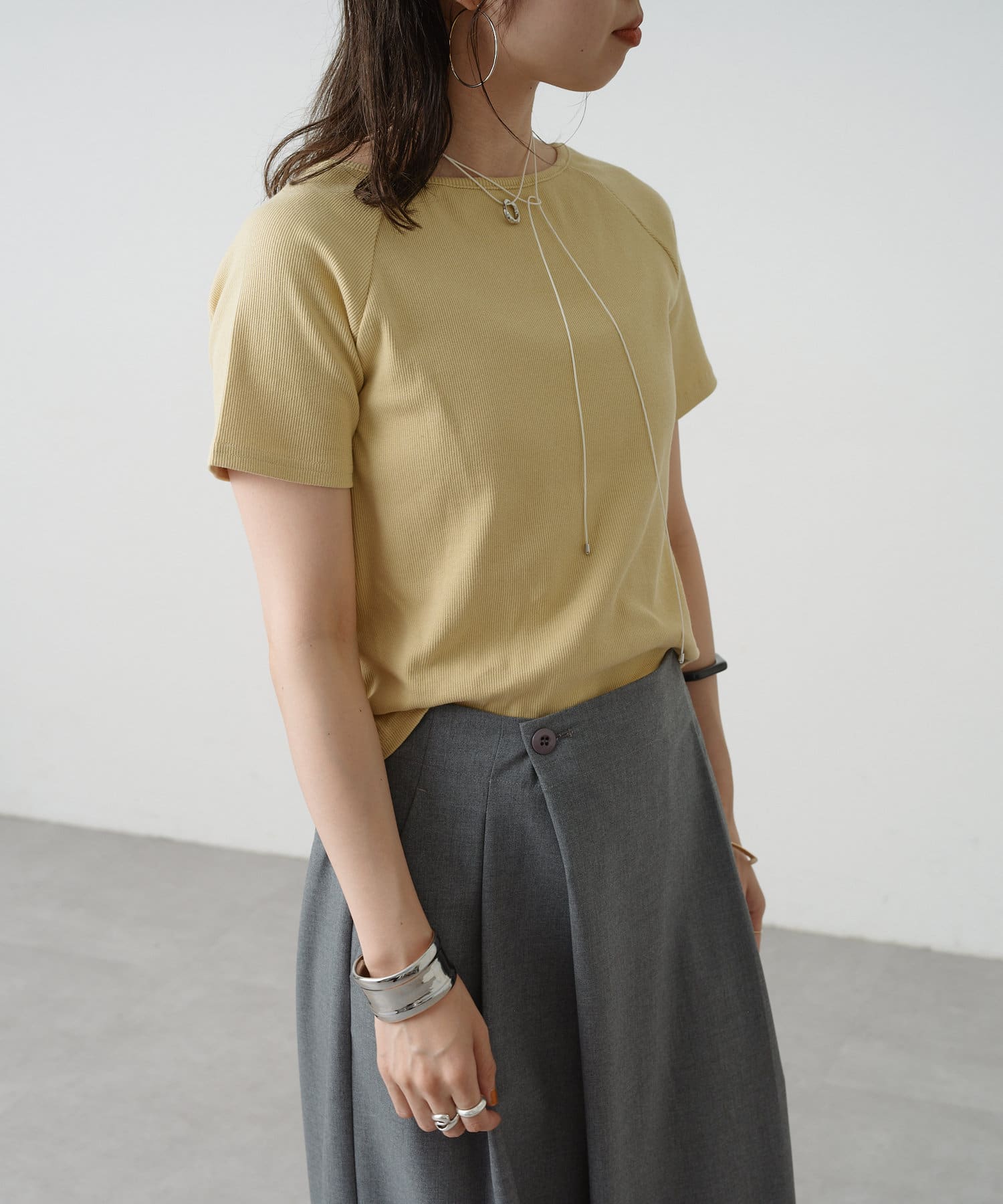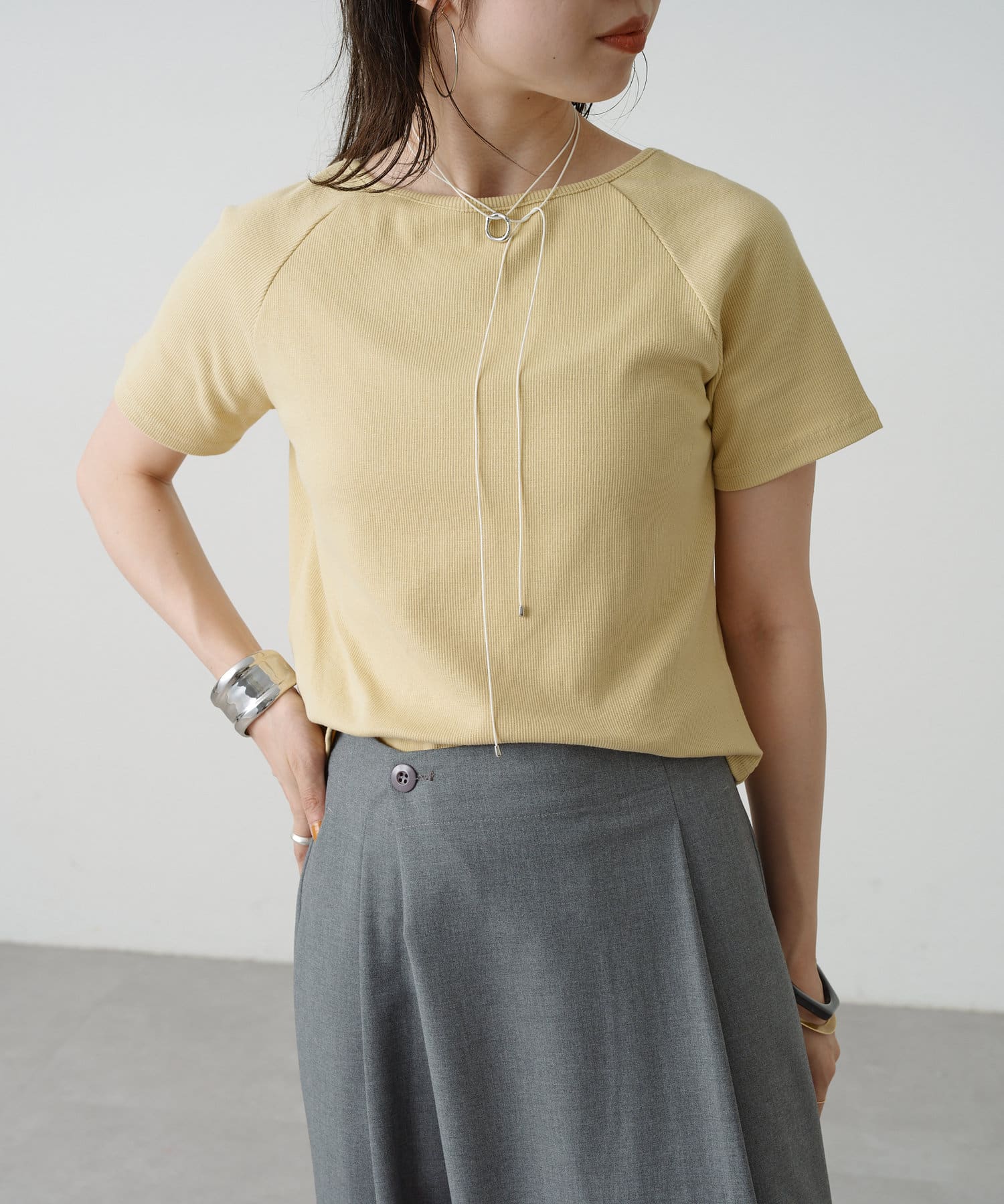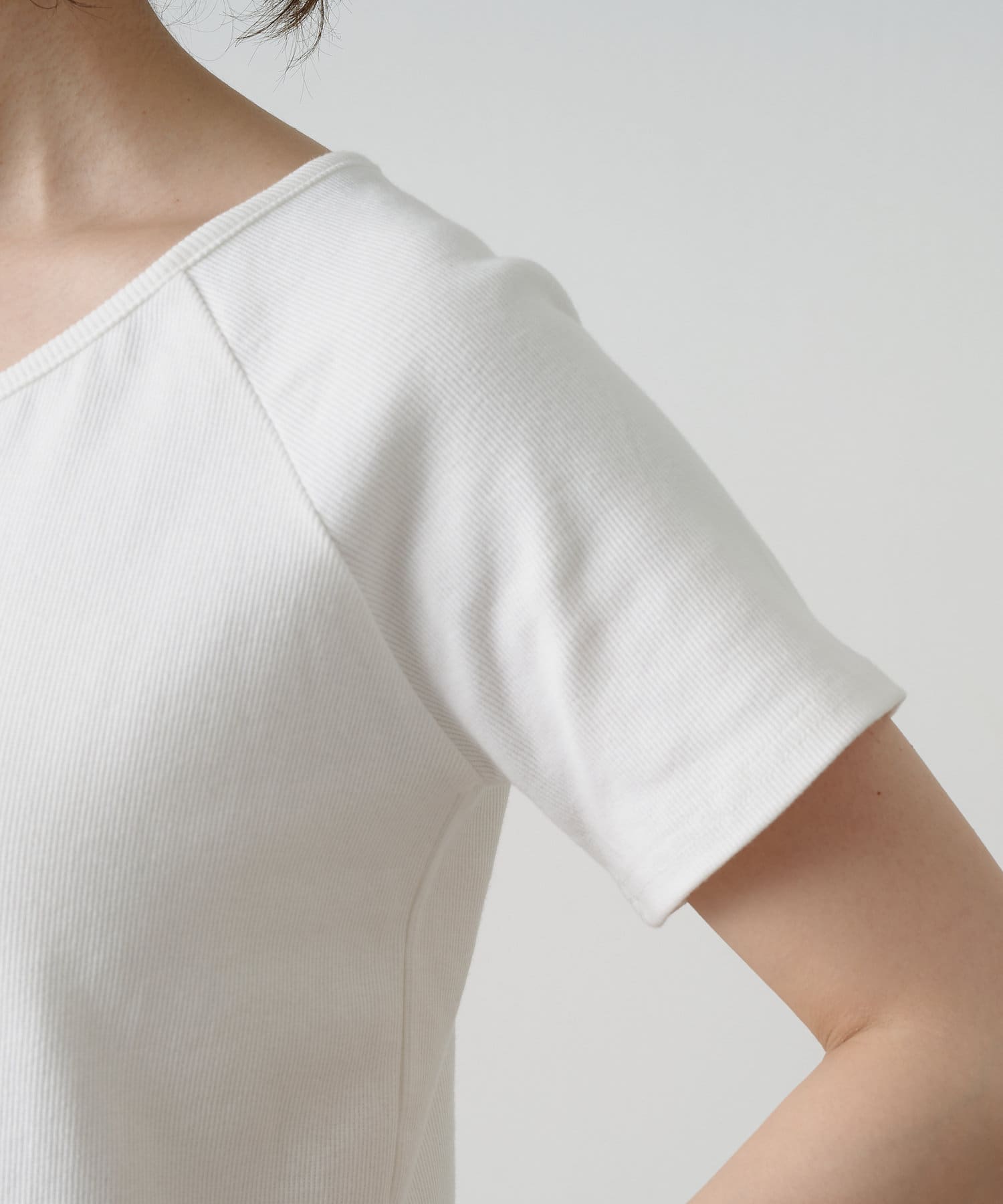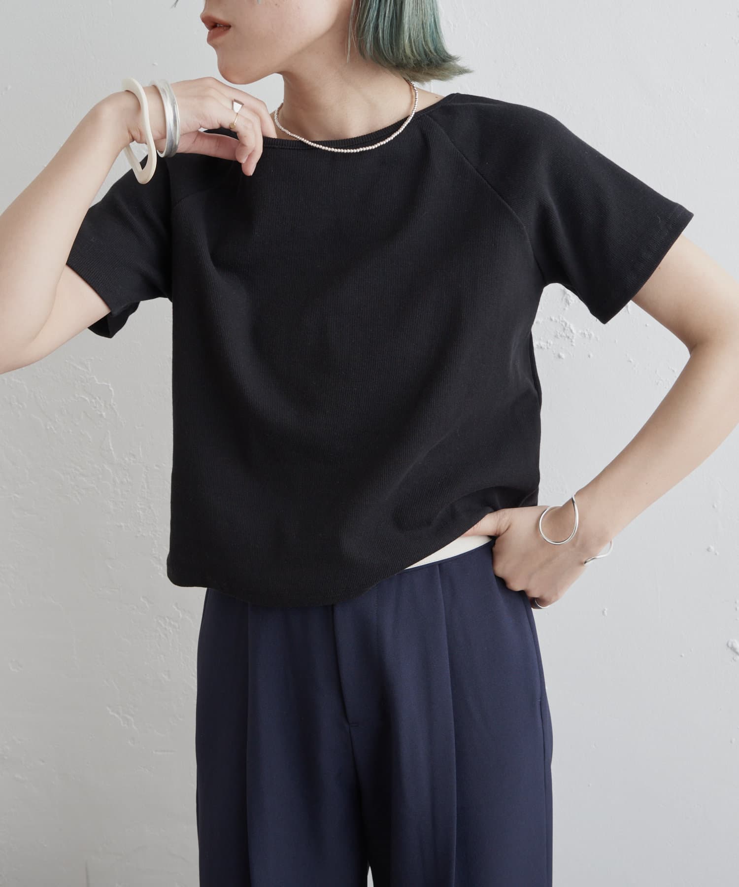 トレンドライクな雰囲気漂うテレコラグランTシャツ
