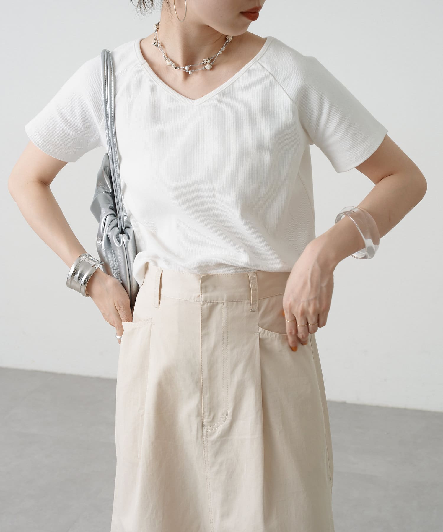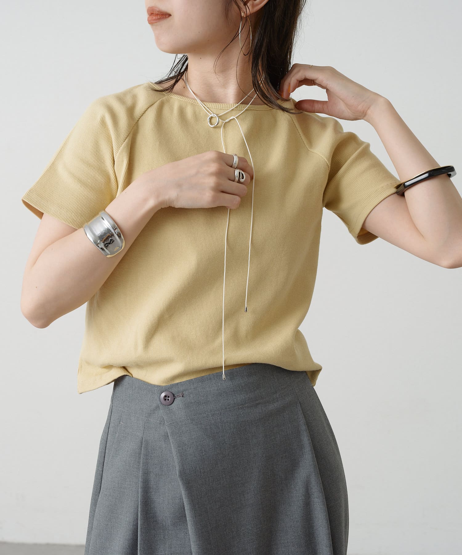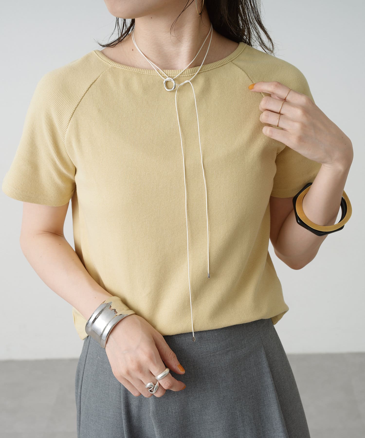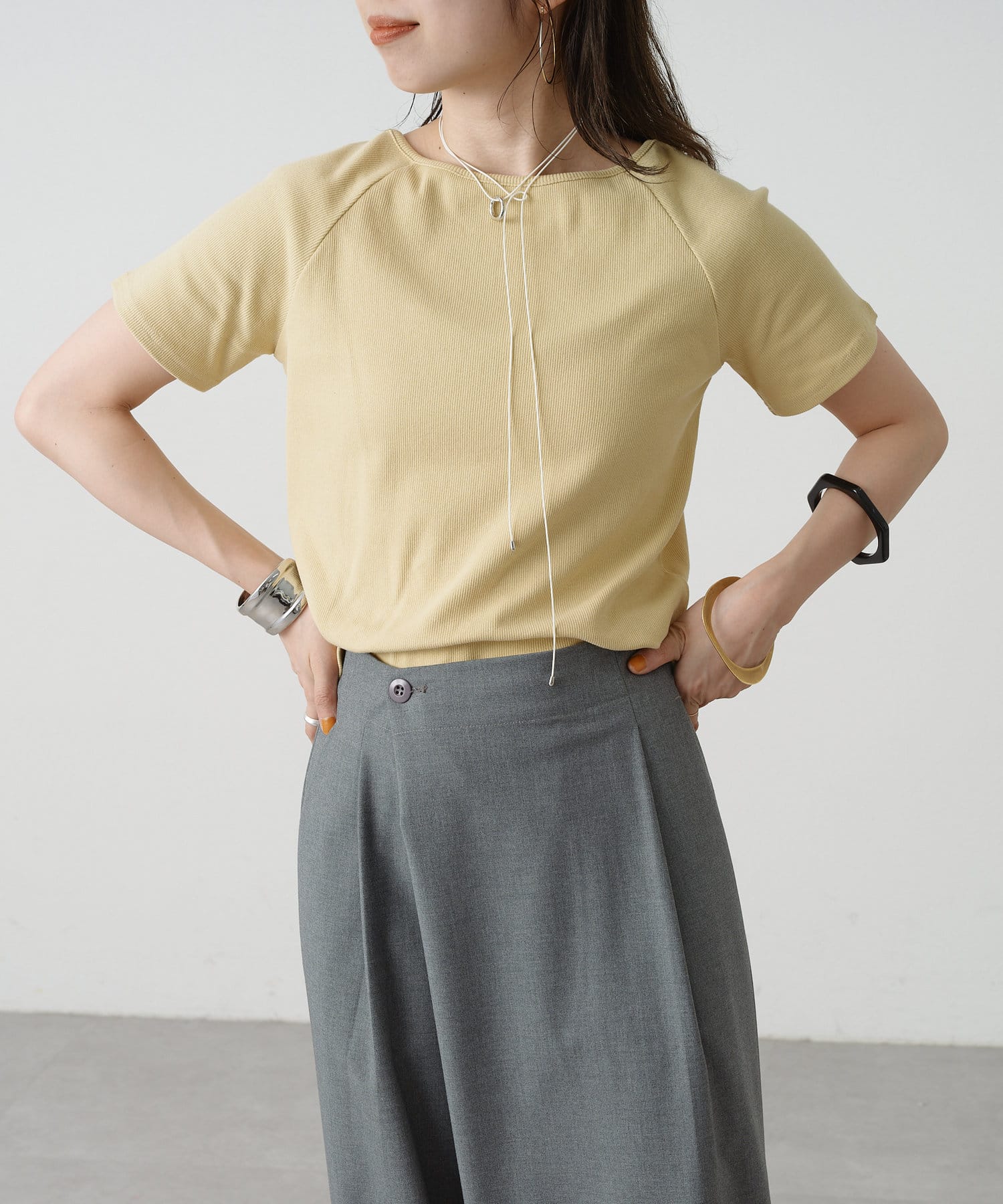 トレンドライクな雰囲気漂うテレコラグランTシャツ