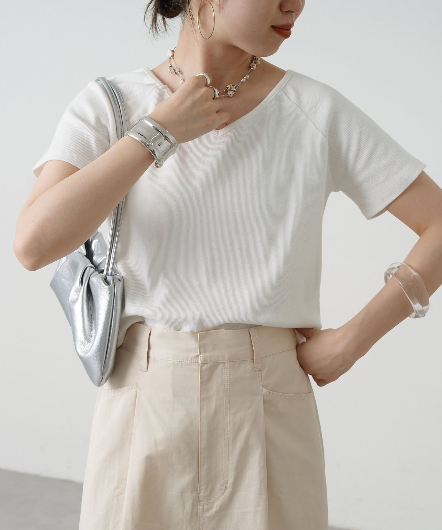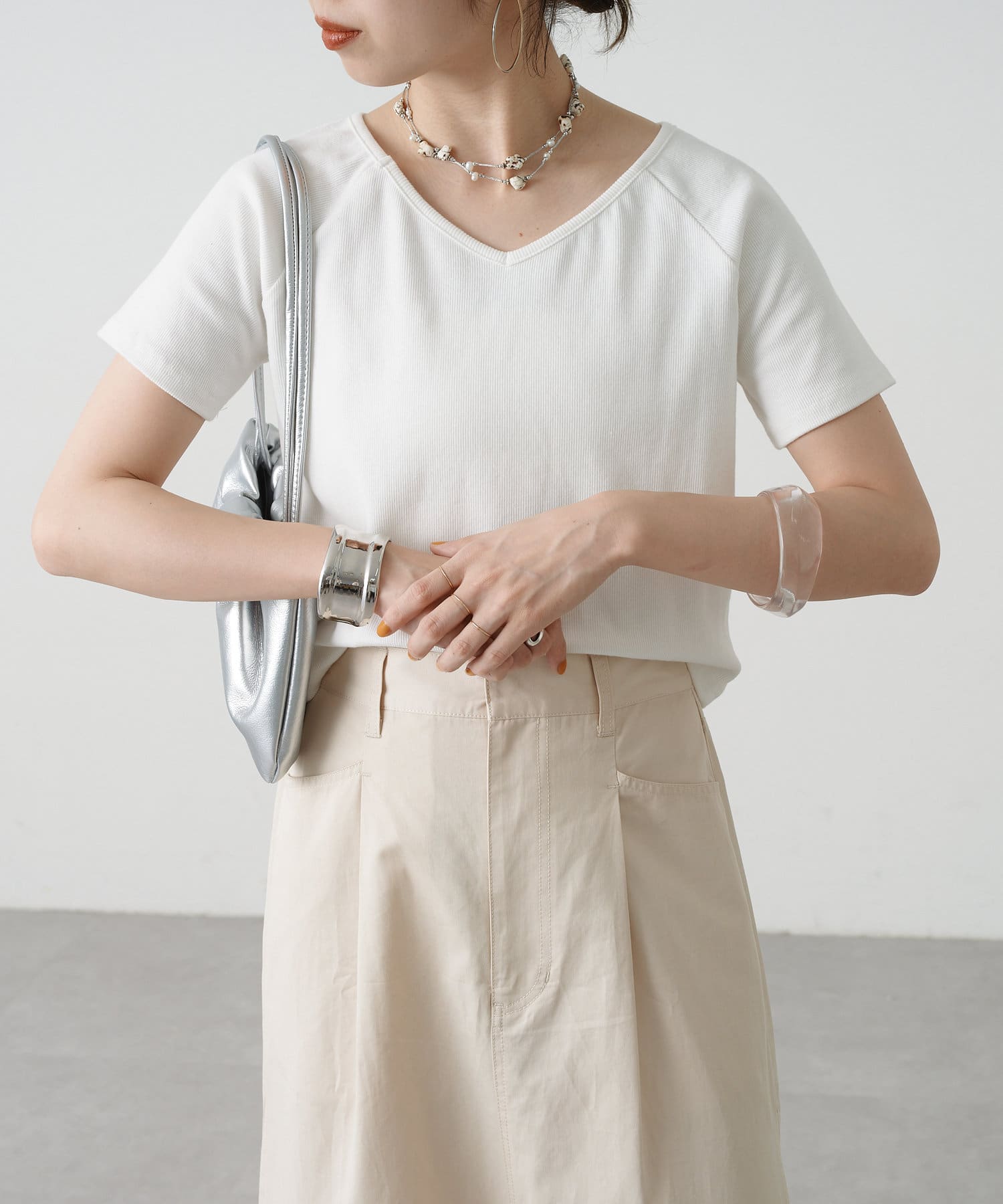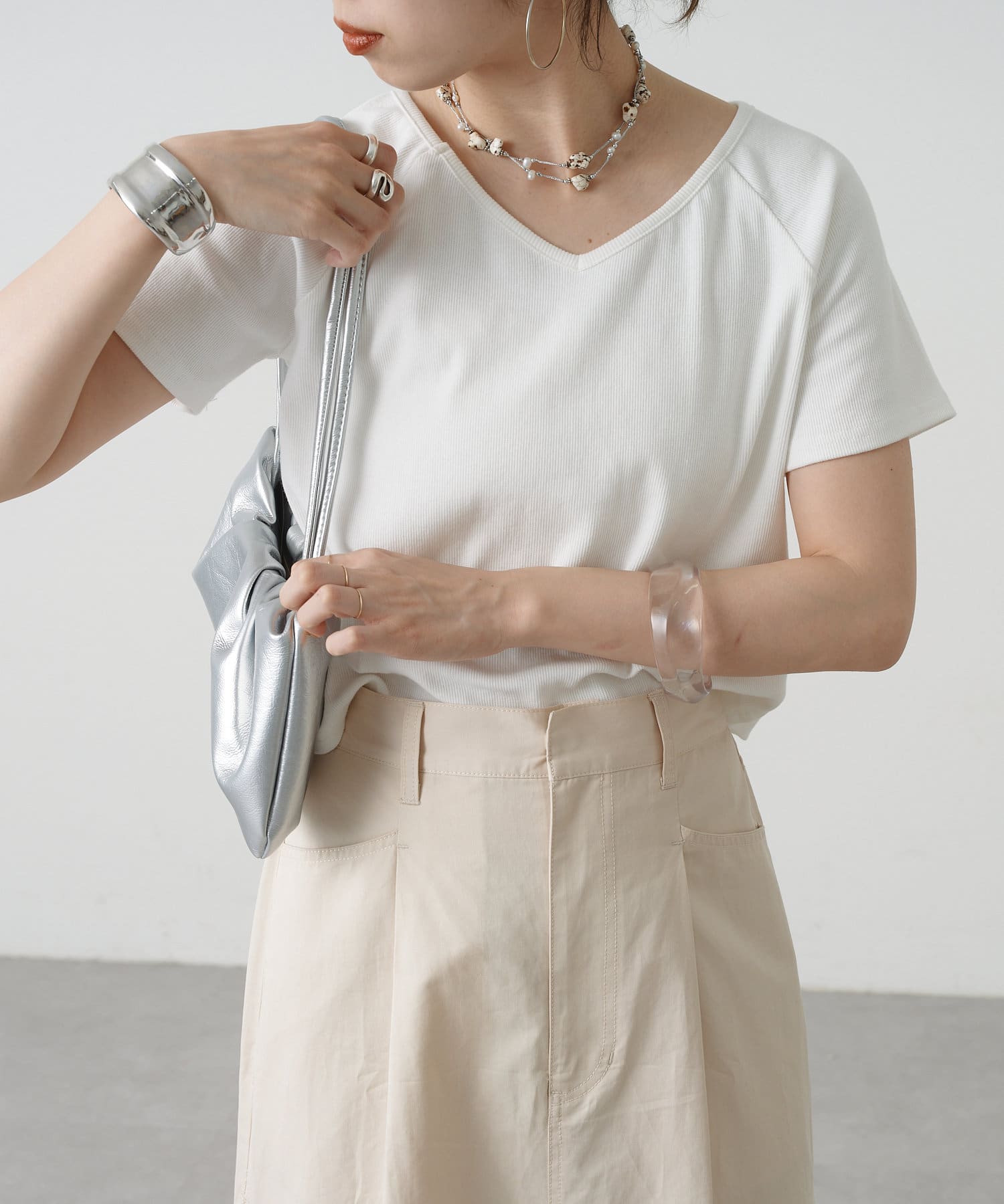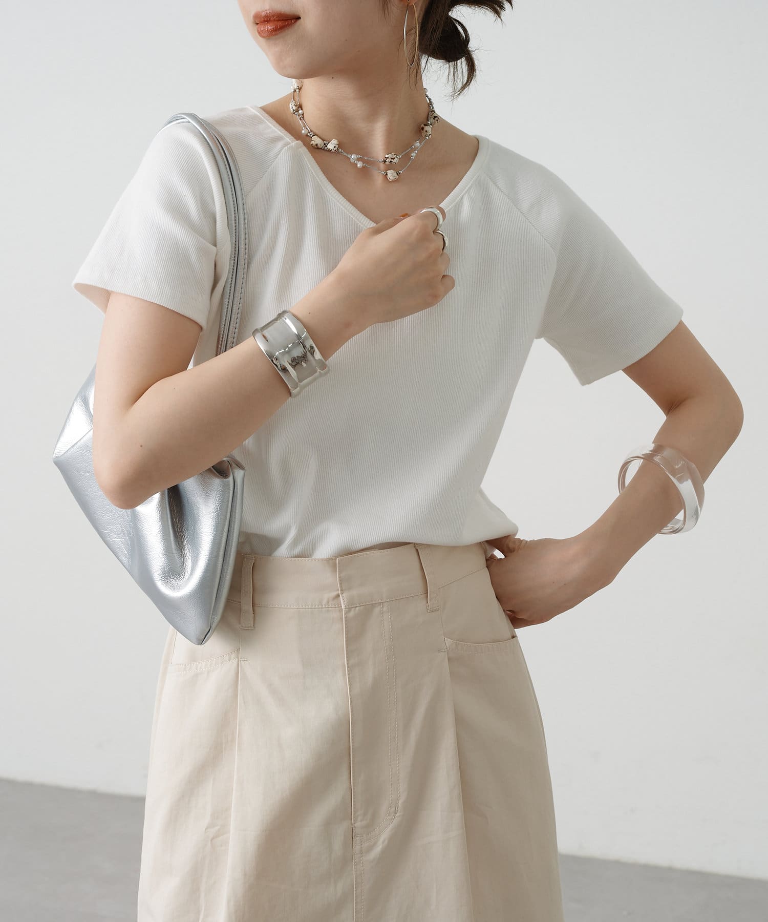トレンドライクな雰囲気漂うテレコラグランTシャツ