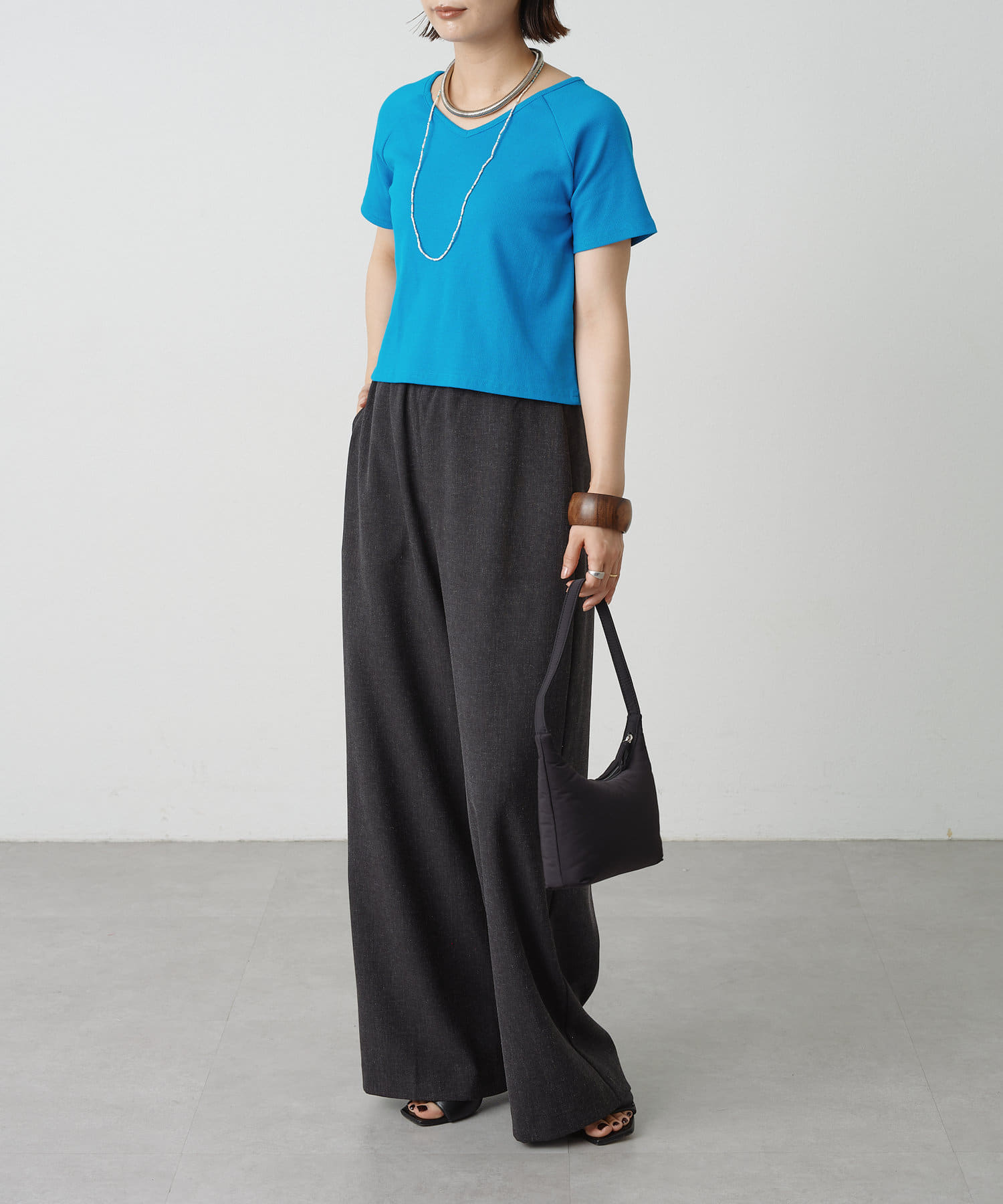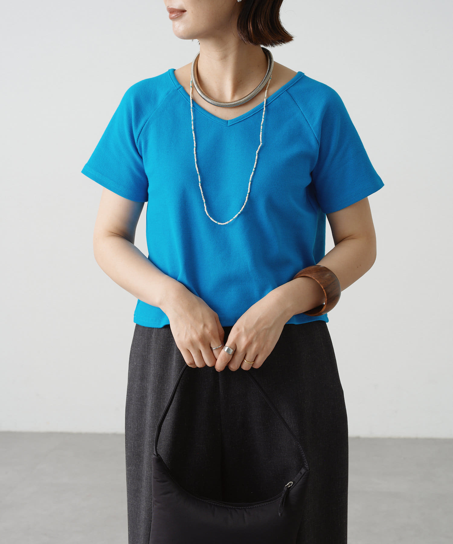 ・Vネックとクルーネックの2wayで着られるカットソー。