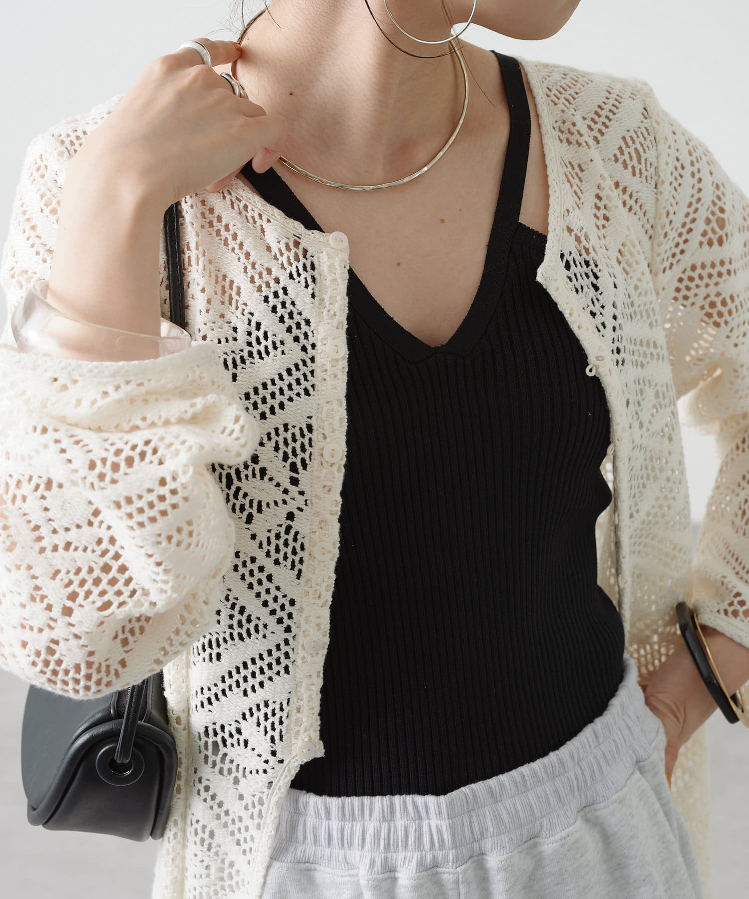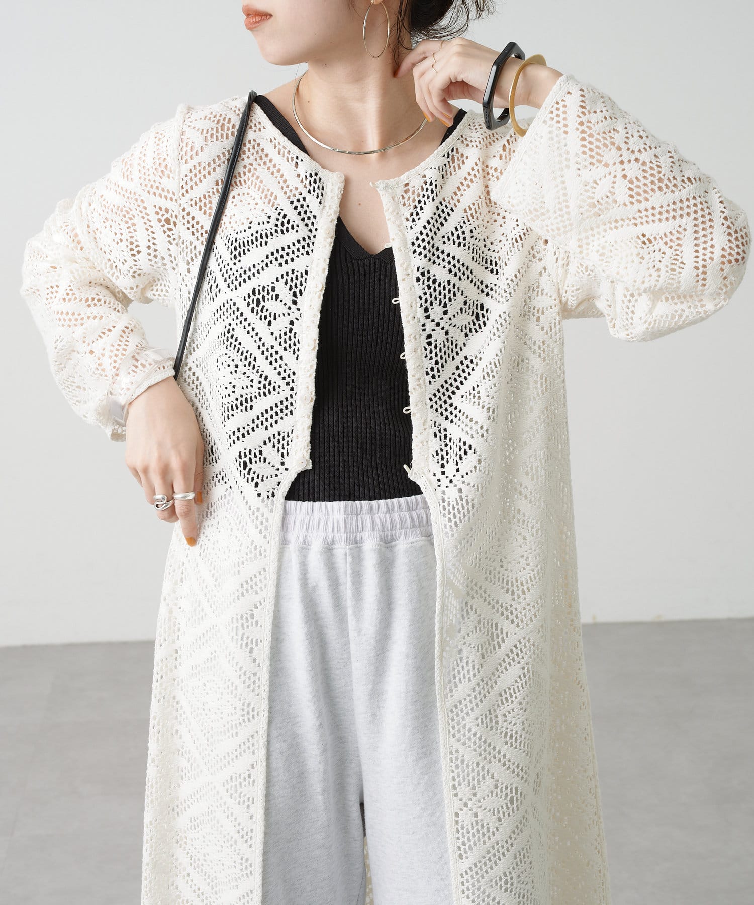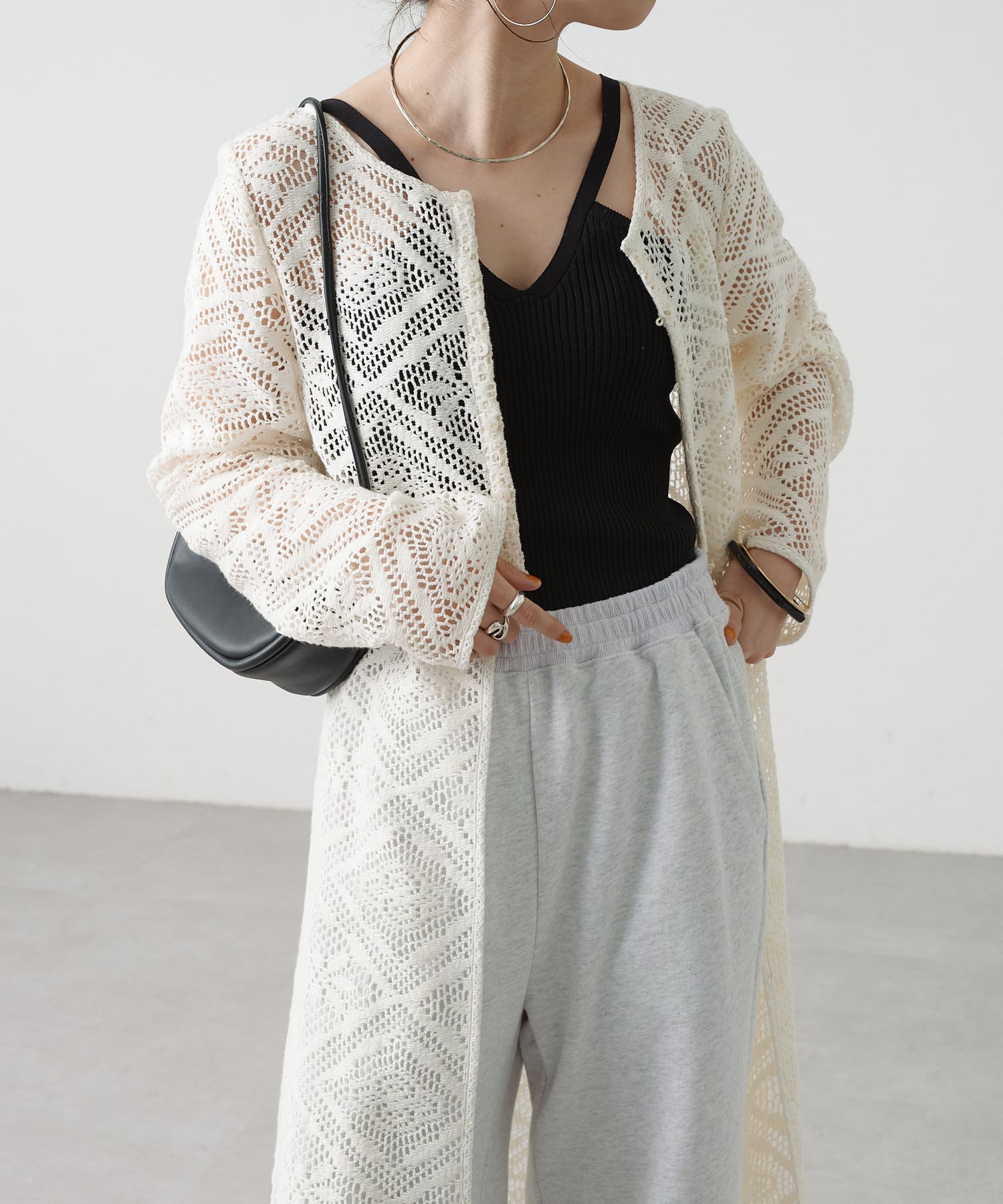 ・レースのヘルシーなシアー感がスタイリングのポイントに。