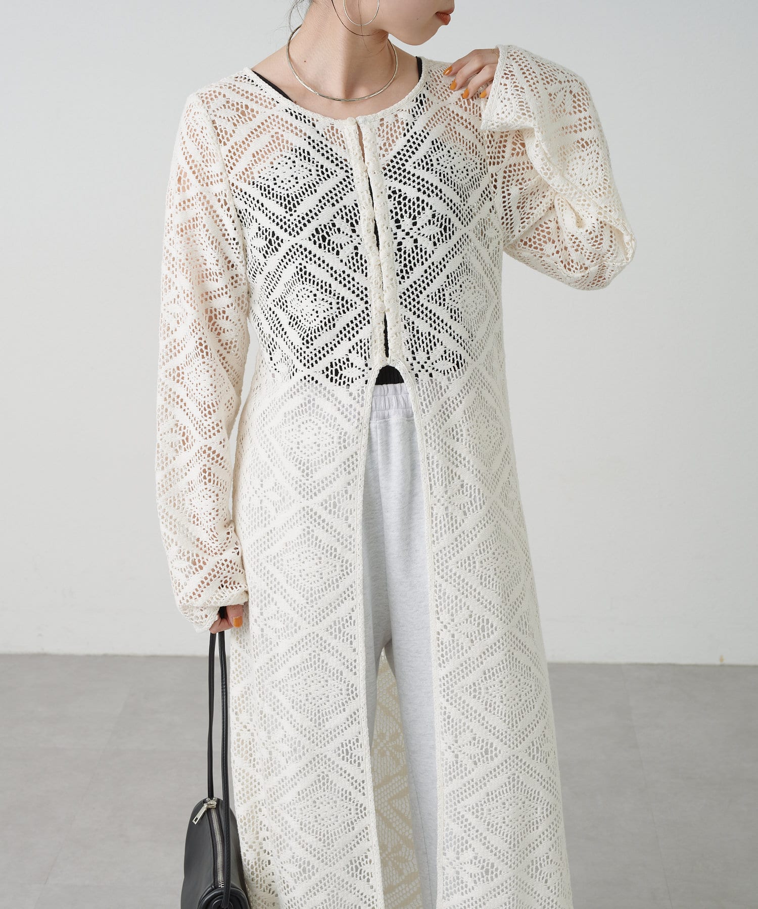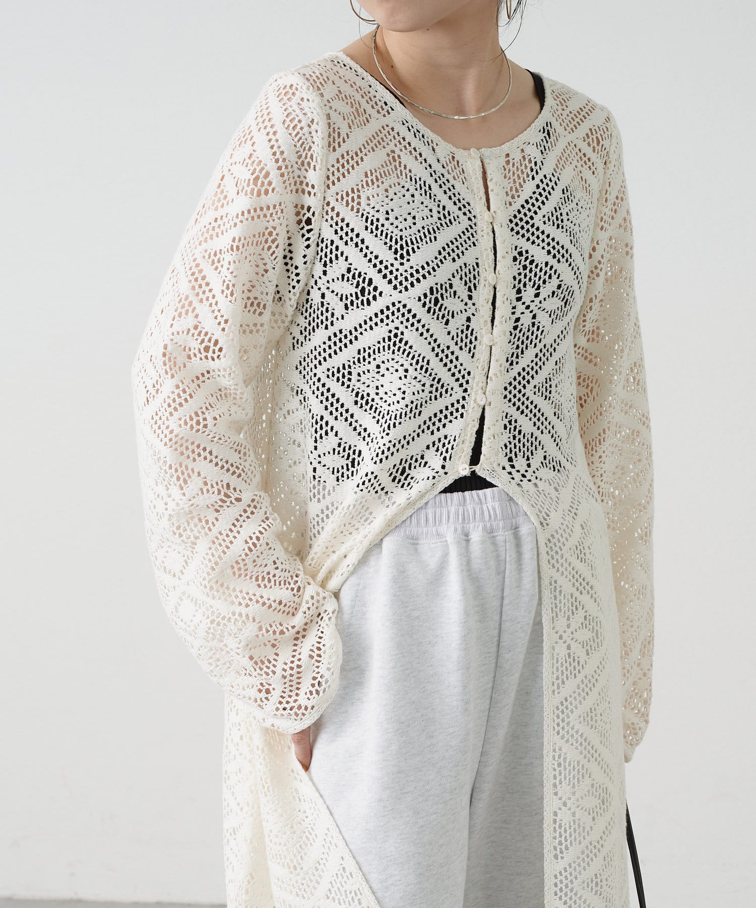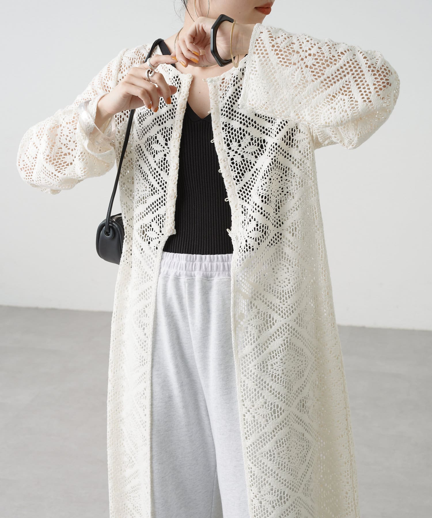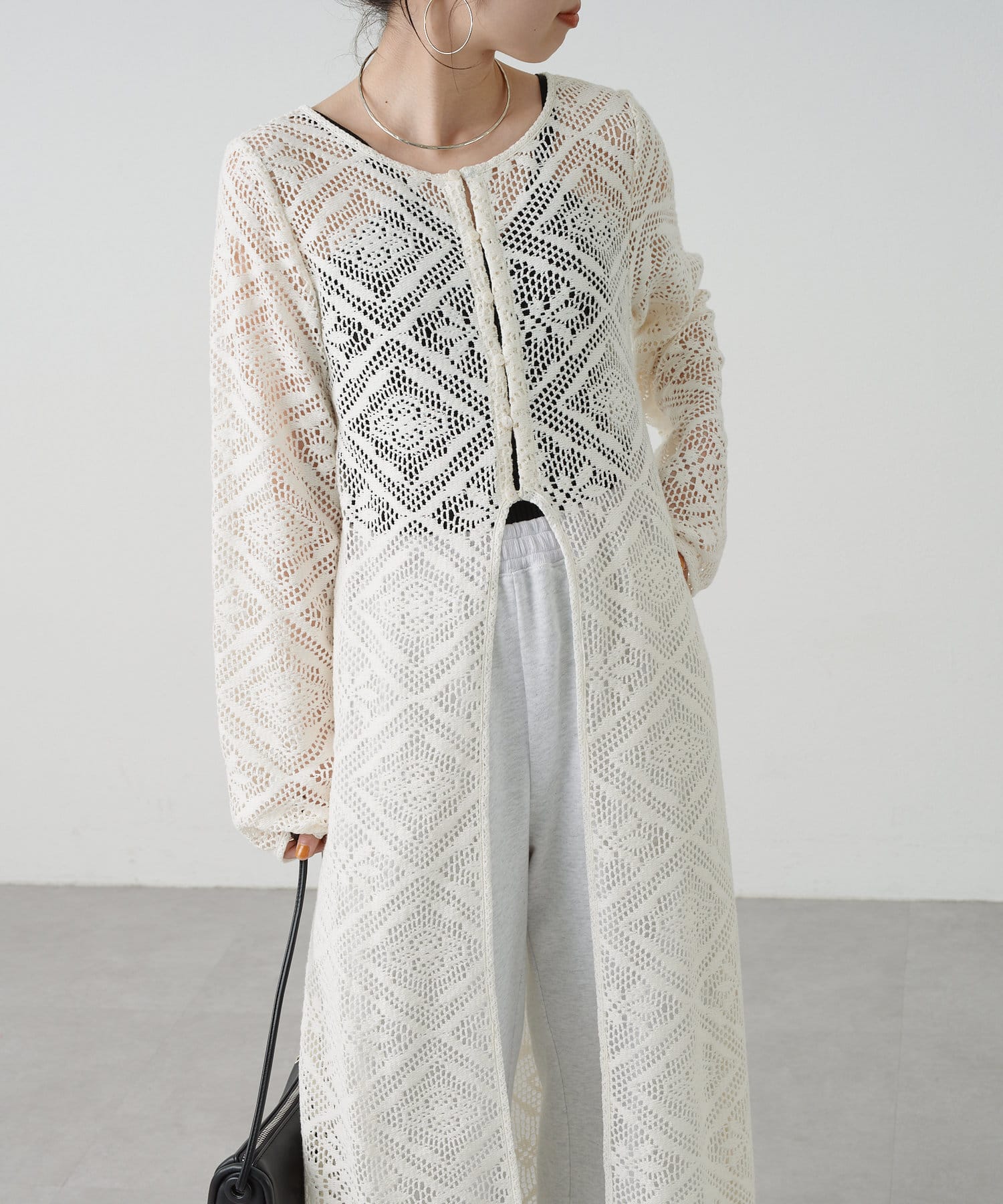 ・レースのヘルシーなシアー感がスタイリングのポイントに。