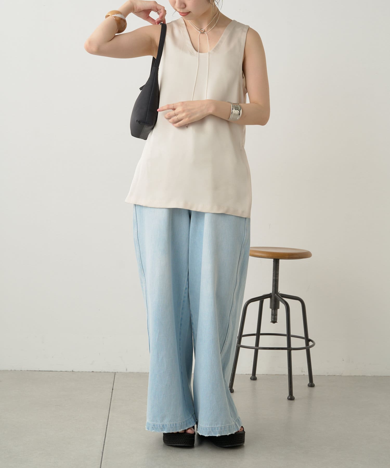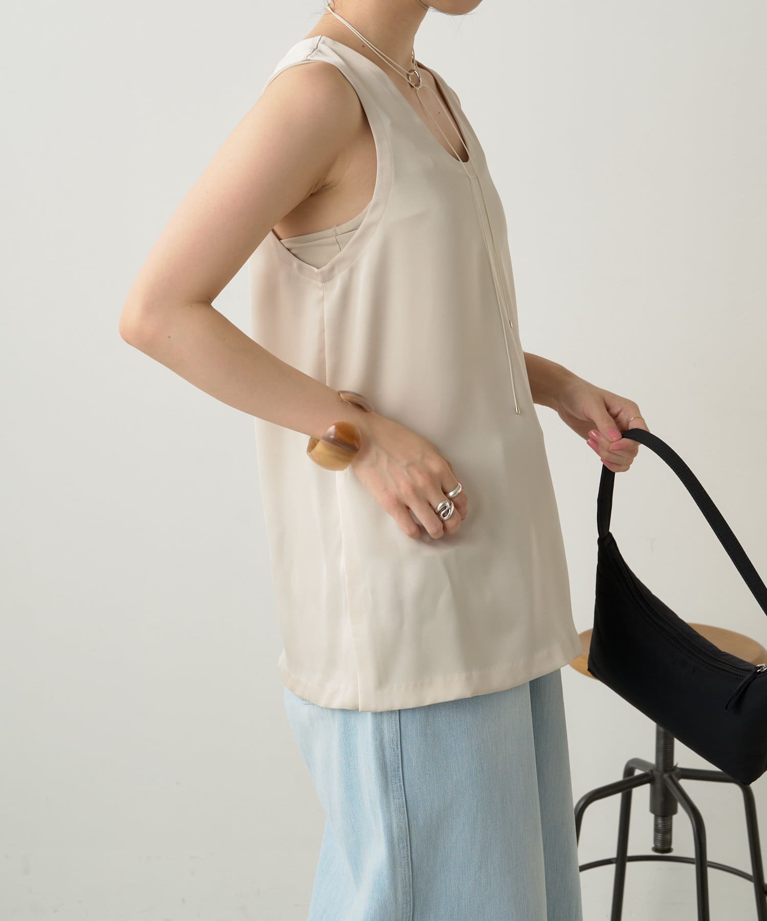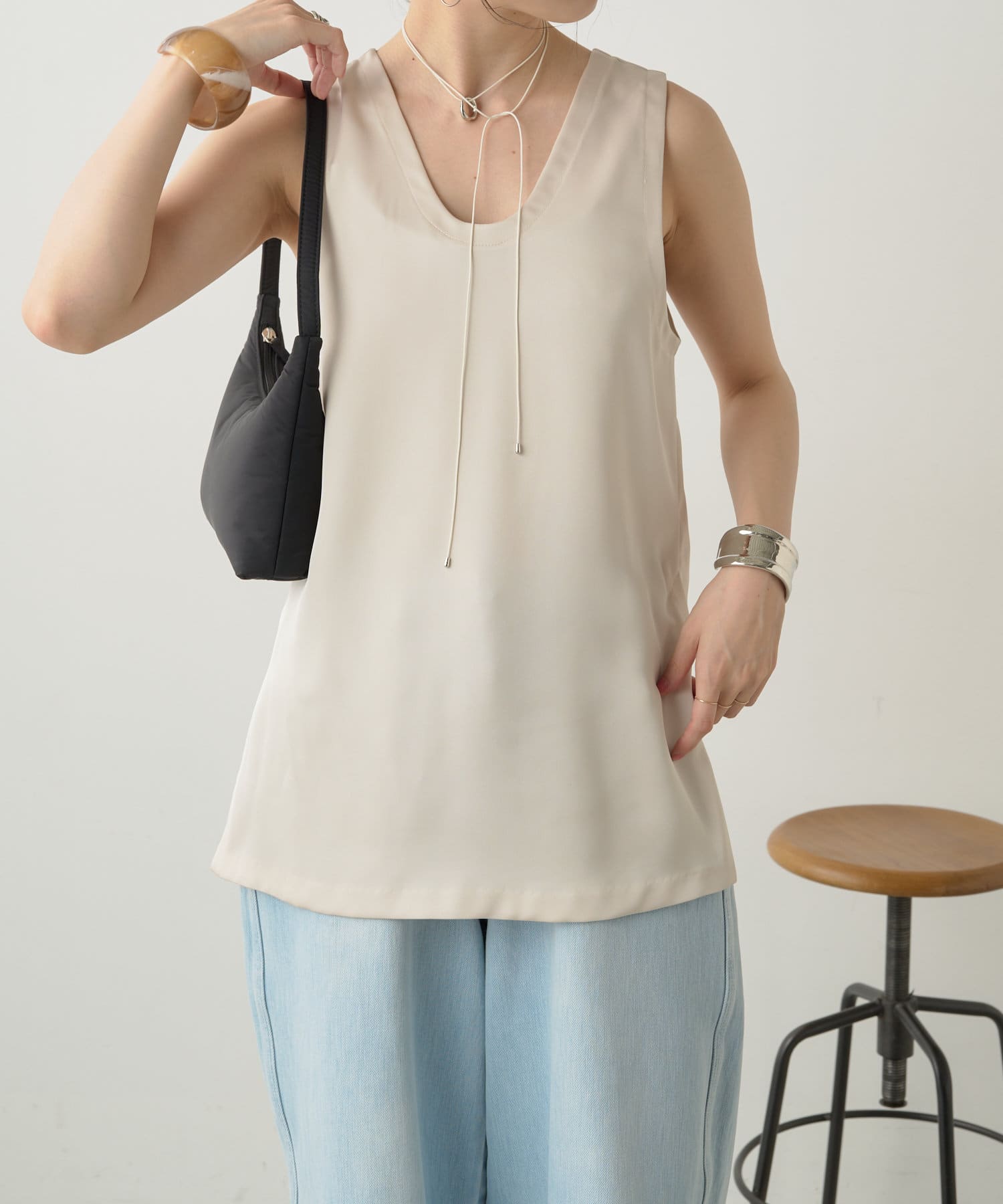 TOP > Omekashi > レディース > トップス > タンクトップ > トロミサテンロングタンク