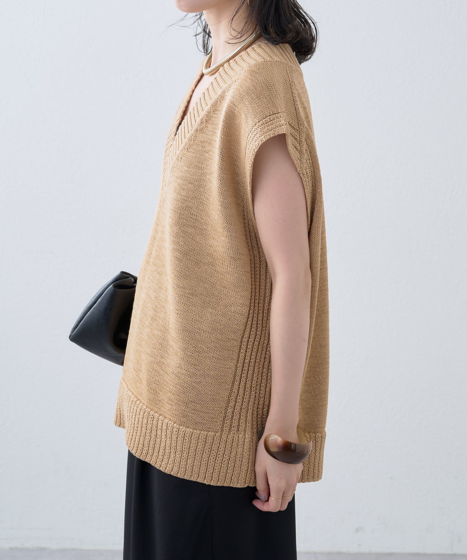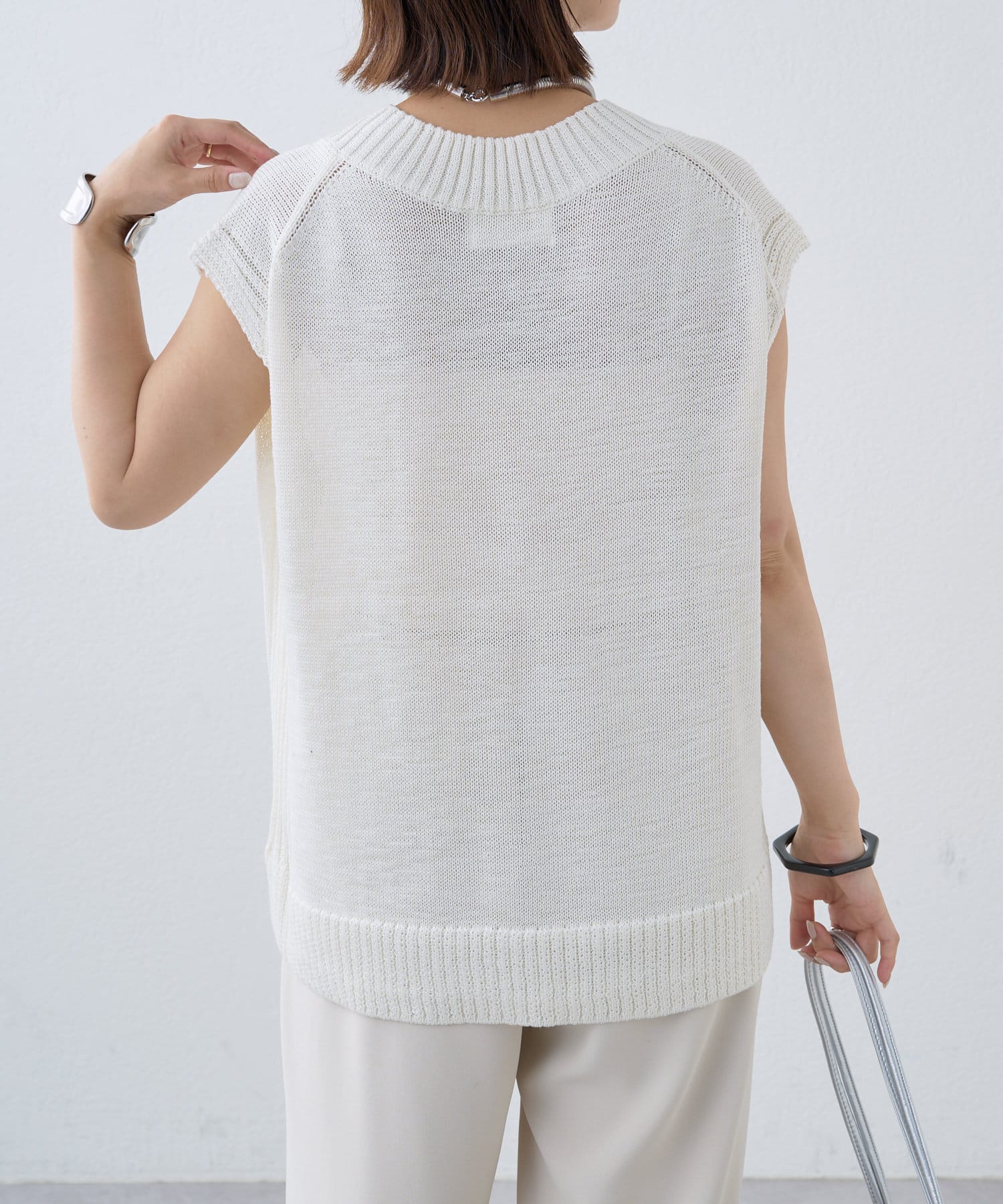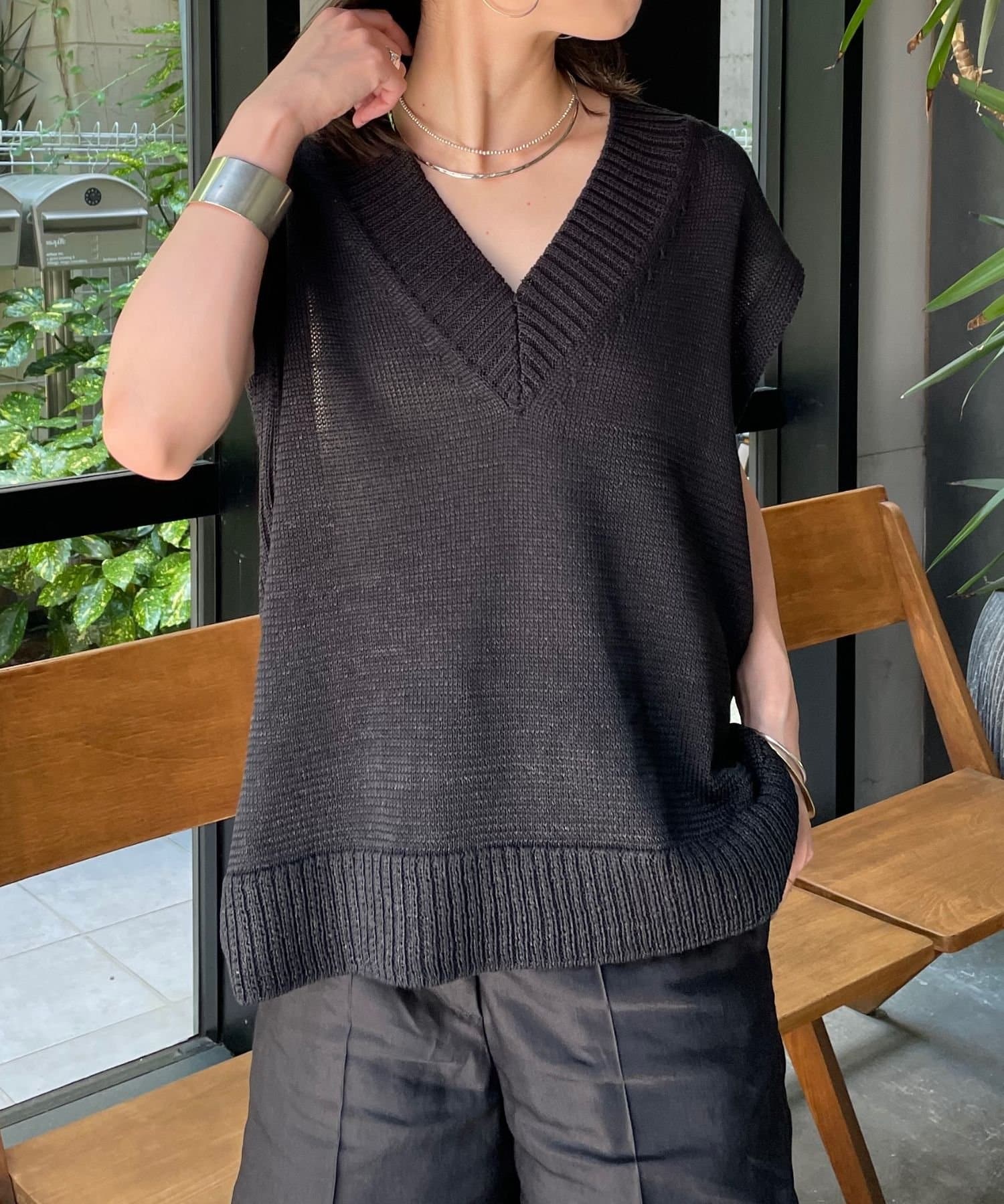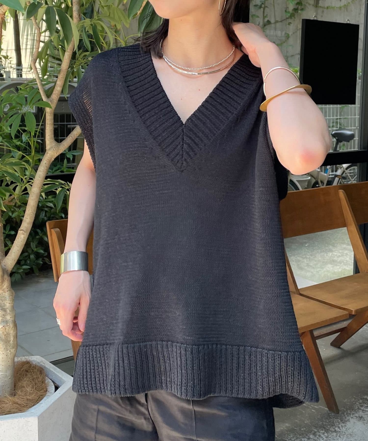 ・これからの時期に着やすいテープヤーンが涼しげなニットベスト