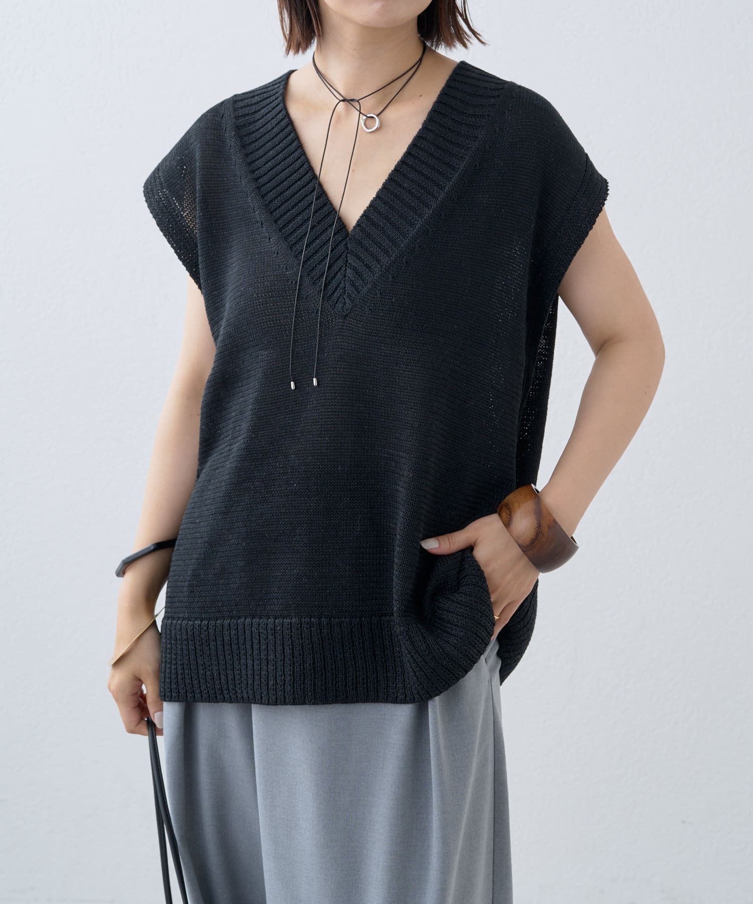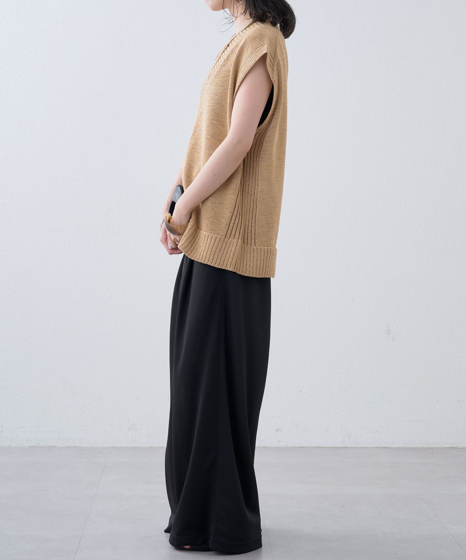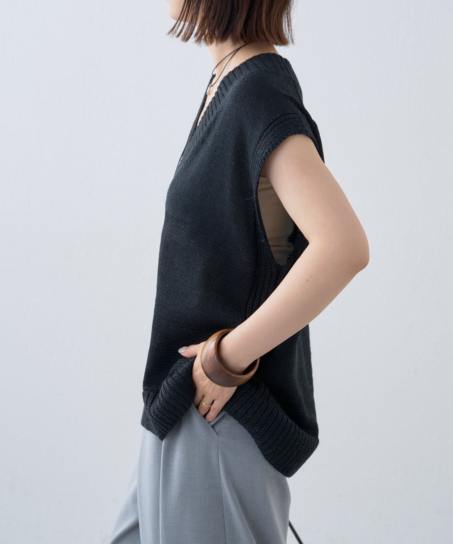 ・これからの時期に着やすいテープヤーンが涼しげなニットベスト