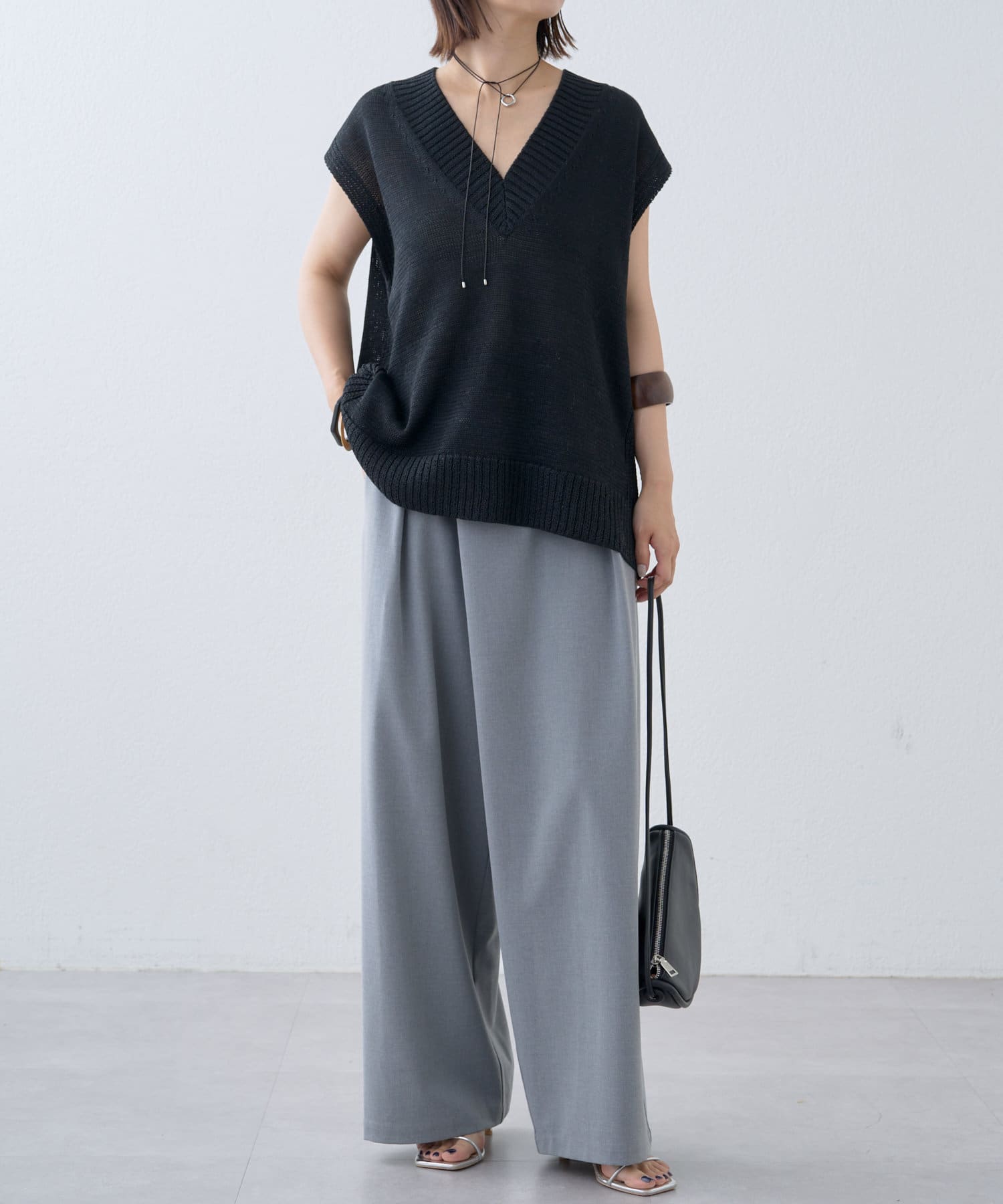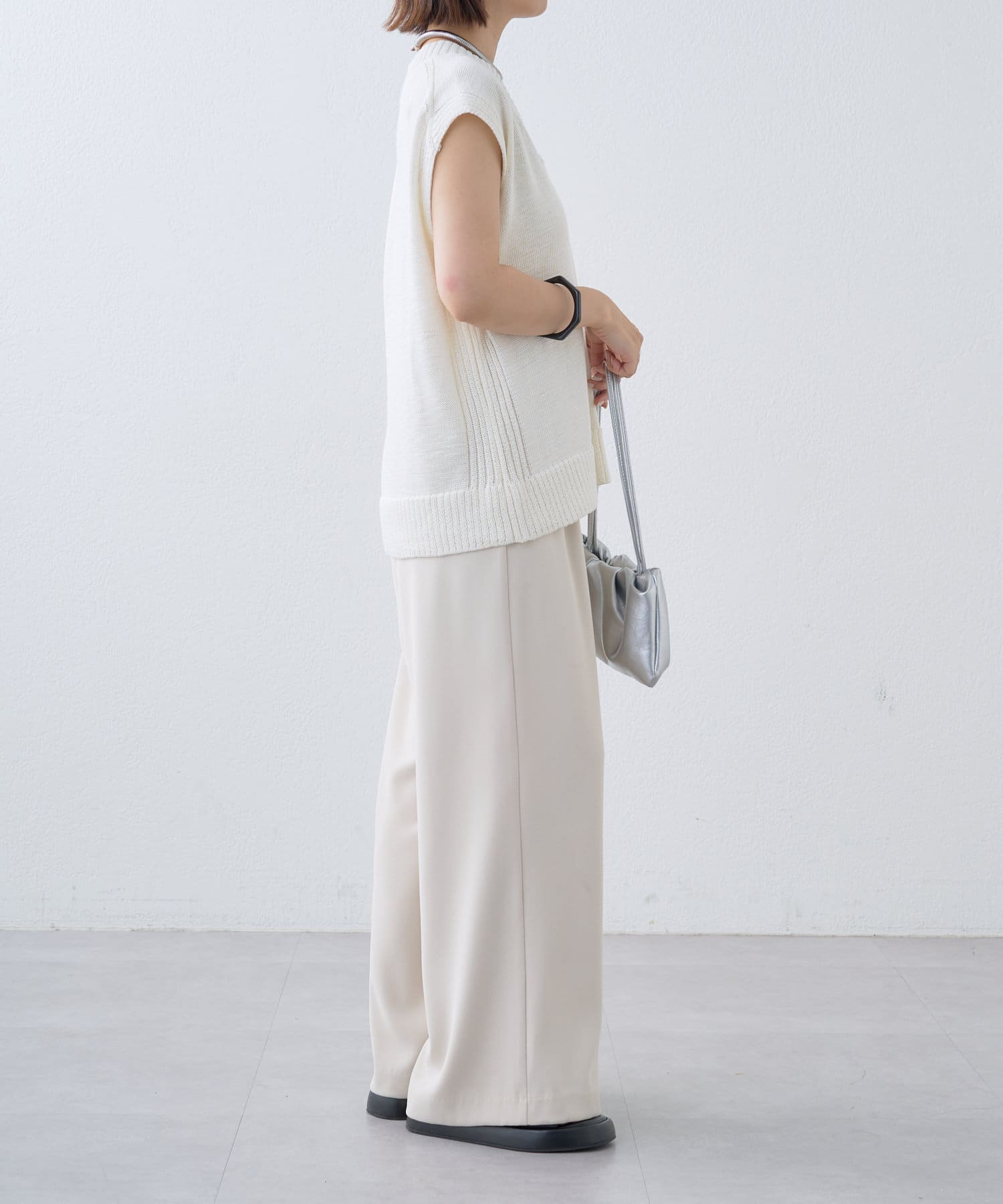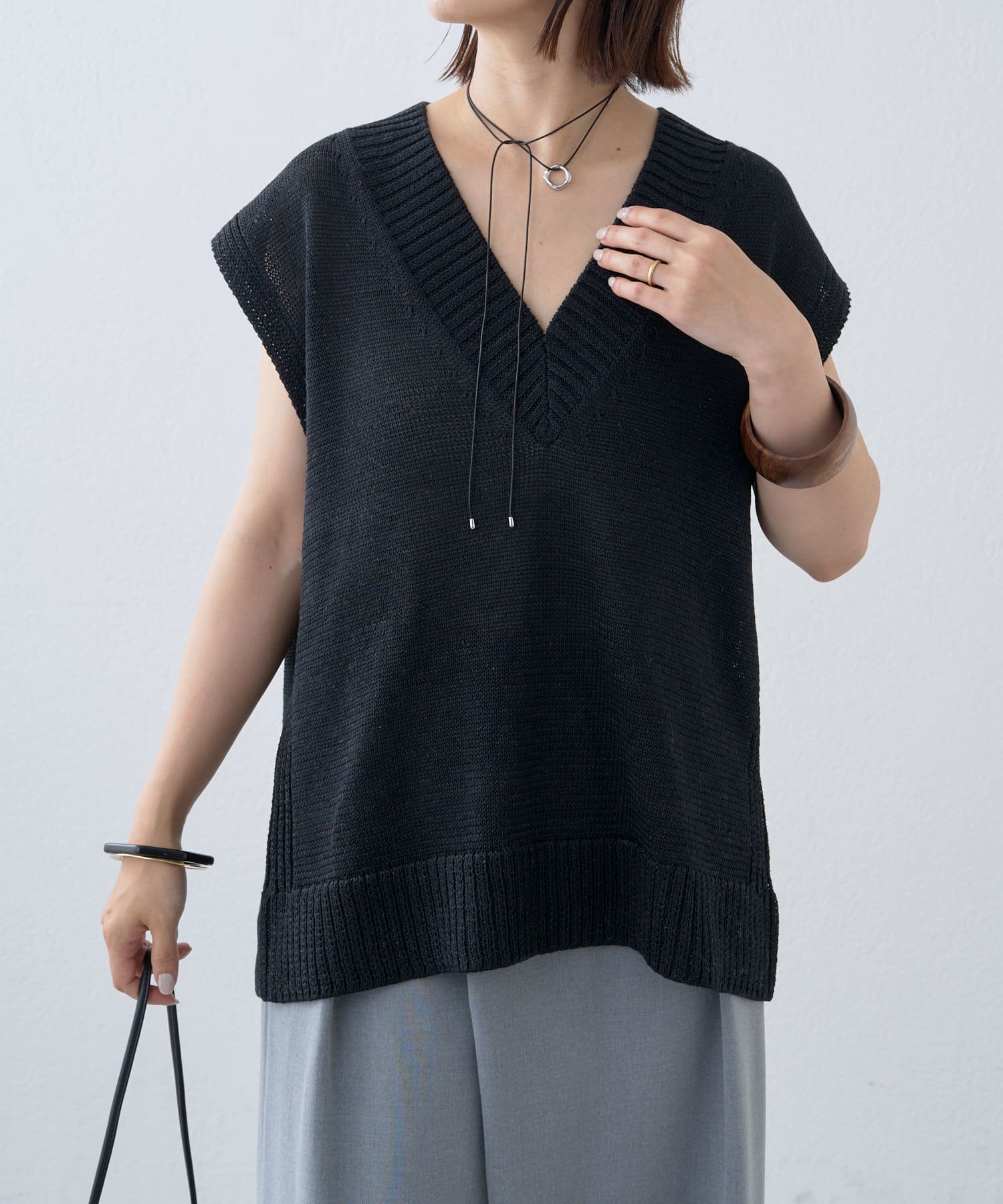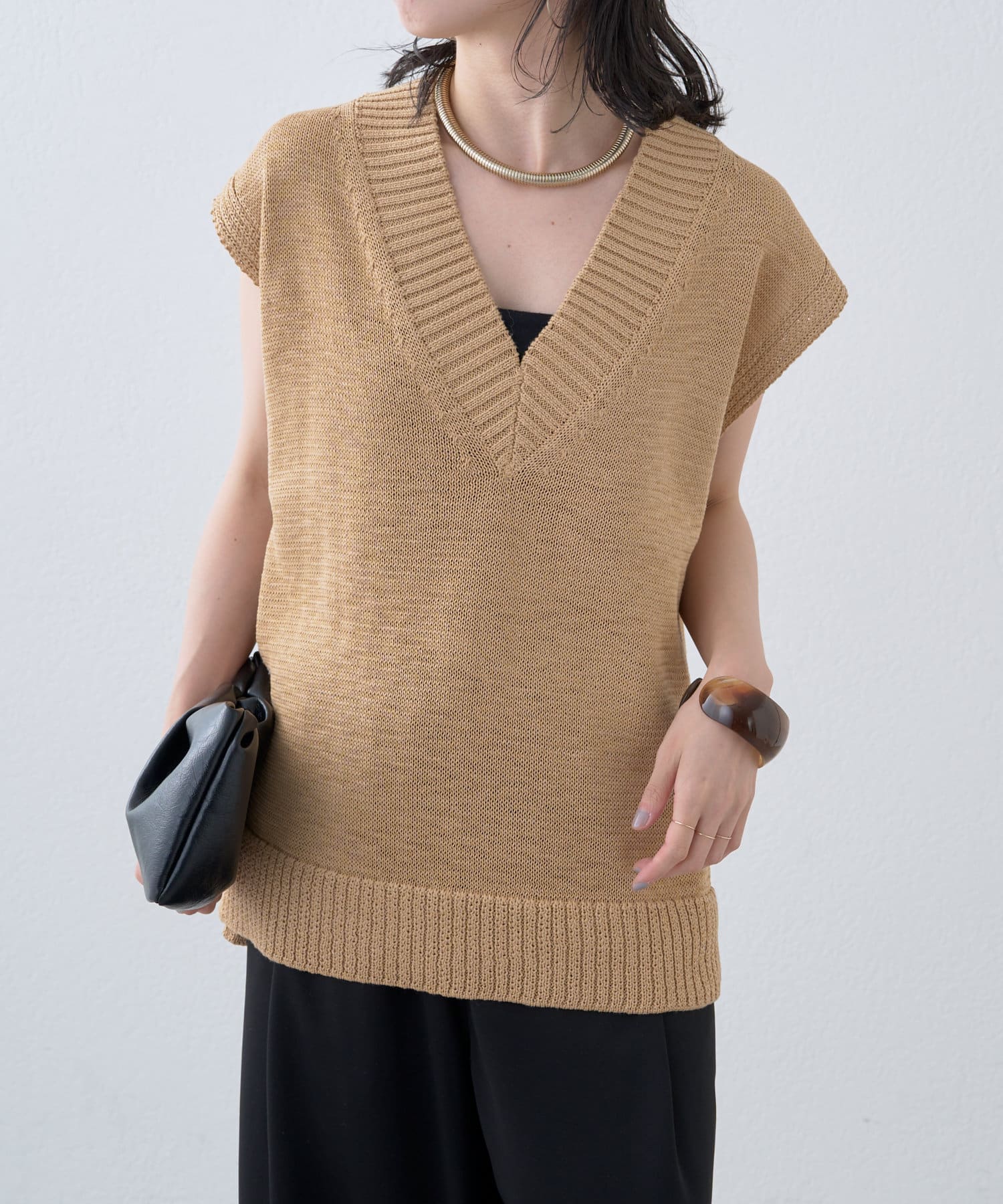 ・これからの時期に着やすいテープヤーンが涼しげなニットベスト
