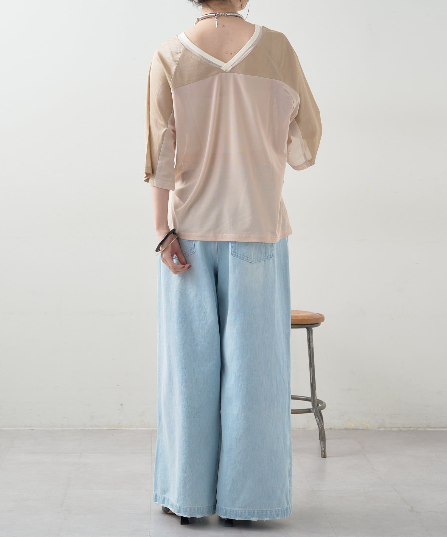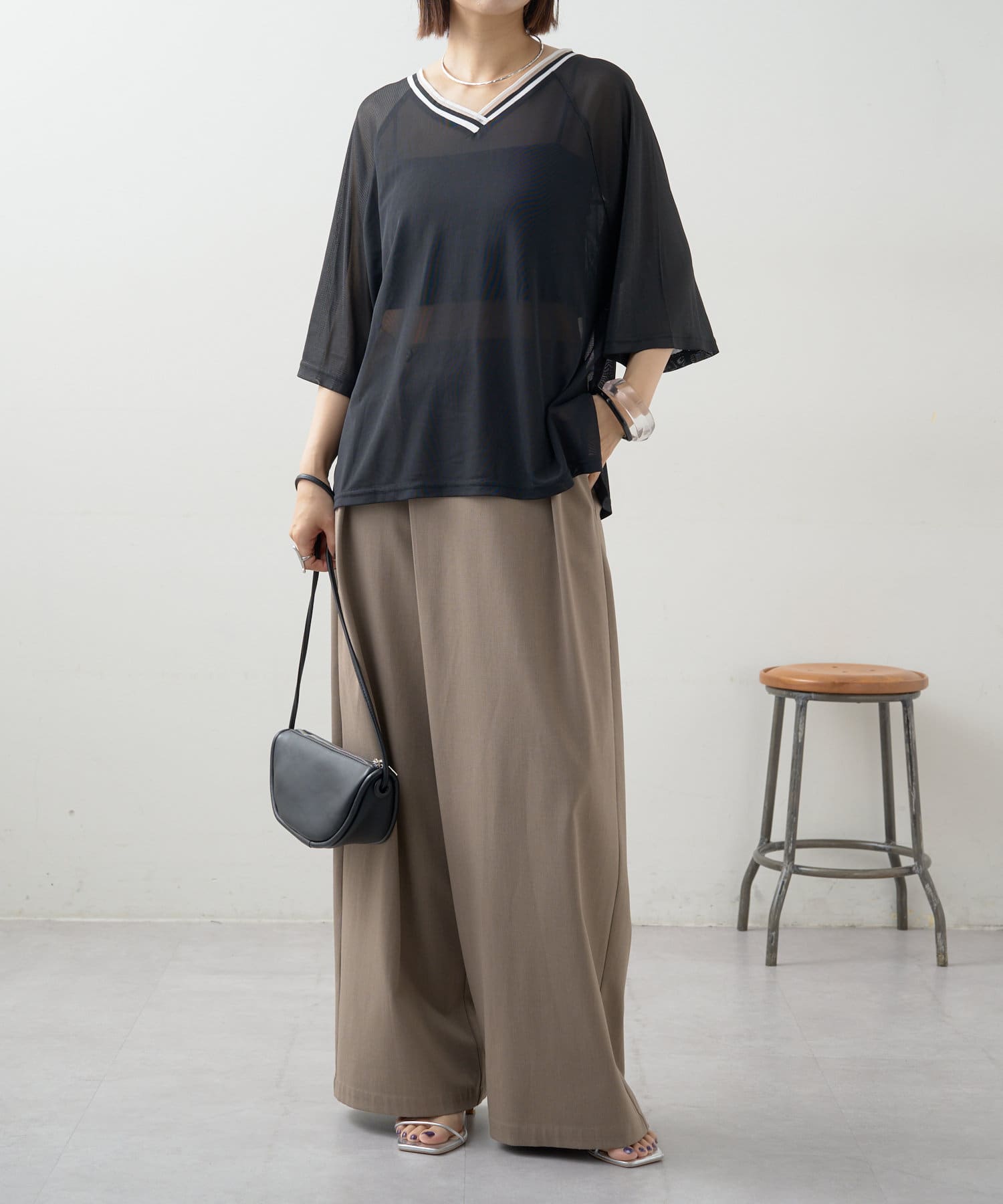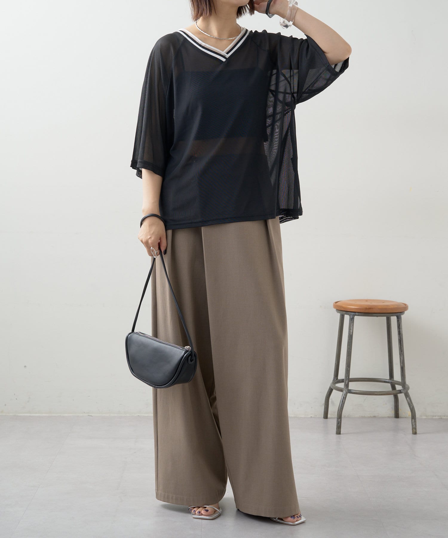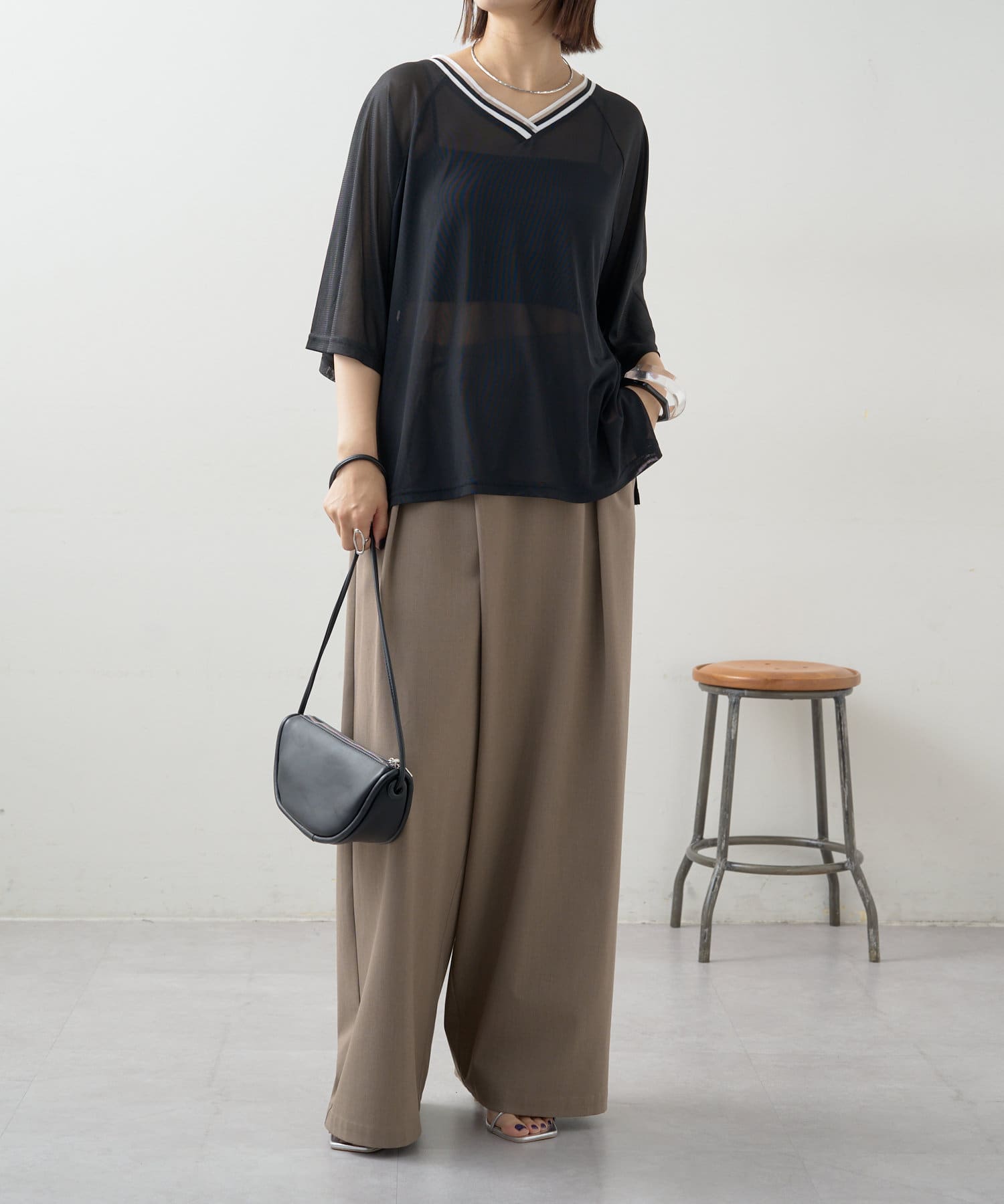 ・Vネックとシアー感が女性らしさをプラス。