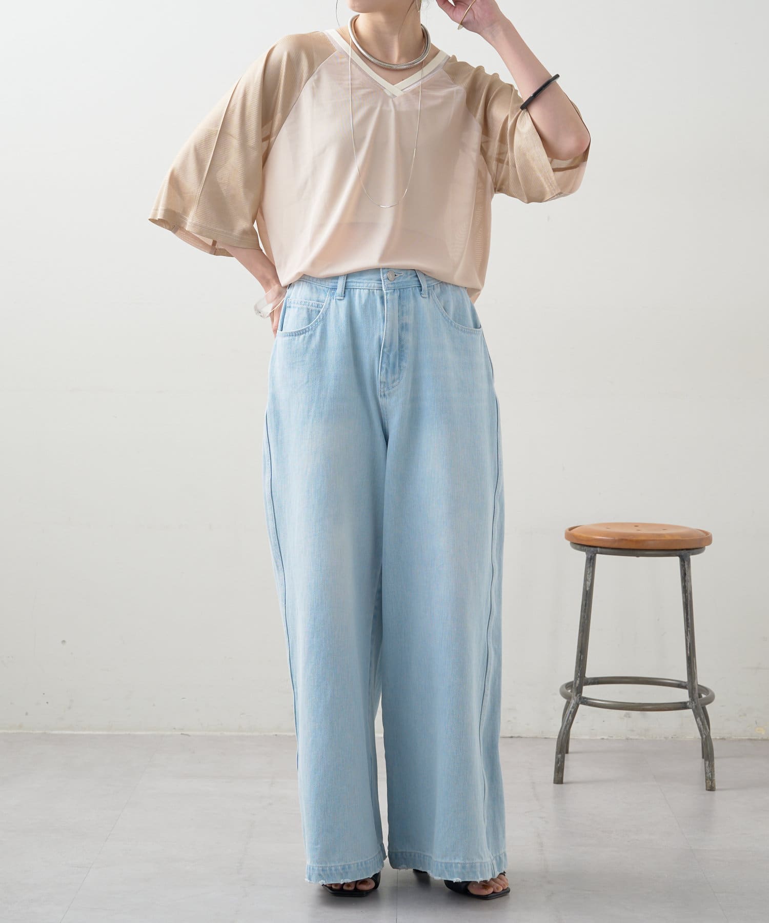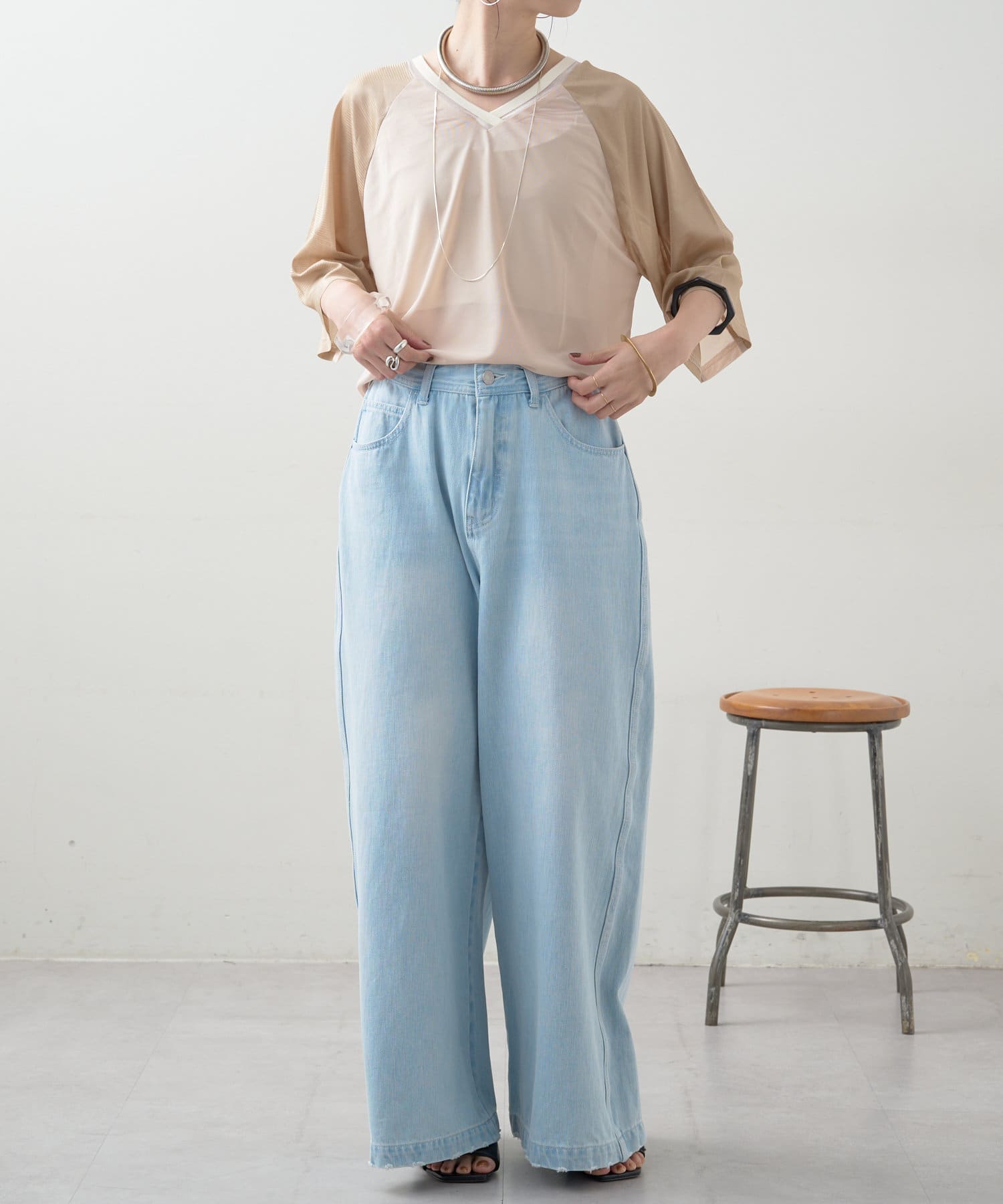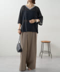 ・軽い着心地とゆったりめのワイドシルエット。