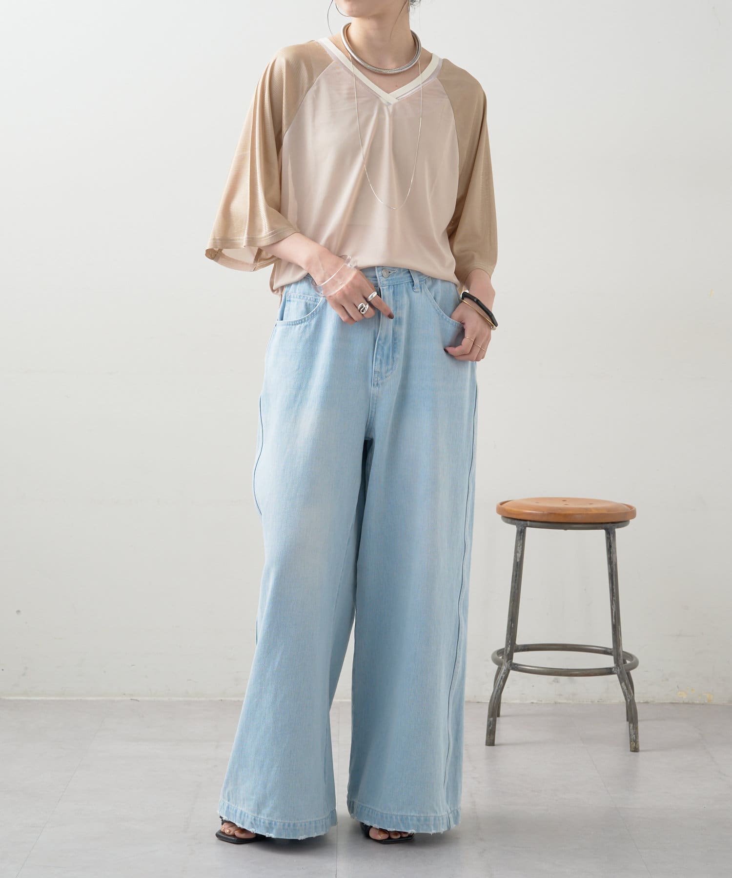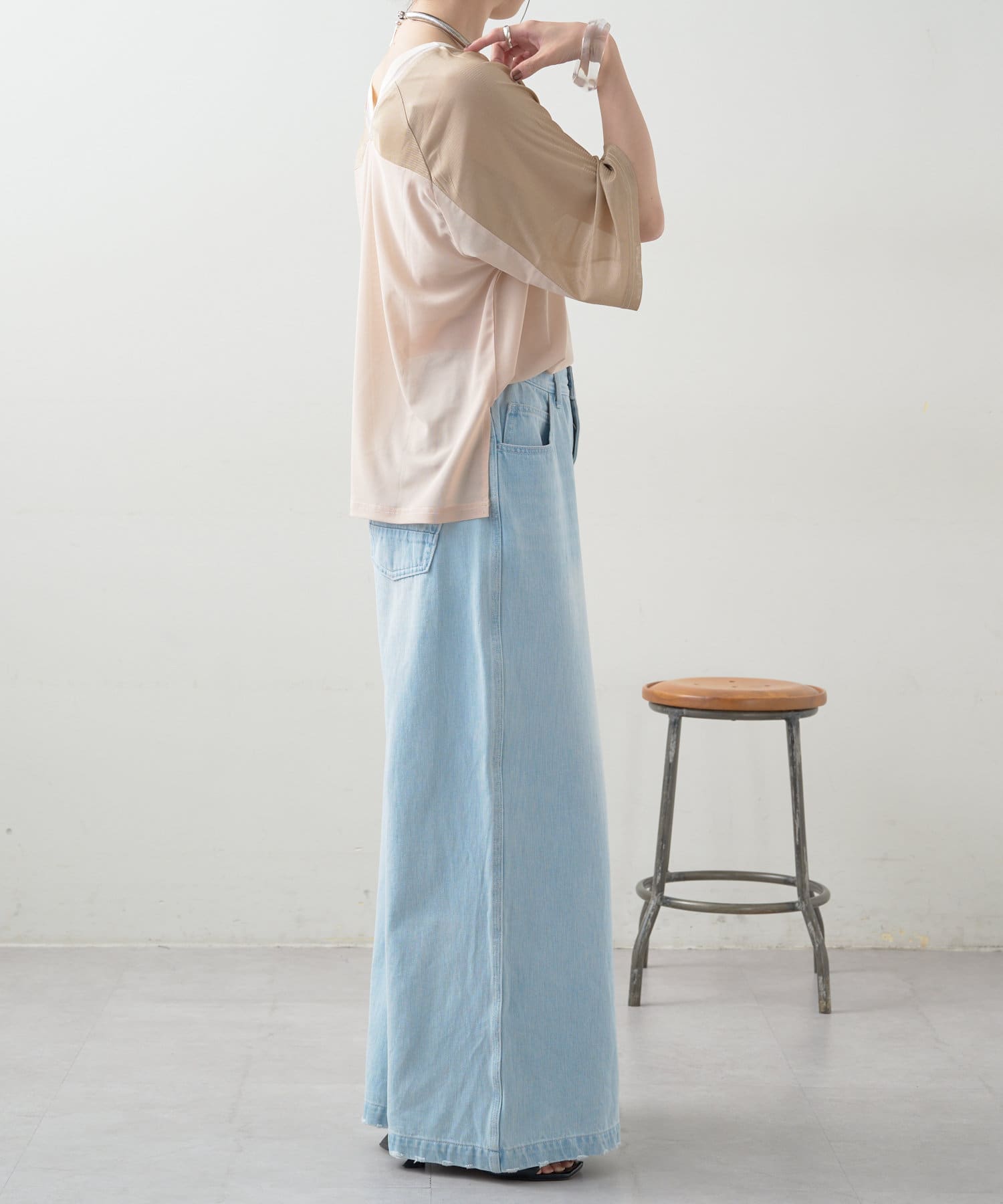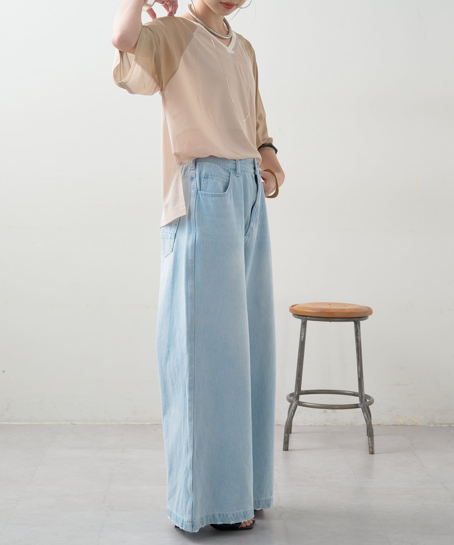 ・大人カジュアルにデニムやワイドパンツを合わせるのもオススメ。