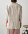 ・ハーフスリーブにノーカラーデザインですっきりとした雰囲気。