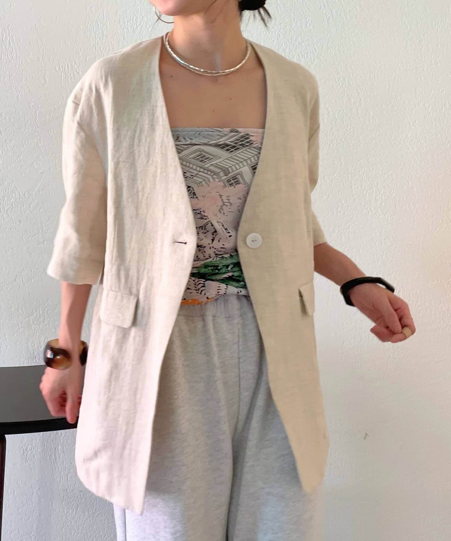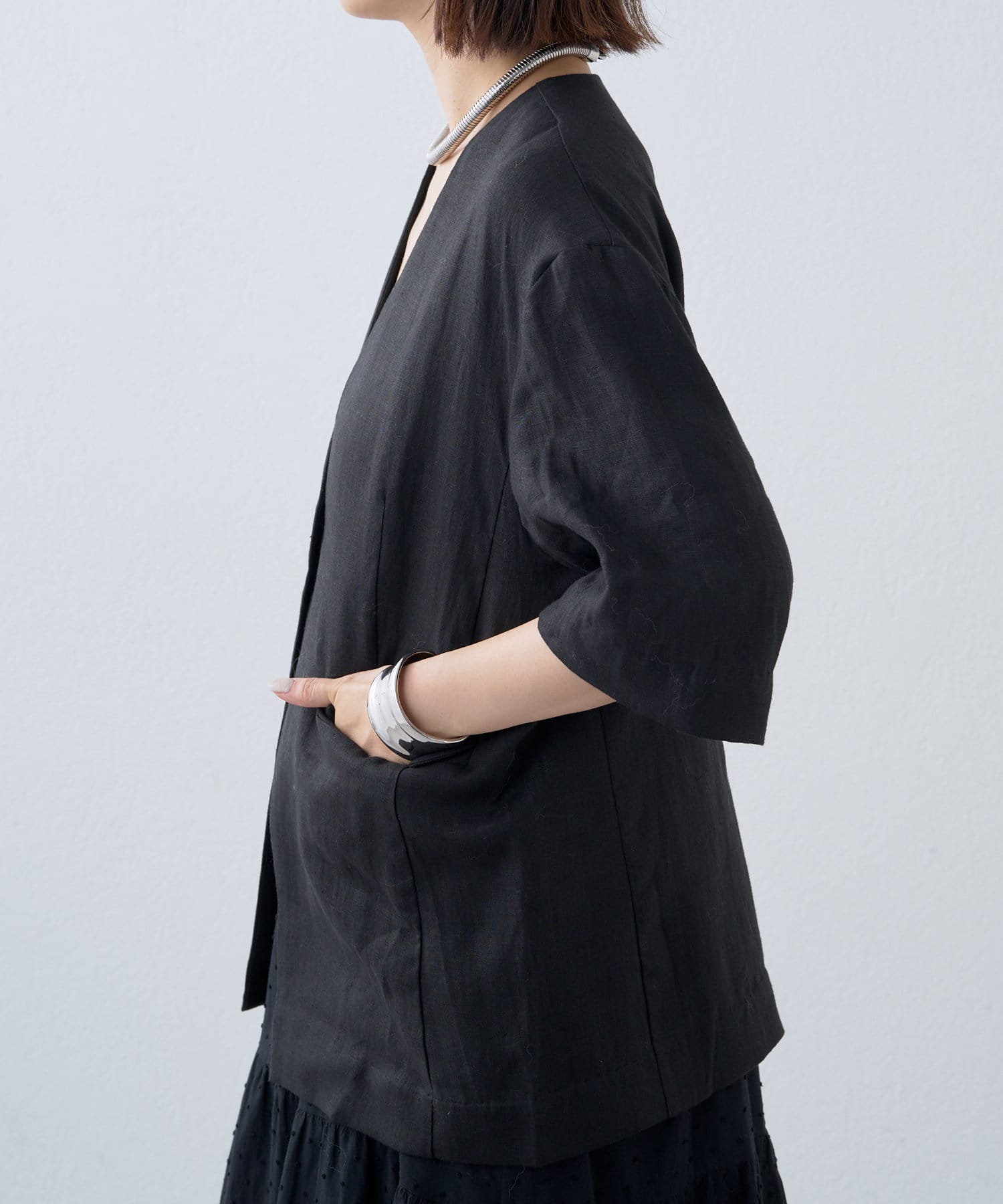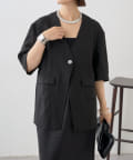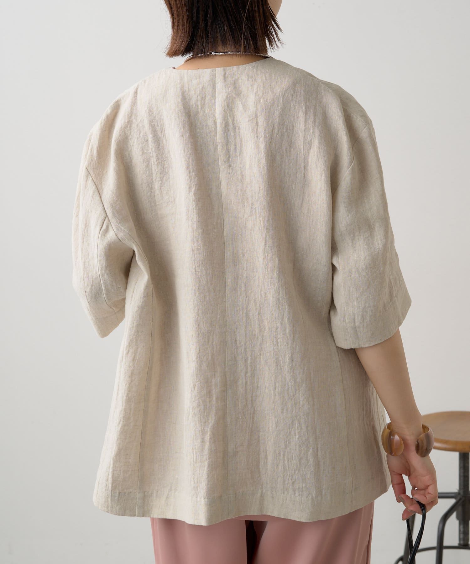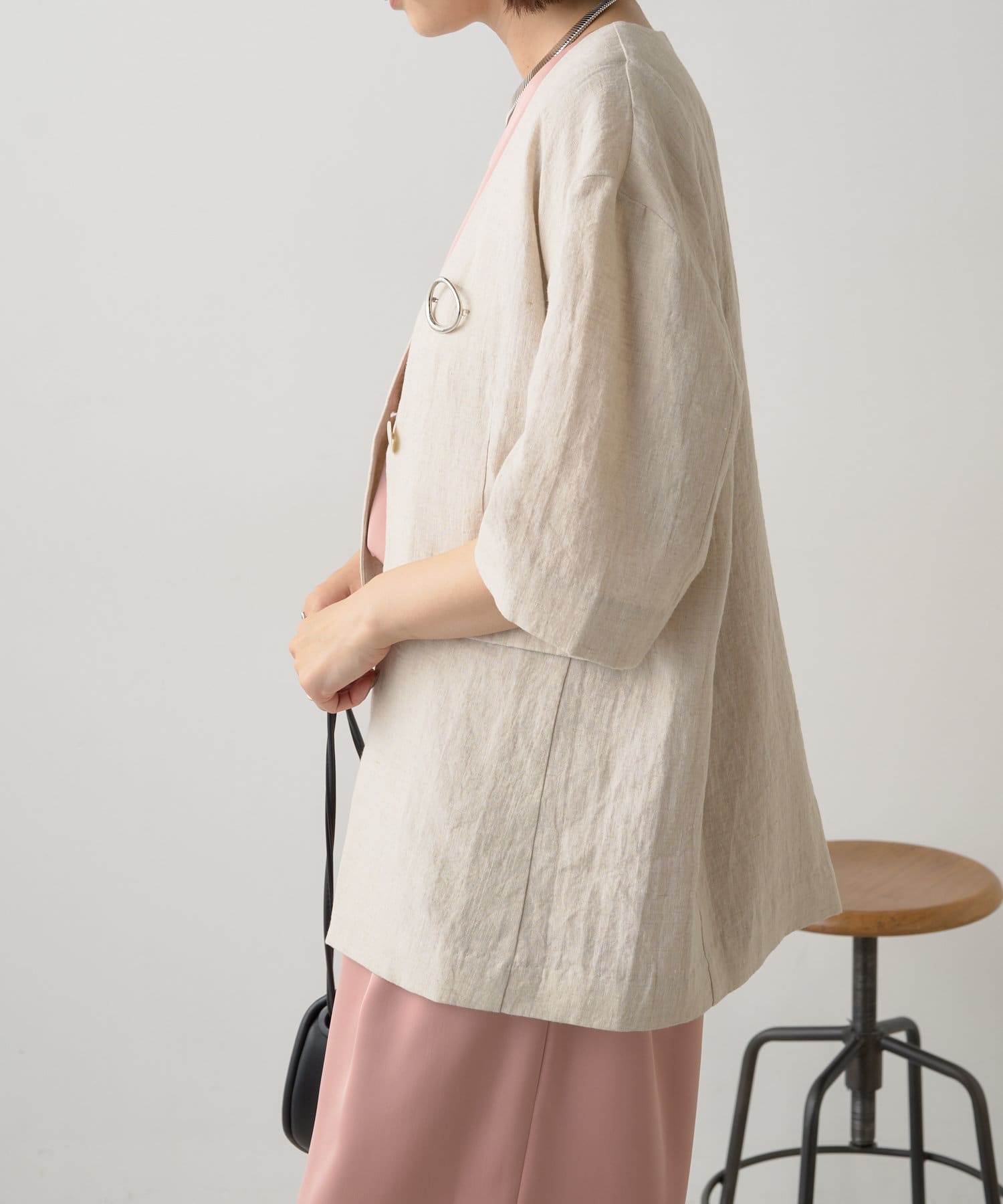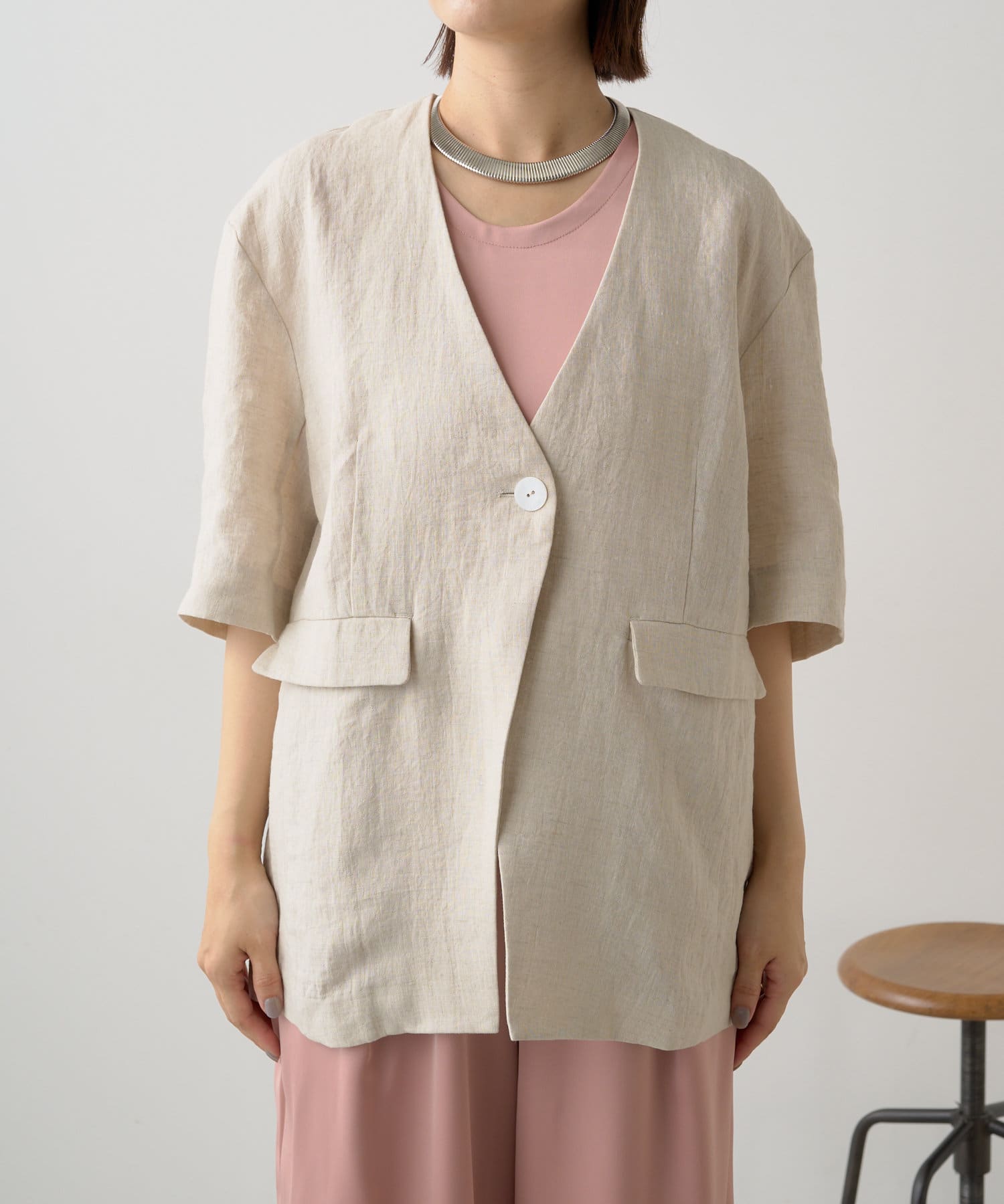 ノーカラーリネンジャケット