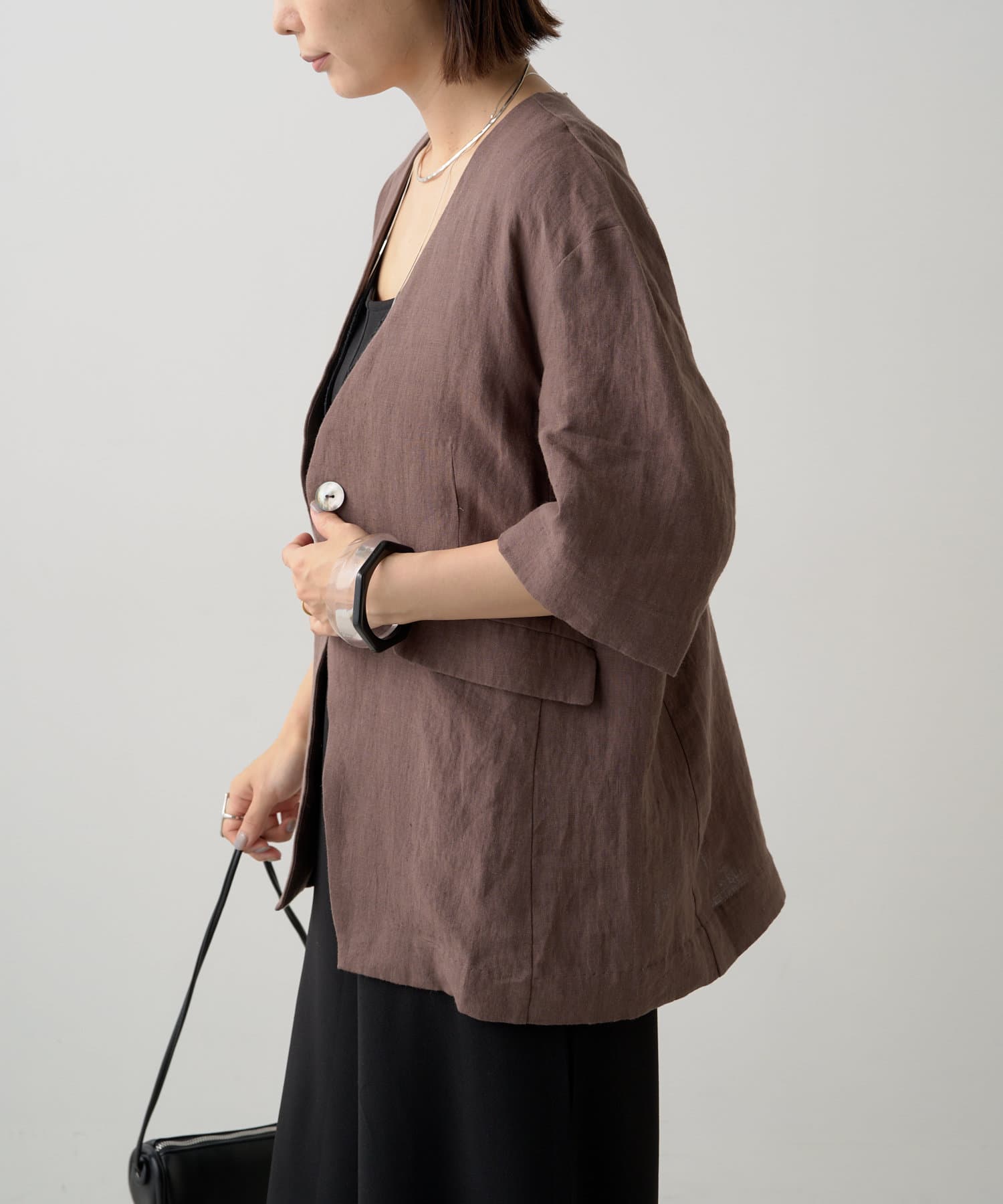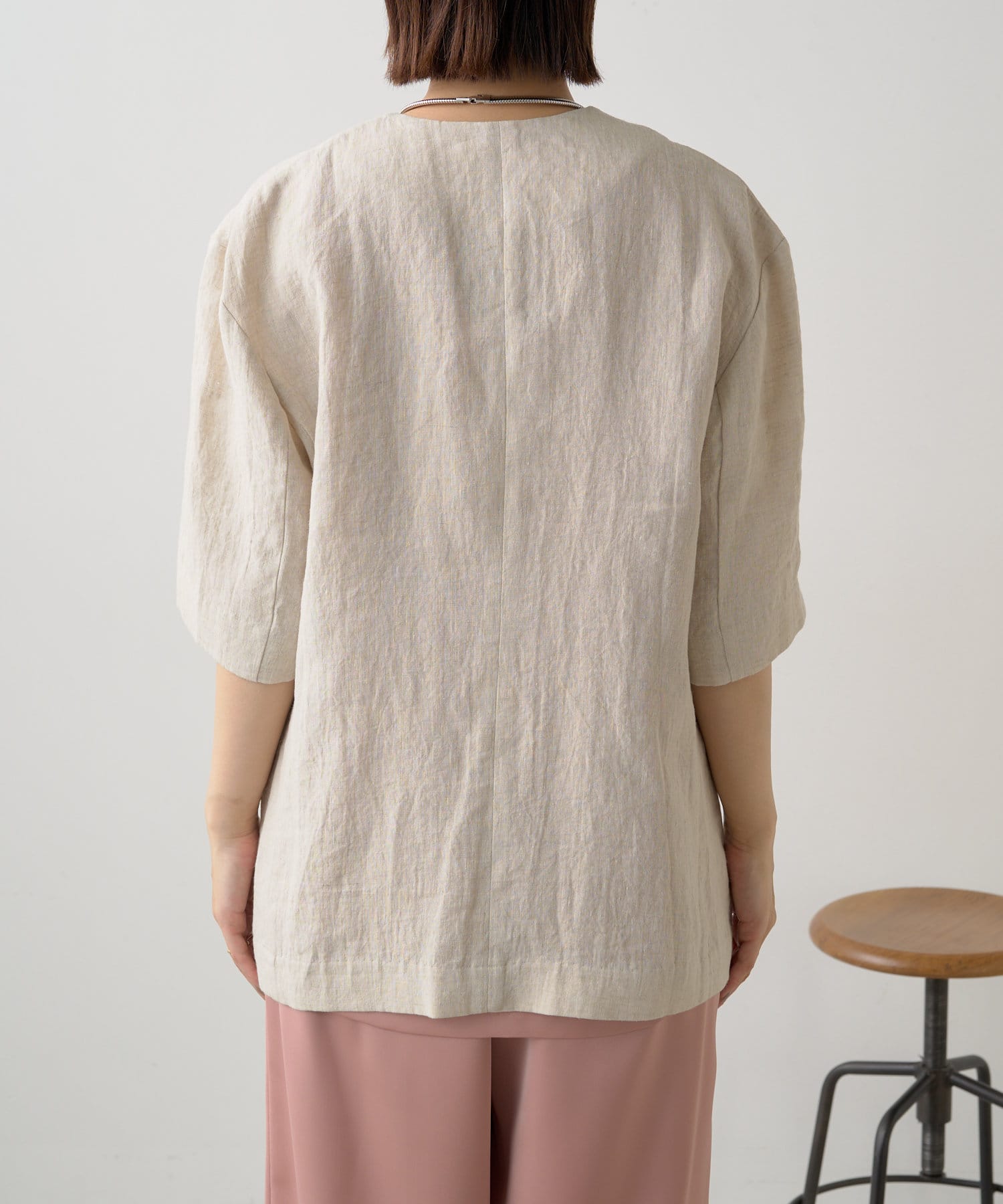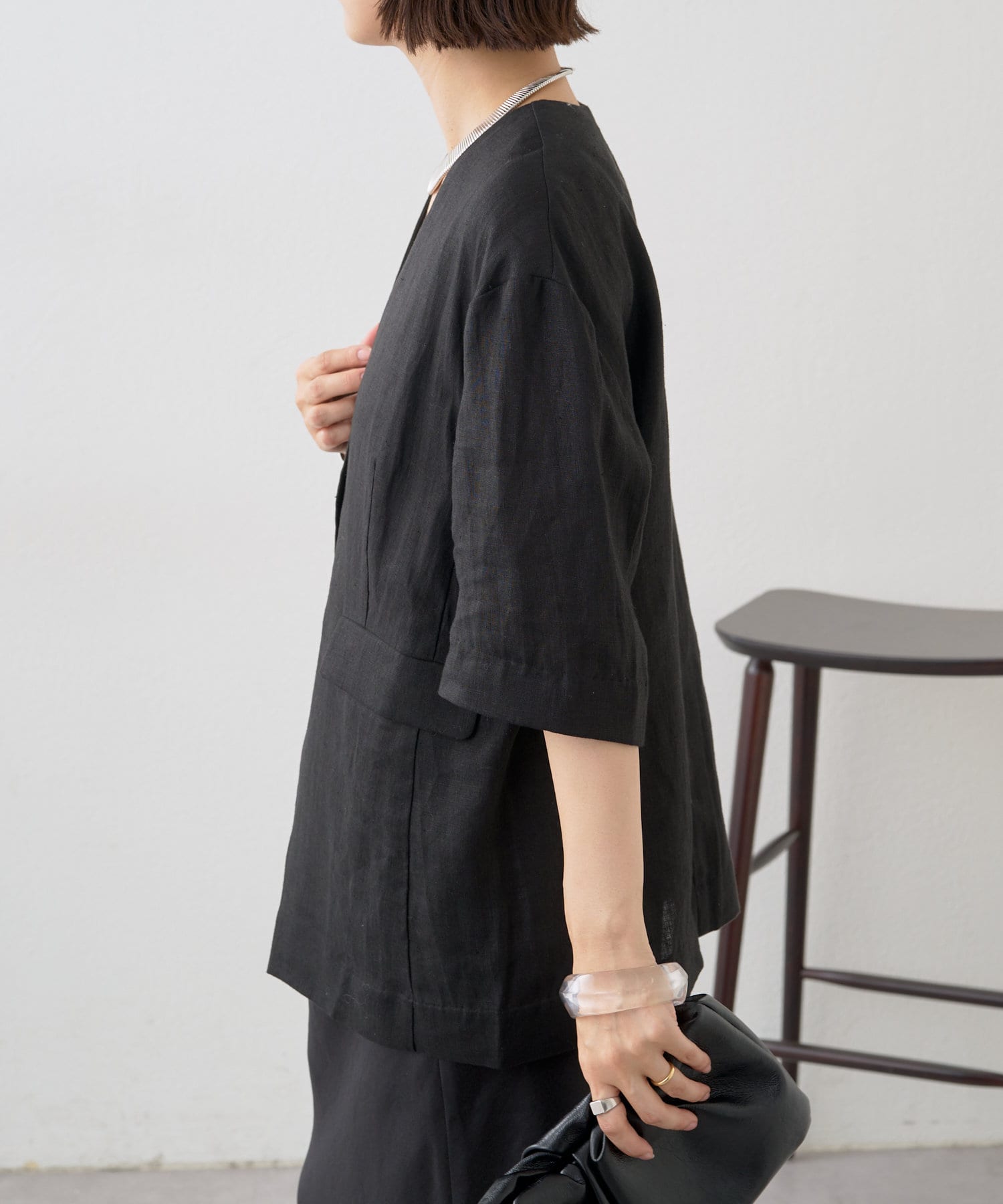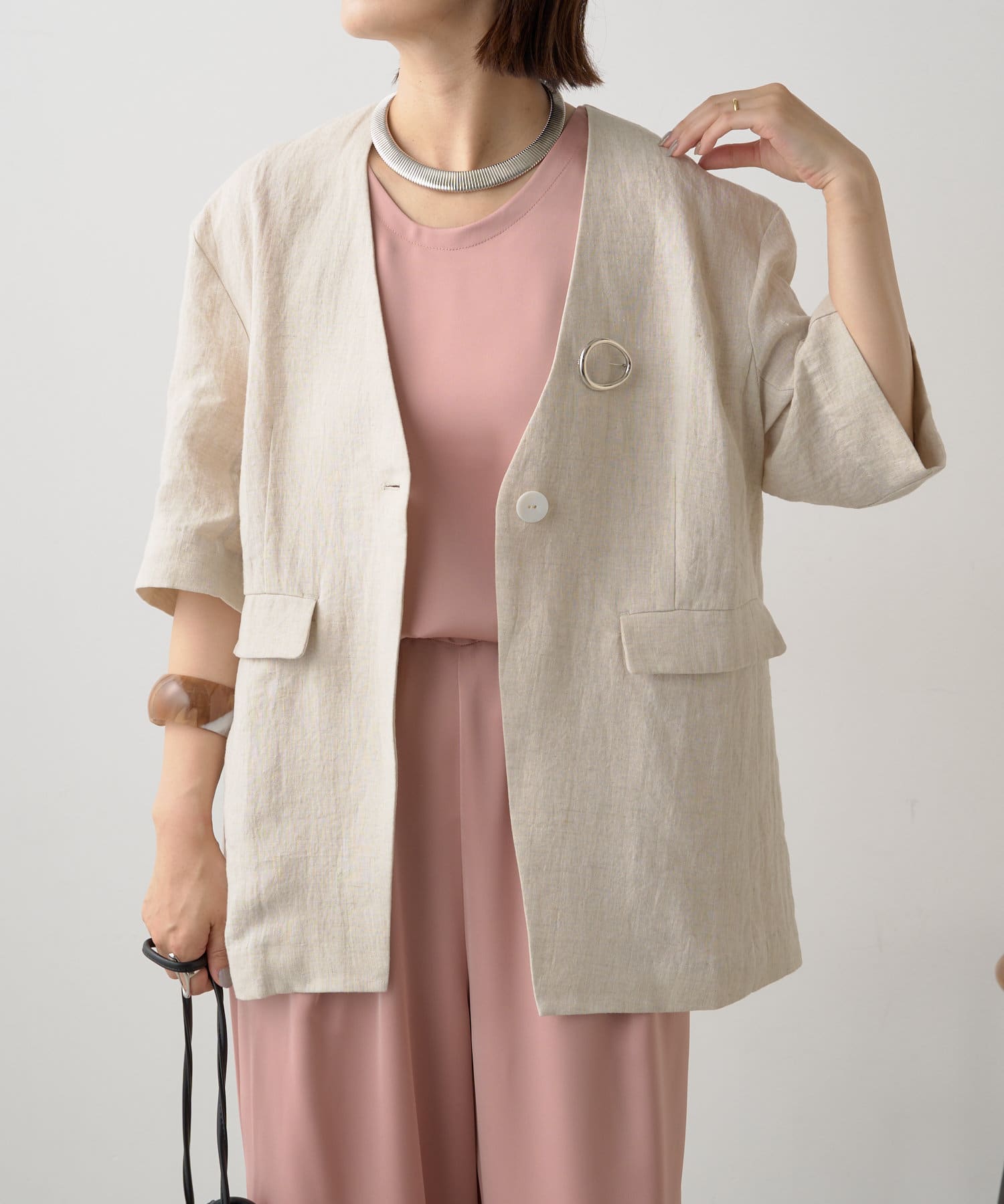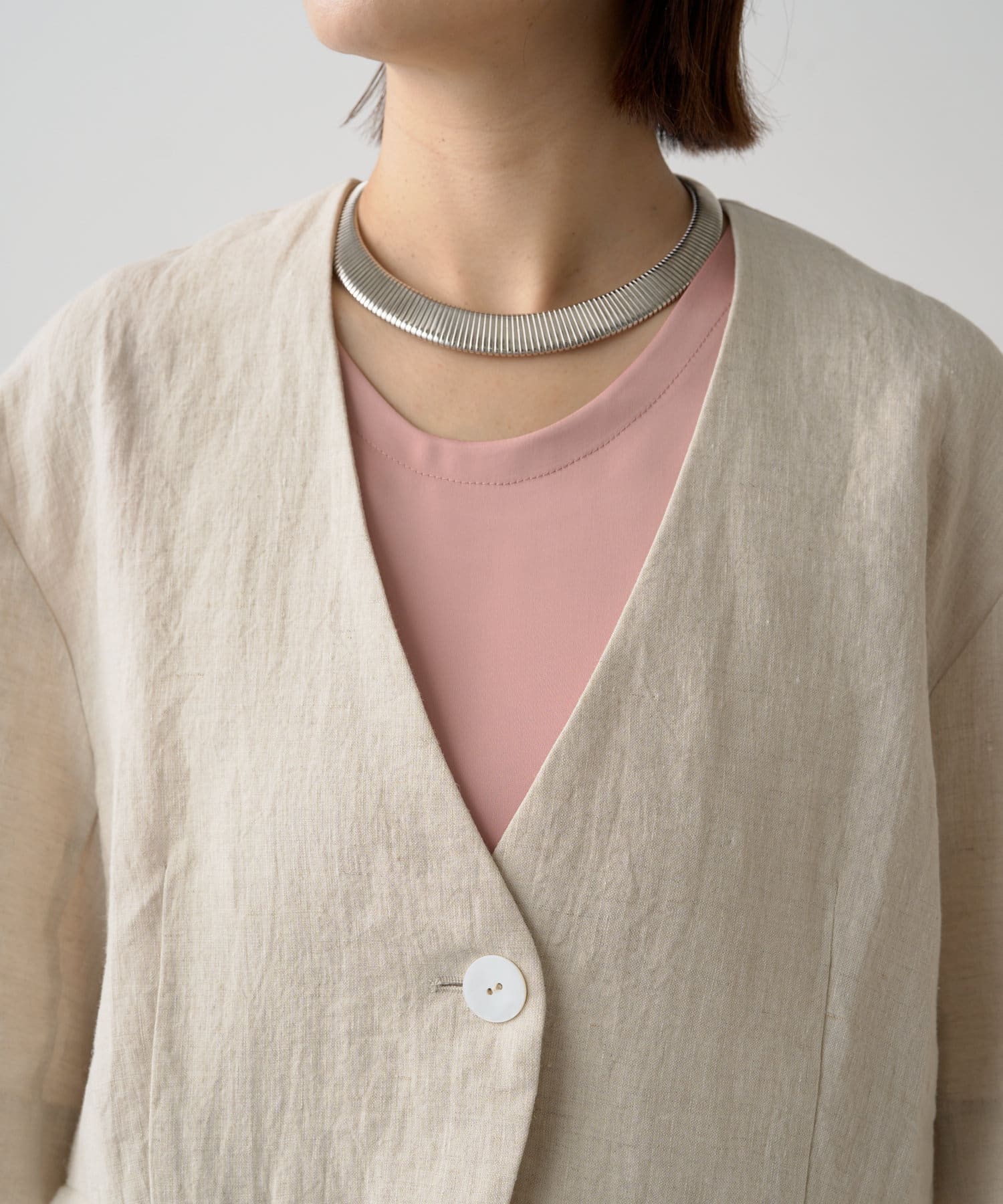 ノーカラーリネンジャケット