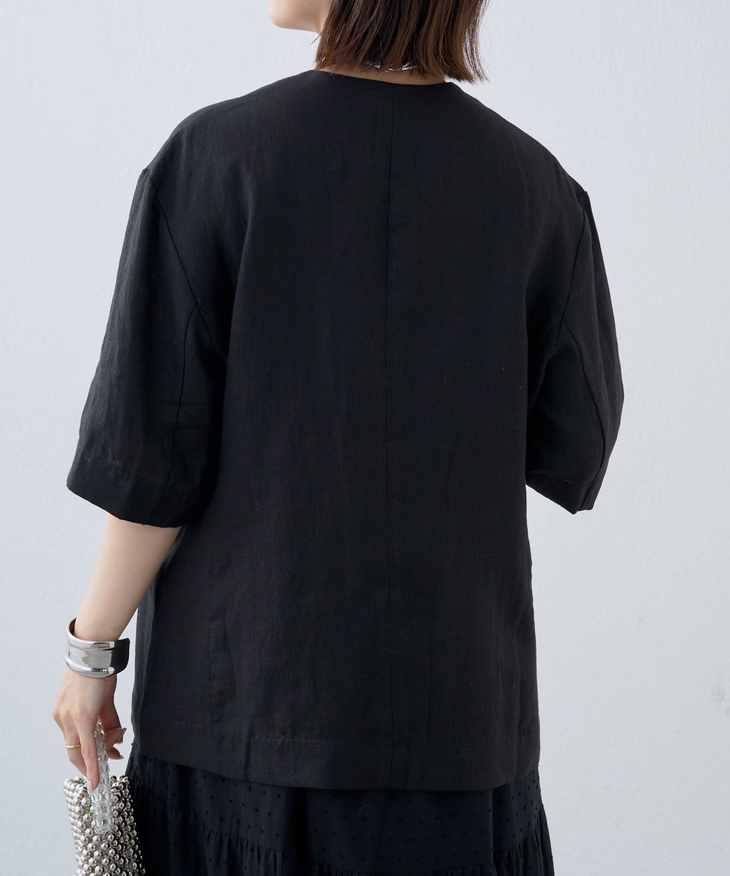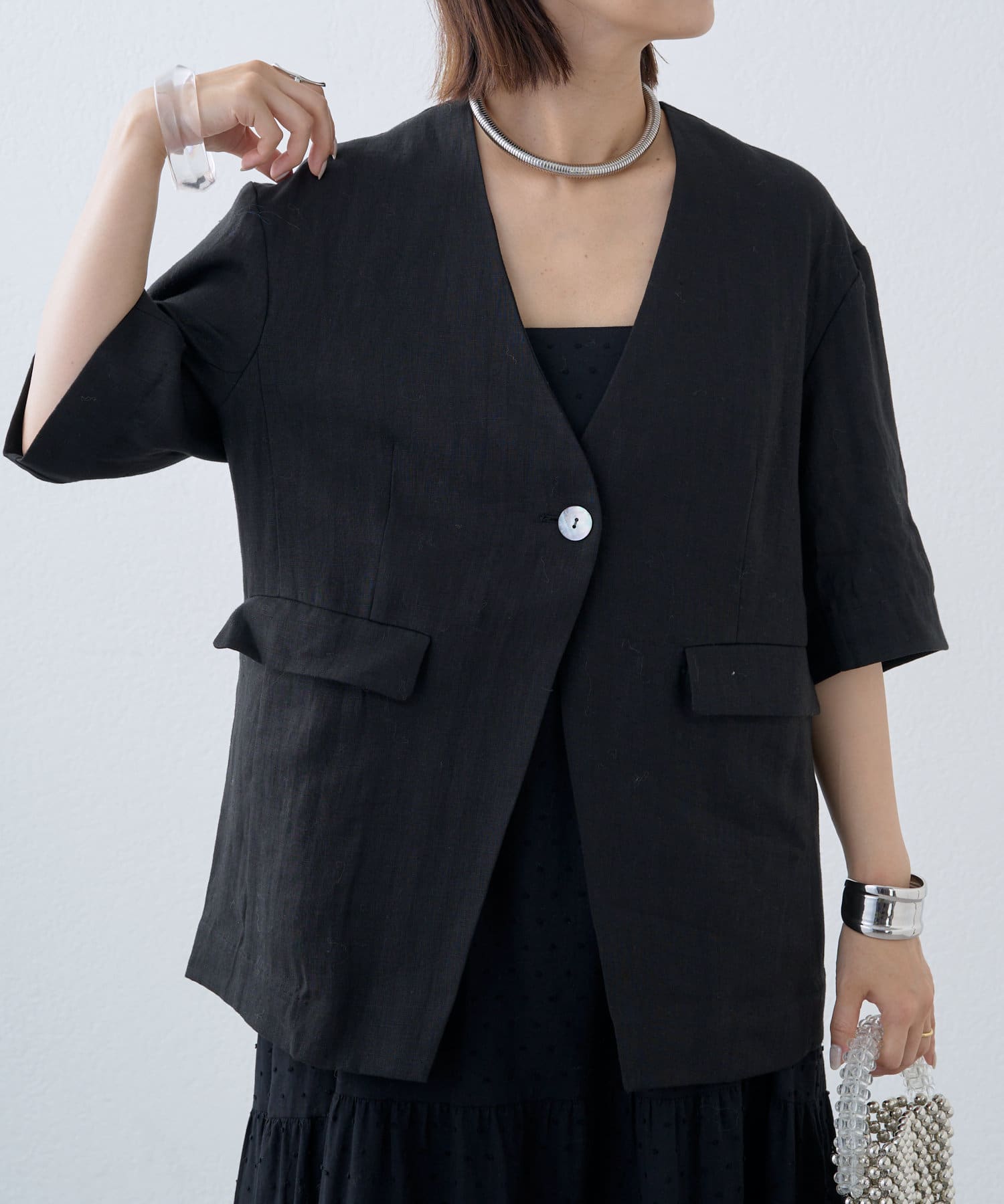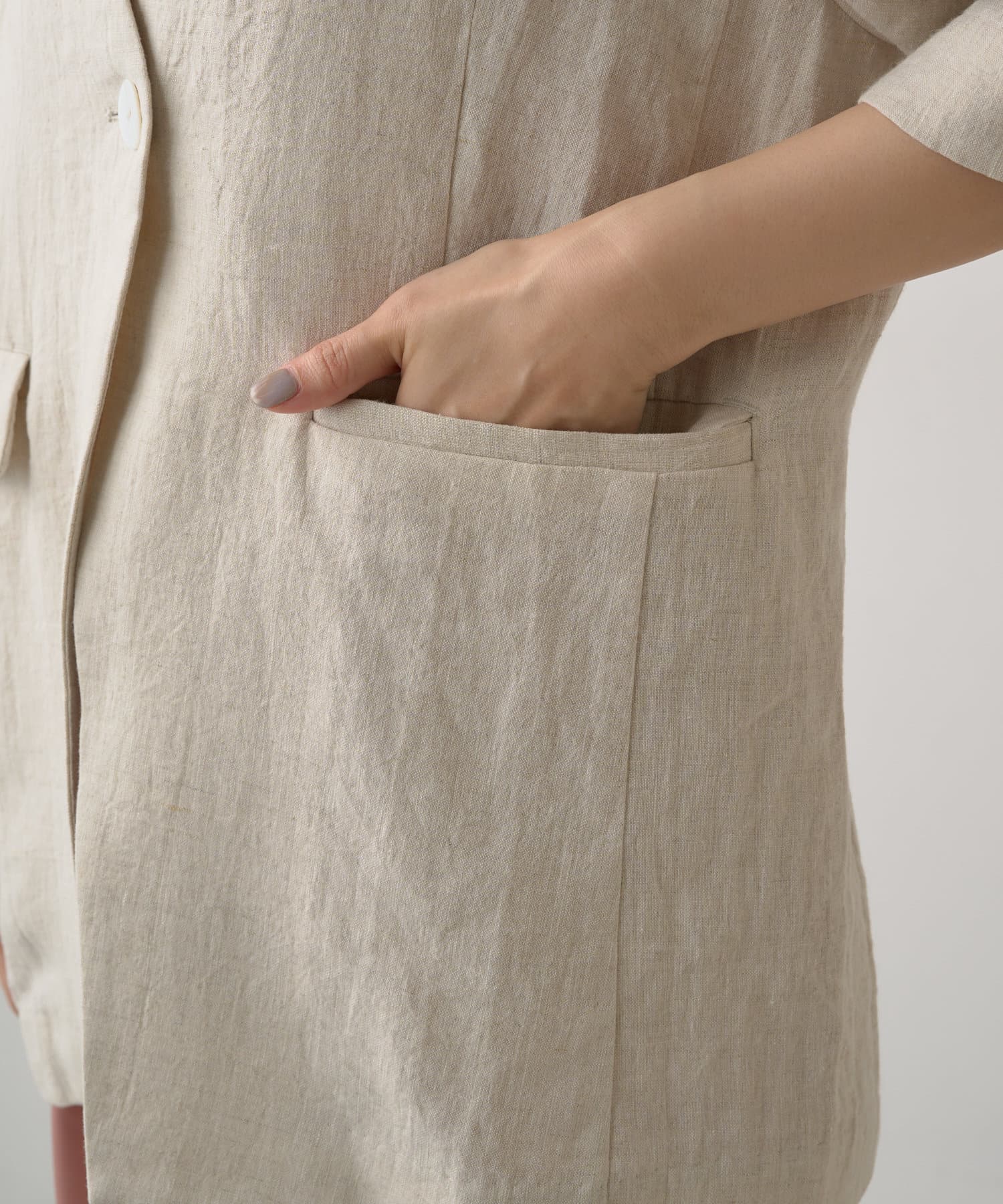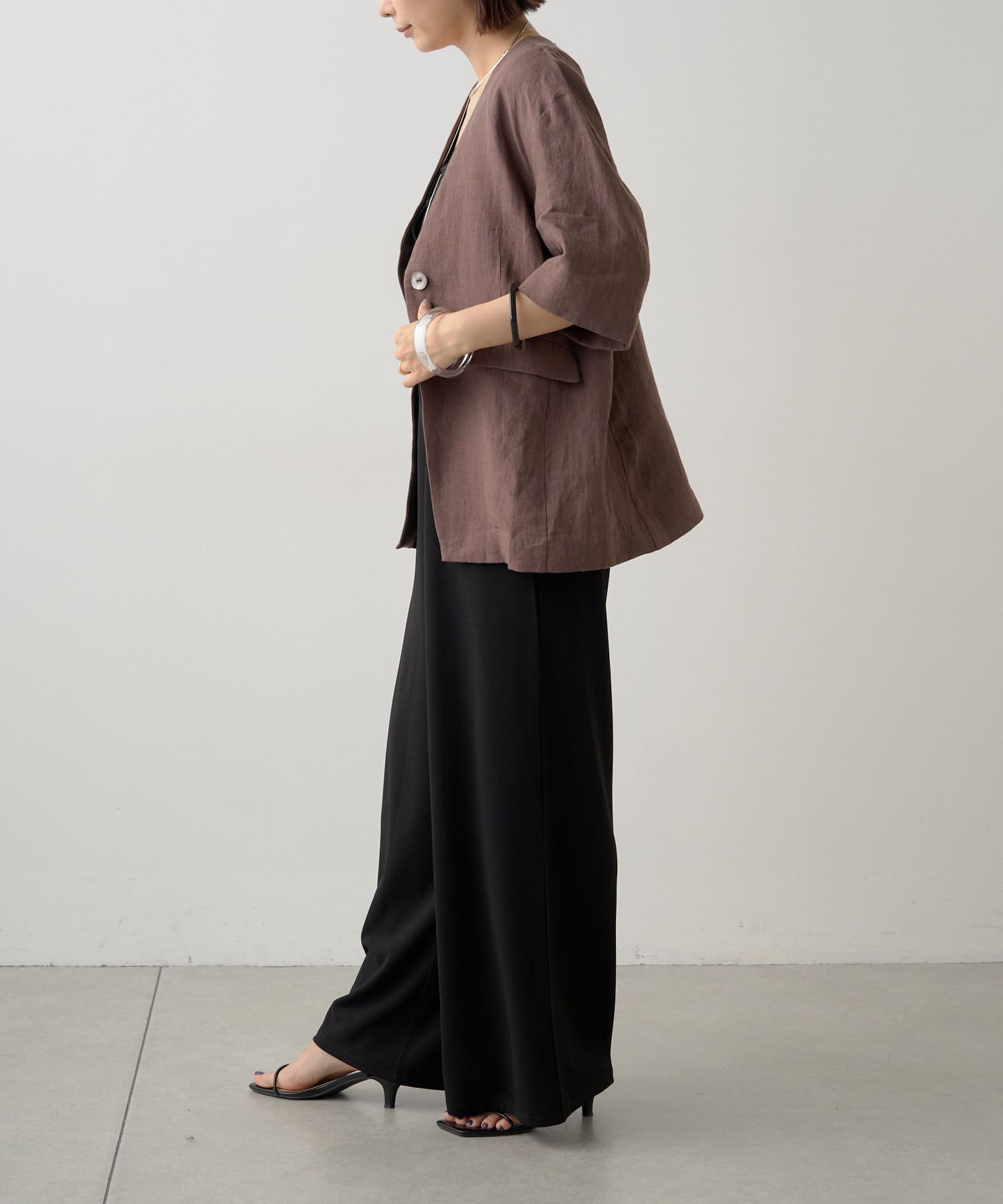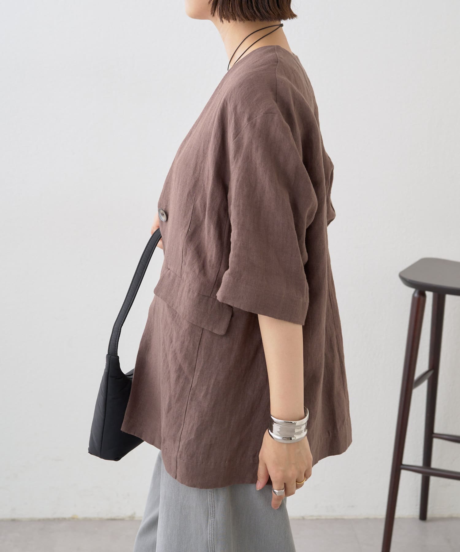 ノーカラーリネンジャケット