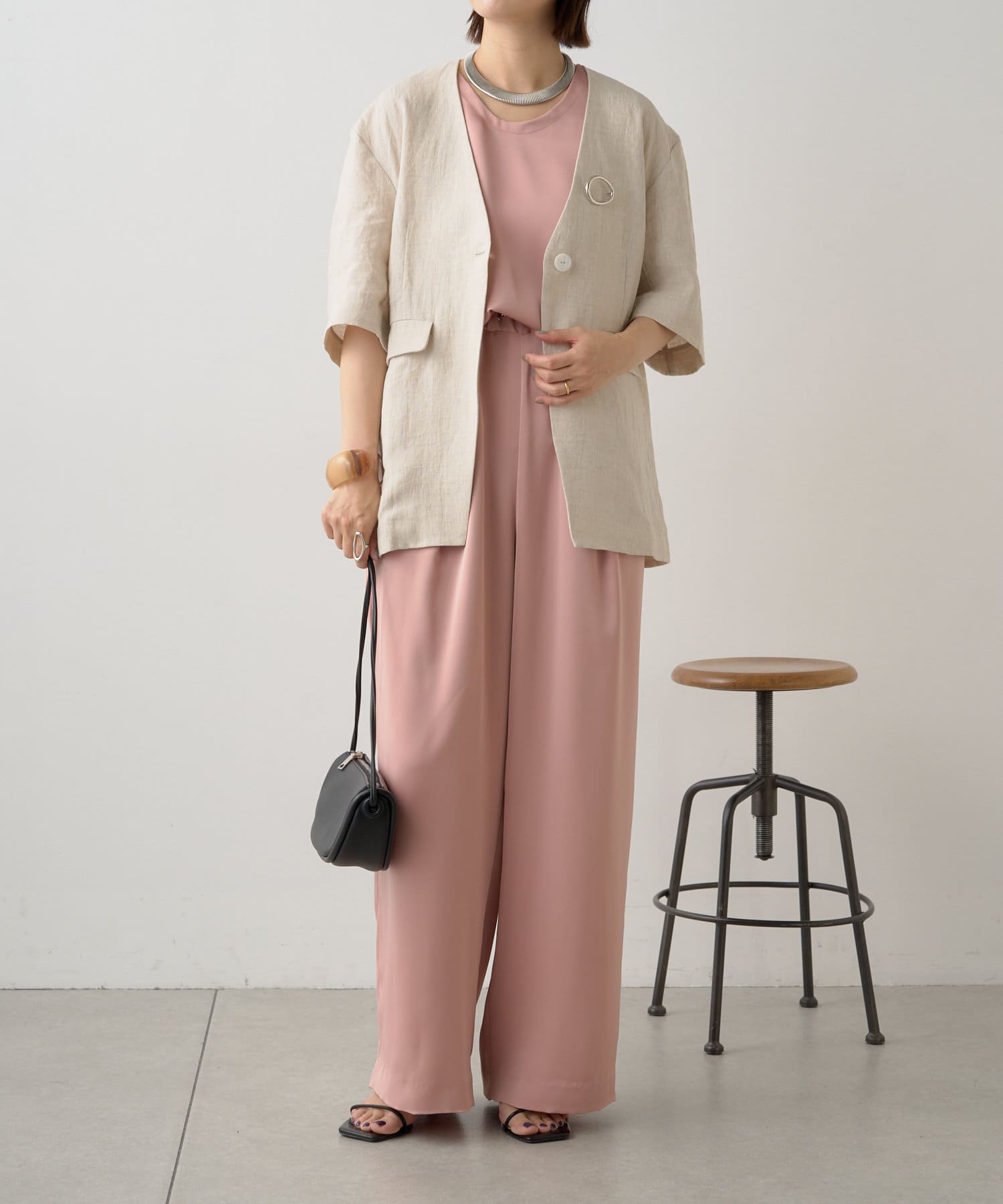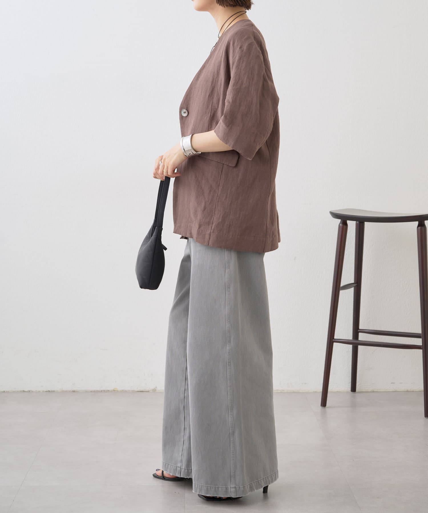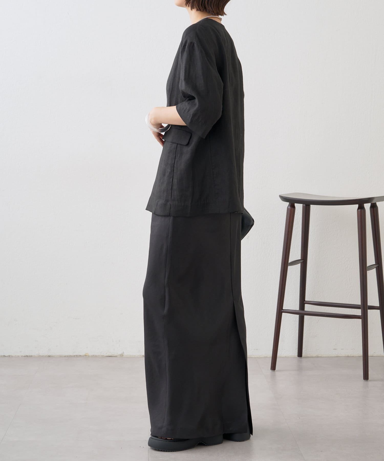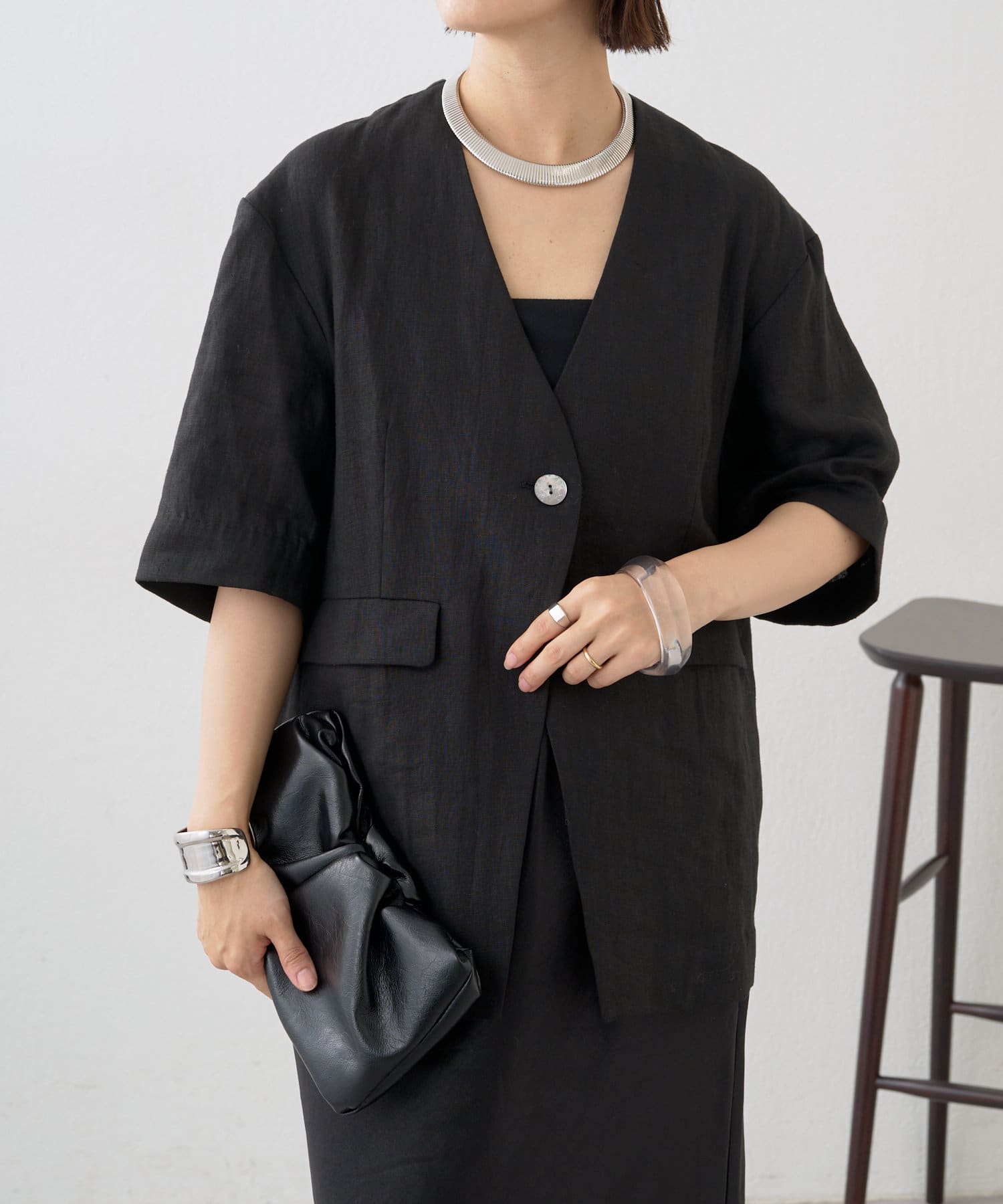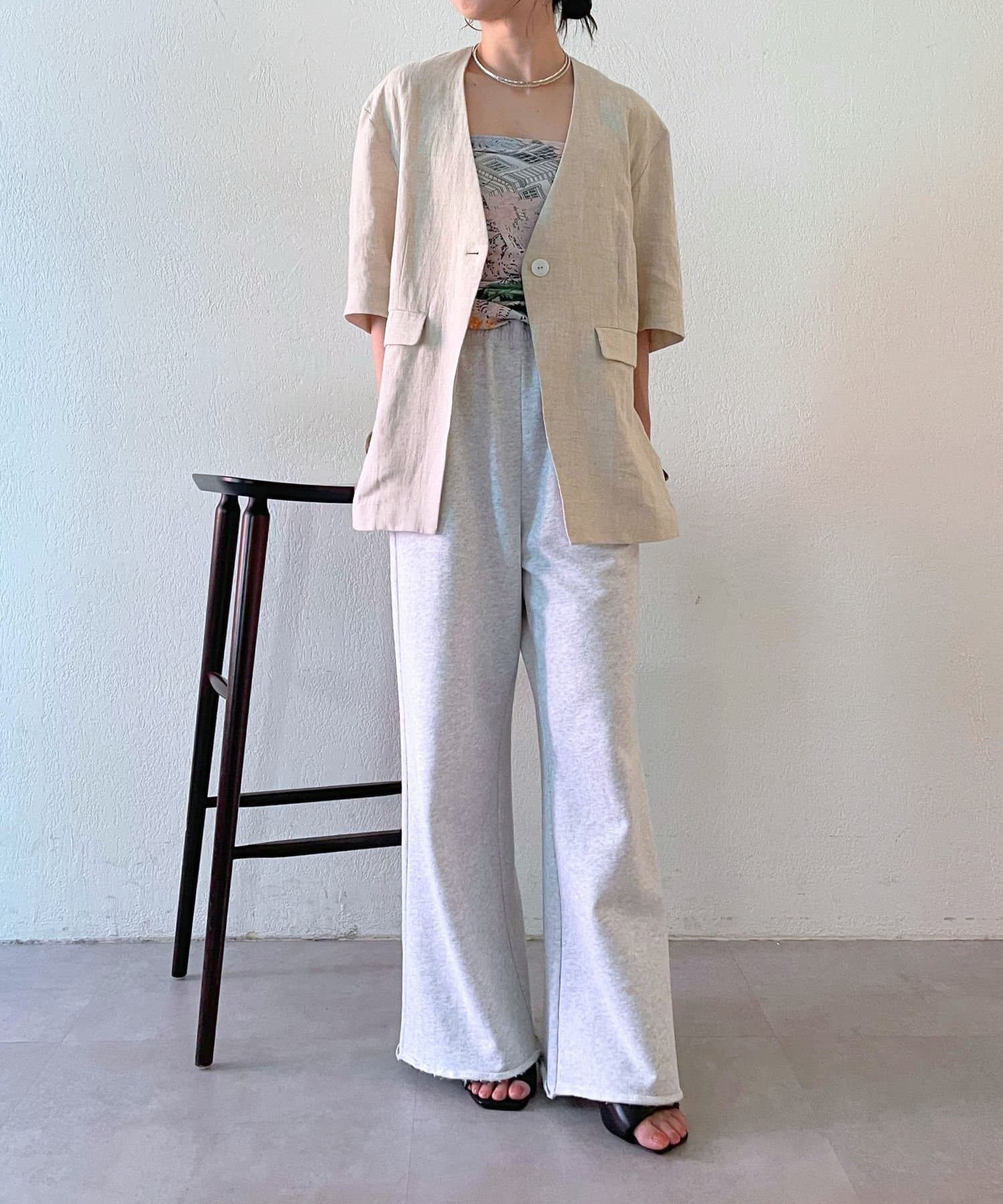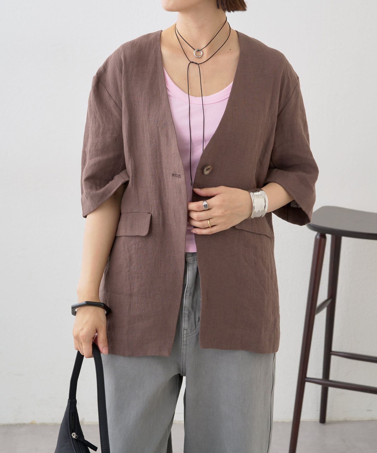ノーカラーリネンジャケット