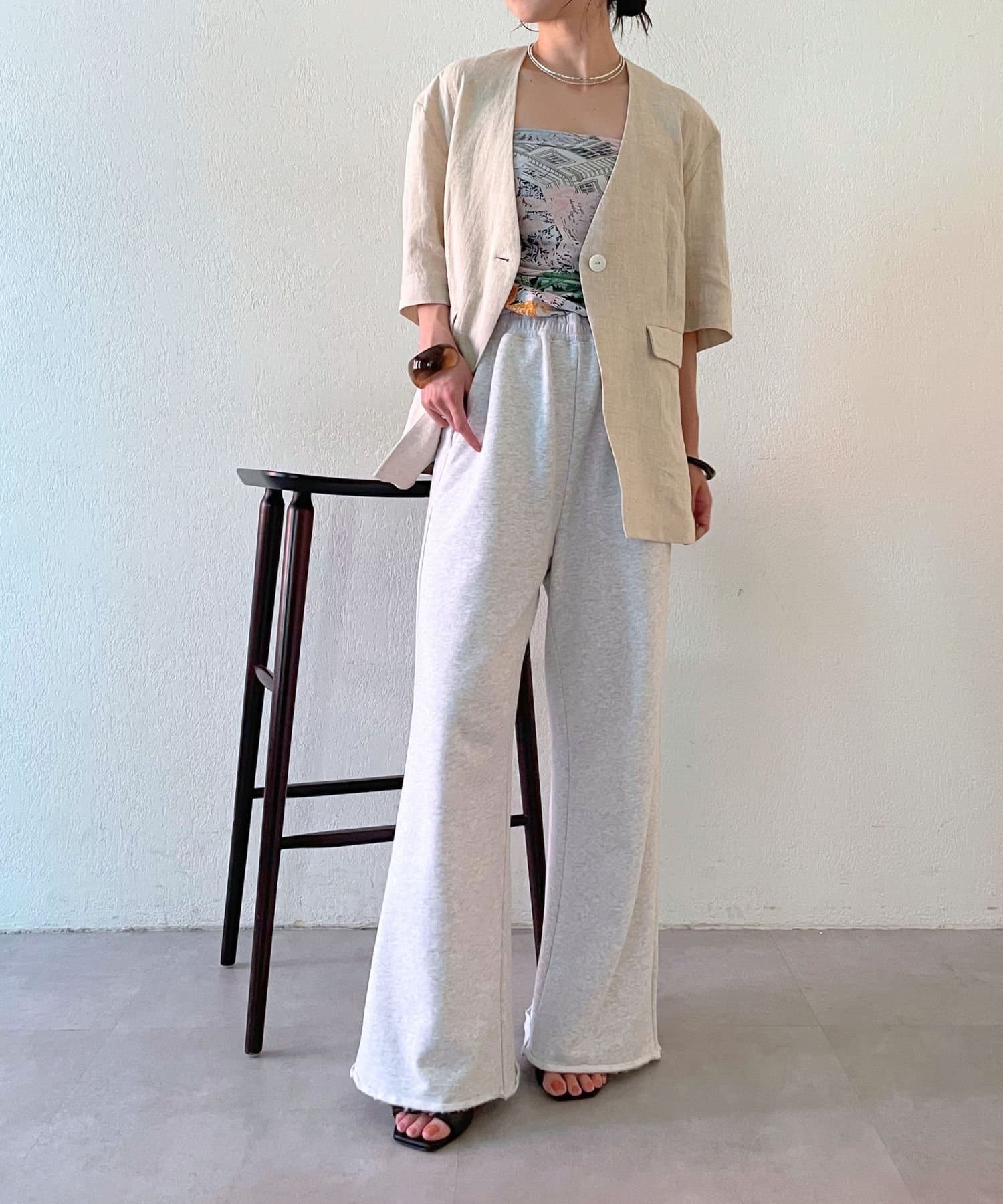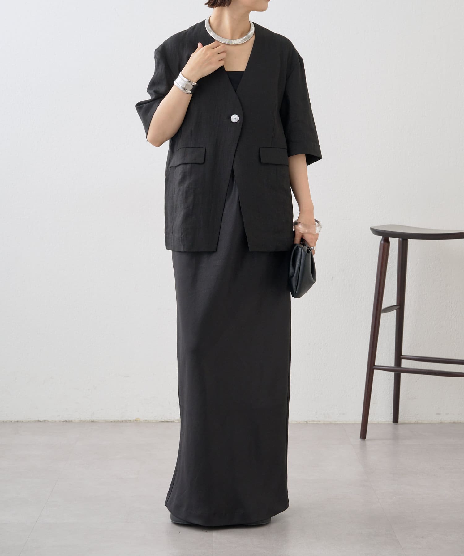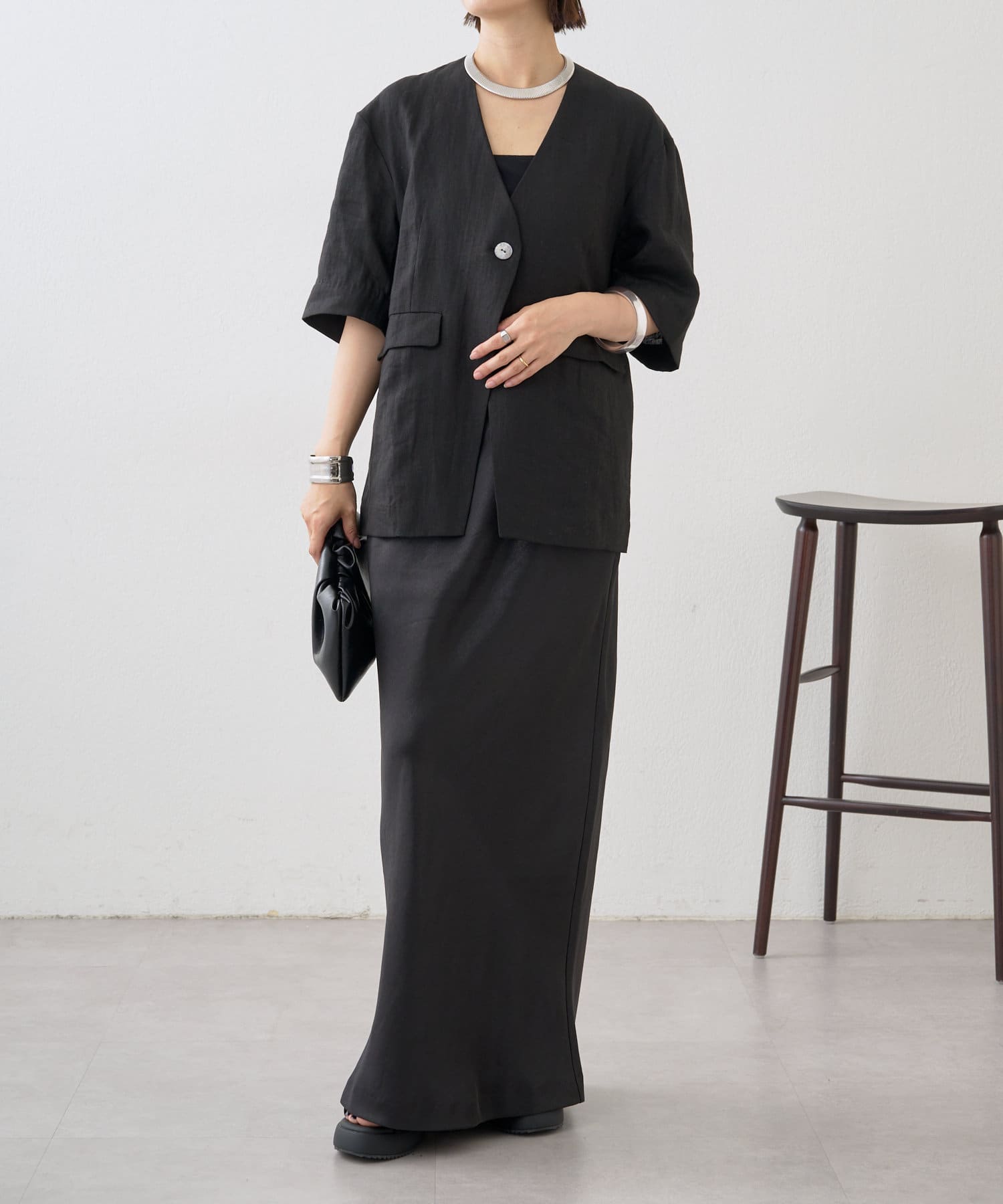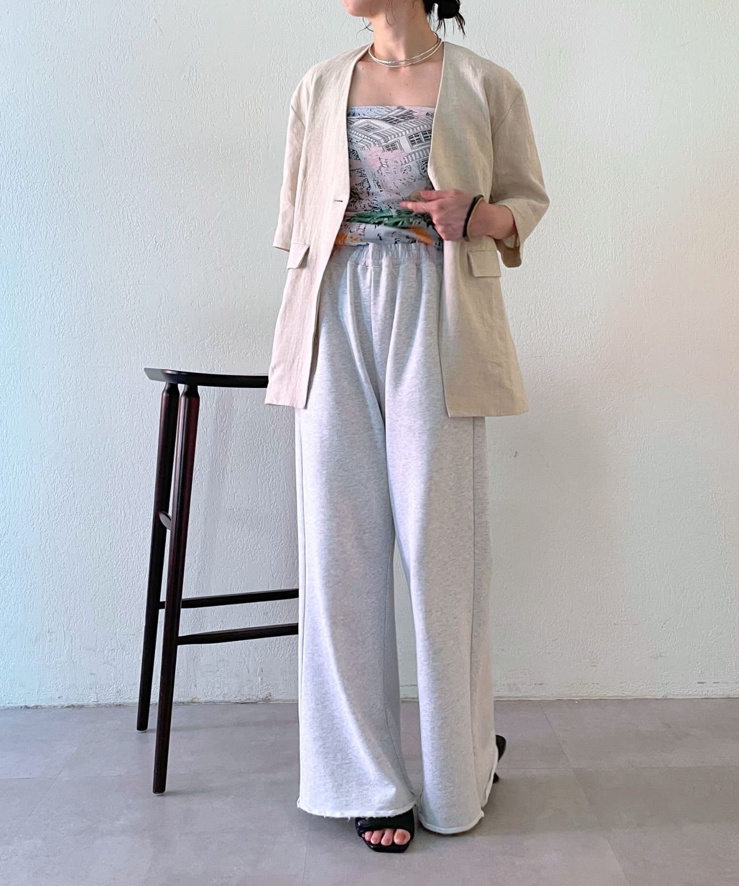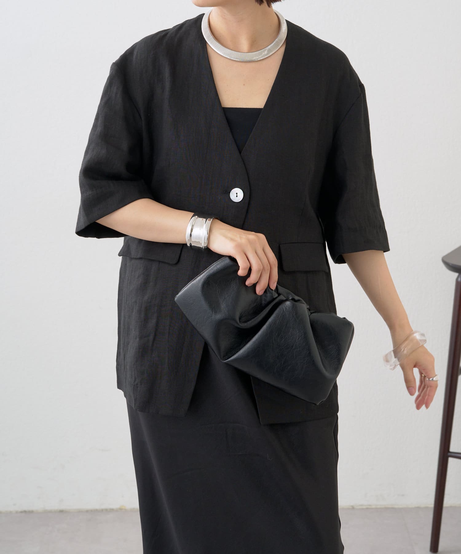ノーカラーリネンジャケット