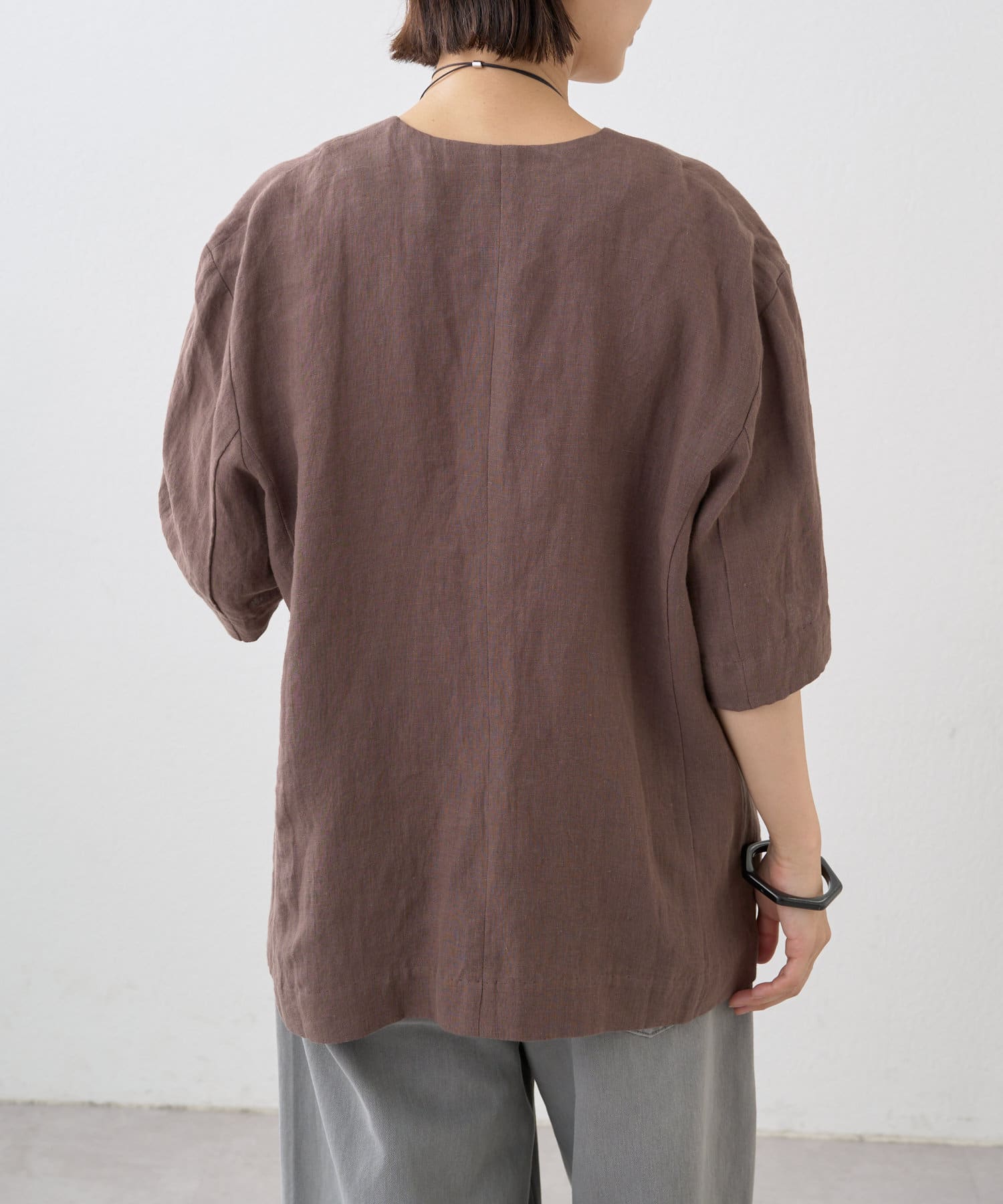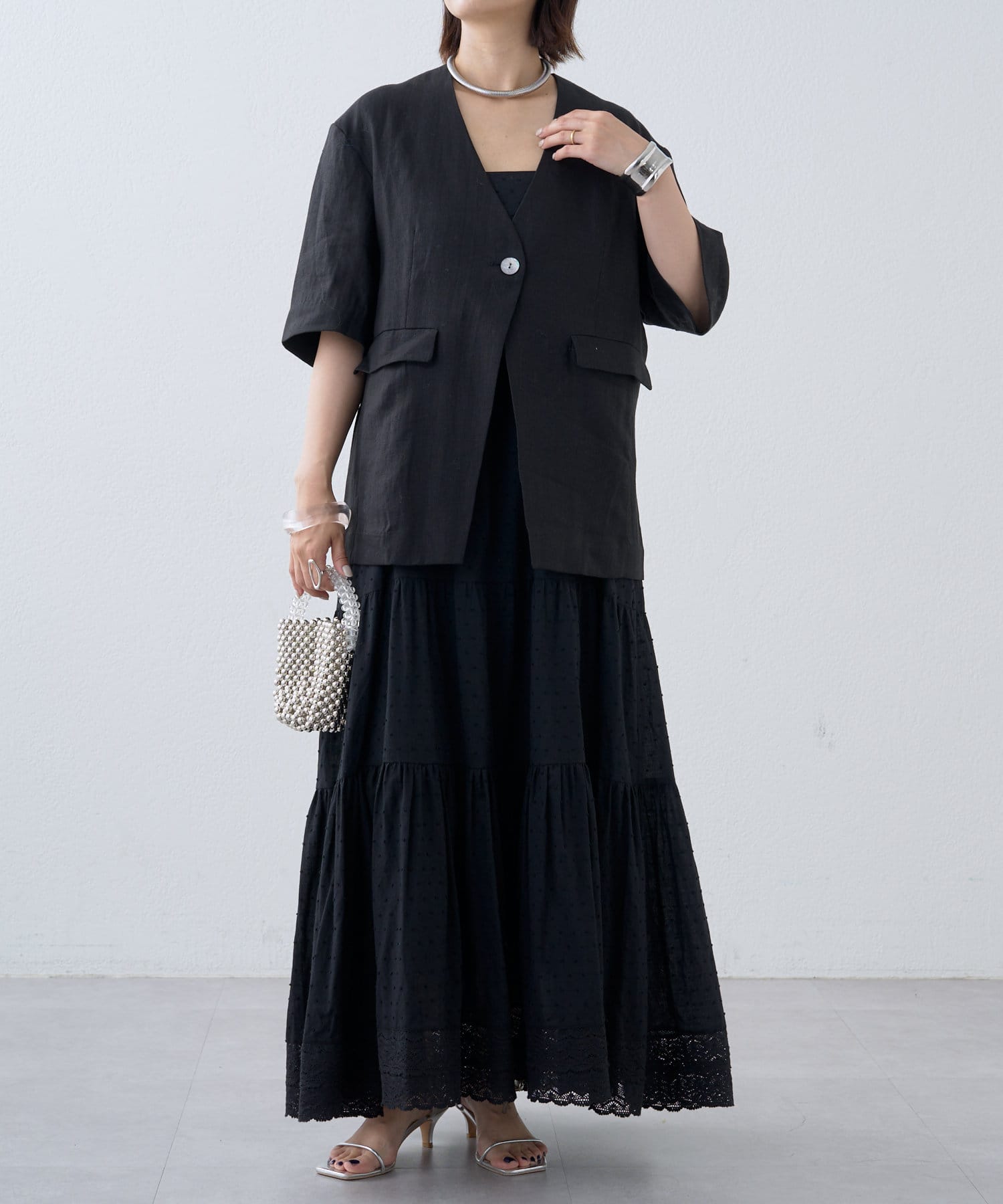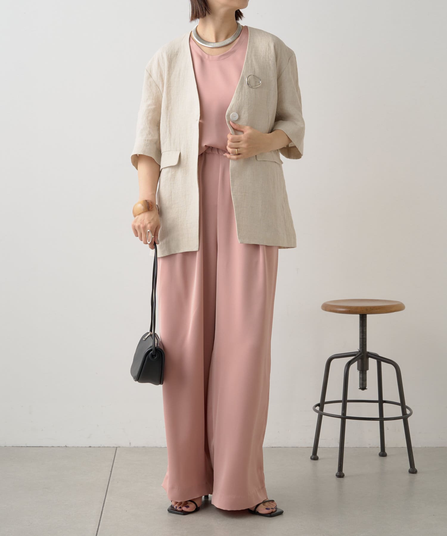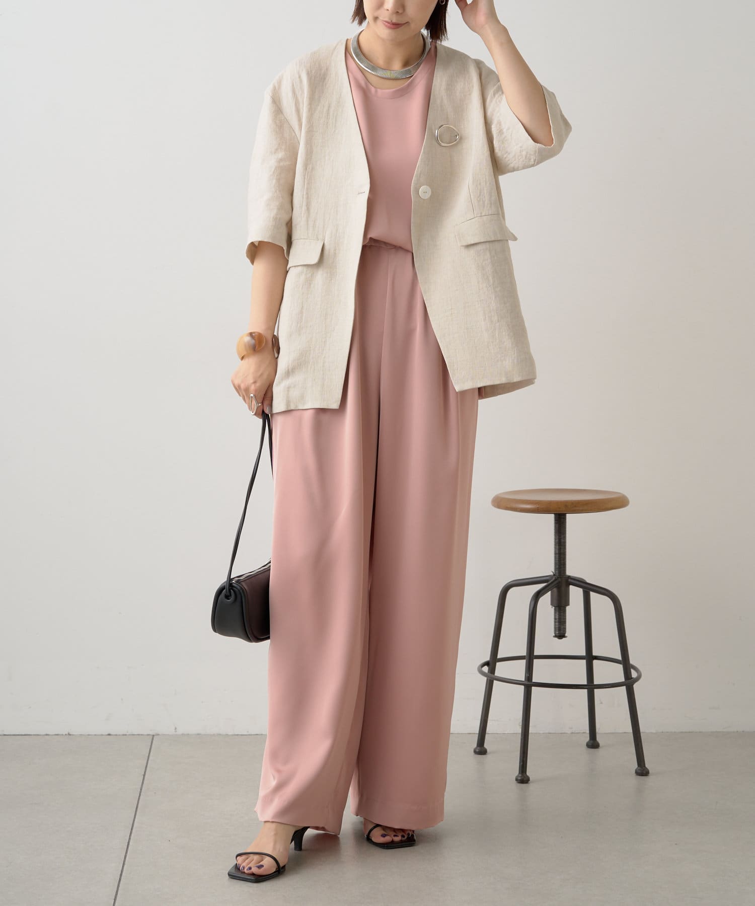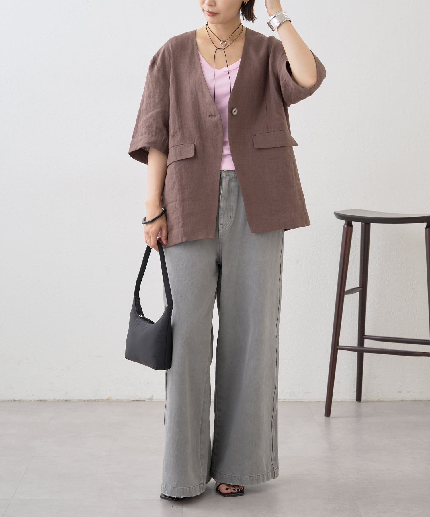 ノーカラーリネンジャケット